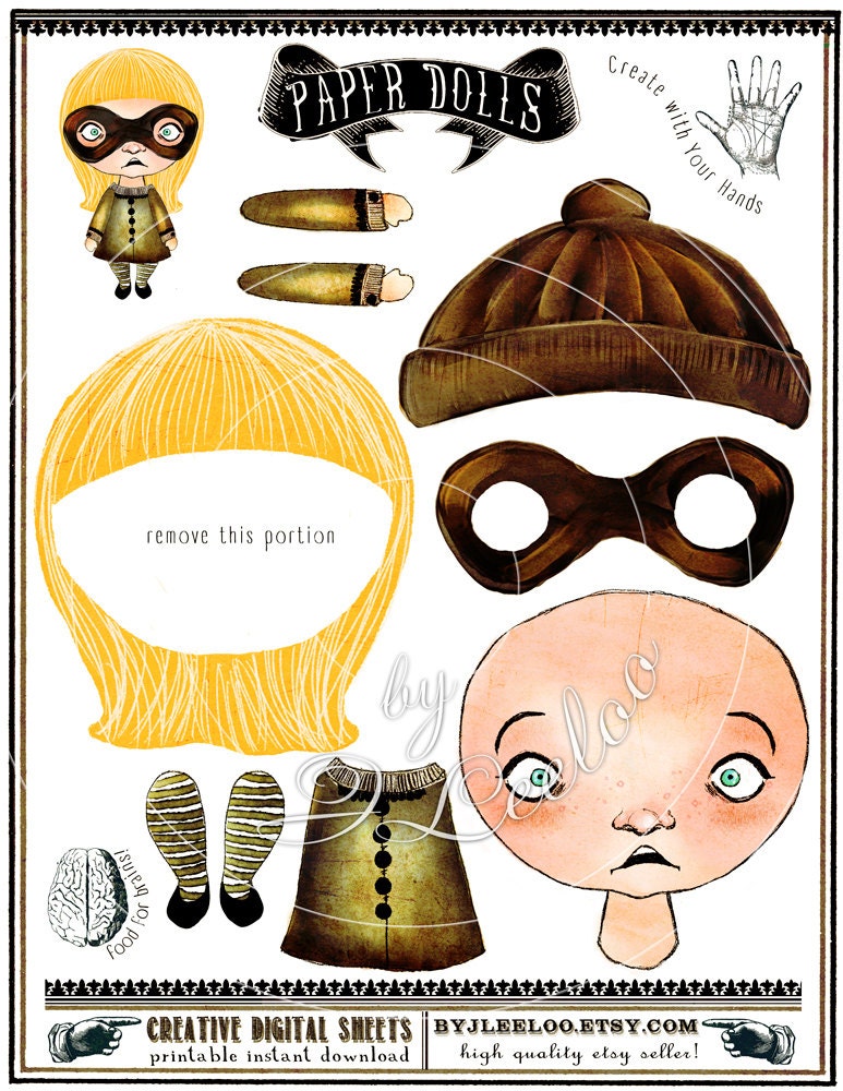 Digital collage sheets dolls - Digital papers hand-drawn printable paper dolls for your artwork and crafting project - Altered art, steampunk, scrpbook, vintage project etc... free your imagination!