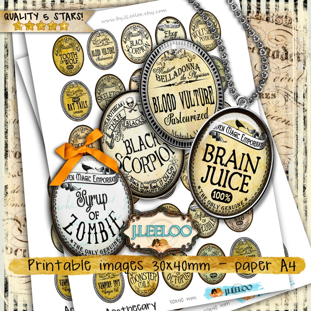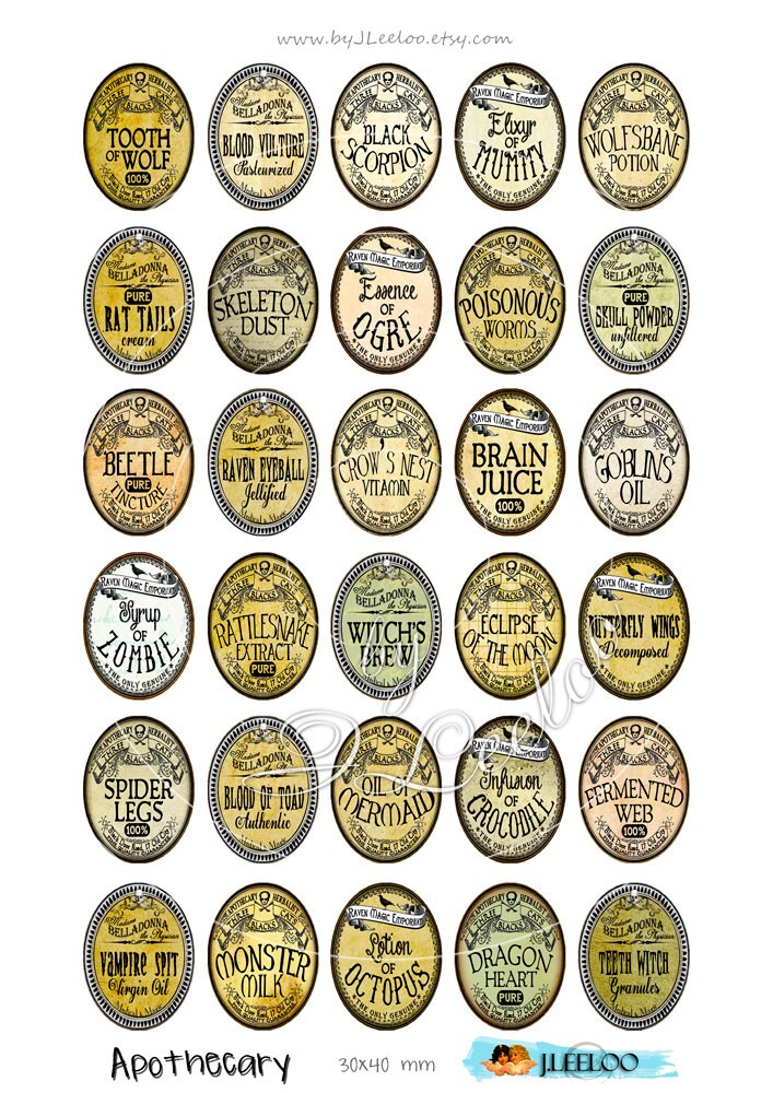 APOTHECARY Instant Download - Digital collage sheets - Oval printable images for resin pendants, charms, card making, button, magnets, stickers and all your craft project.