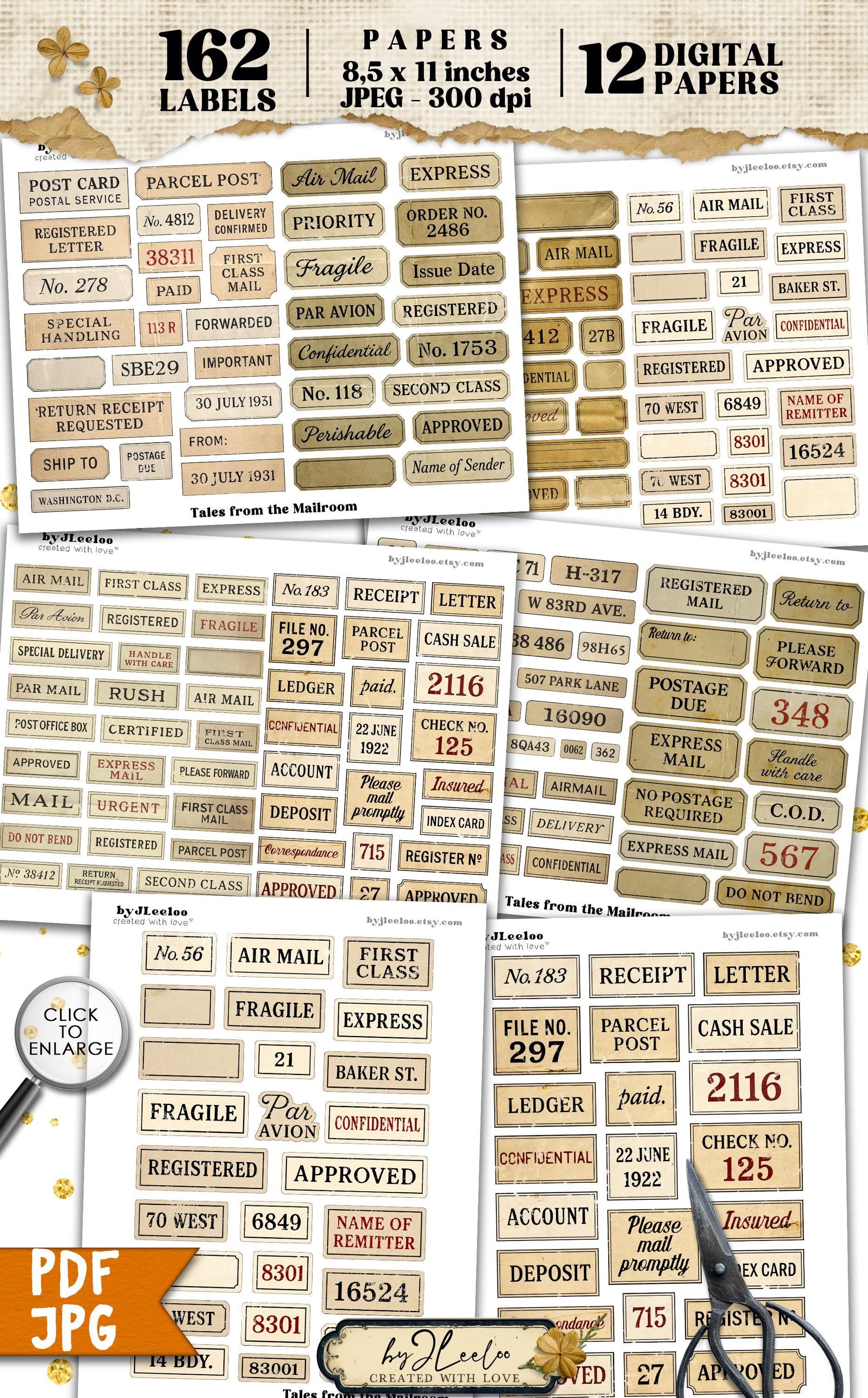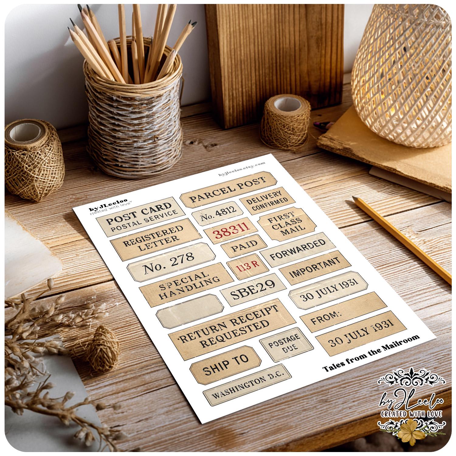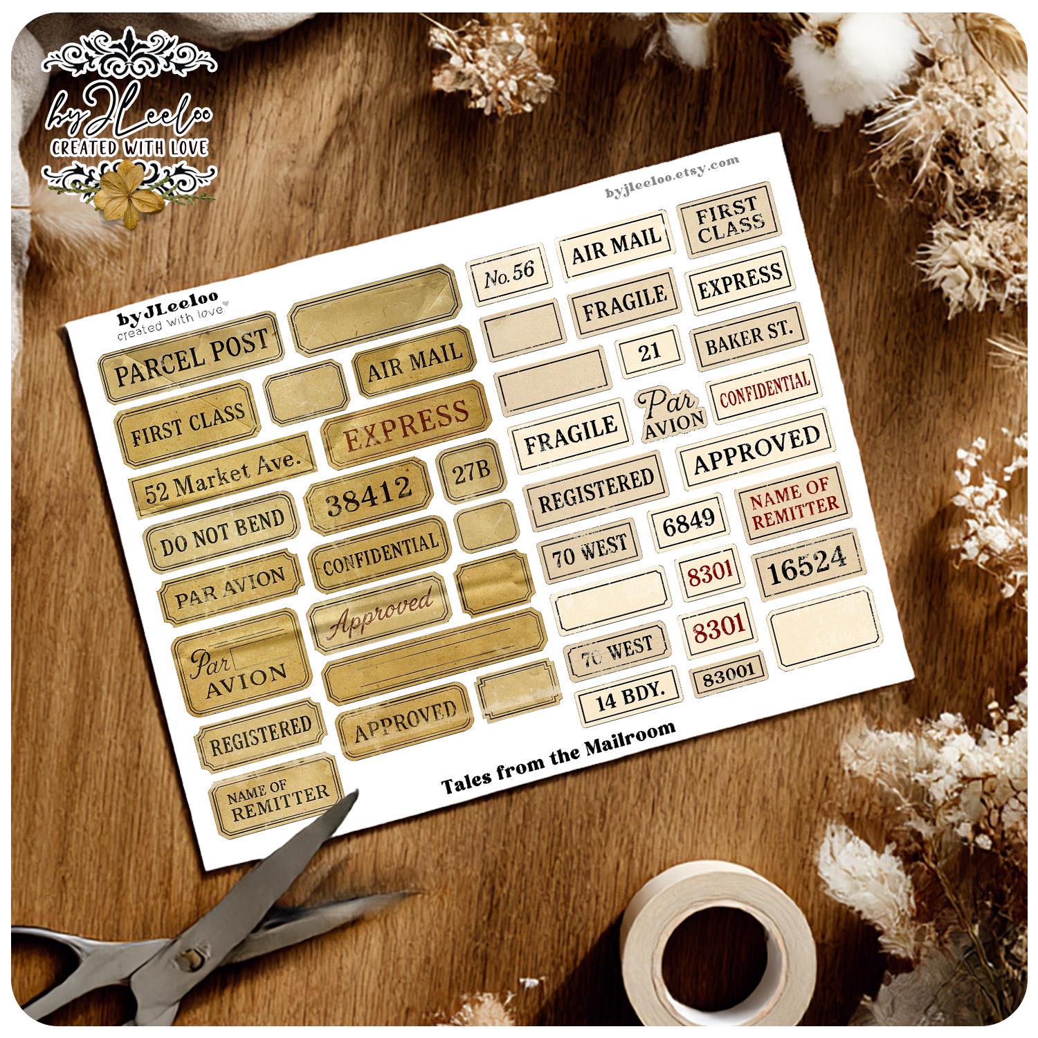 TALES From The MAILROOM | Vintage Postal Labels for Junk Journals, Scrapbooking, Ephemera, Collage, Mixed Media, Snail Mail | tl332