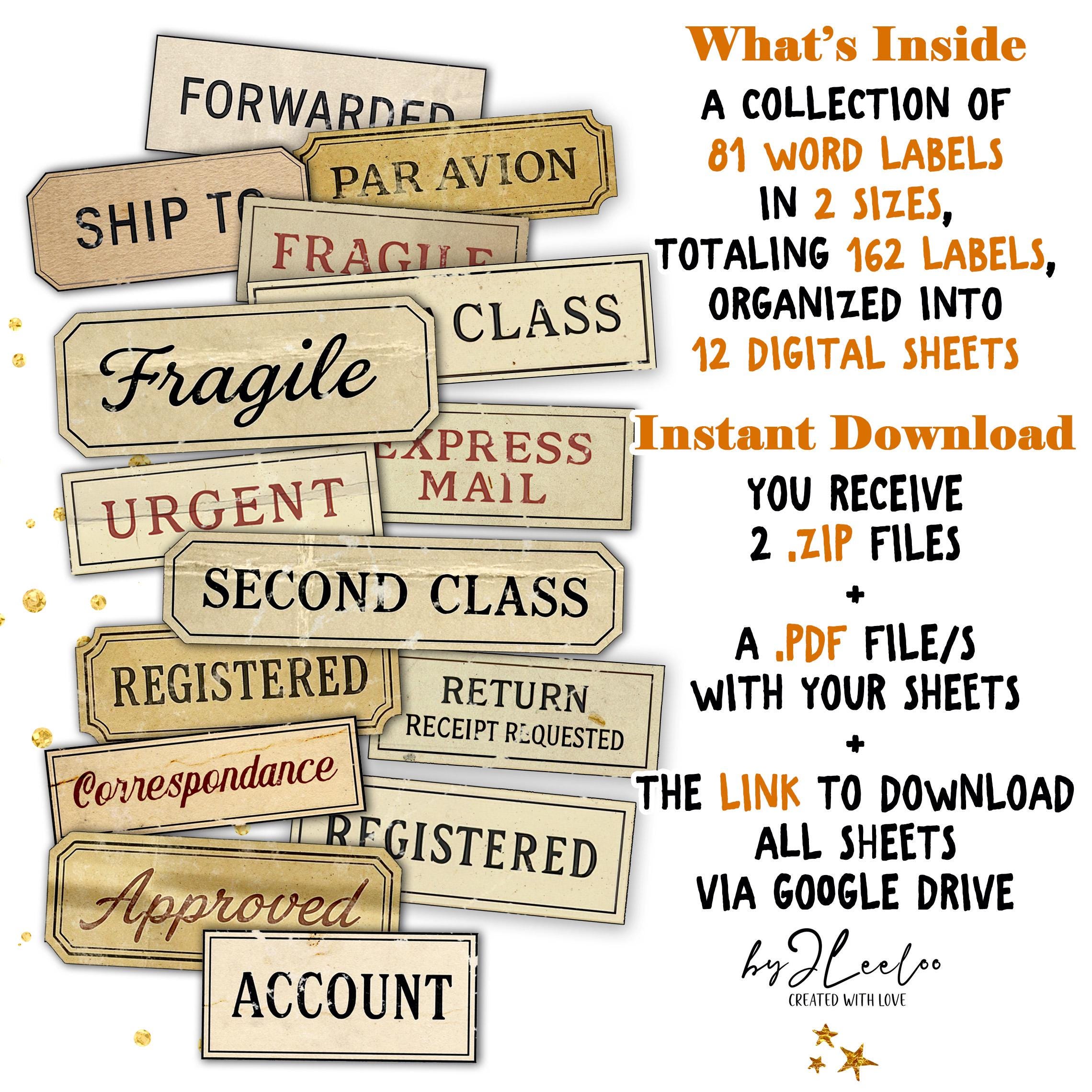 From “Par Avion” to “Confidential”, these vintage-style labels are perfect for junk journals, snail mail, ephemera collages, and postal-inspired creations.