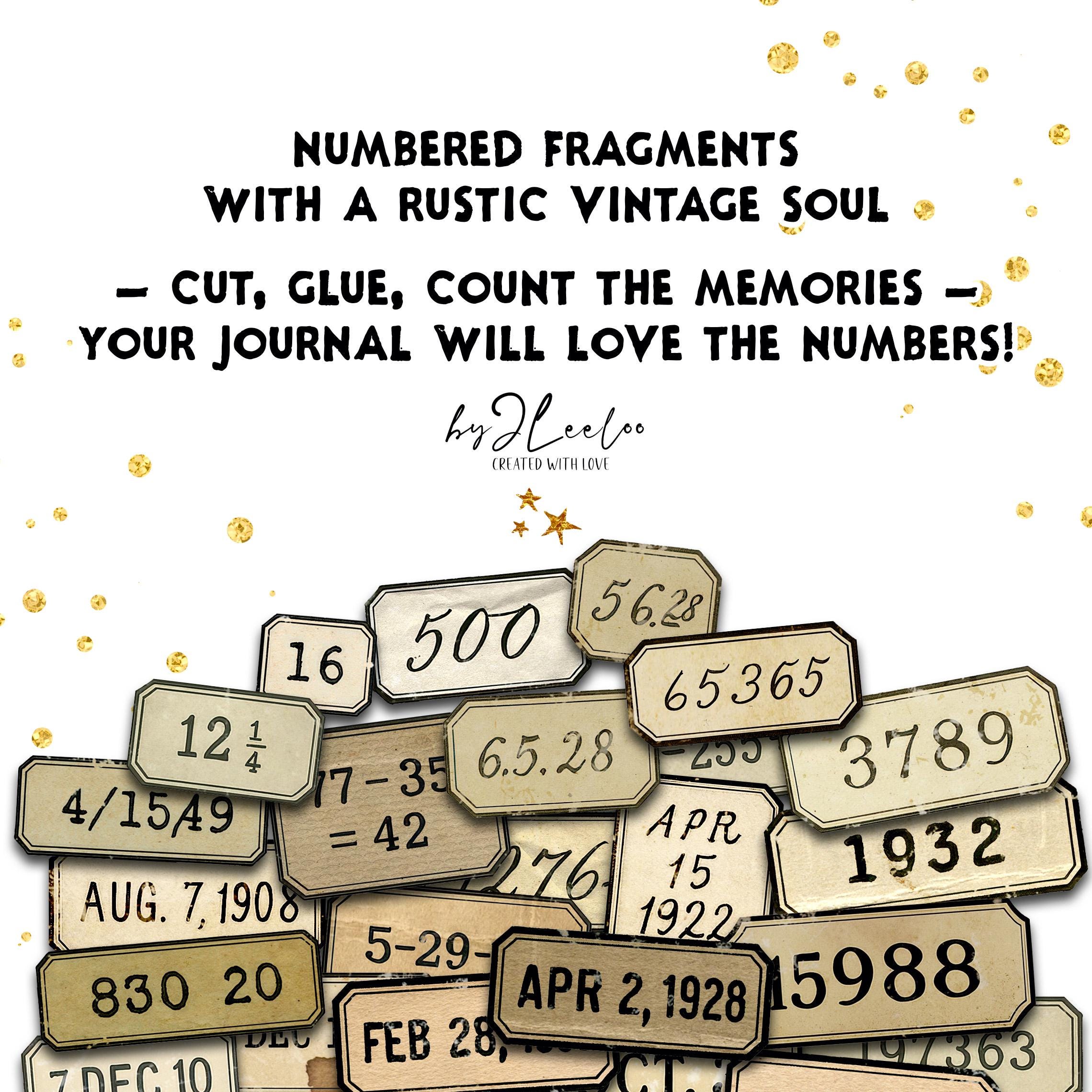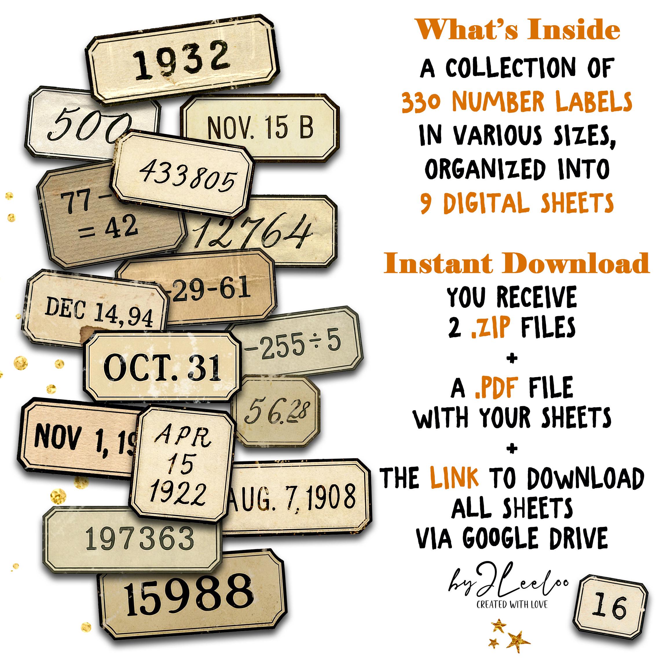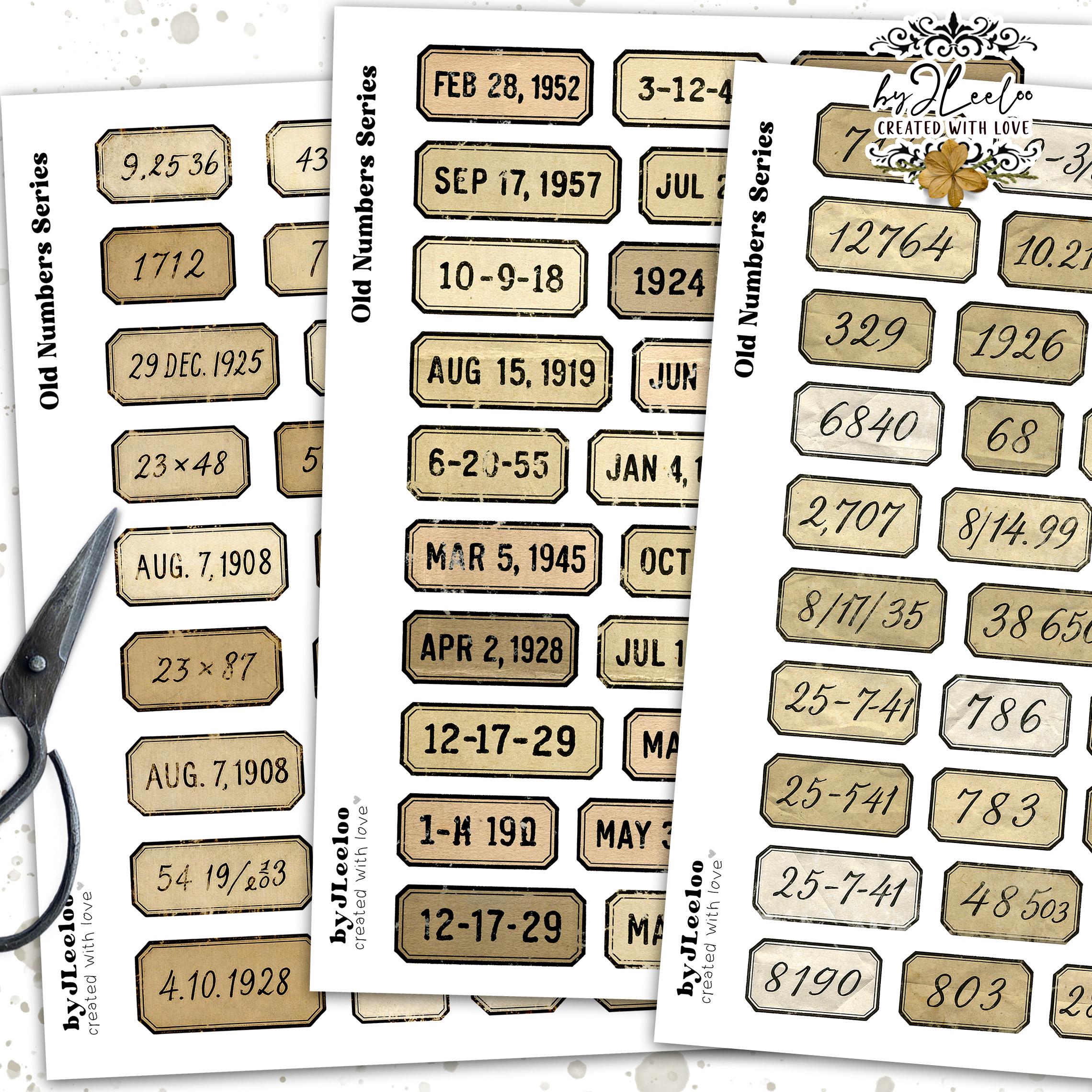 OLD NUMBERS SERIES | Vintage Distressed Number Handwritten & Typed Labels for Junk Journals, Scrapbook, Collage, Mixed Media | tl331