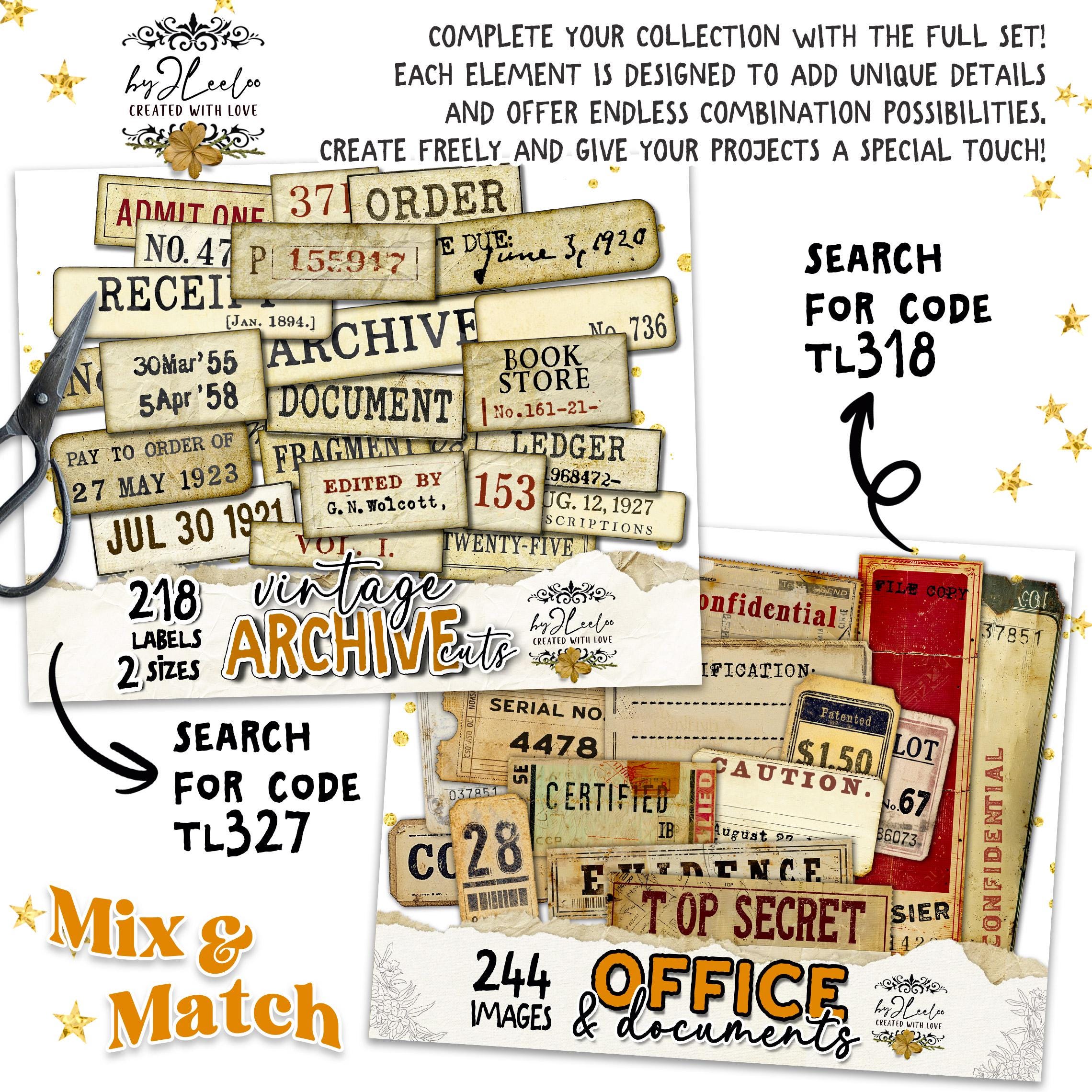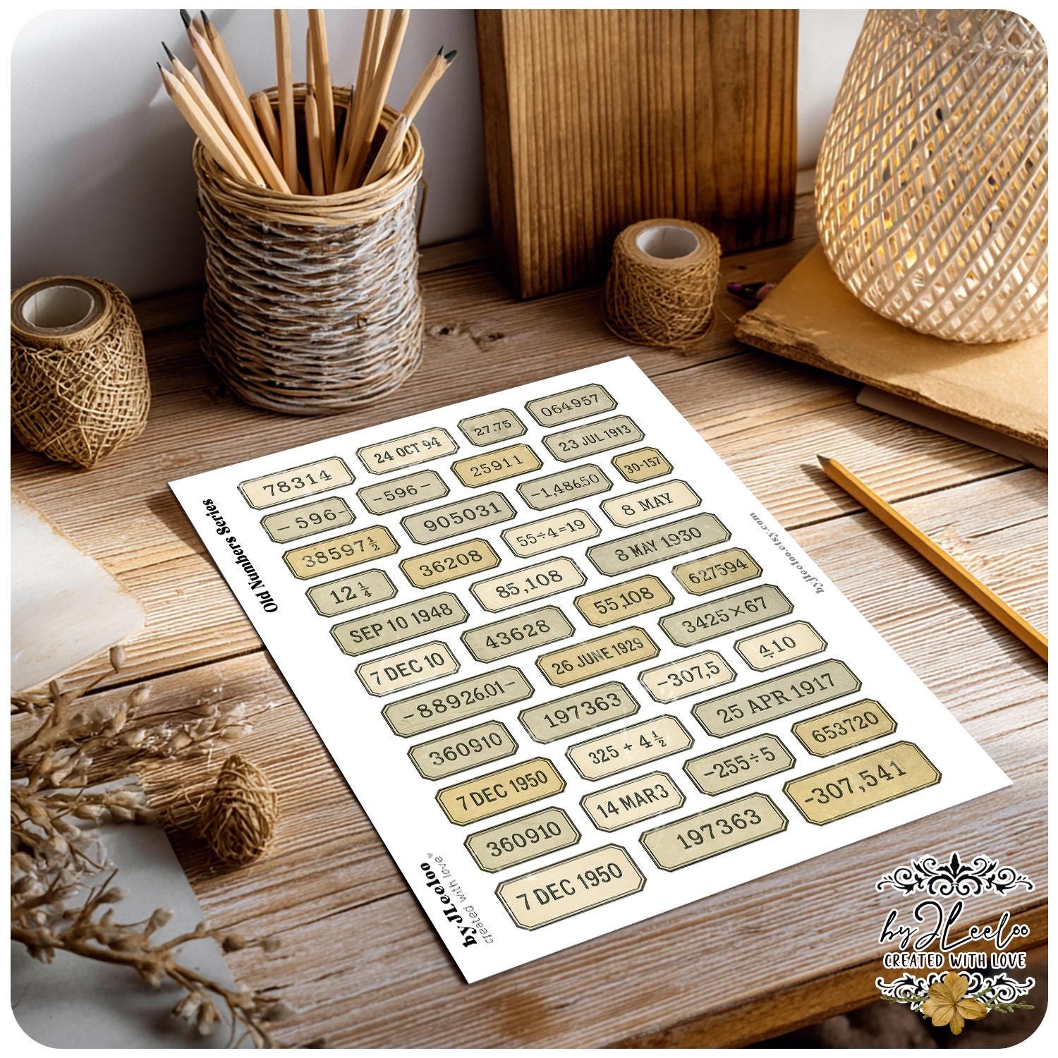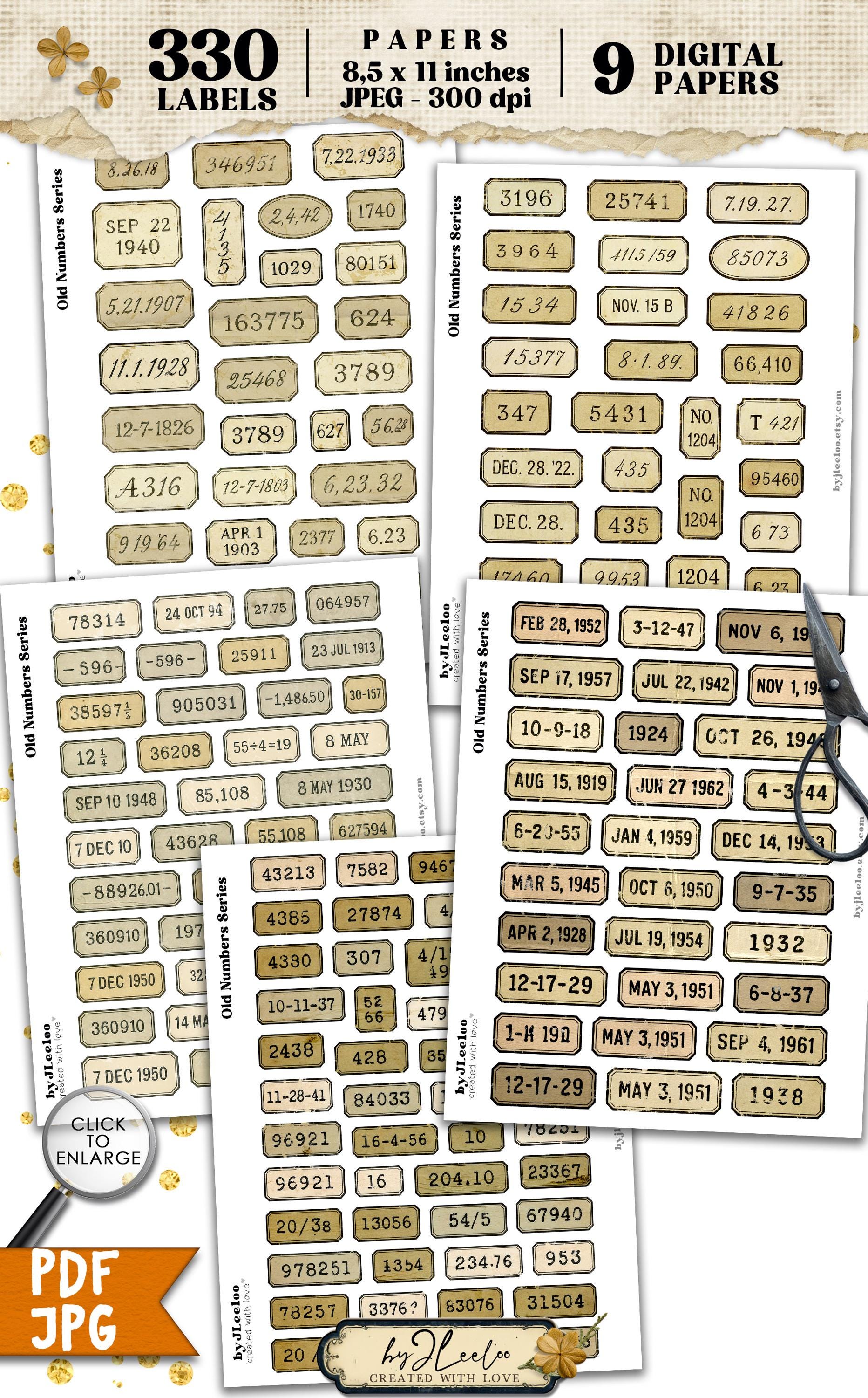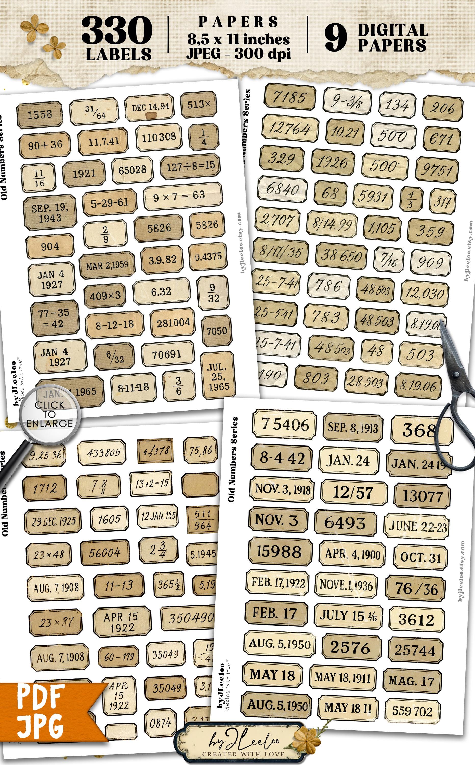 OLD NUMBERS SERIES | Vintage Distressed Number Handwritten & Typed Labels for Junk Journals, Scrapbook, Collage, Mixed Media | tl331