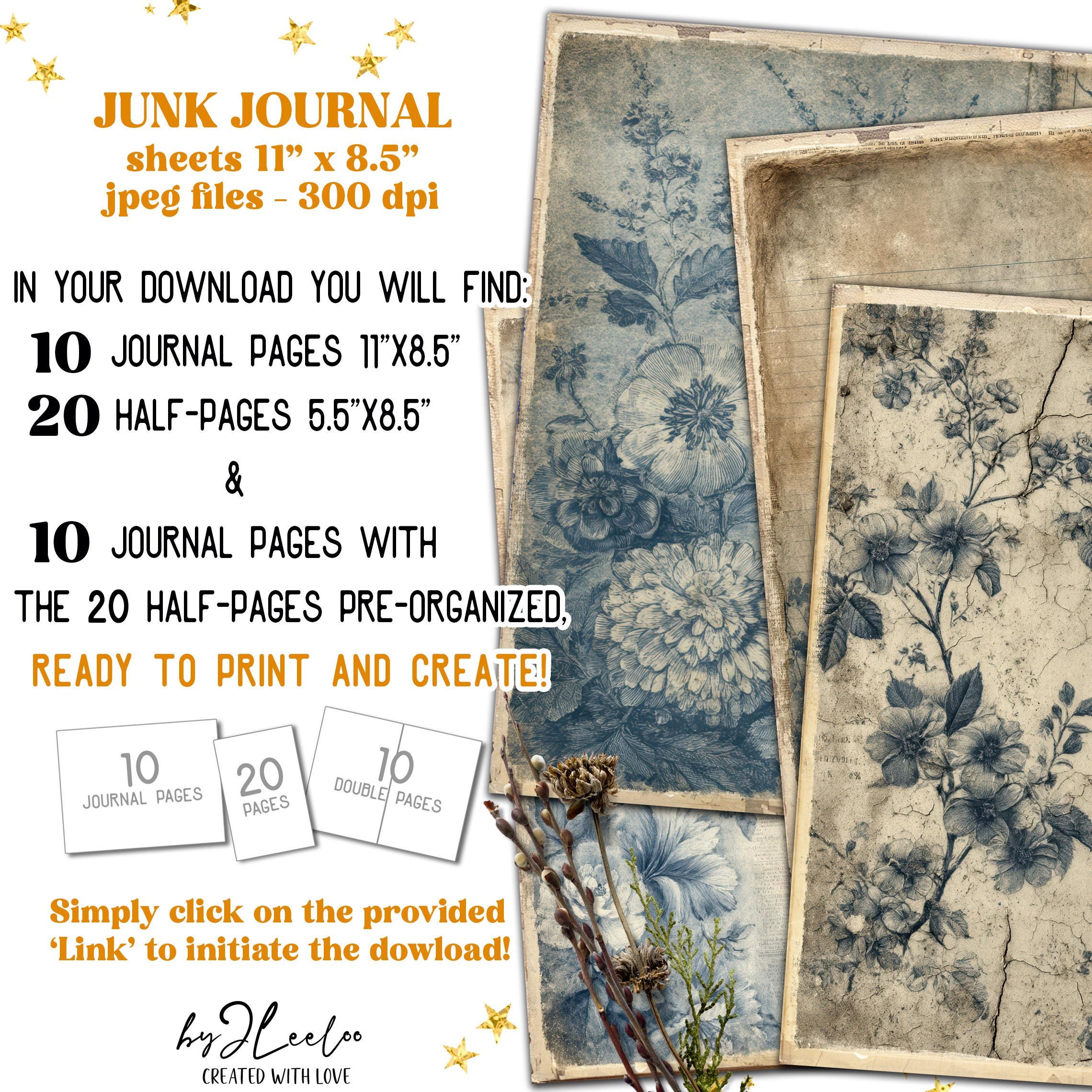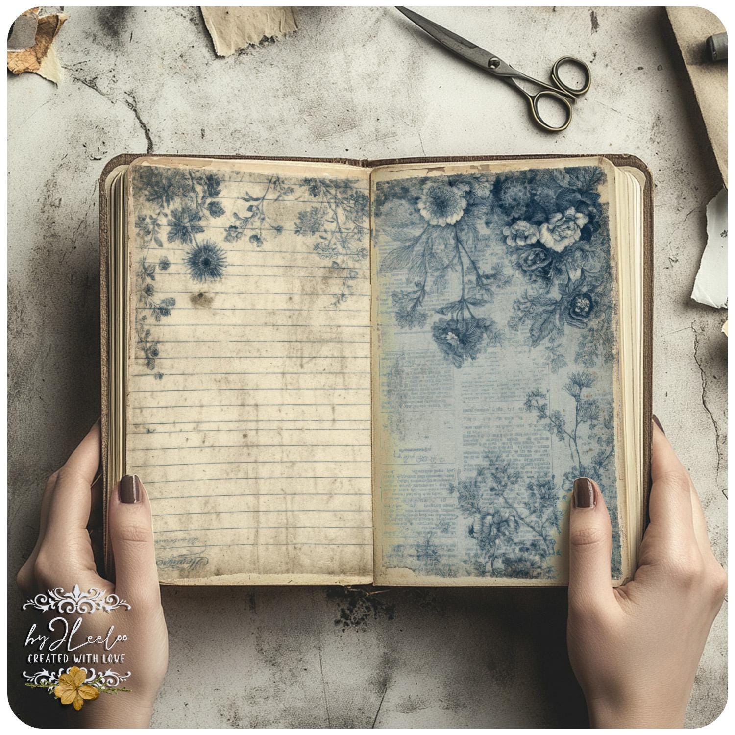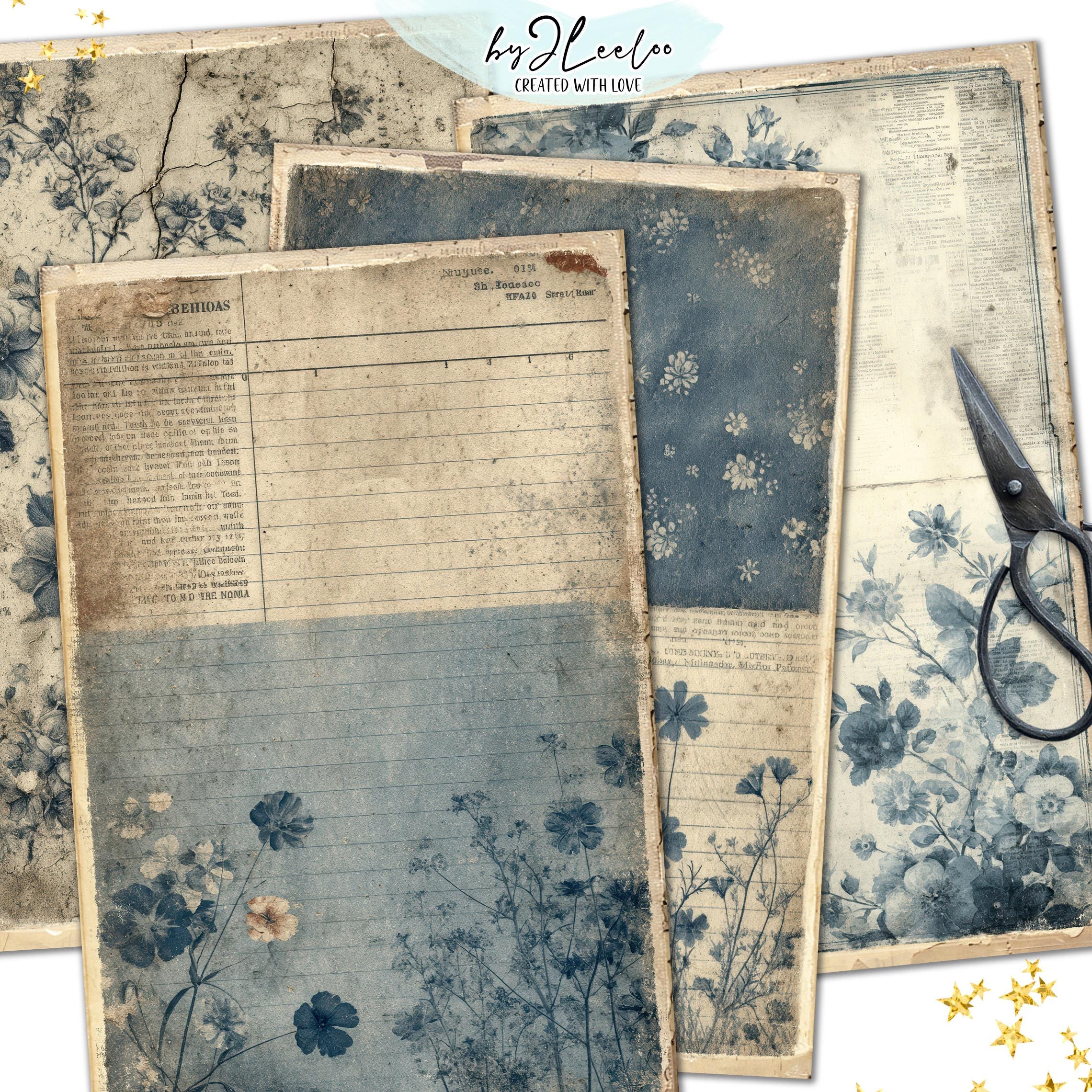 Searching for a soft, elegant foundation for your junk journal creations? Dusty BLUE PAPERS is here to inspire! This printable kit features beautifully aged textures, antique florals, and subtle grunge effects โ all wrapped in calming blue tones. Itโs the perfect set to add a vintage botanical flair to your pages.