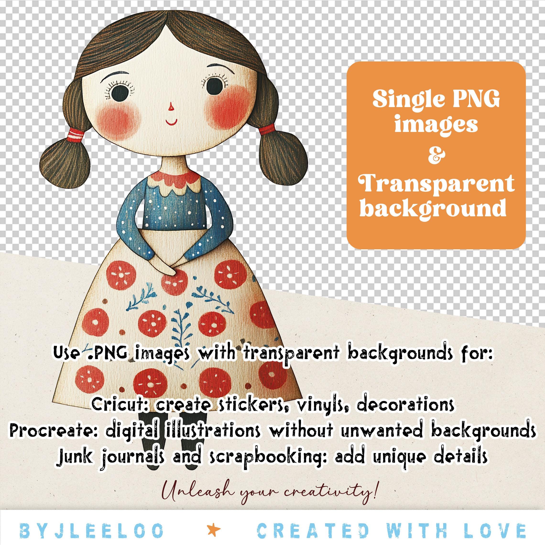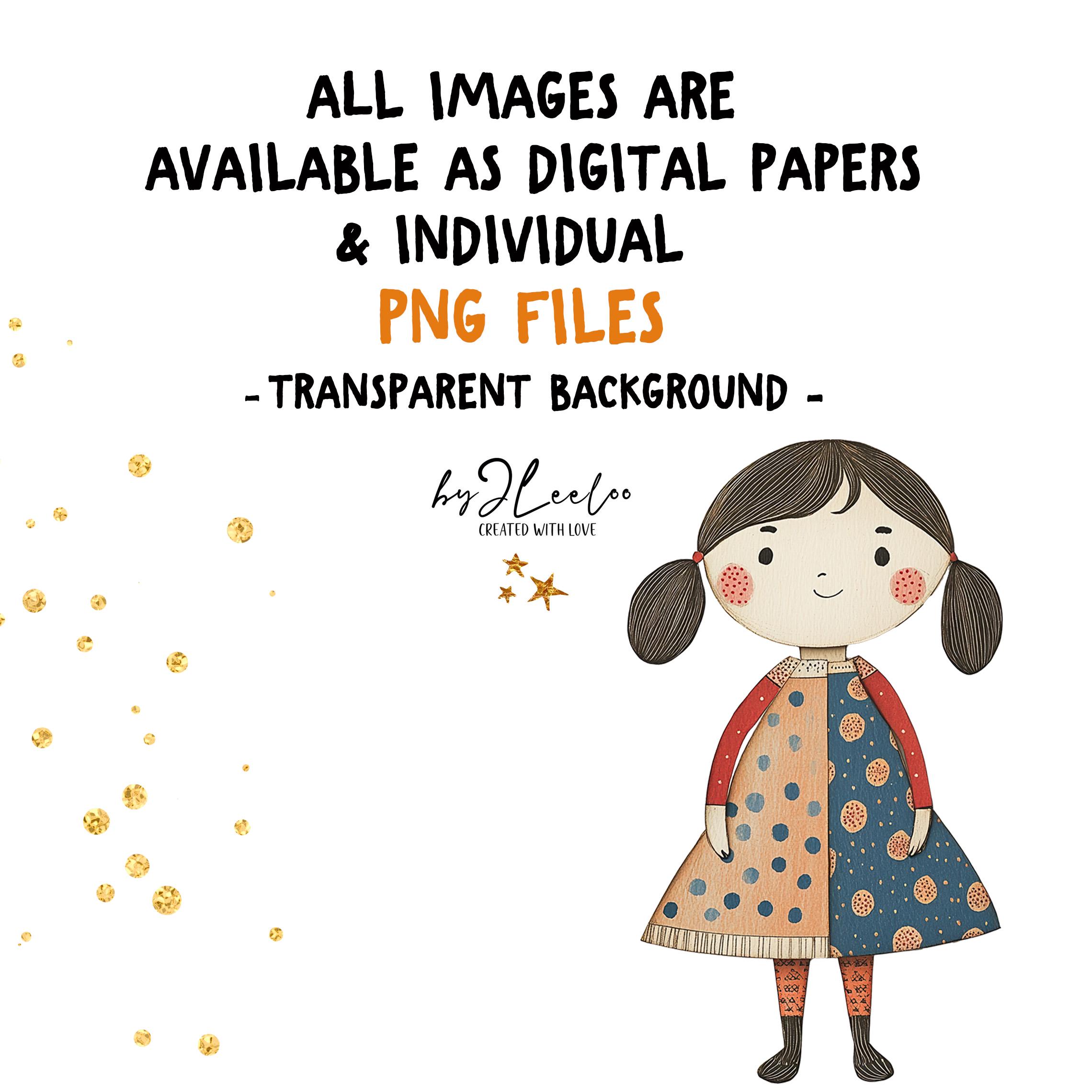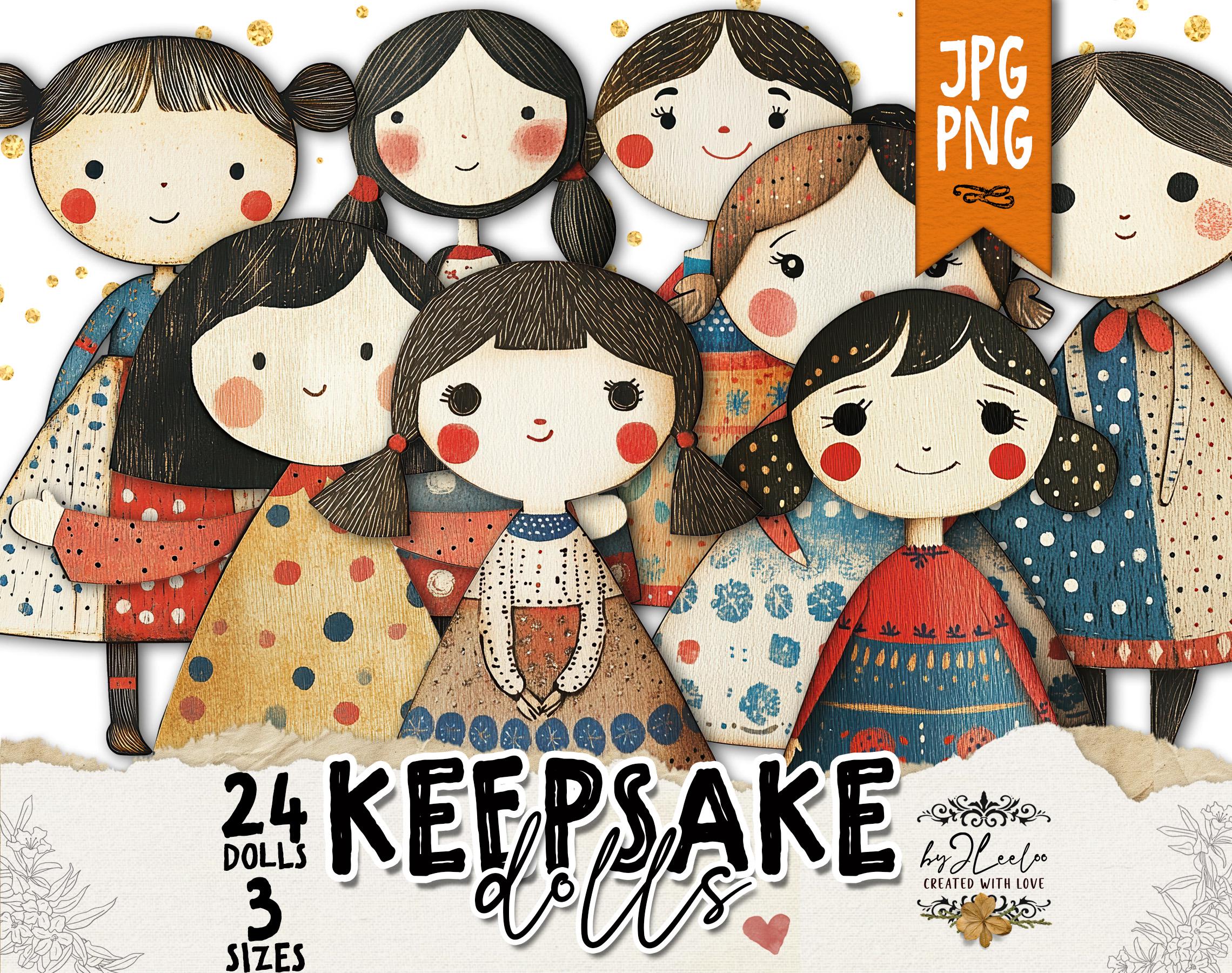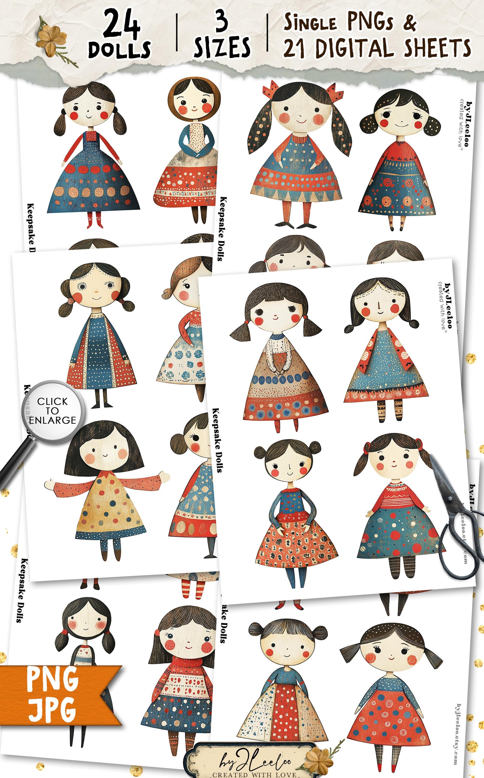 KEEPSAKE DOLLS - 24 Whimsical Paper Dolls in 3 Sizes | Vintage-Style Printable Clipart | Png + Jpg | Junk Journal & Craft Fussy Cut | pp956