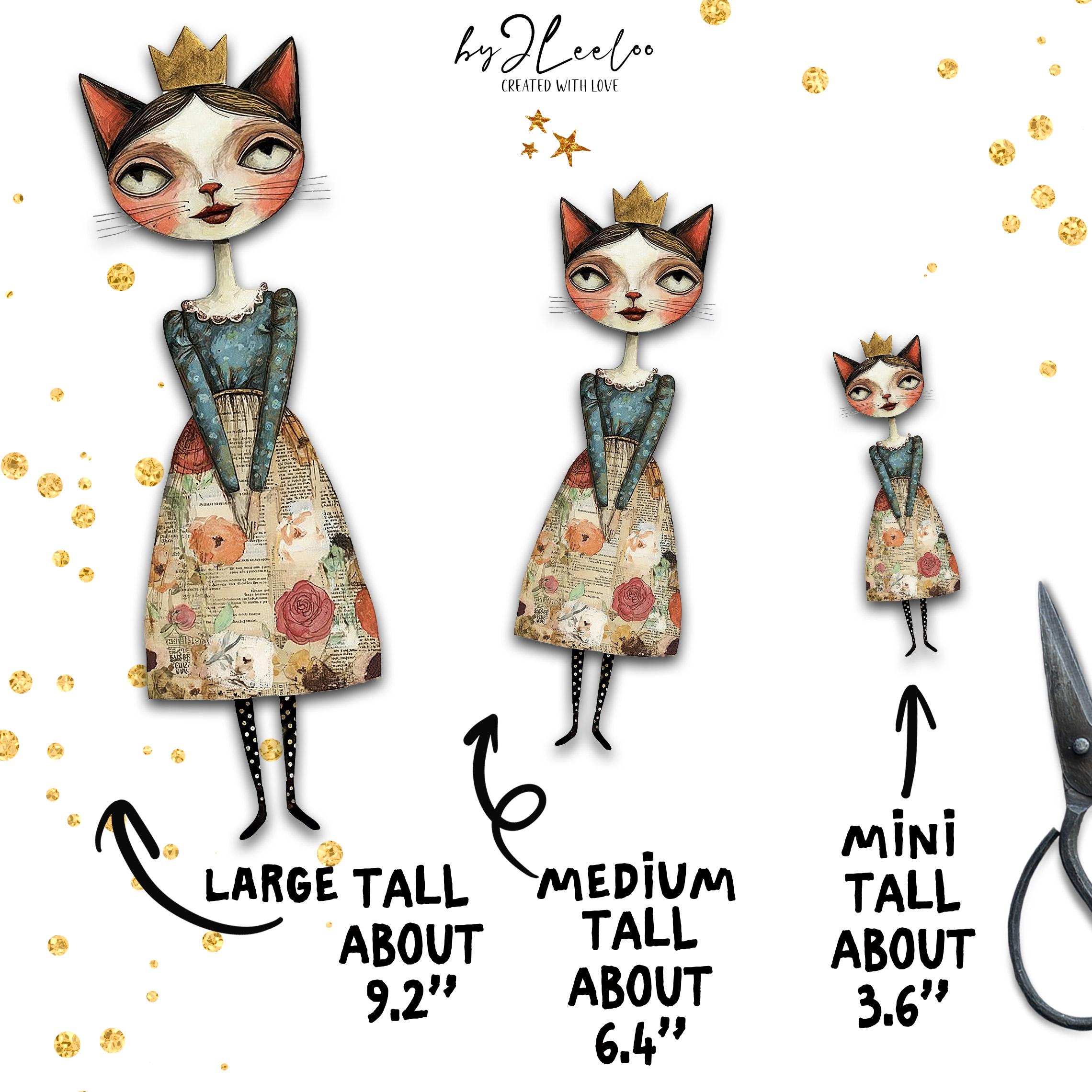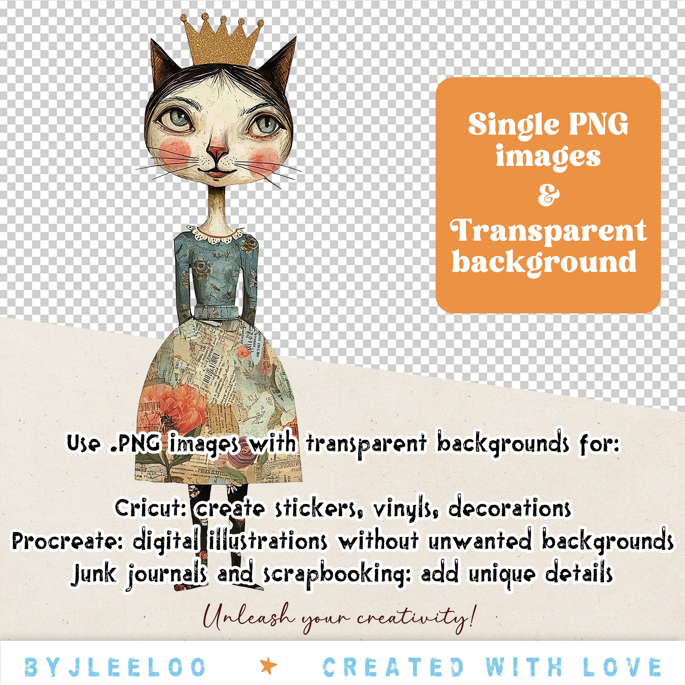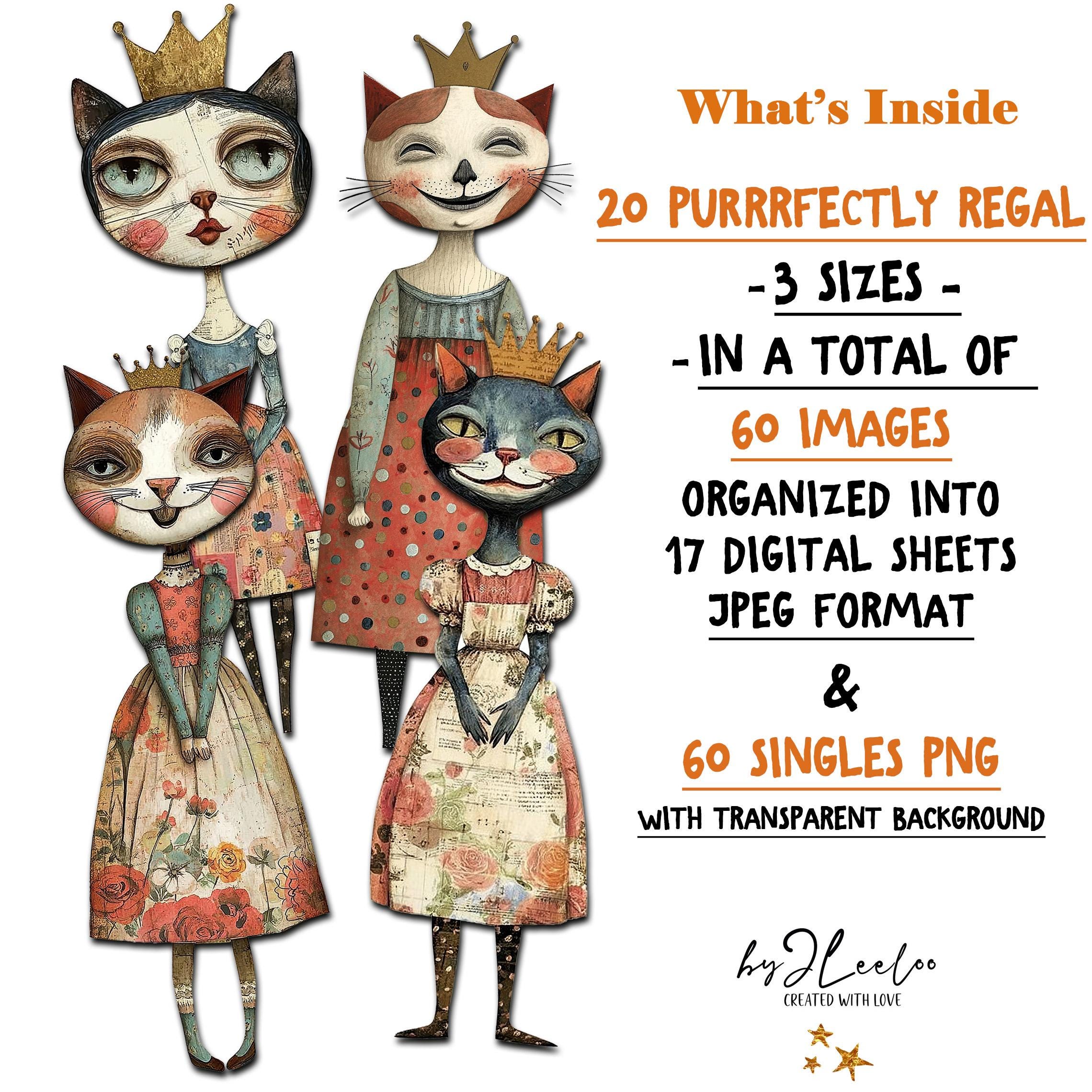 PURRRFECTLY REGAL - Printable PNG Paper Dolls for Junk Journal, Vintage Ephemera Clipart, Digital Scrapbooking, Fussy Cut for Cricut | pp960