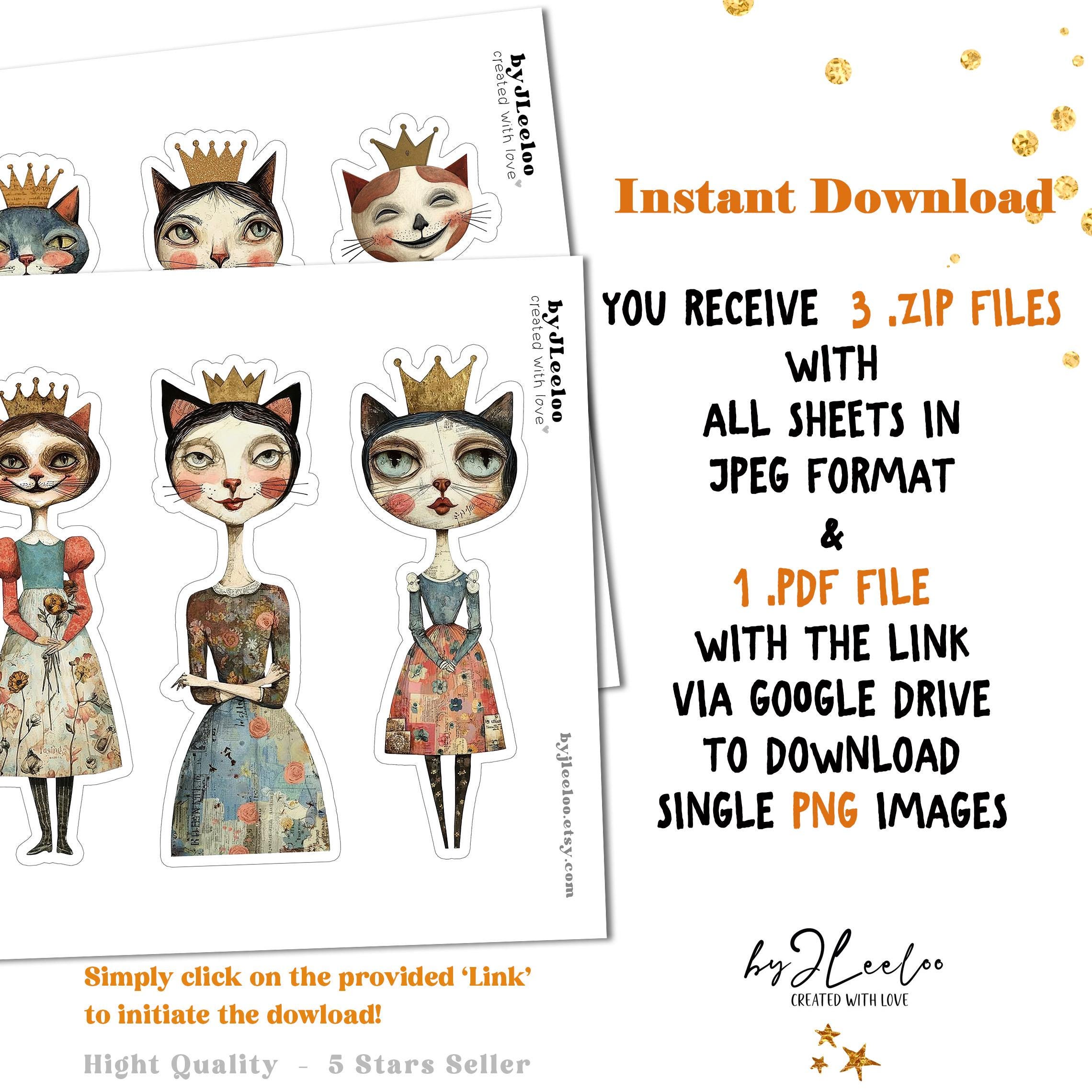Perfect for junk journals, scrapbooking, card making, fussy cutting, and adding a regal feline twist to all your creative projects!