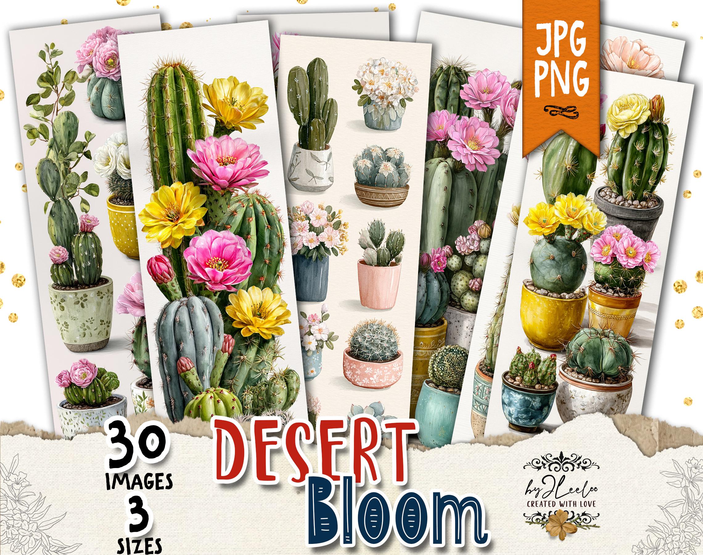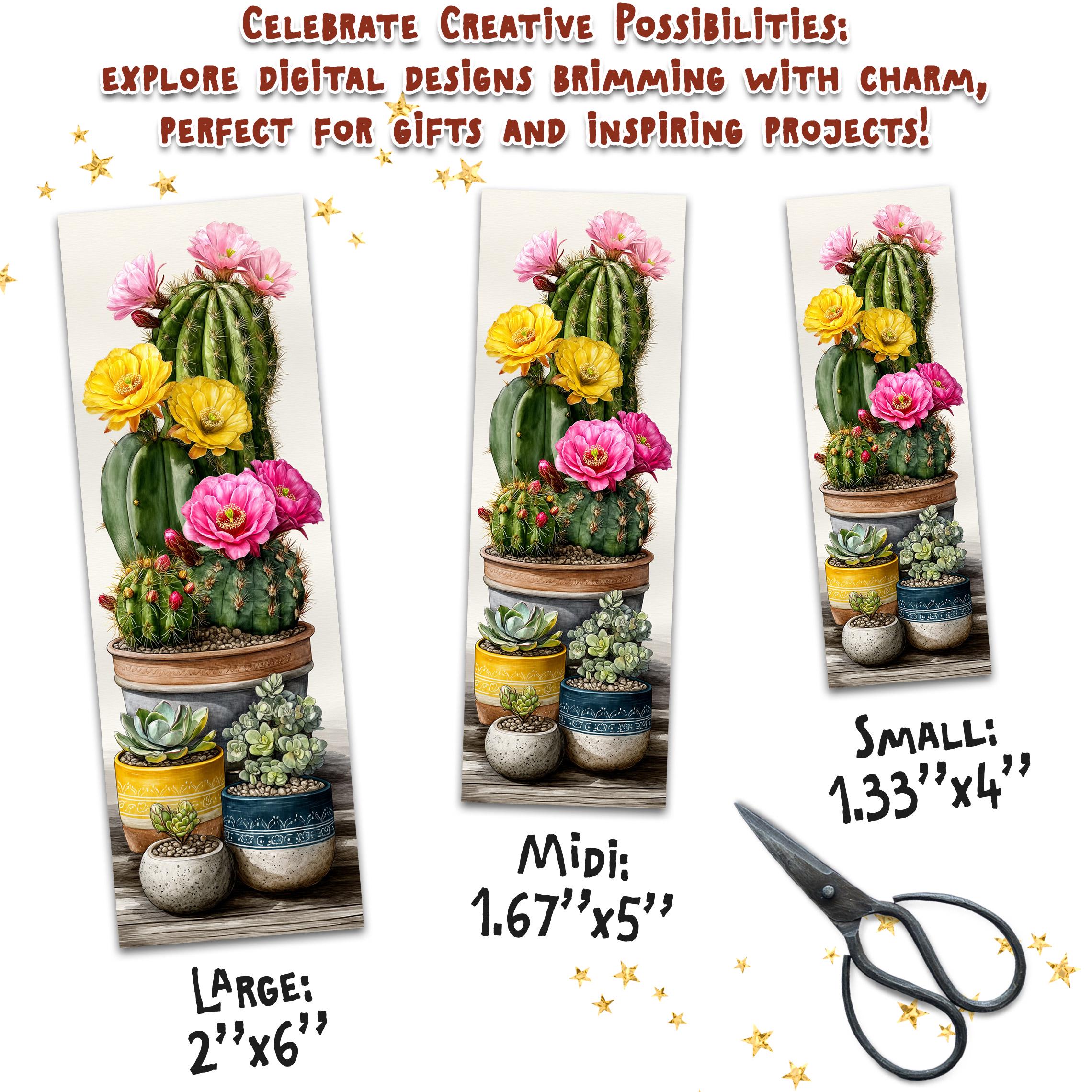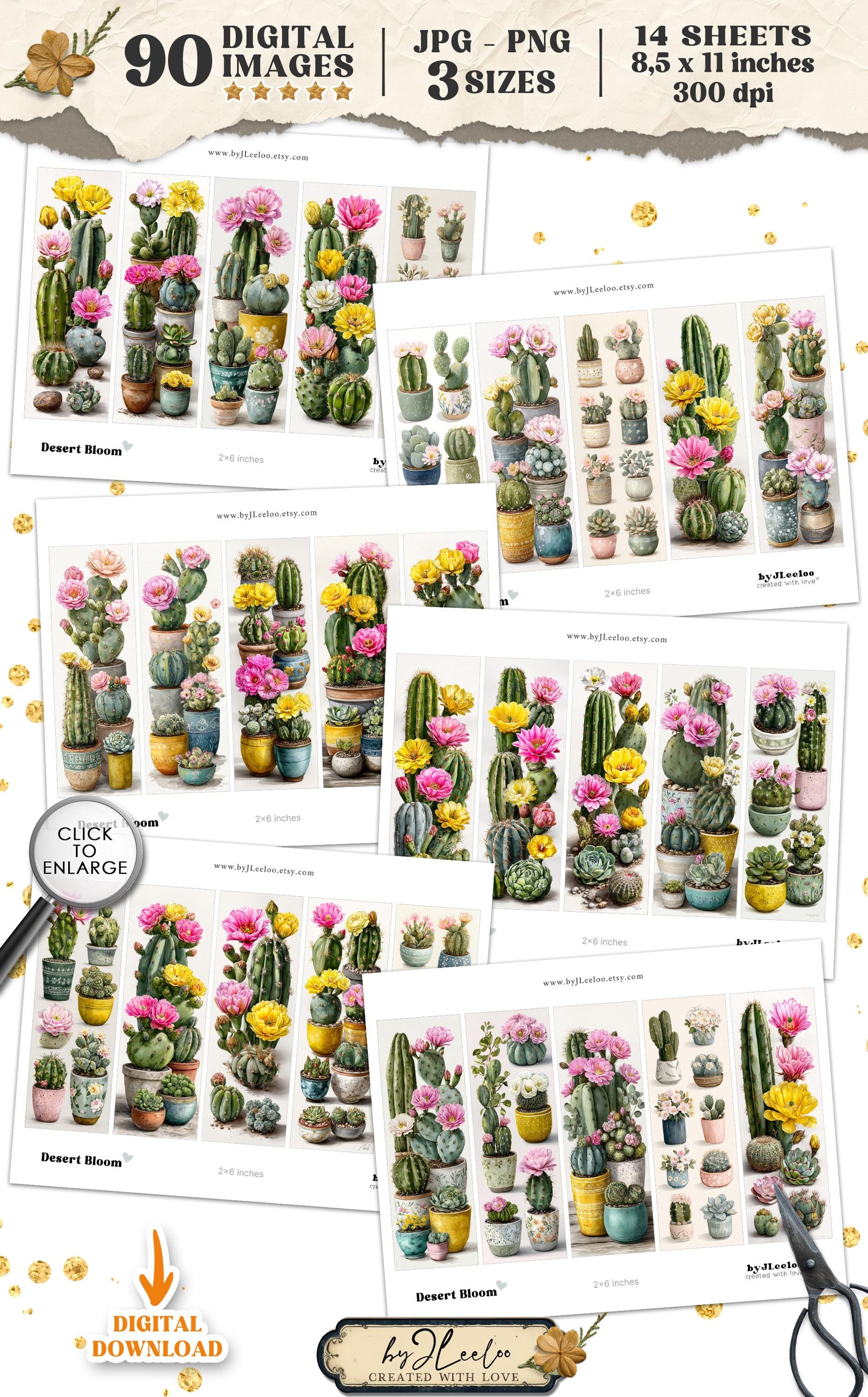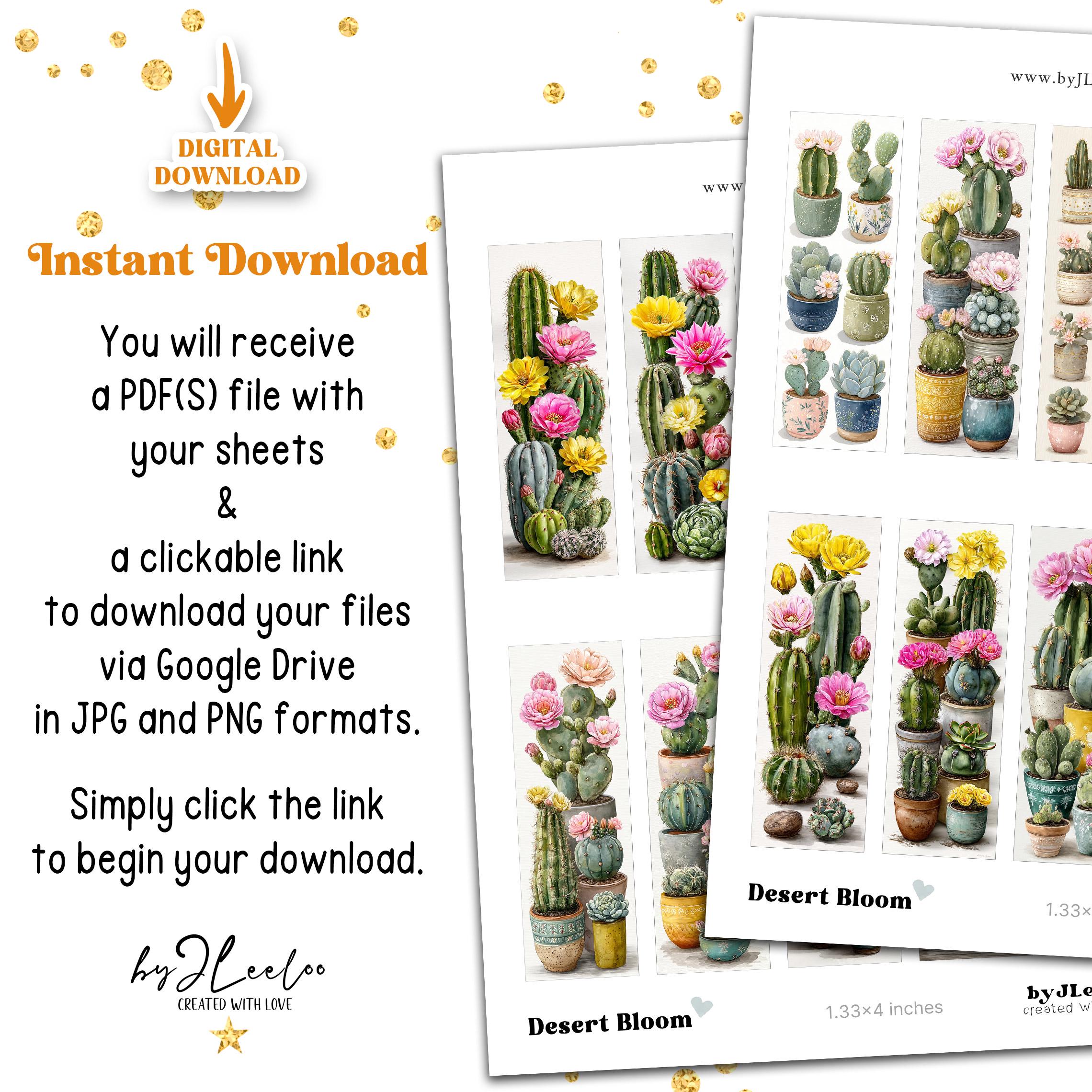 DESERT BLOOM โ 3 sizes PNG Jpeg bookmark 6x2 | Nature Cacti Card making supplies | Digital label tag printable junk journal | bm132