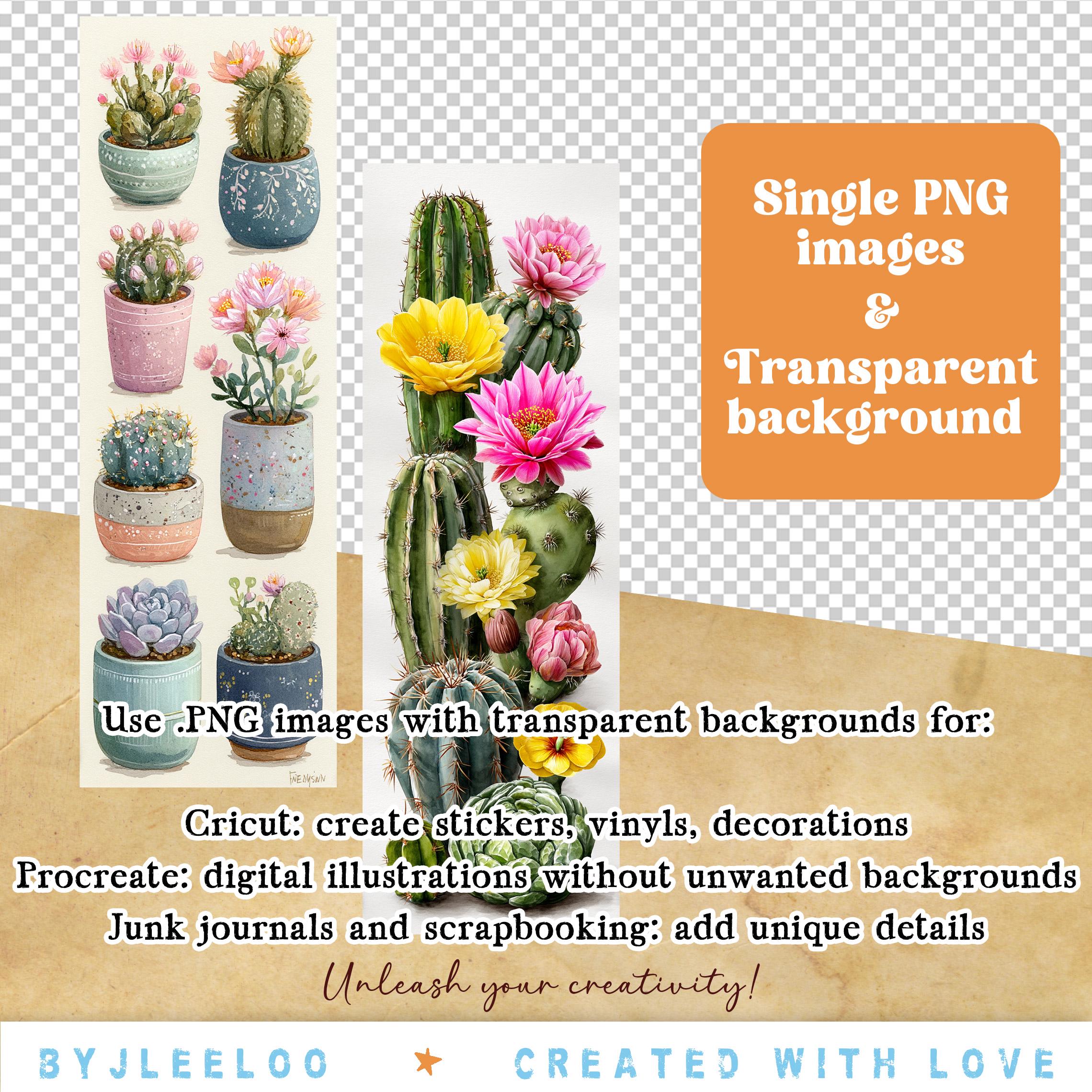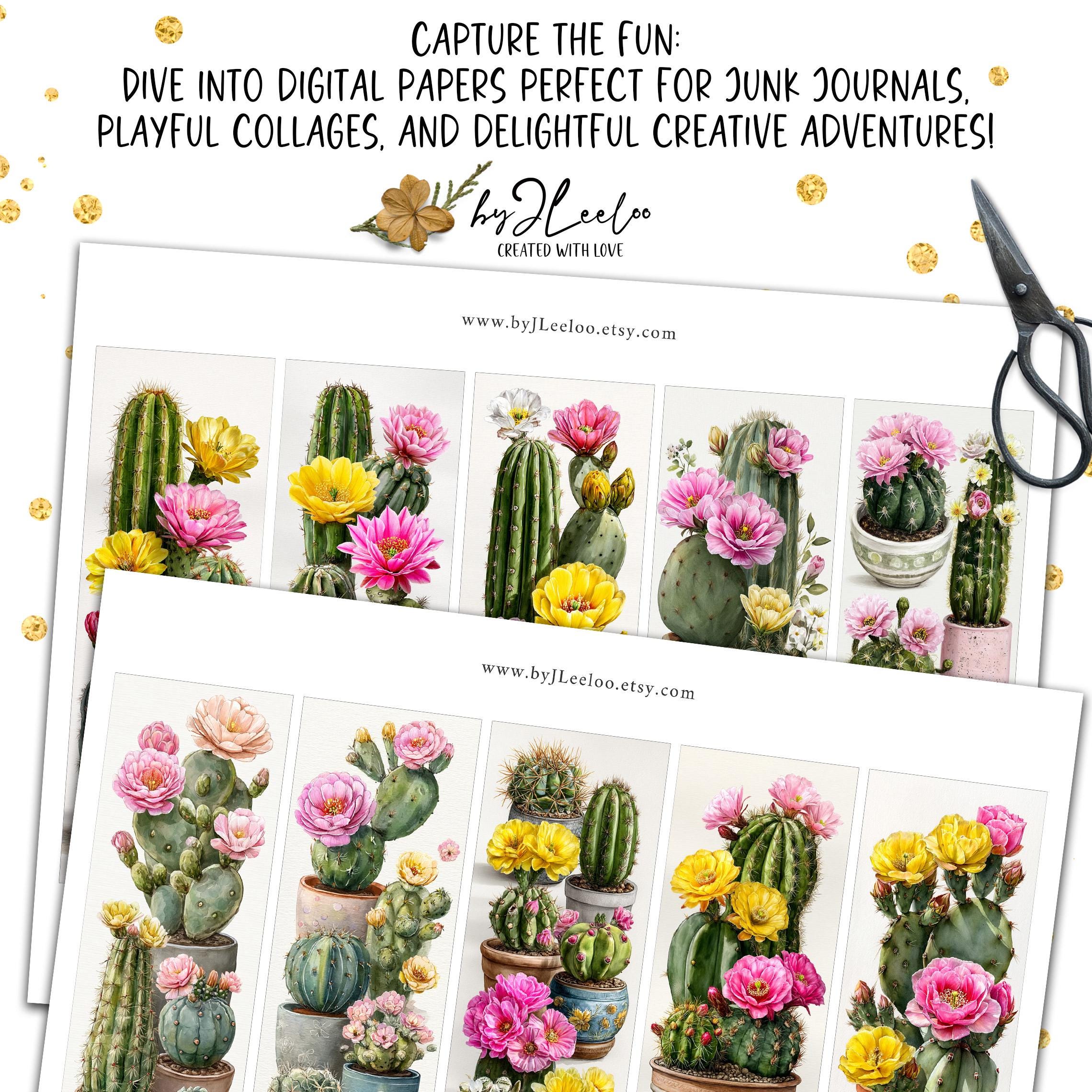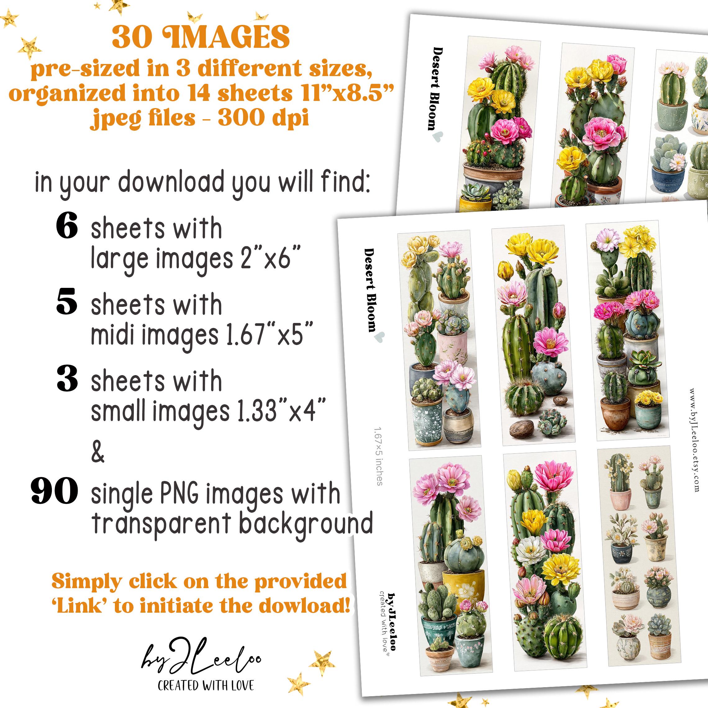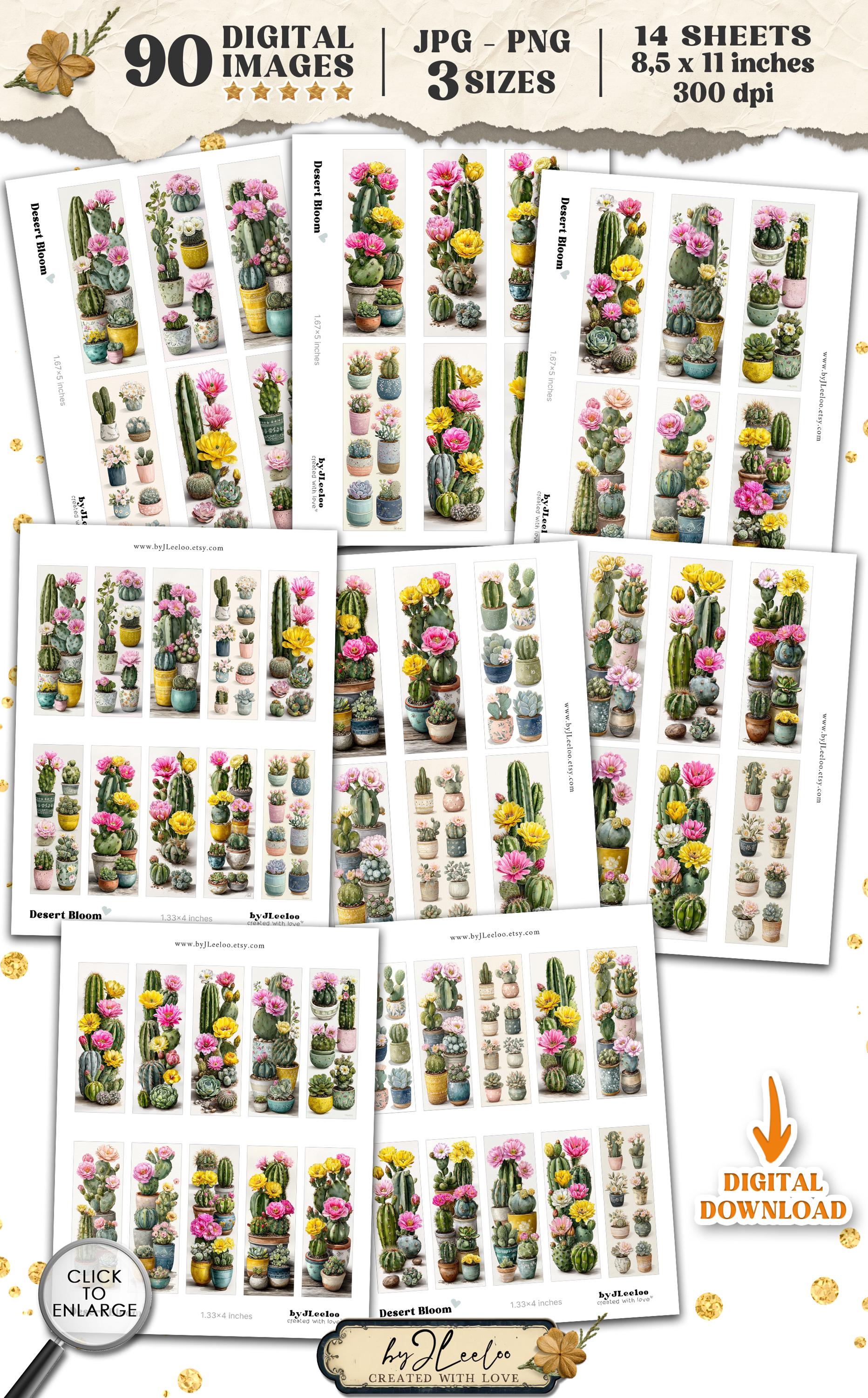 DESERT BLOOM โ 3 sizes PNG Jpeg bookmark 6x2 | Nature Cacti Card making supplies | Digital label tag printable junk journal | bm132