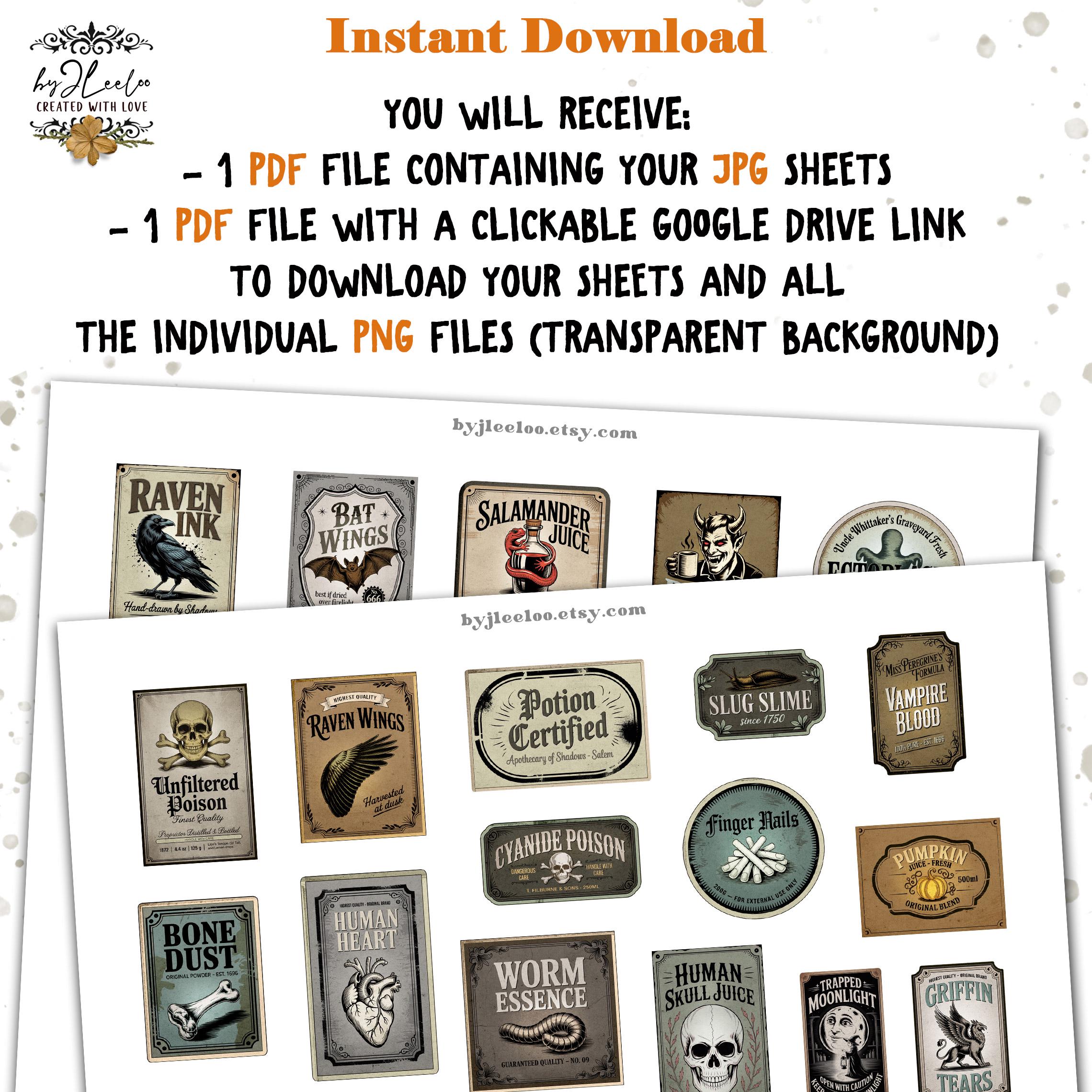 Whether you're making potion bottles, decorating spellbooks, or giving your junk journal a haunted upgrade, this collection is your perfect companion for spooky season crafting.