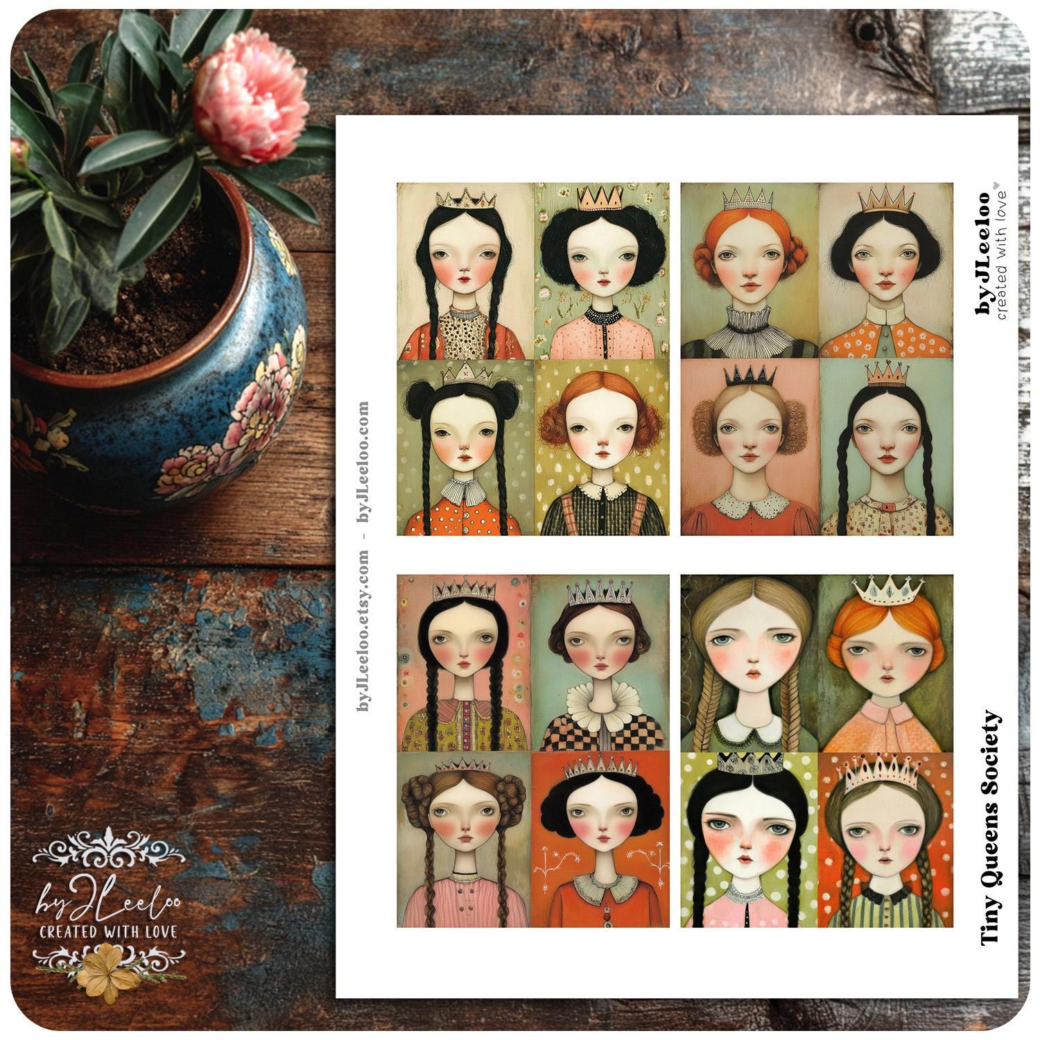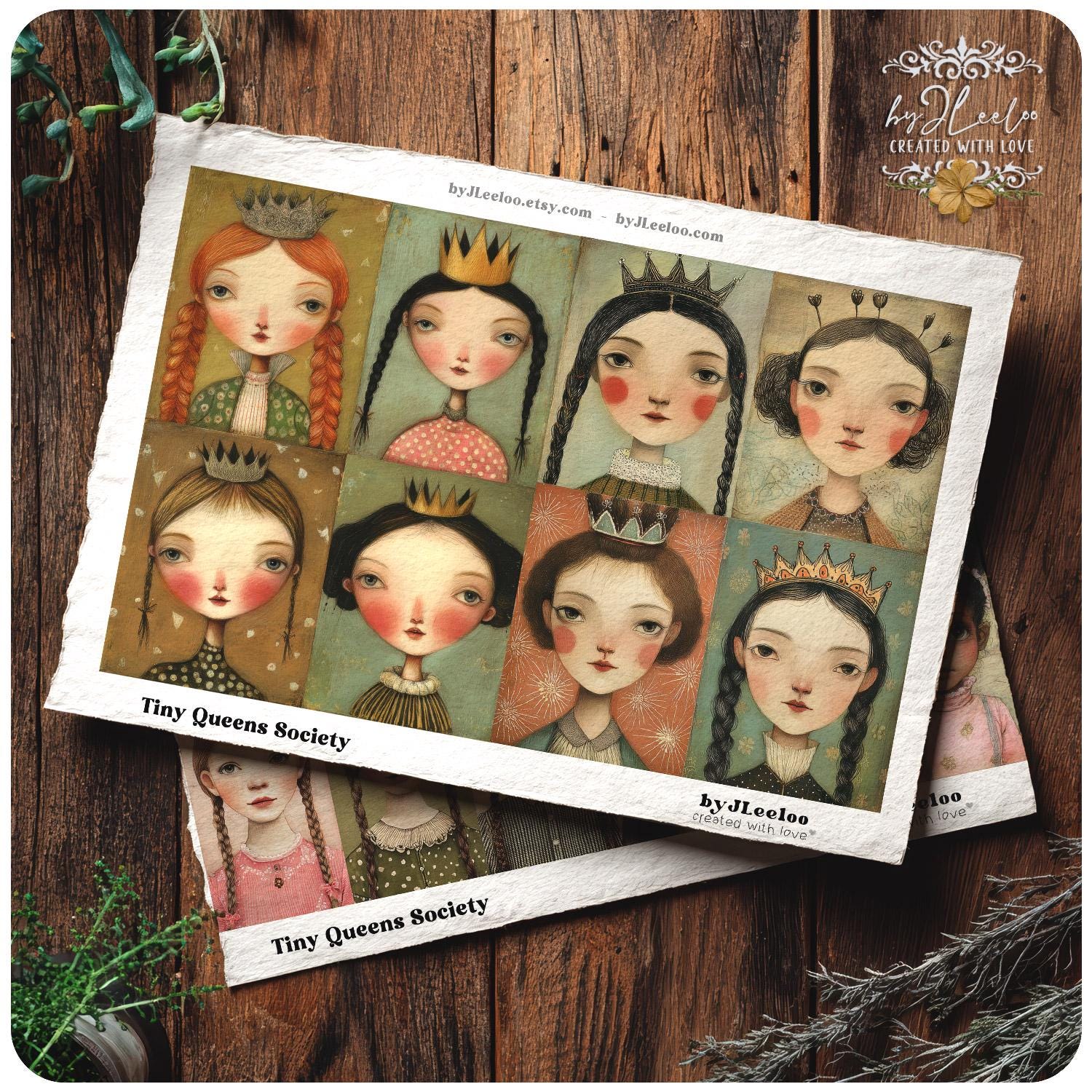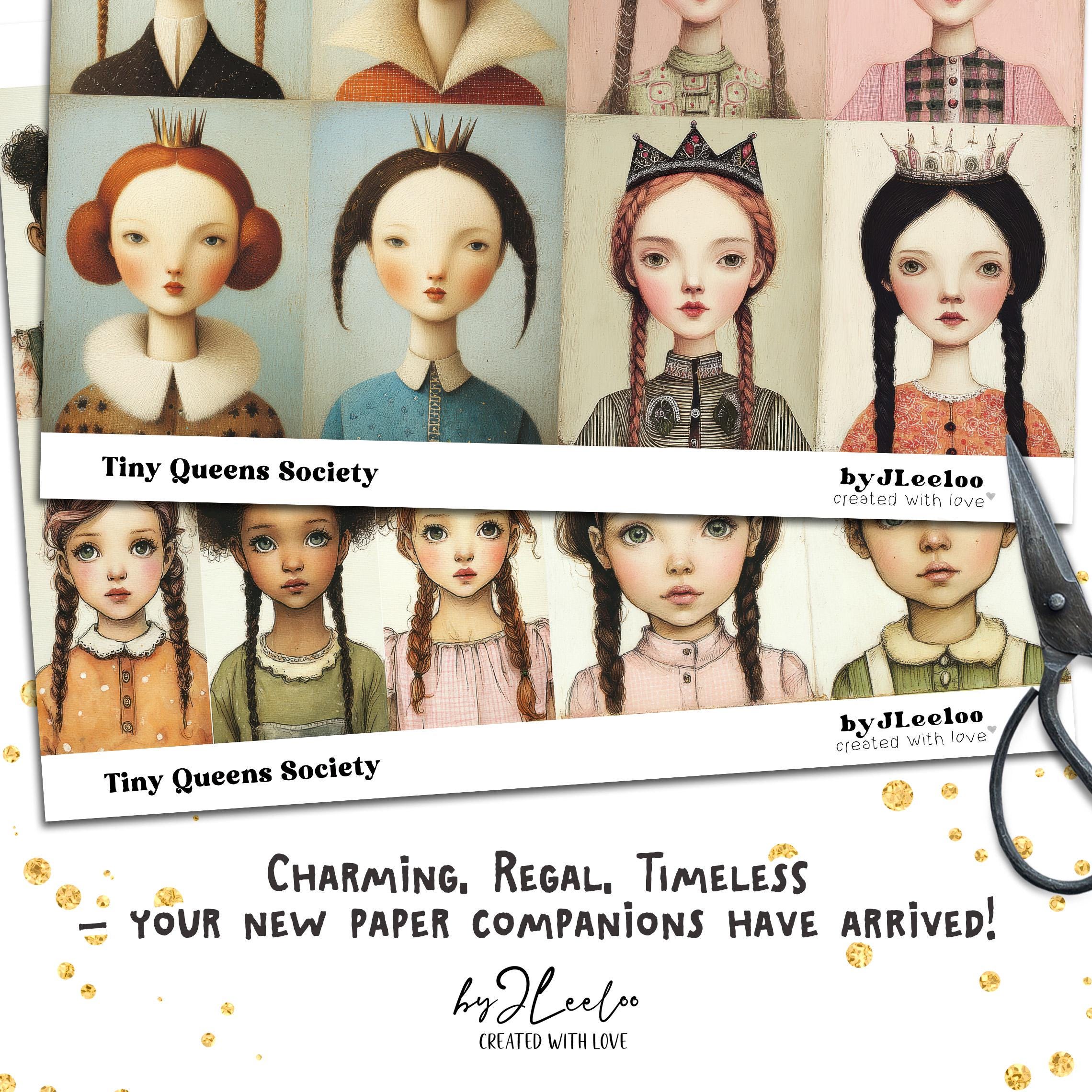 TINY QUEENS PORTRAITS โ Printable painting illustration Sheets | Junk Journal Ephemera | jpg Collage Pages for Scrapbooking & Crafts | cp043