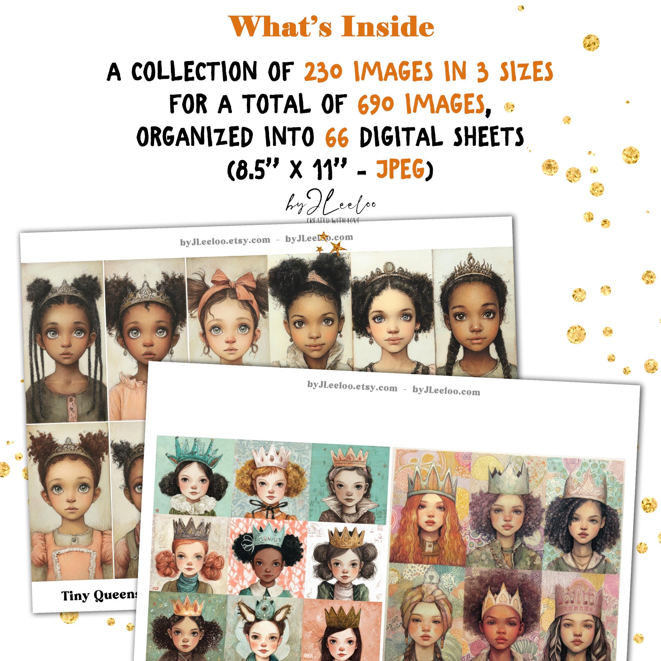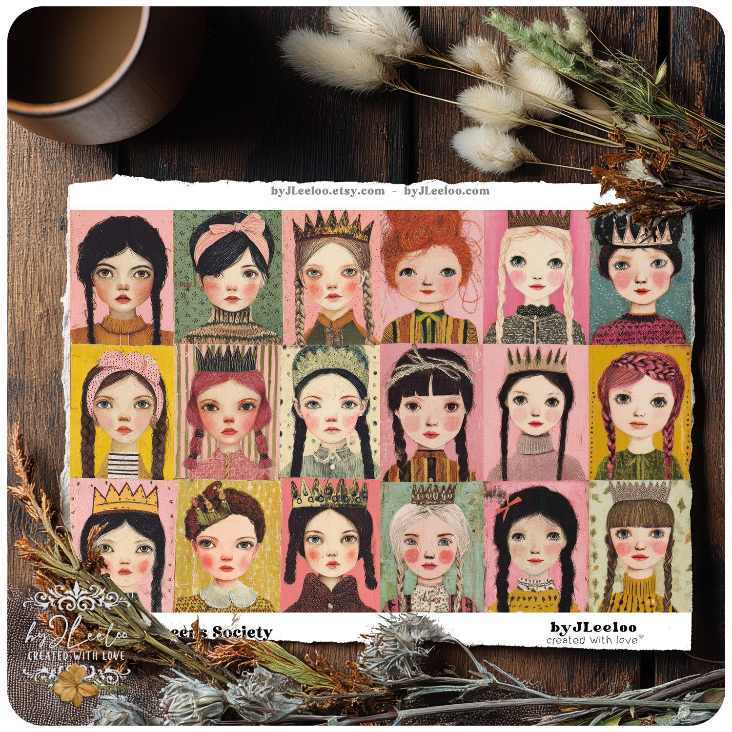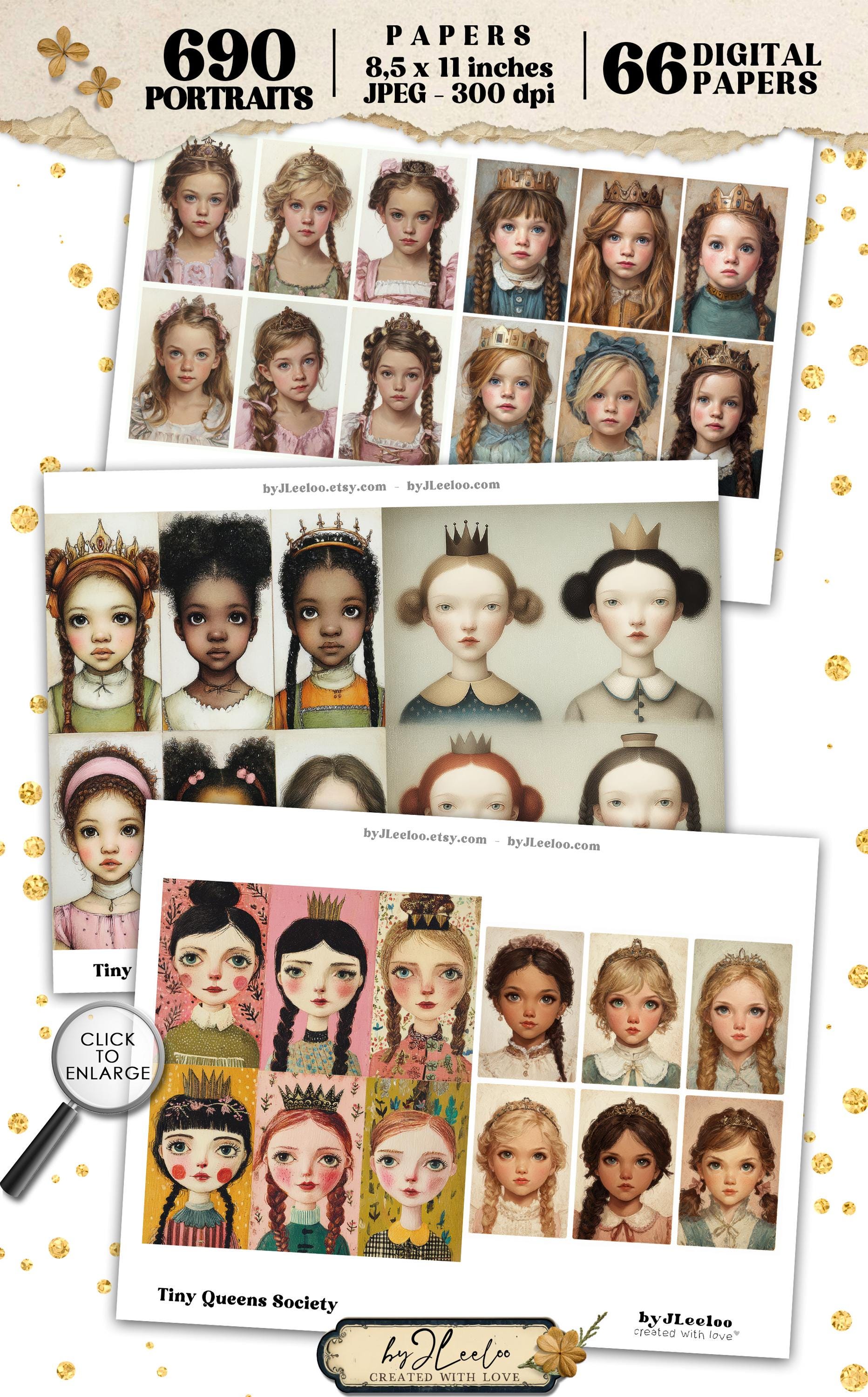 TINY QUEENS PORTRAITS โ Printable painting illustration Sheets | Junk Journal Ephemera | jpg Collage Pages for Scrapbooking & Crafts | cp043