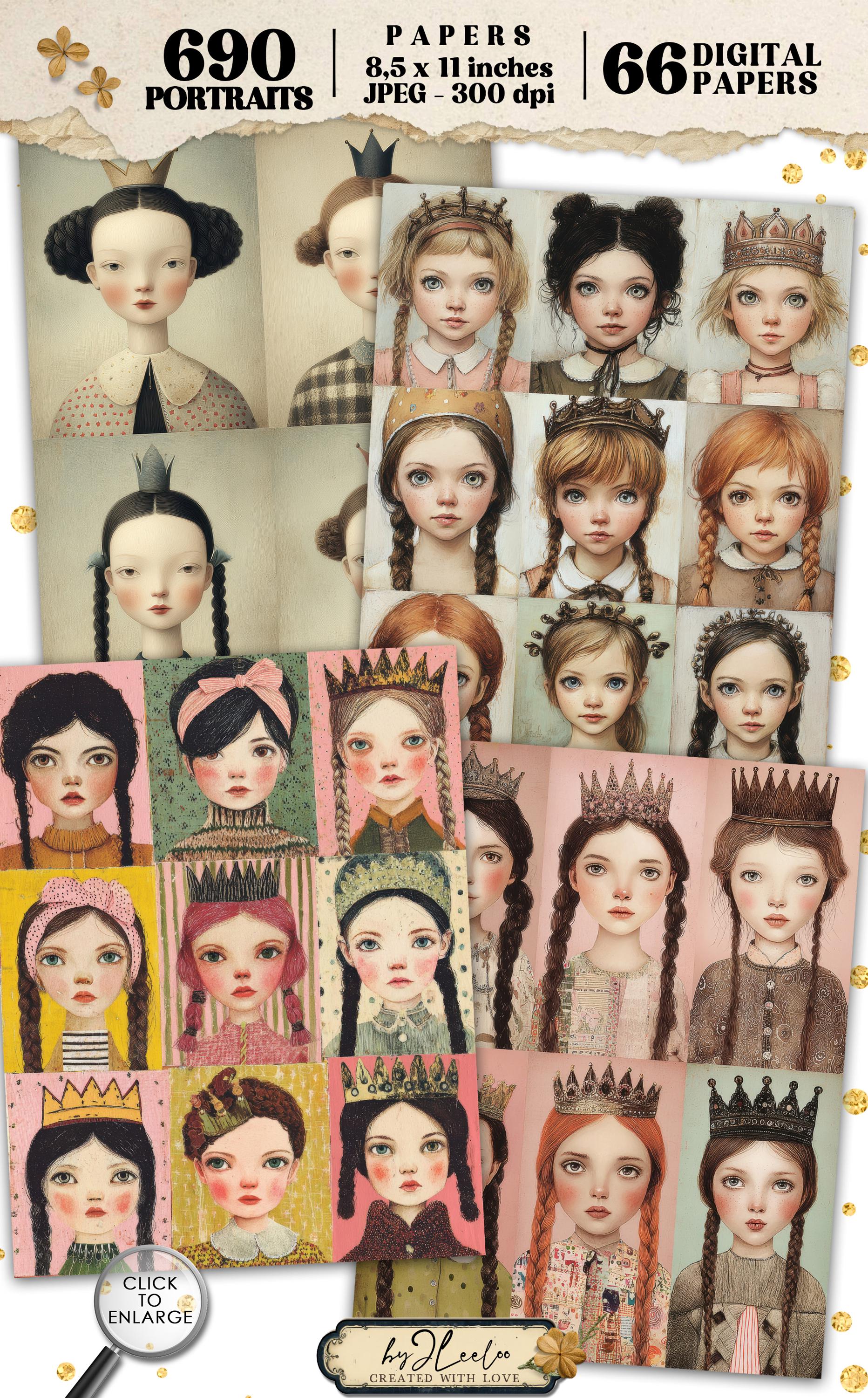 This digital collection includes 66 beautifully crafted JPEG sheets, featuring vintage-style paintings of little girls wearing crowns. Perfect for junk journals, scrapbooking, collage art, card making, and more โ these printable pages are designed to inspire and enchant.