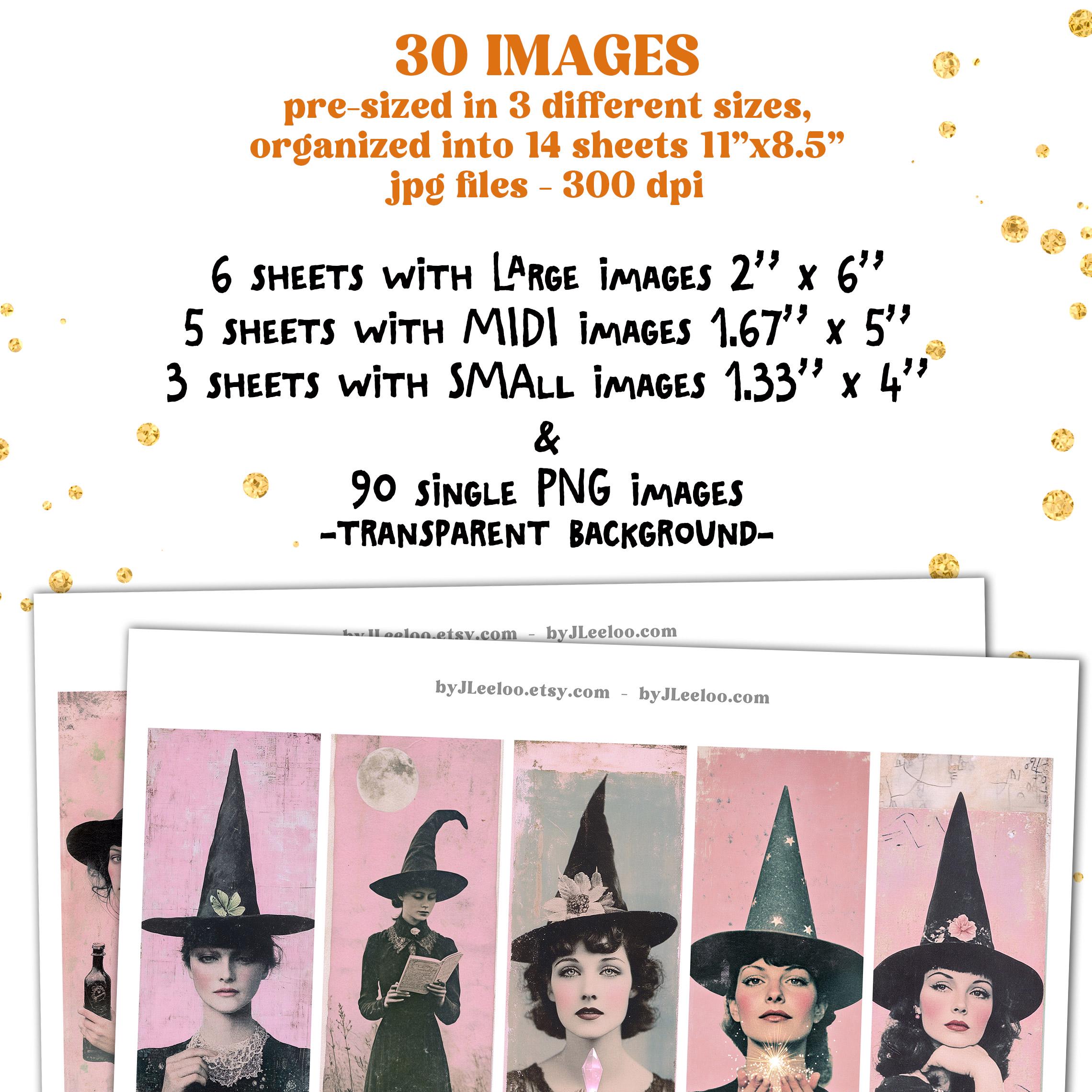 Ideal for junk journals, Halloween crafts, spellbooks, or any creation that needs a sprinkle of vintage glamour and a wink of wickedness.