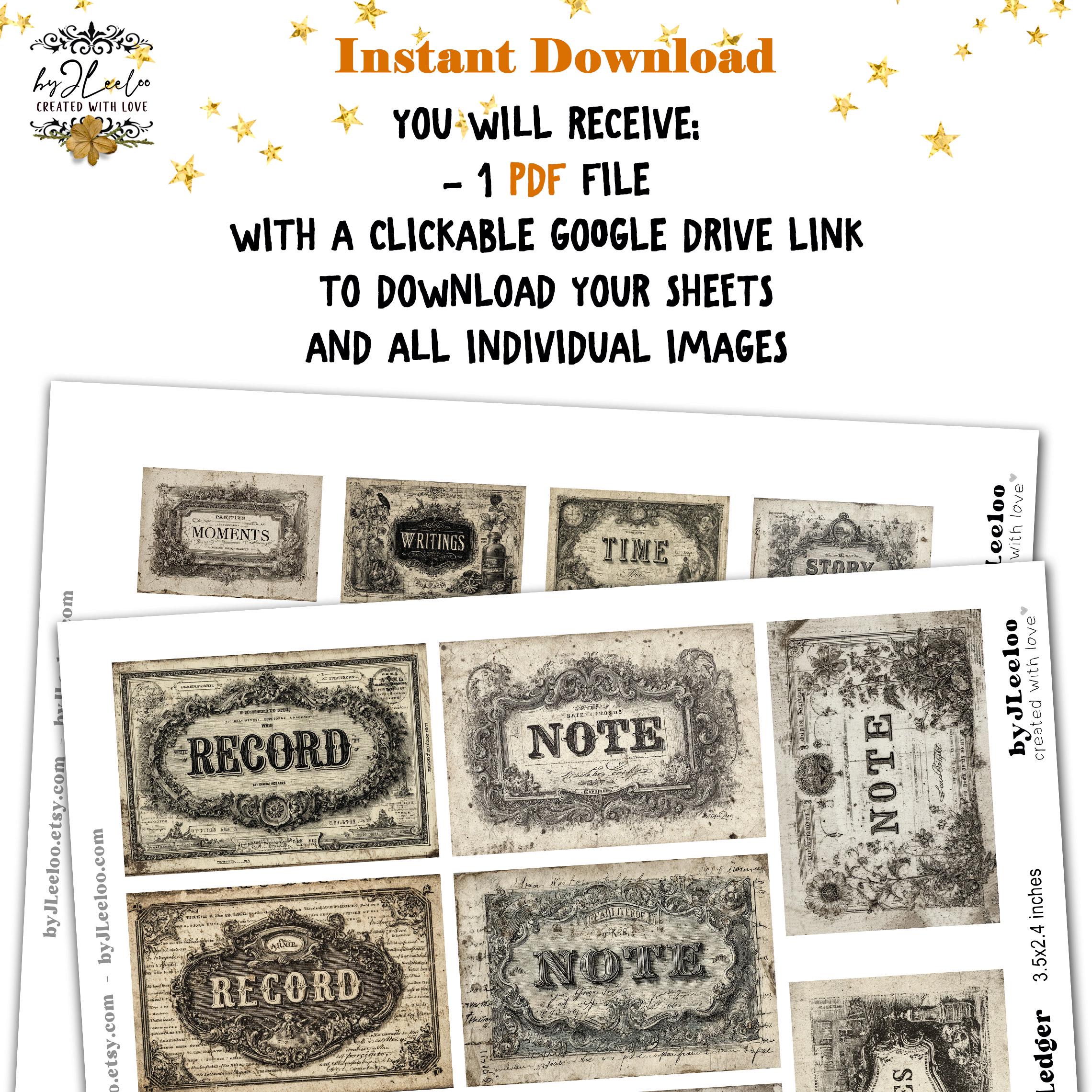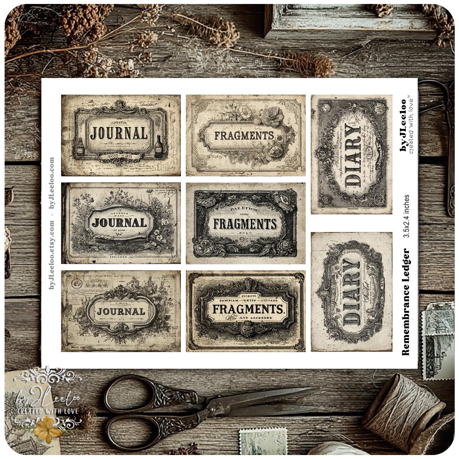 REMEMBRANCE LEDGER β Printable Victorian Vintage Labels | Junk Journal Ephemera | Collage Tags for Scrapbooking & Crafts | Digital tl346
