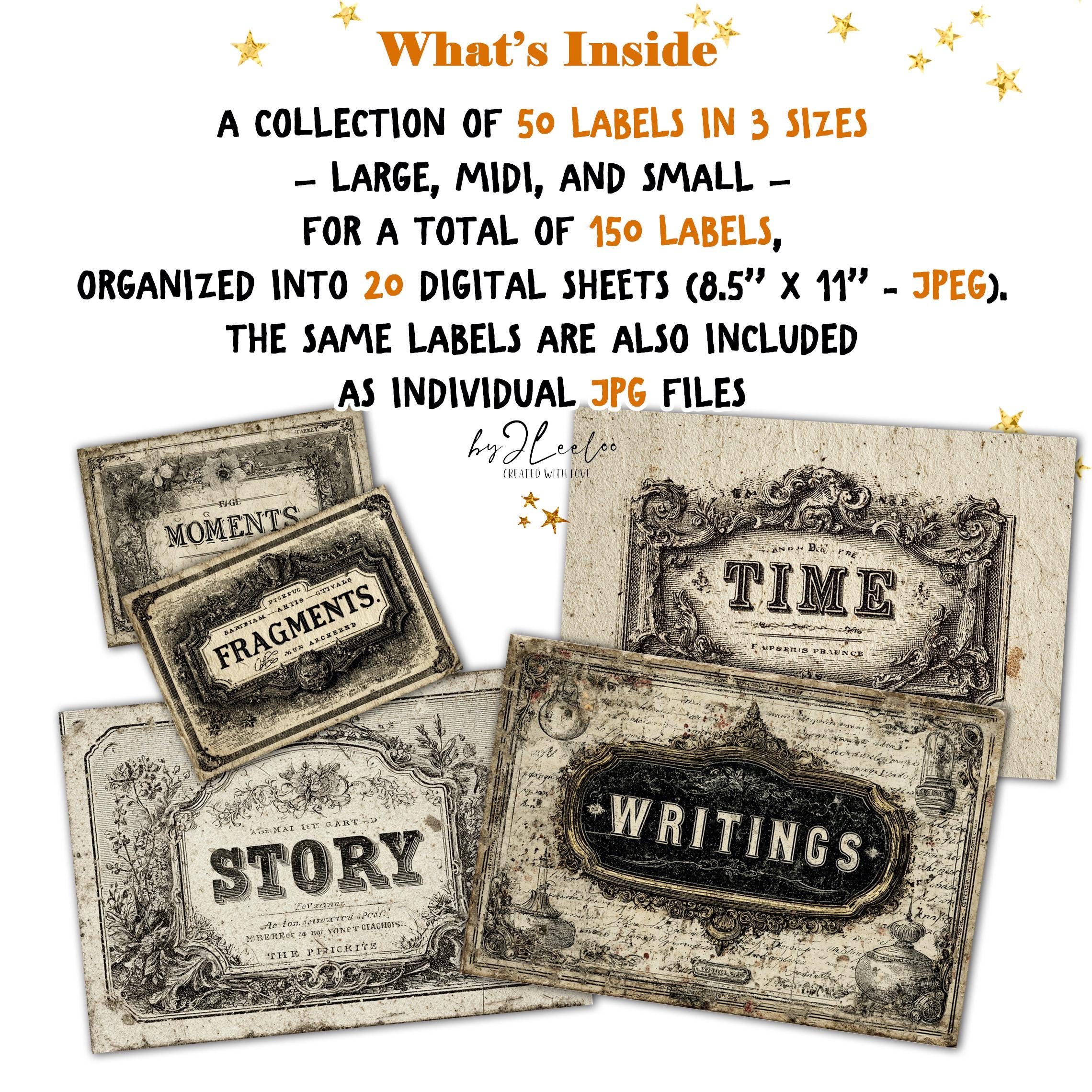 βΊ A set of 50 unique vintage labels, each provided in 3 sizes: