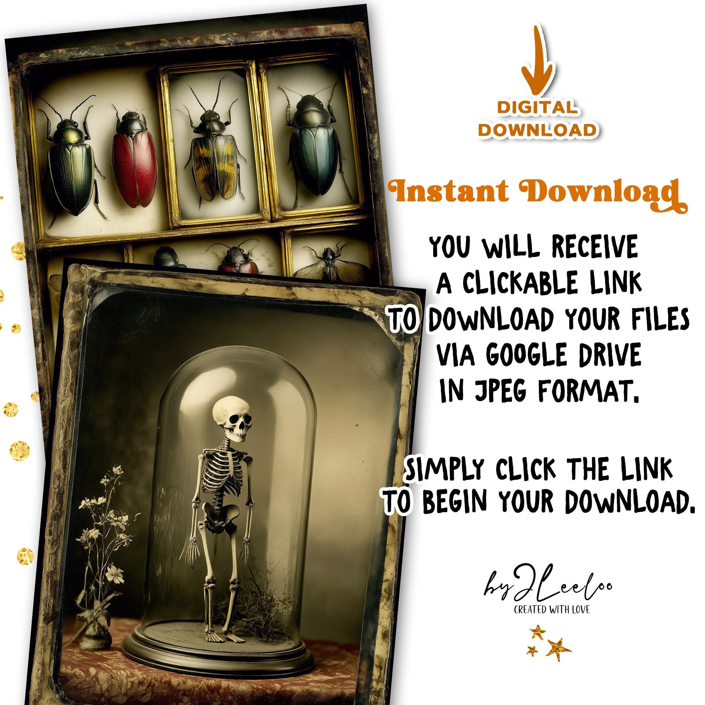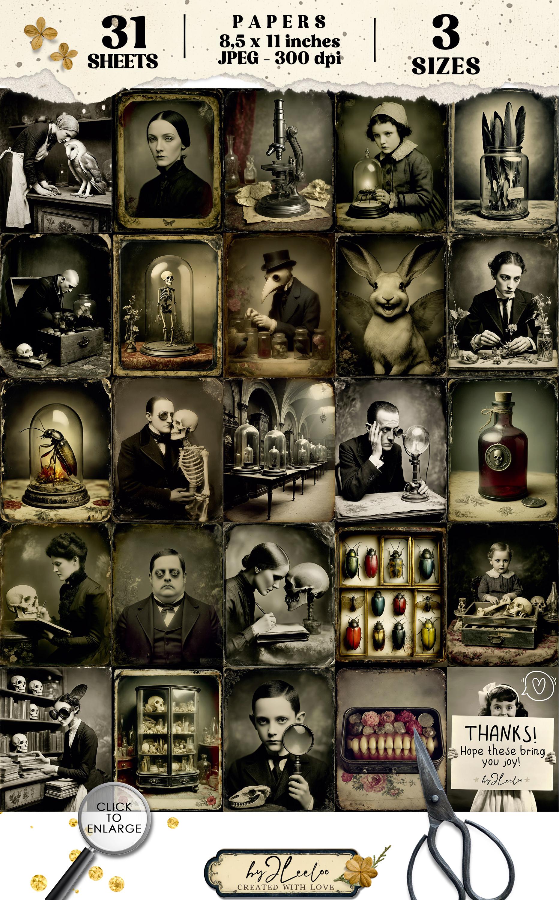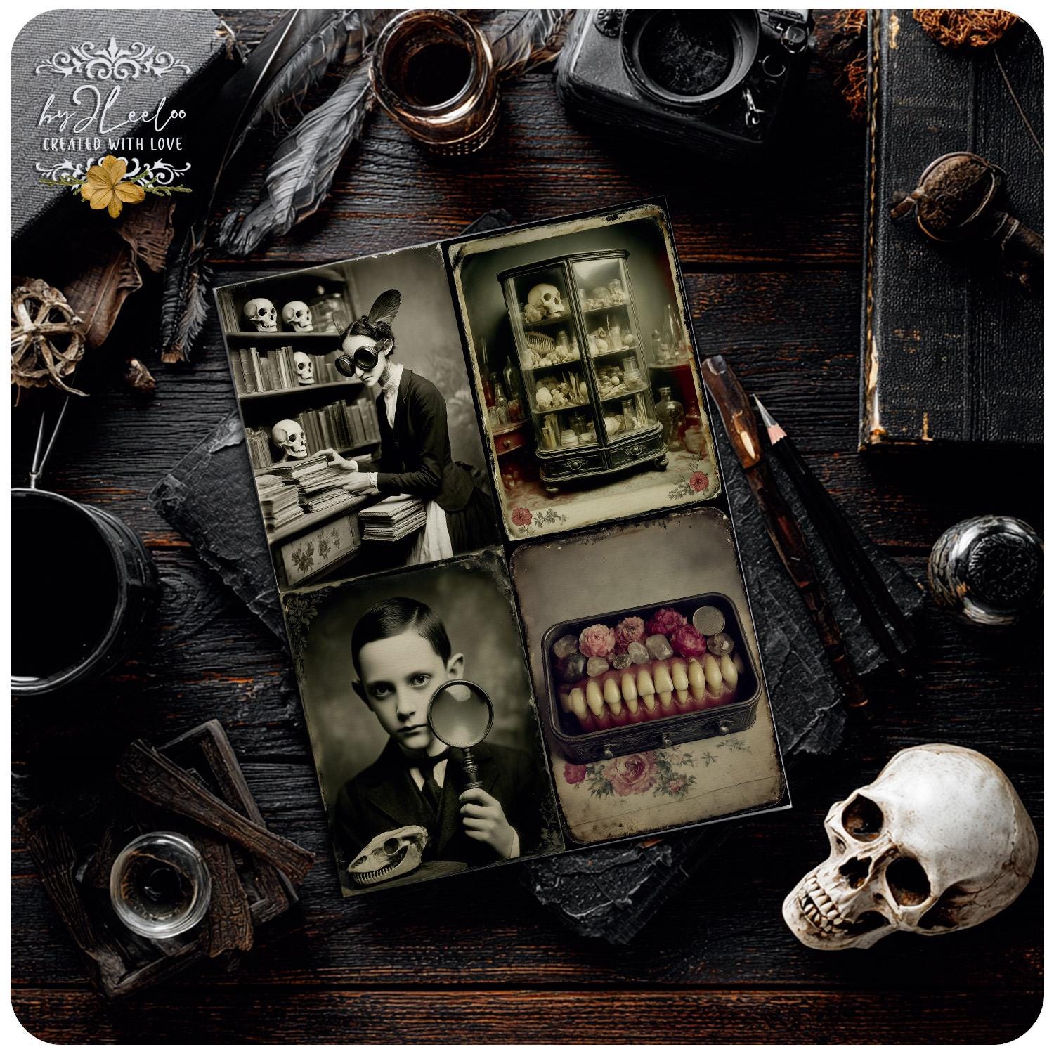Step into a cabinet of curiosities where peculiar relics, skeletal whispers, and odd treasures await. Perfect for crafters who love a touch of mystery and Victorian eccentricity in their junk journals, collages, and scrapbook pages.