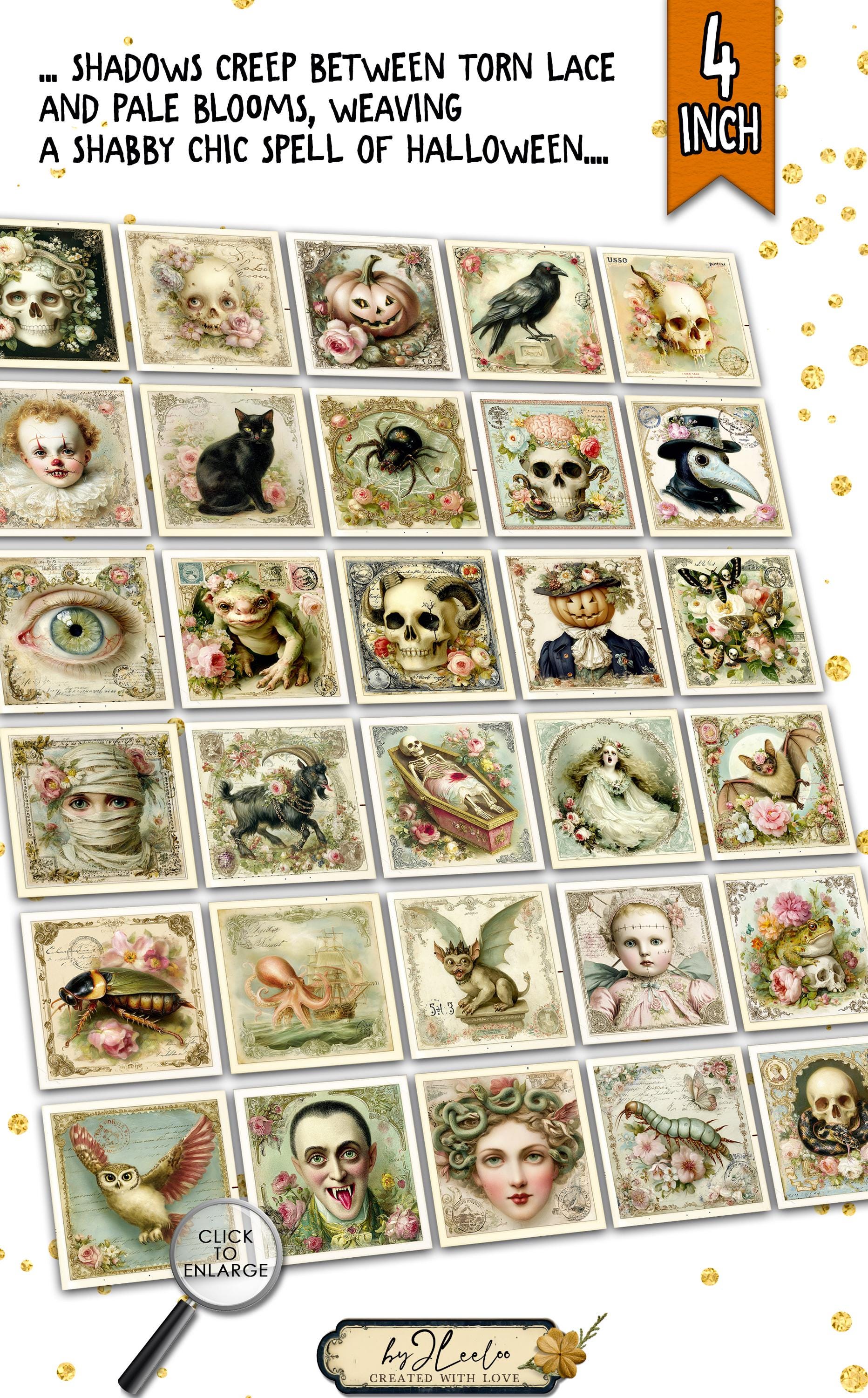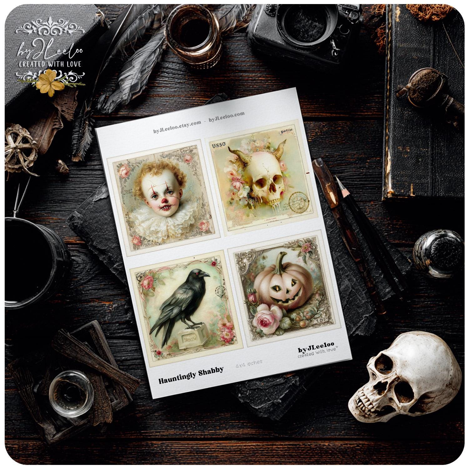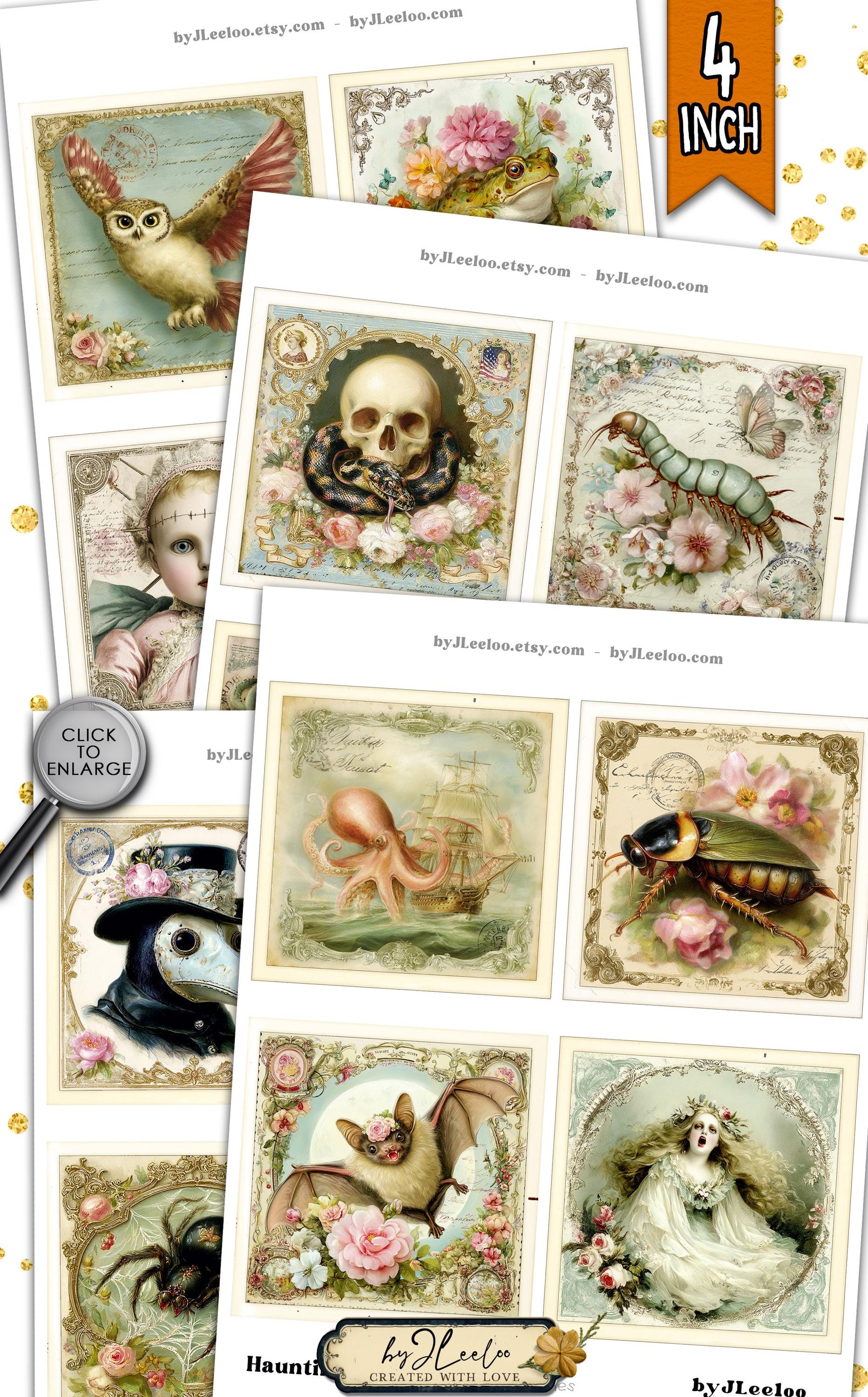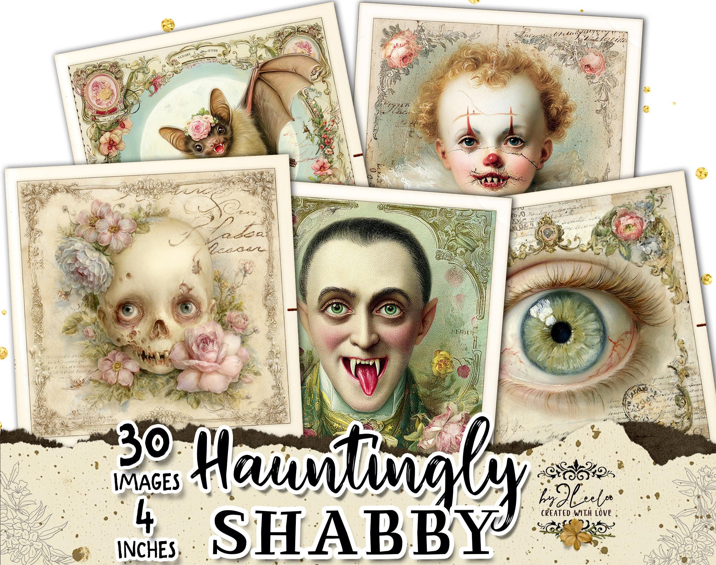HAUNTINGLY SHABBY Chic Macabre Ephemera, 30 Coaster Creepy Vintage Images for Junk Journals & Crafts | Party printable scrapbooking | qu633