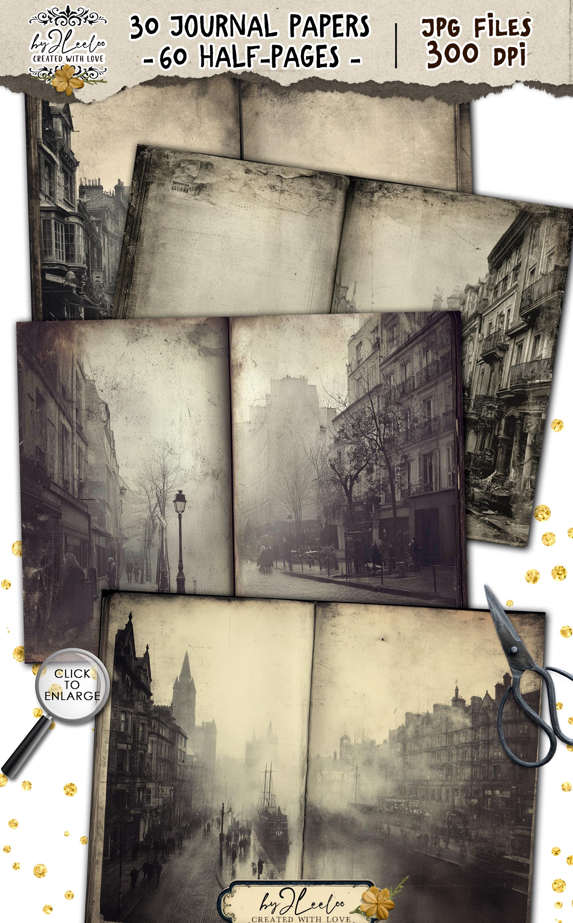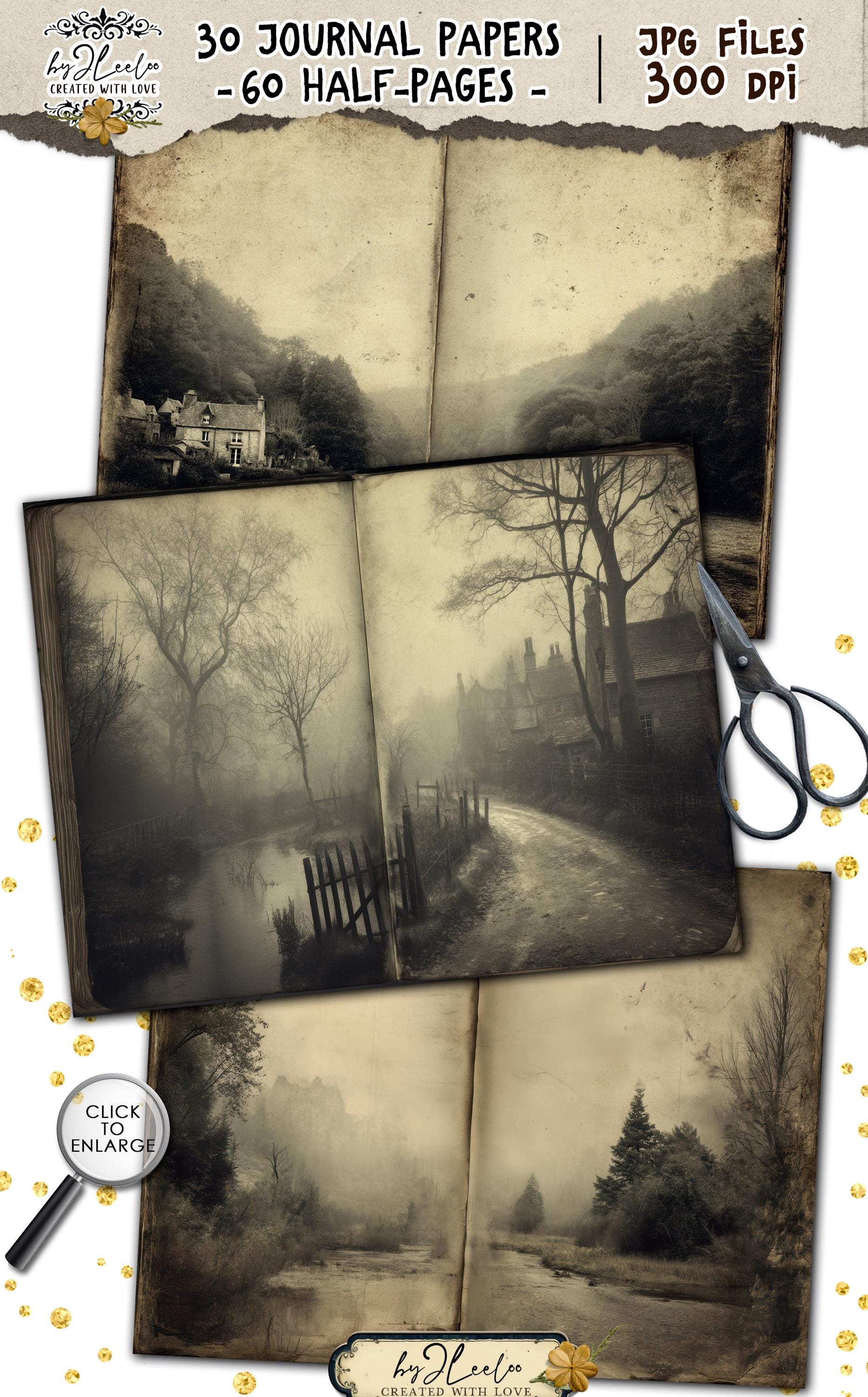 FOGBOUND CHRONICLES Pages – 30 Victorian Double Spreads | Misty Vintage City Ephemera for Junk Journals, Scrapbooking & Creative Crafts | CU | pp978
