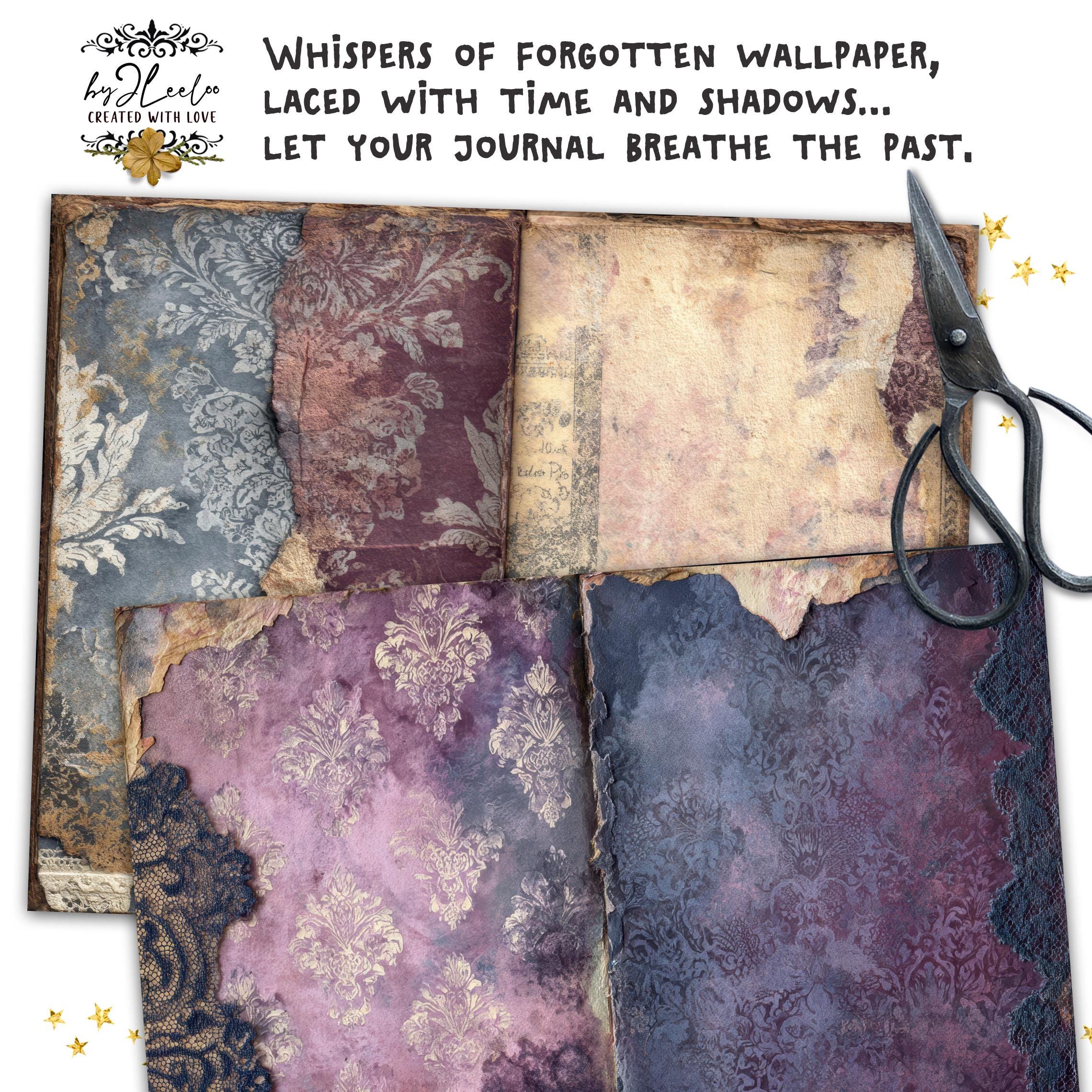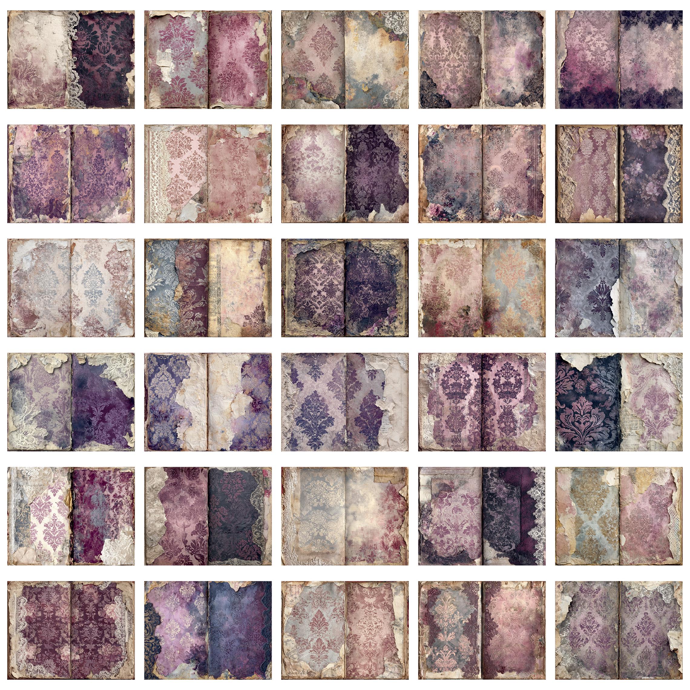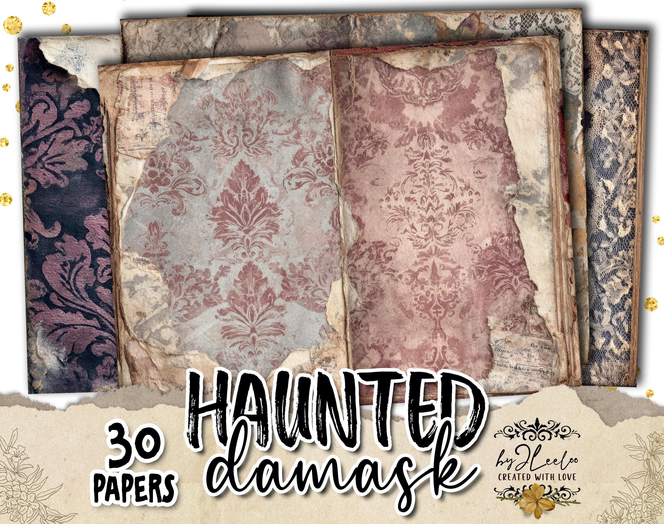 HAUNTED DAMASK – 30 Gothic Purple Vintage Papers | Decayed Faded Damask Wallpaper Texture | Shabby Junk Journals Craft Scrapbooking | pp982