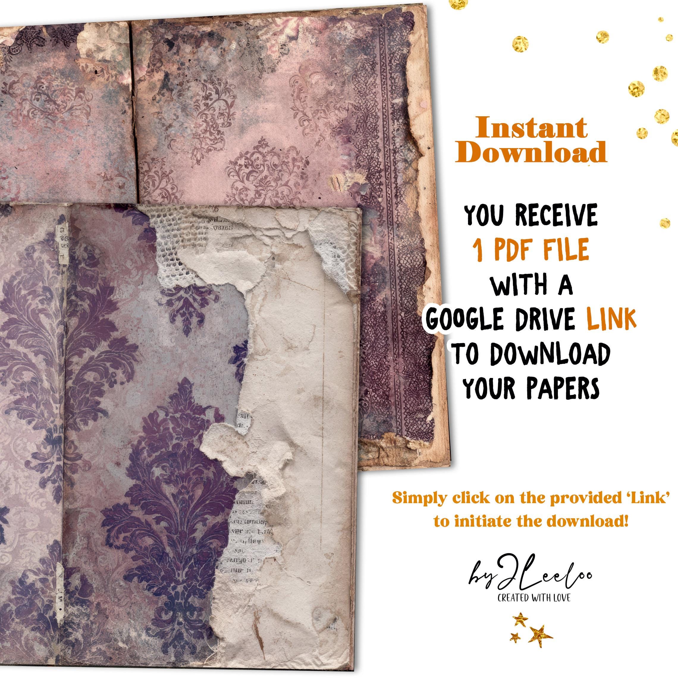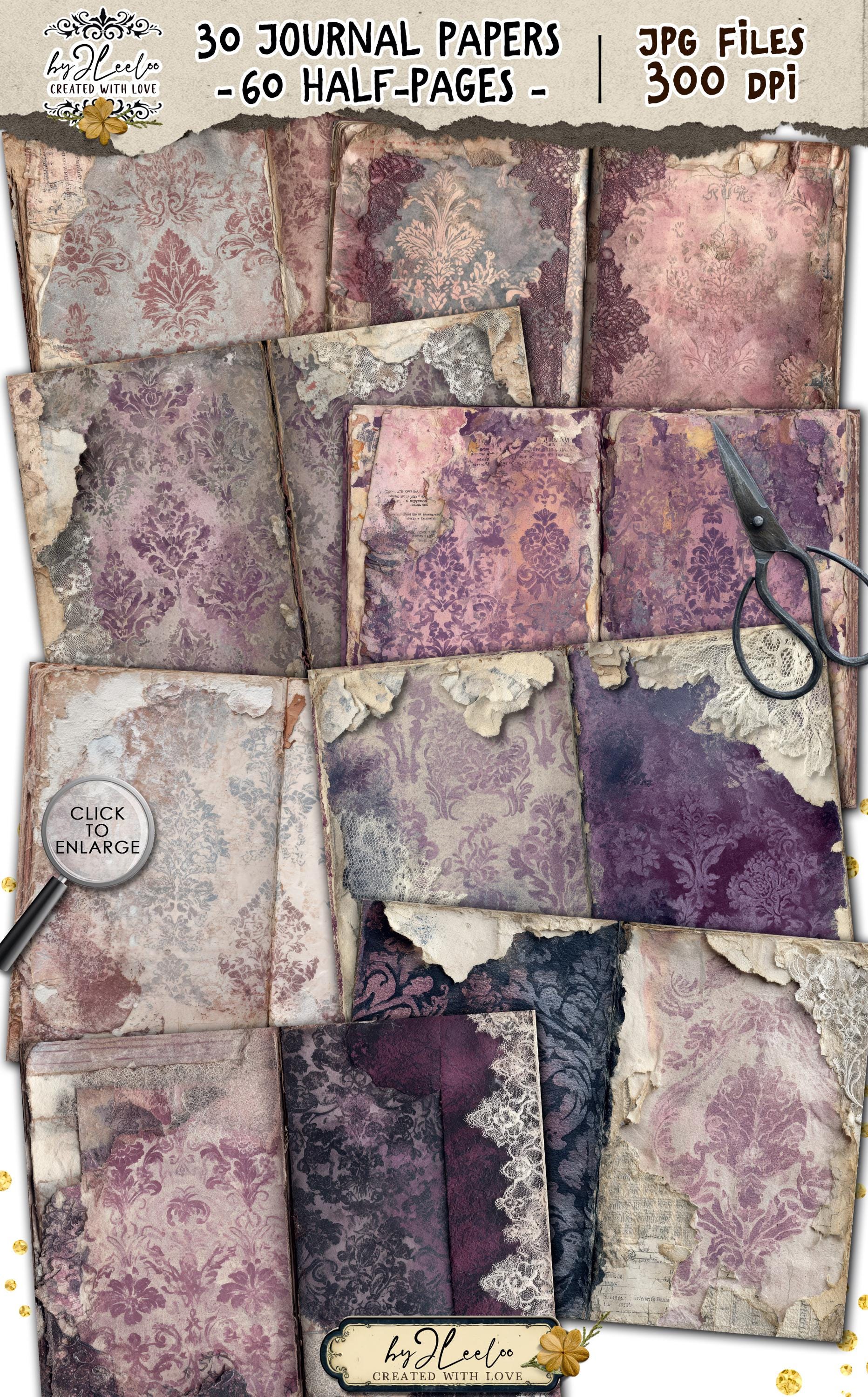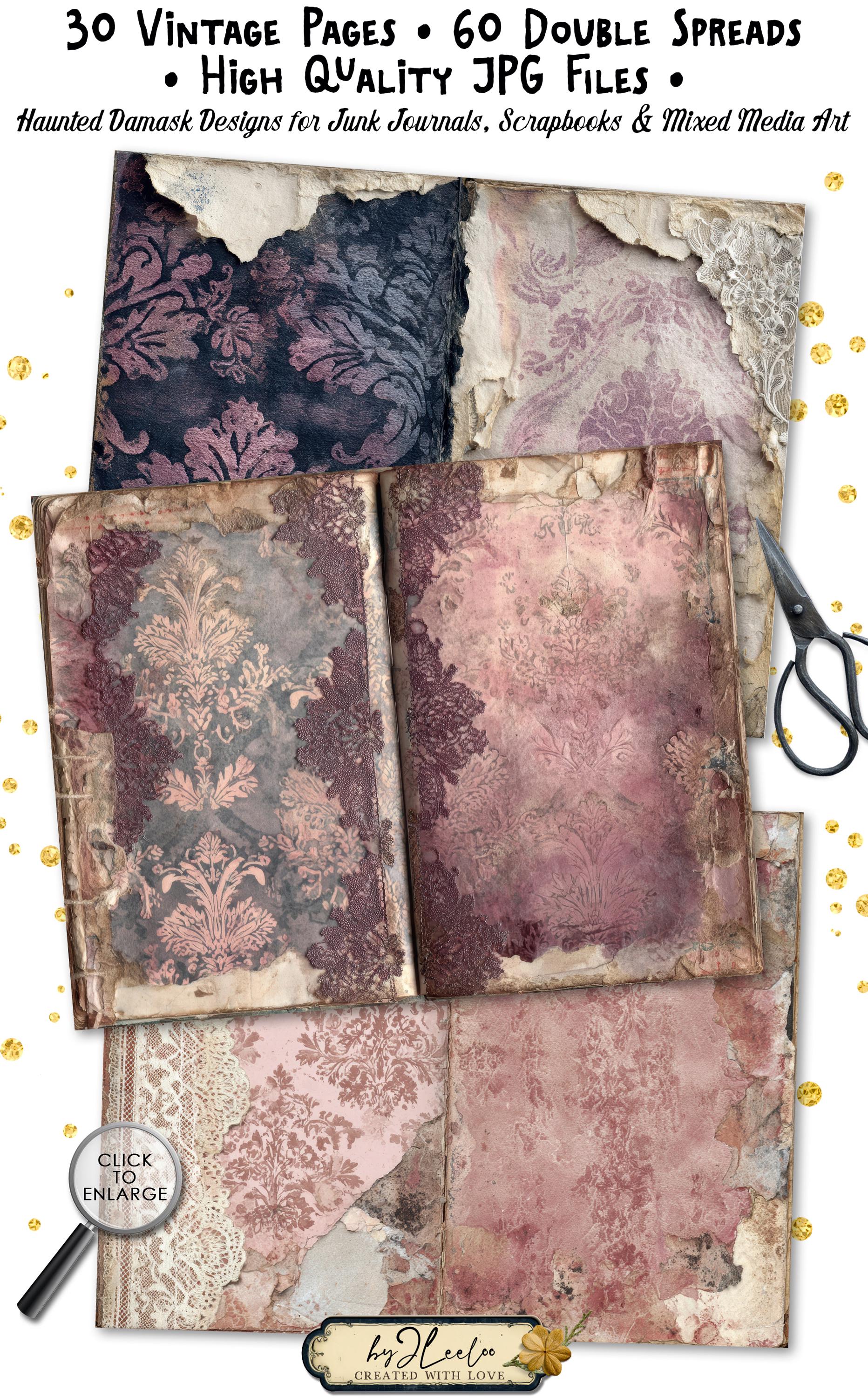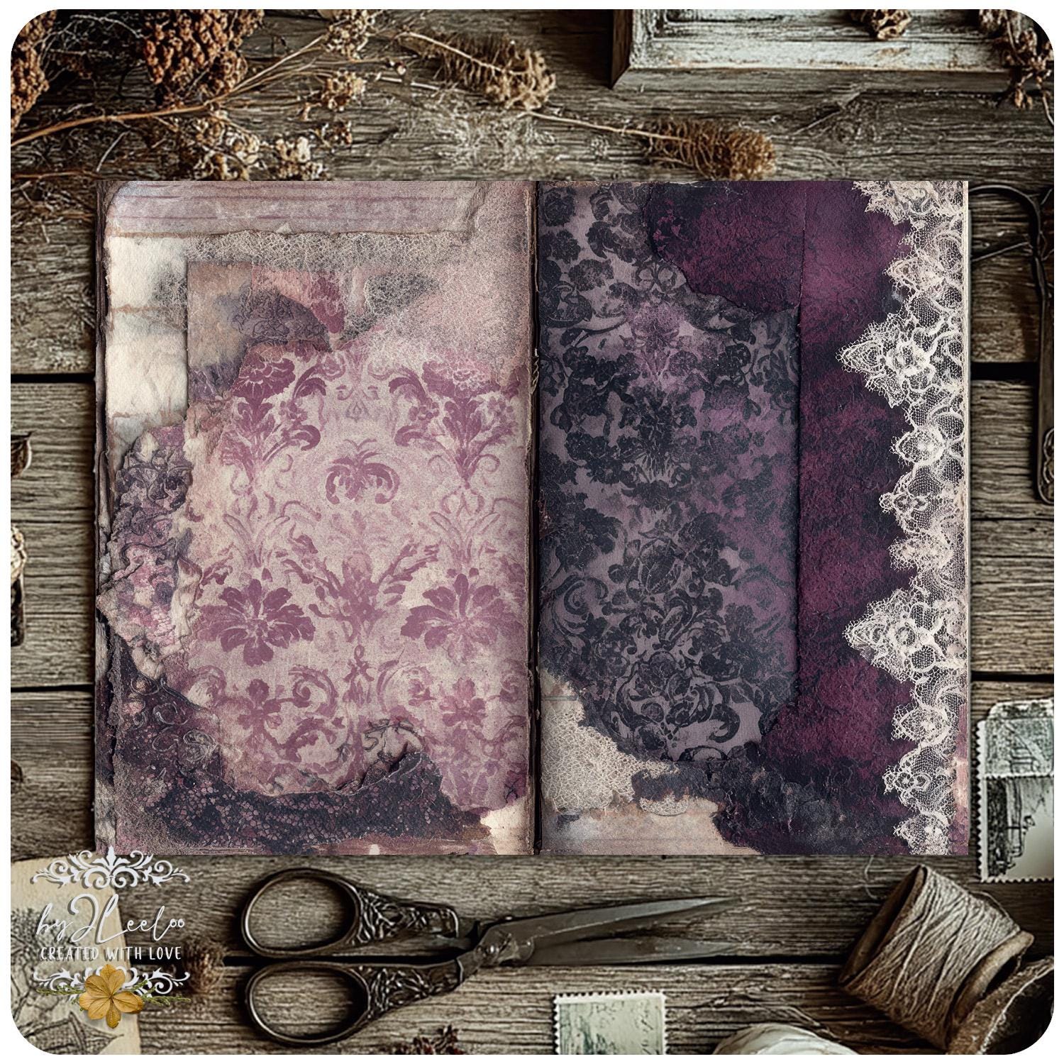 HAUNTED DAMASK – 30 Gothic Purple Vintage Papers | Decayed Faded Damask Wallpaper Texture | Shabby Junk Journals Craft Scrapbooking | pp982