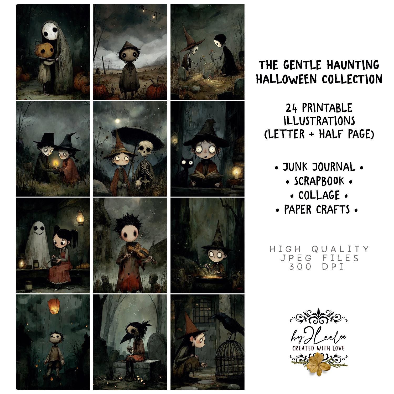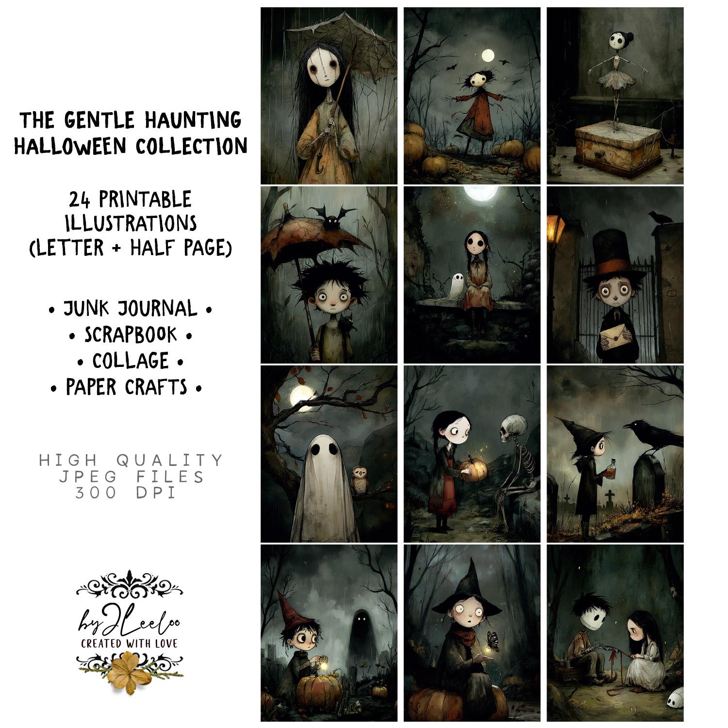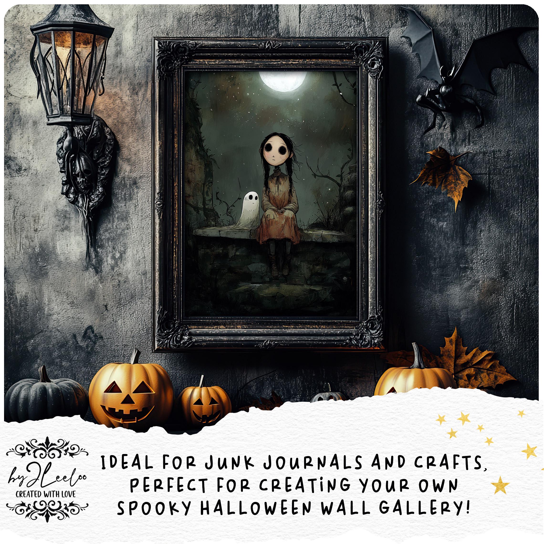 The GENTLE HAUNTING โ Spooky Cute Halloween Art Prints for Junk Journals Scrapbooks Gothic Paper Crafts Collage Project Mixed Media | pp986
