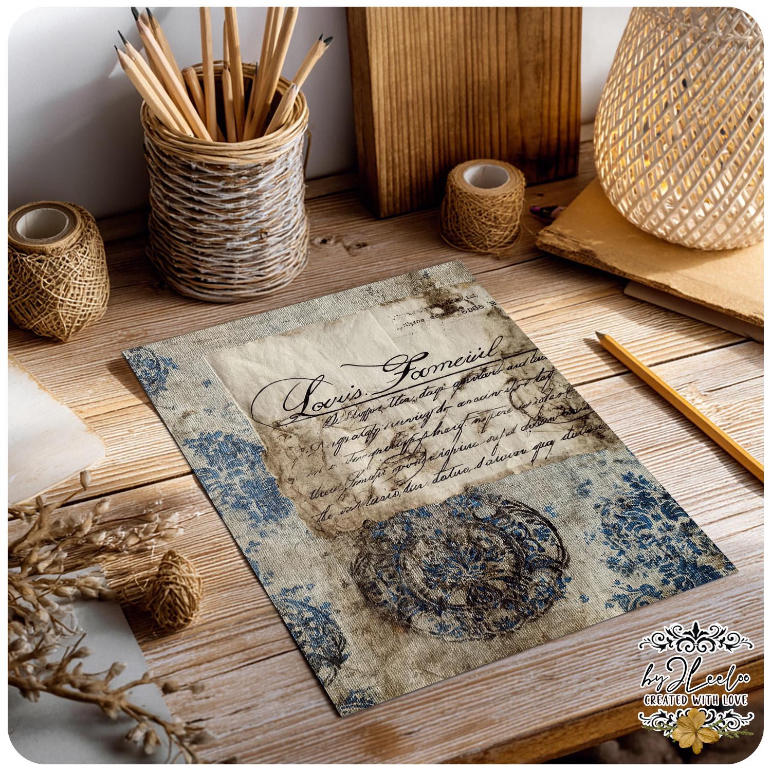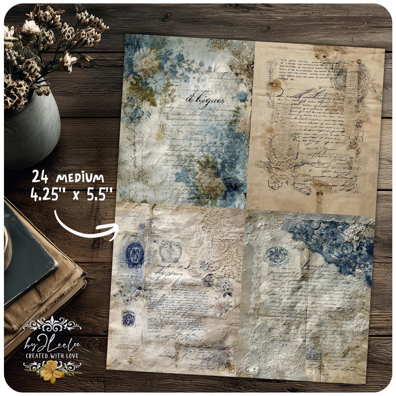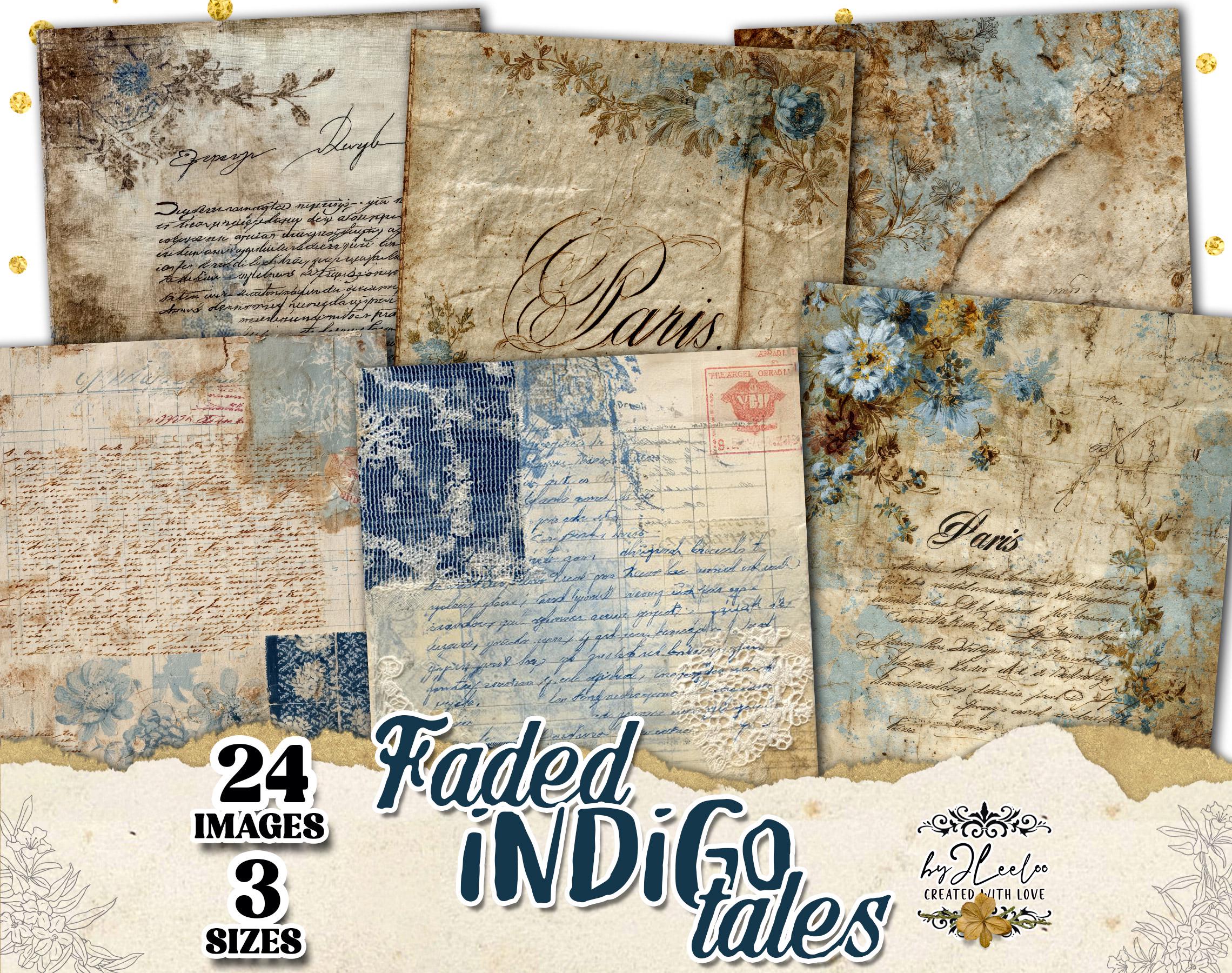 FADED INDIGO TALES – Vintage Blue Letter Papers for Junk Journal Scrapbook & Mixed Media Art Scrapbooking Printable Ephemera Collage | pp988