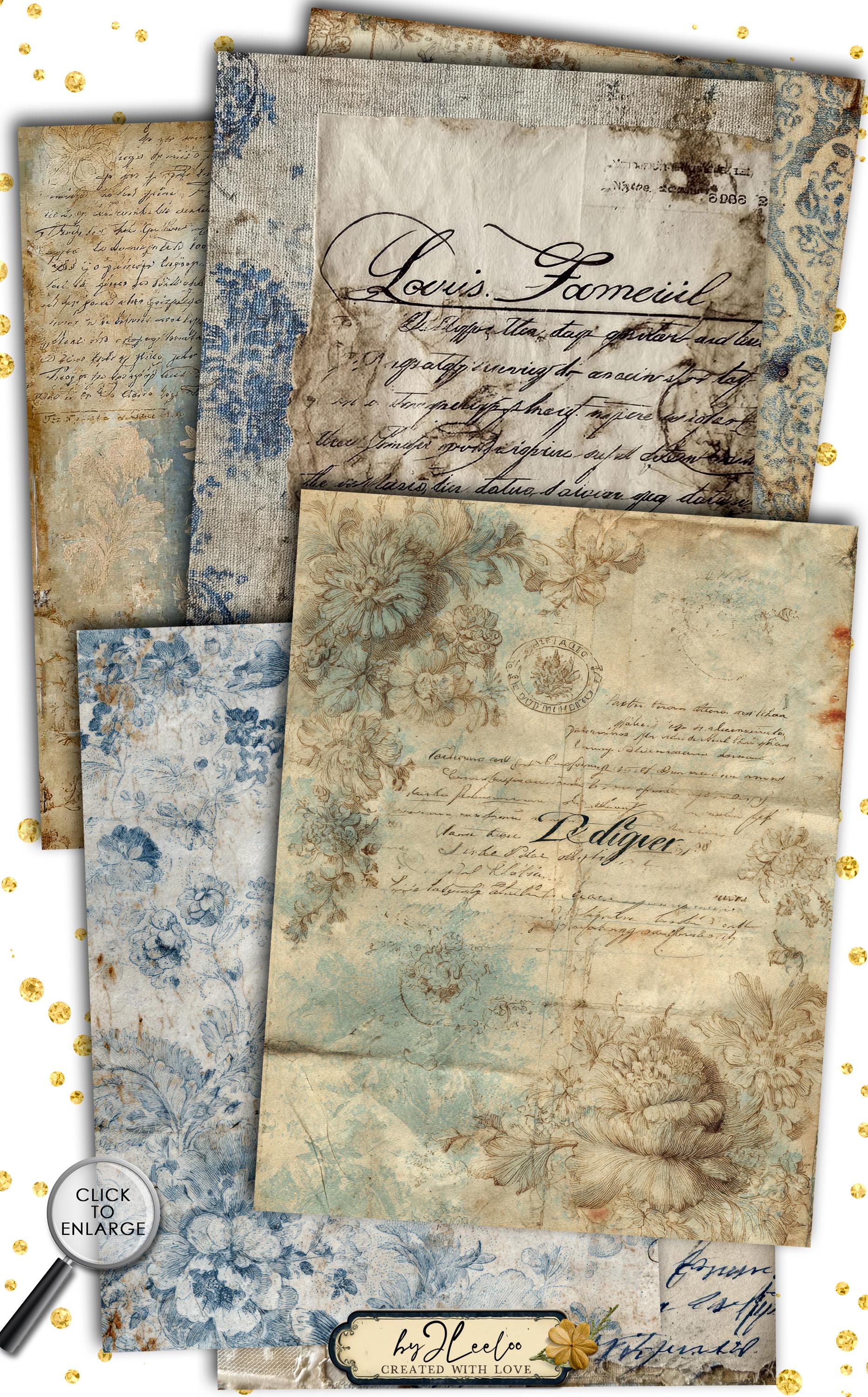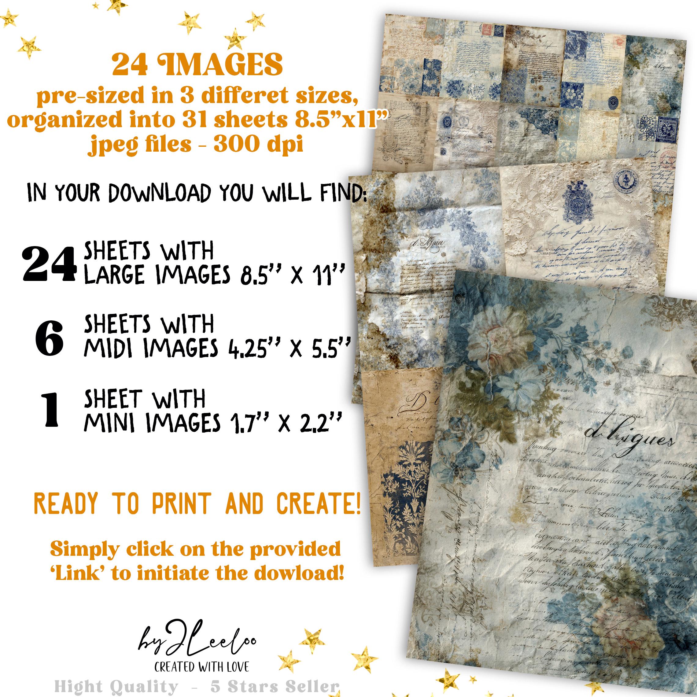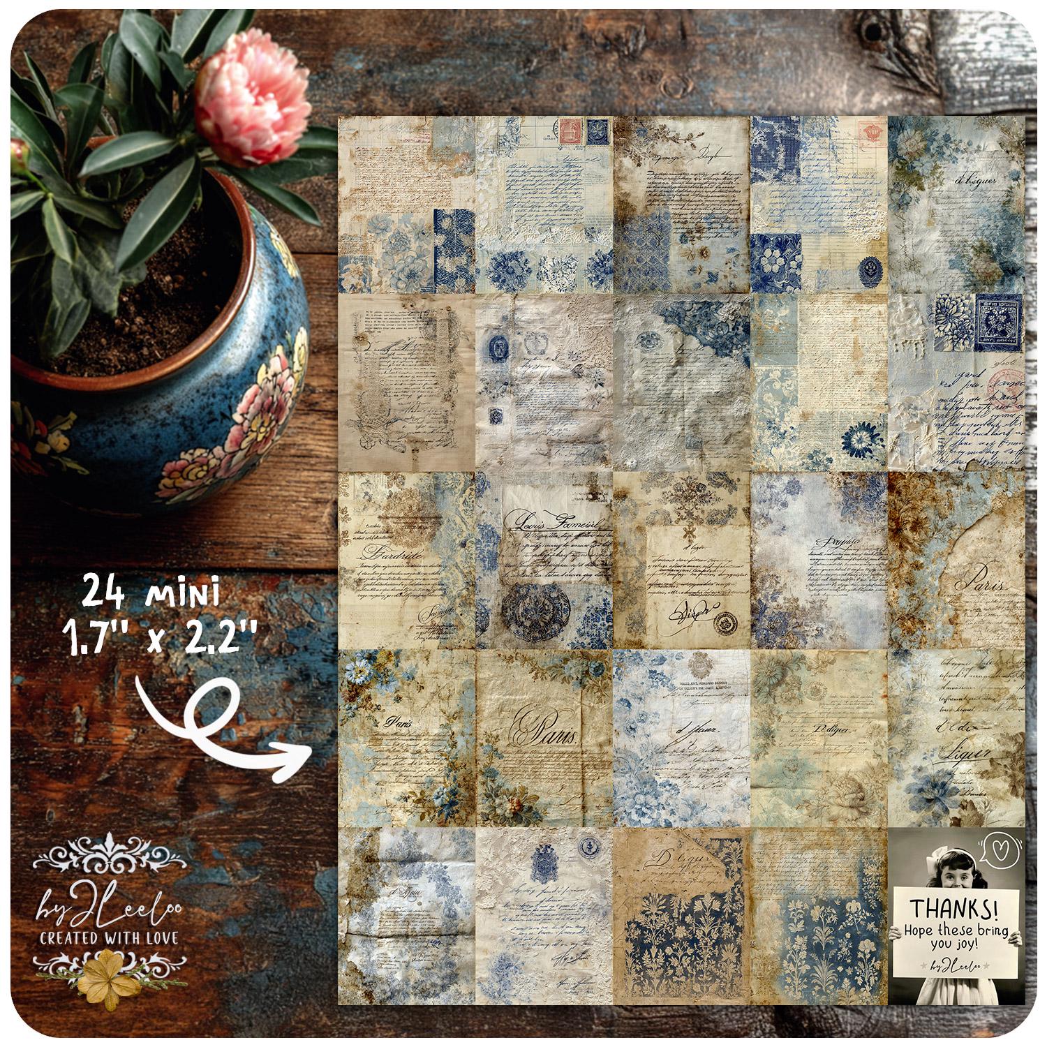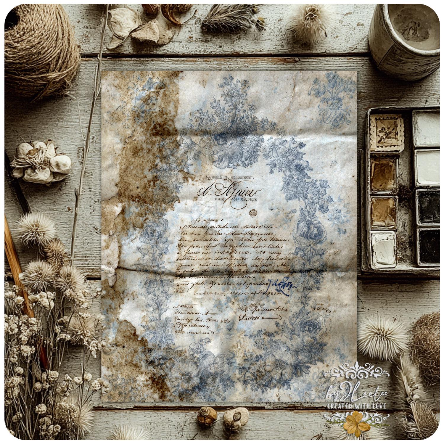 FADED INDIGO TALES – Vintage Blue Letter Papers for Junk Journal Scrapbook & Mixed Media Art Scrapbooking Printable Ephemera Collage | pp988