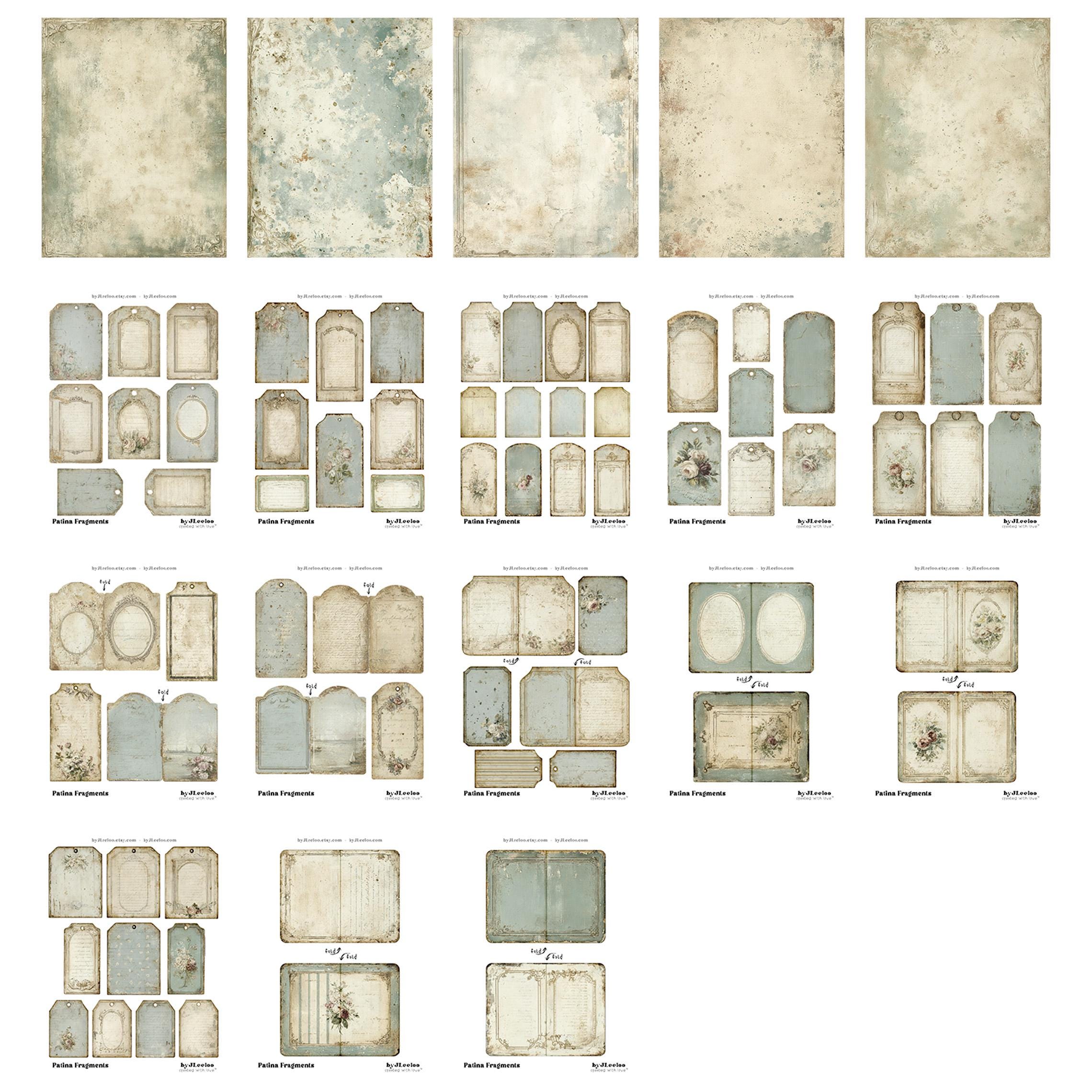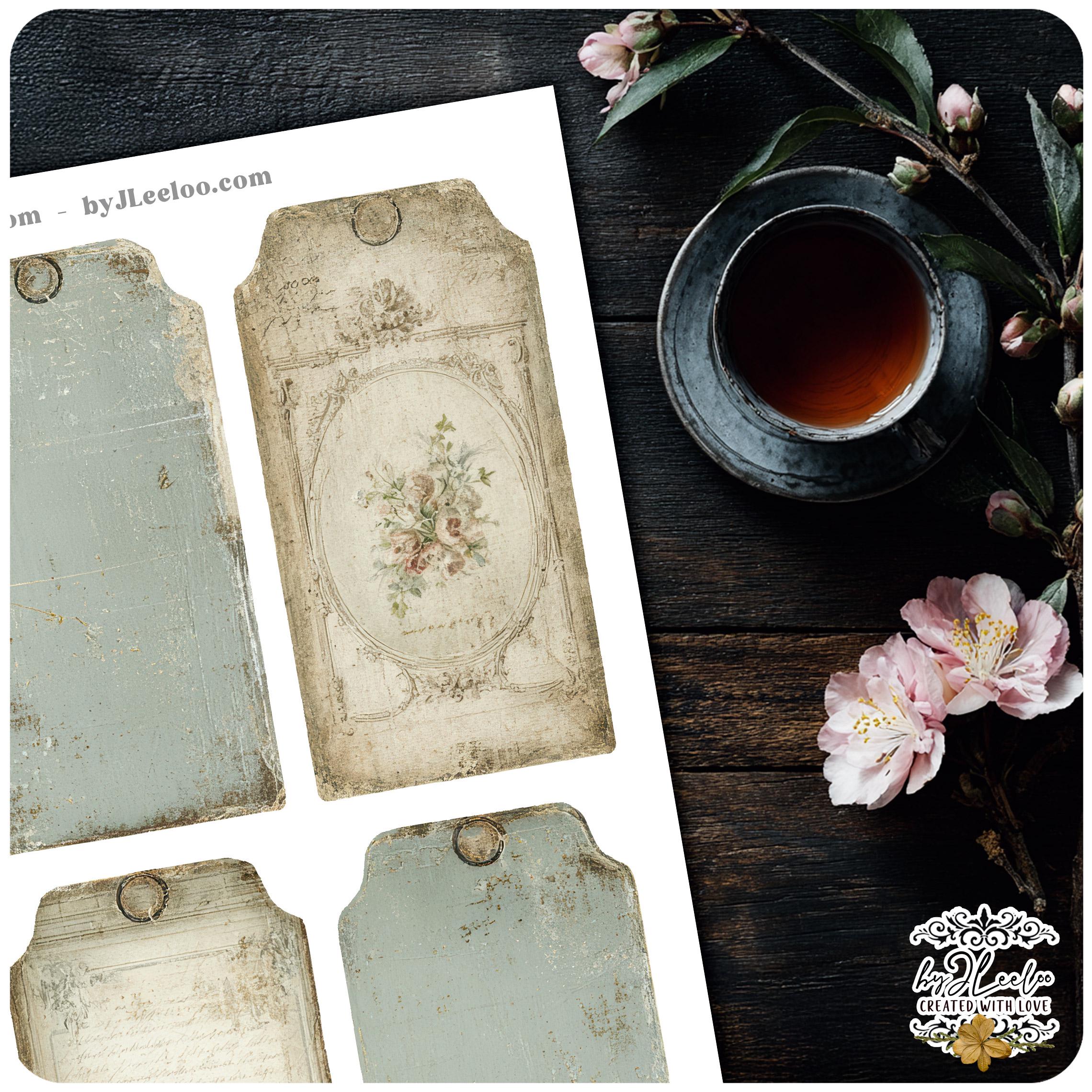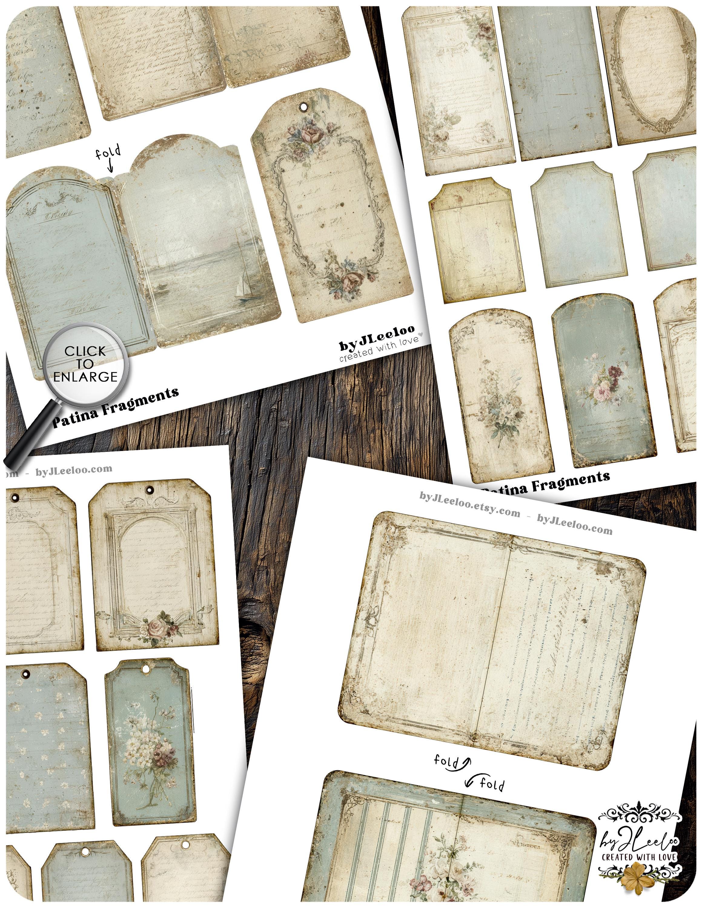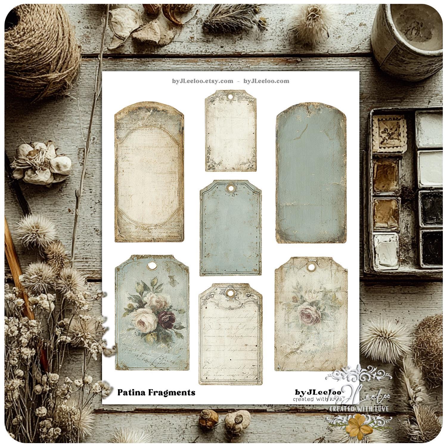 PATINA FRAGMENTS Vintage Blue Beige Tag Ephemera | Printable Shabby Chic Journal Cards & Label for Junk Journal Scrapbooking Collage | tl363
