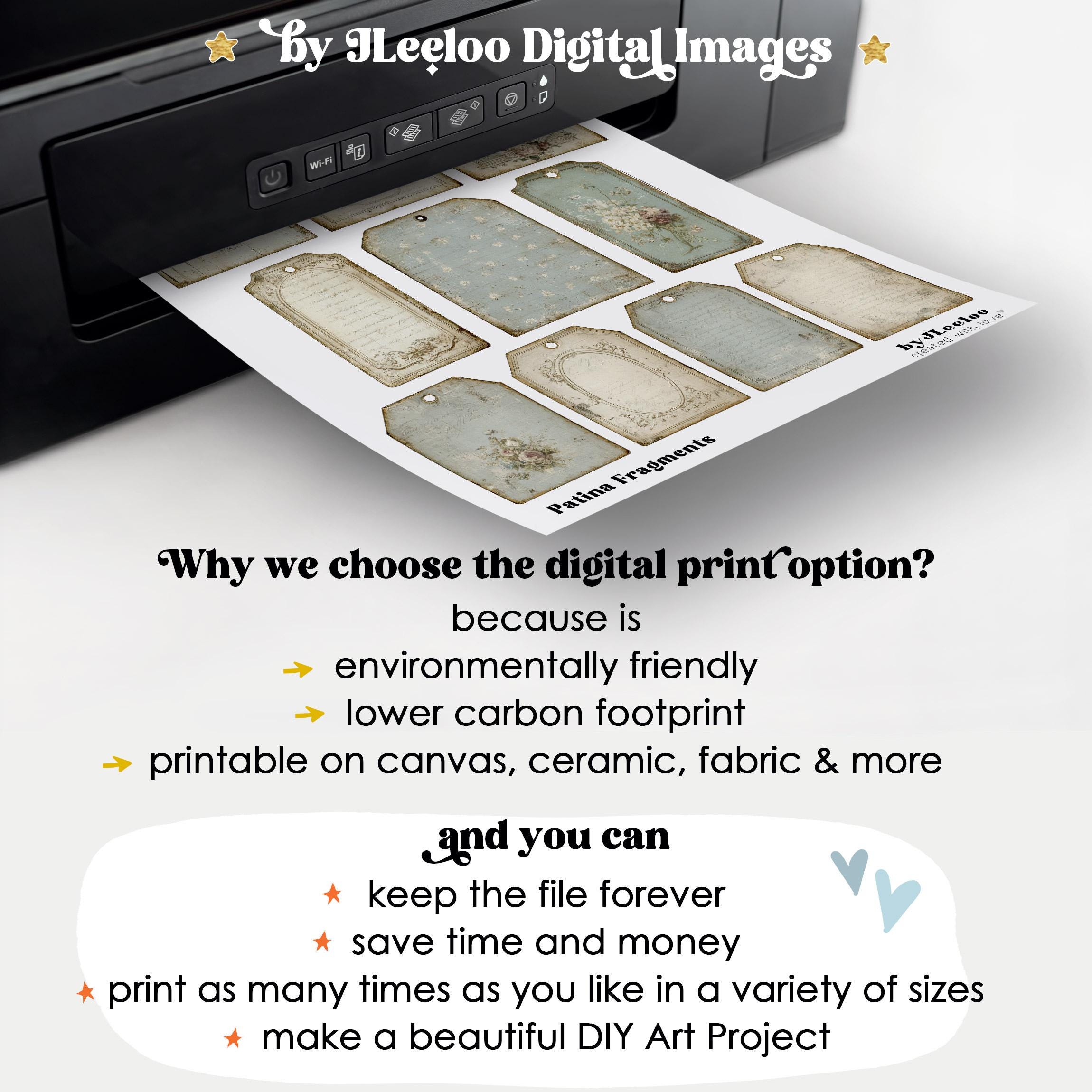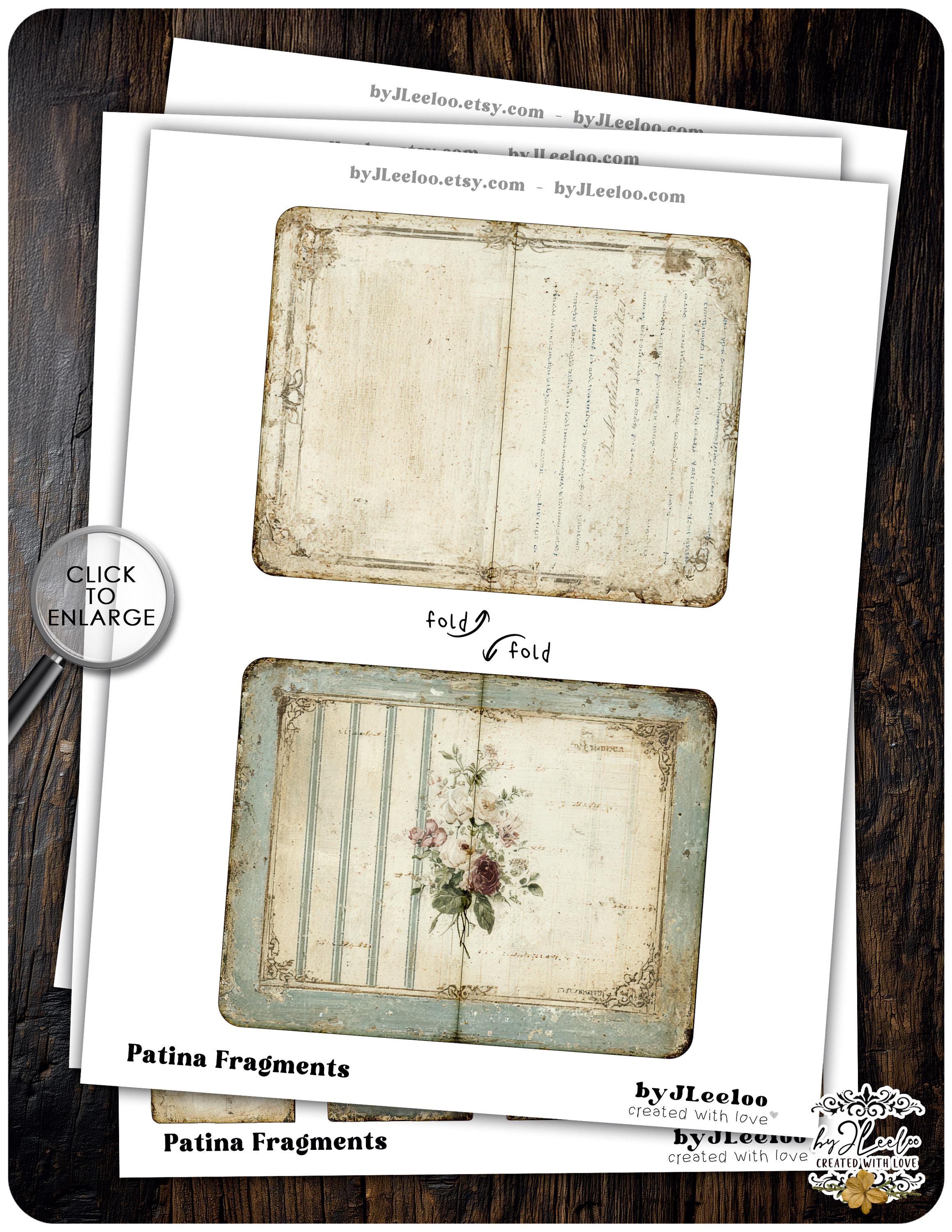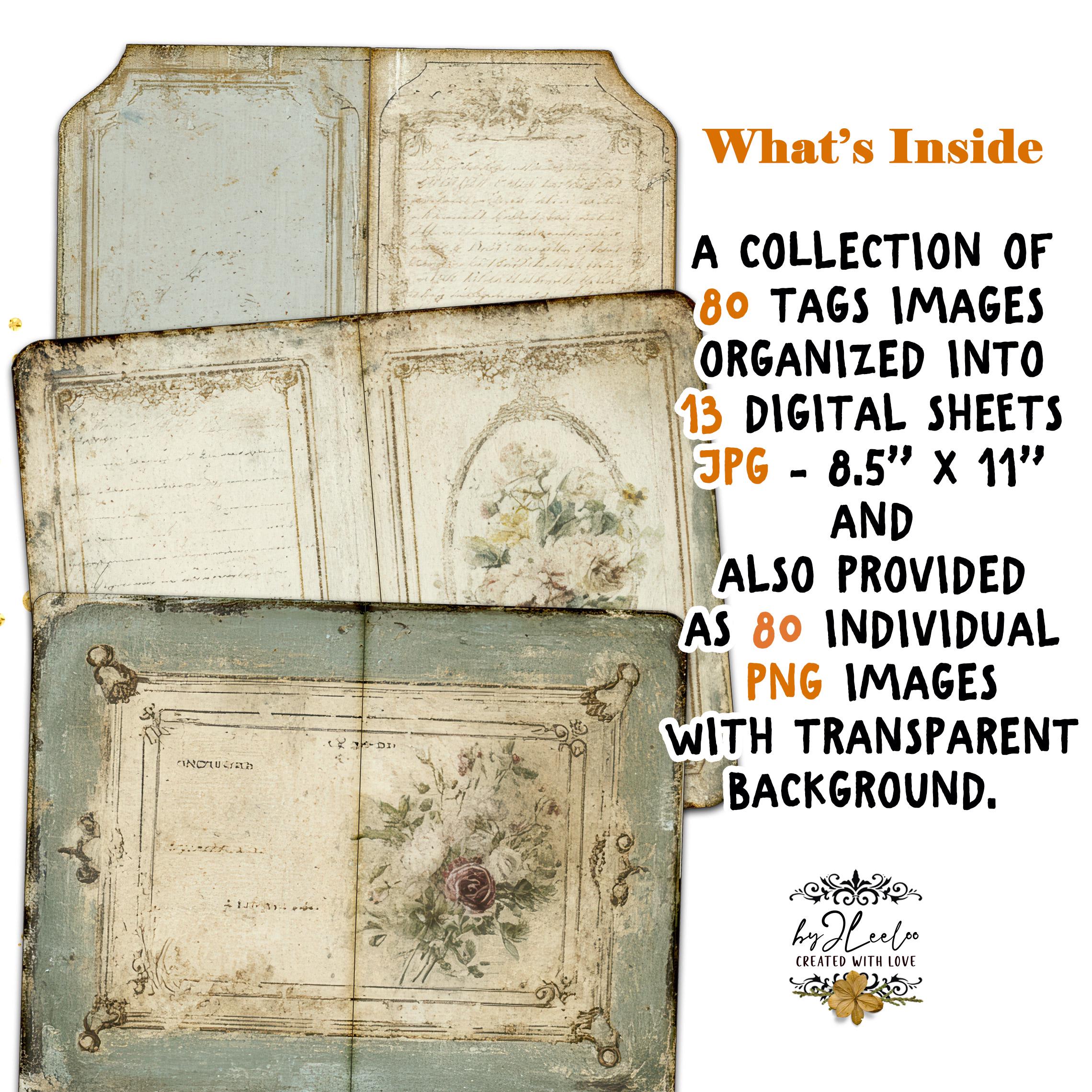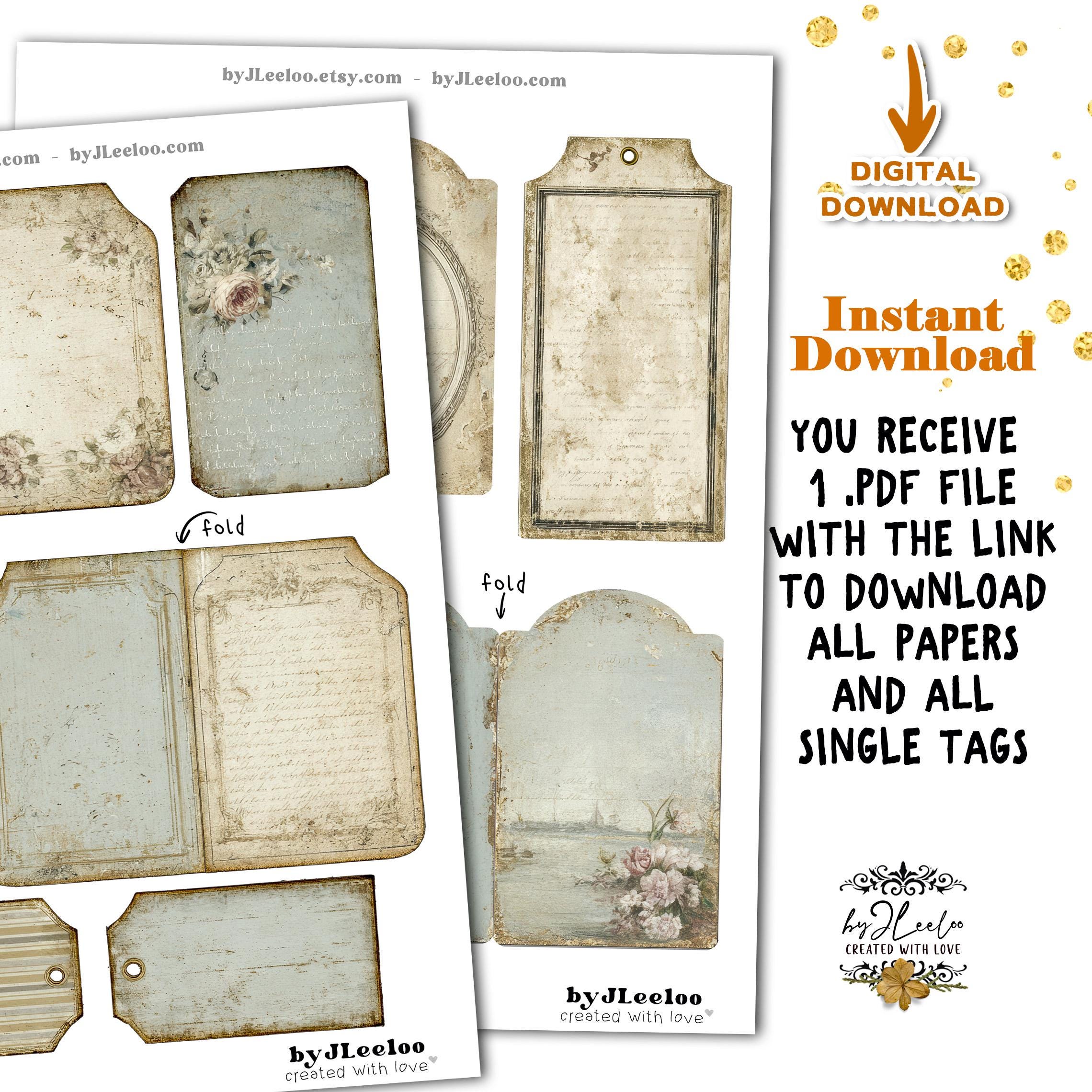 PATINA FRAGMENTS Vintage Blue Beige Tag Ephemera | Printable Shabby Chic Journal Cards & Label for Junk Journal Scrapbooking Collage | tl363
