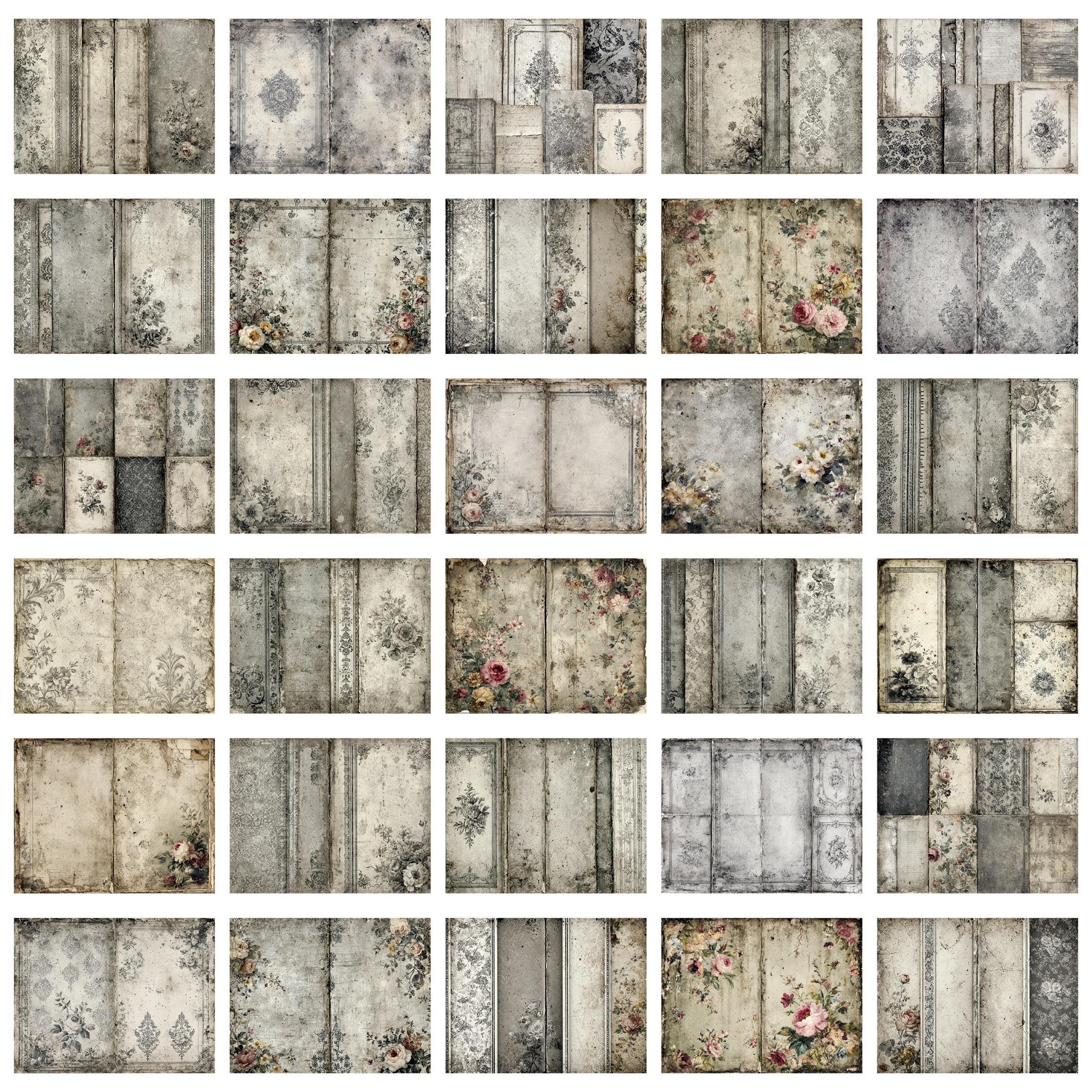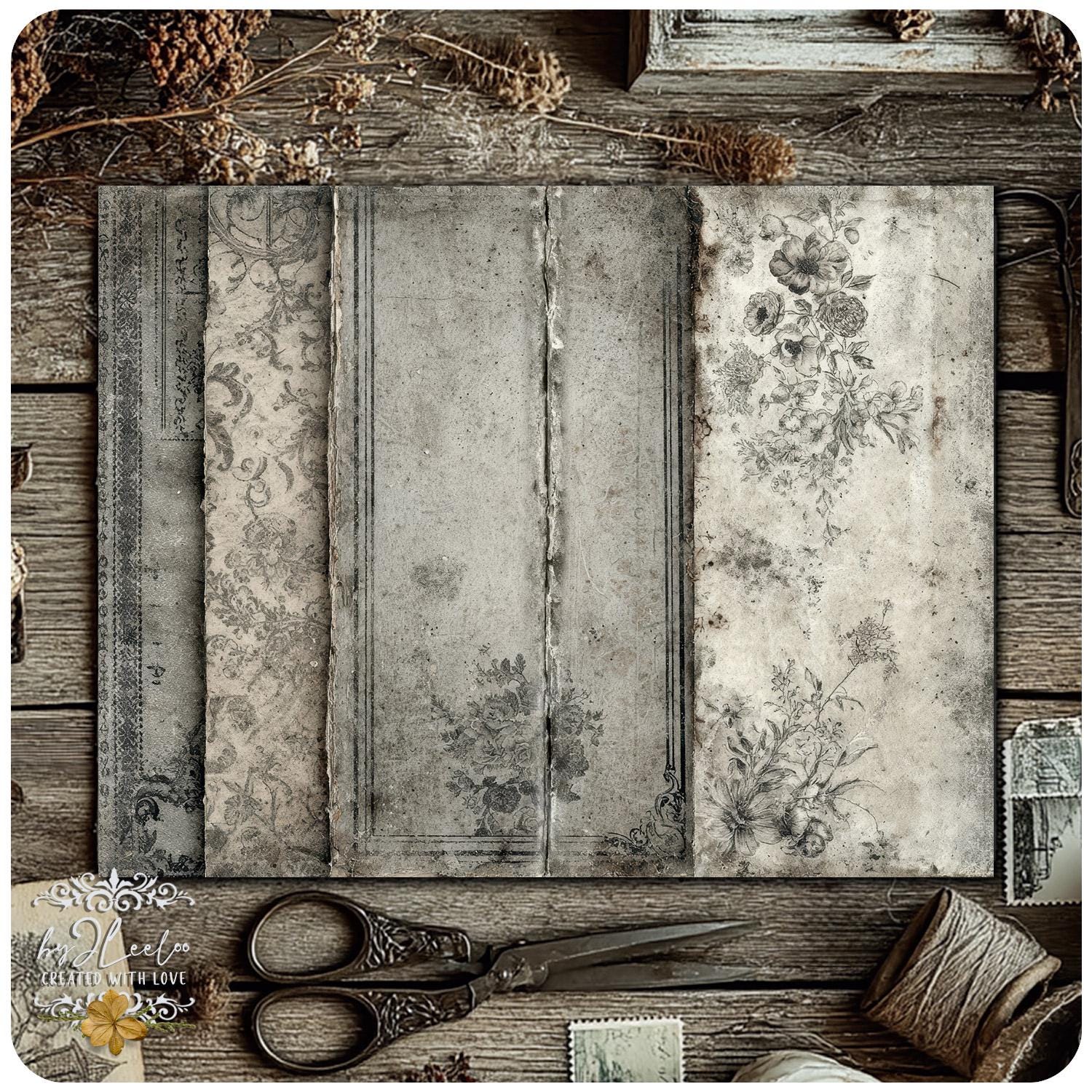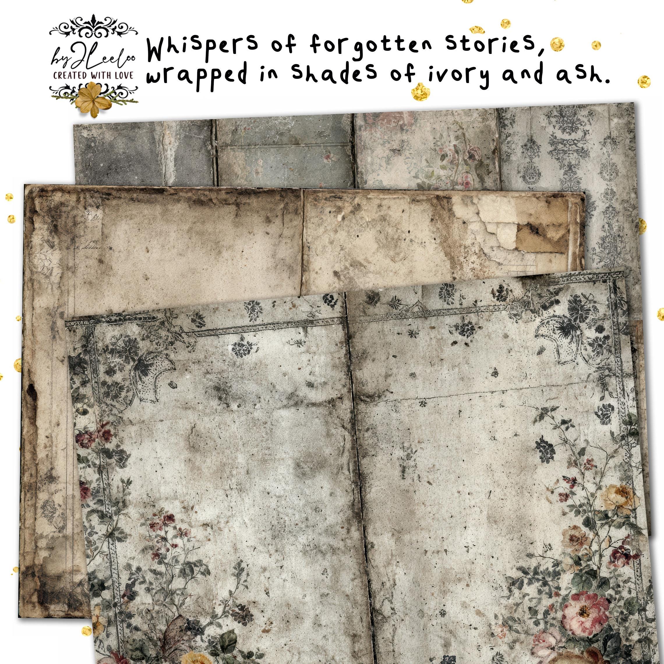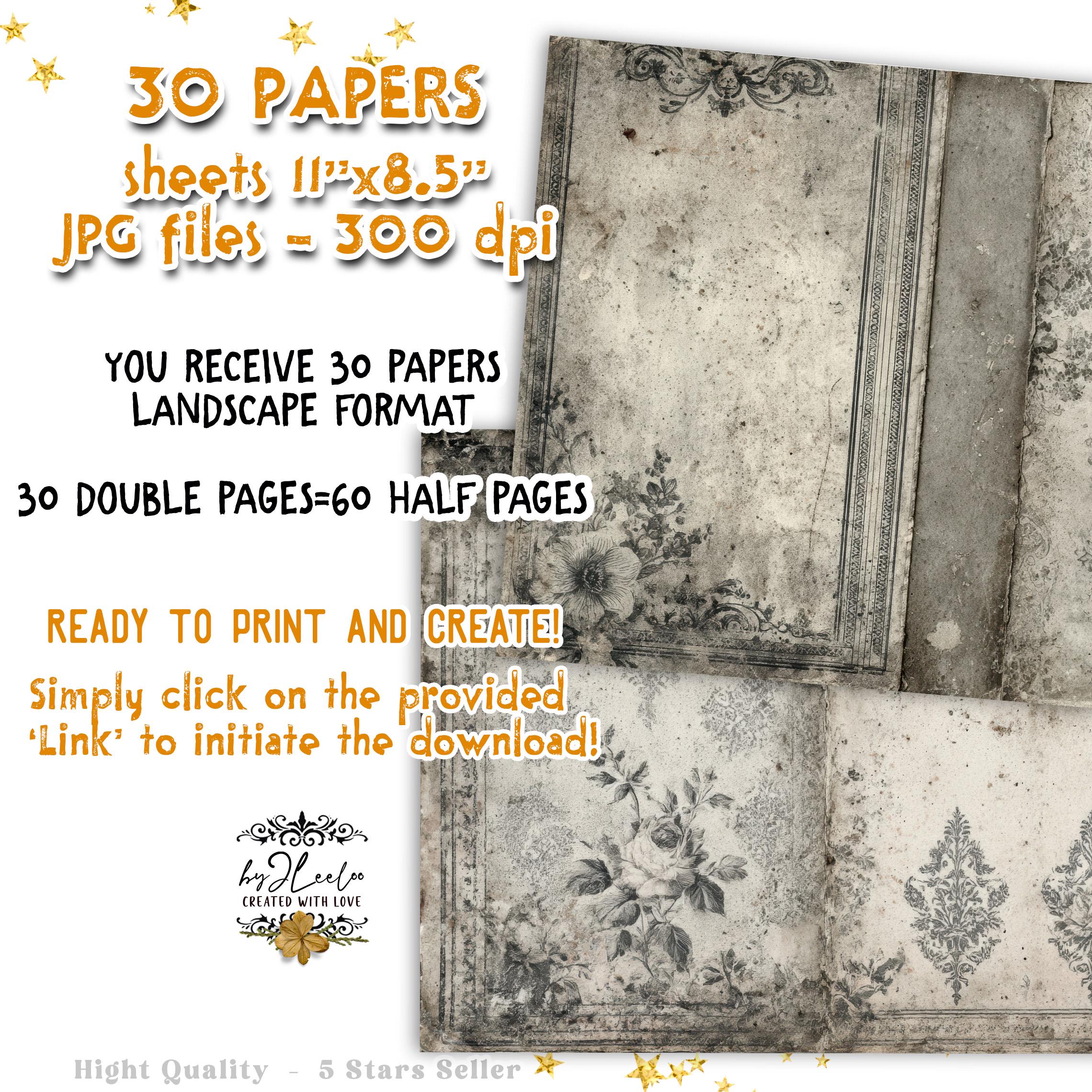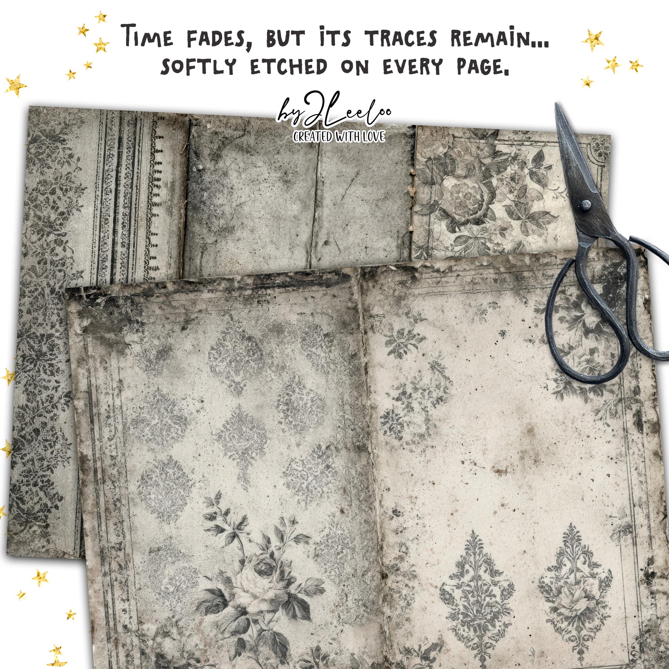 THE PALE LEDGER Vintage Neutral Junk Journal Pages | 30 Letter Size Papers Scrapbooking Collage | Grunge Antique Texture Ephemera | pp997