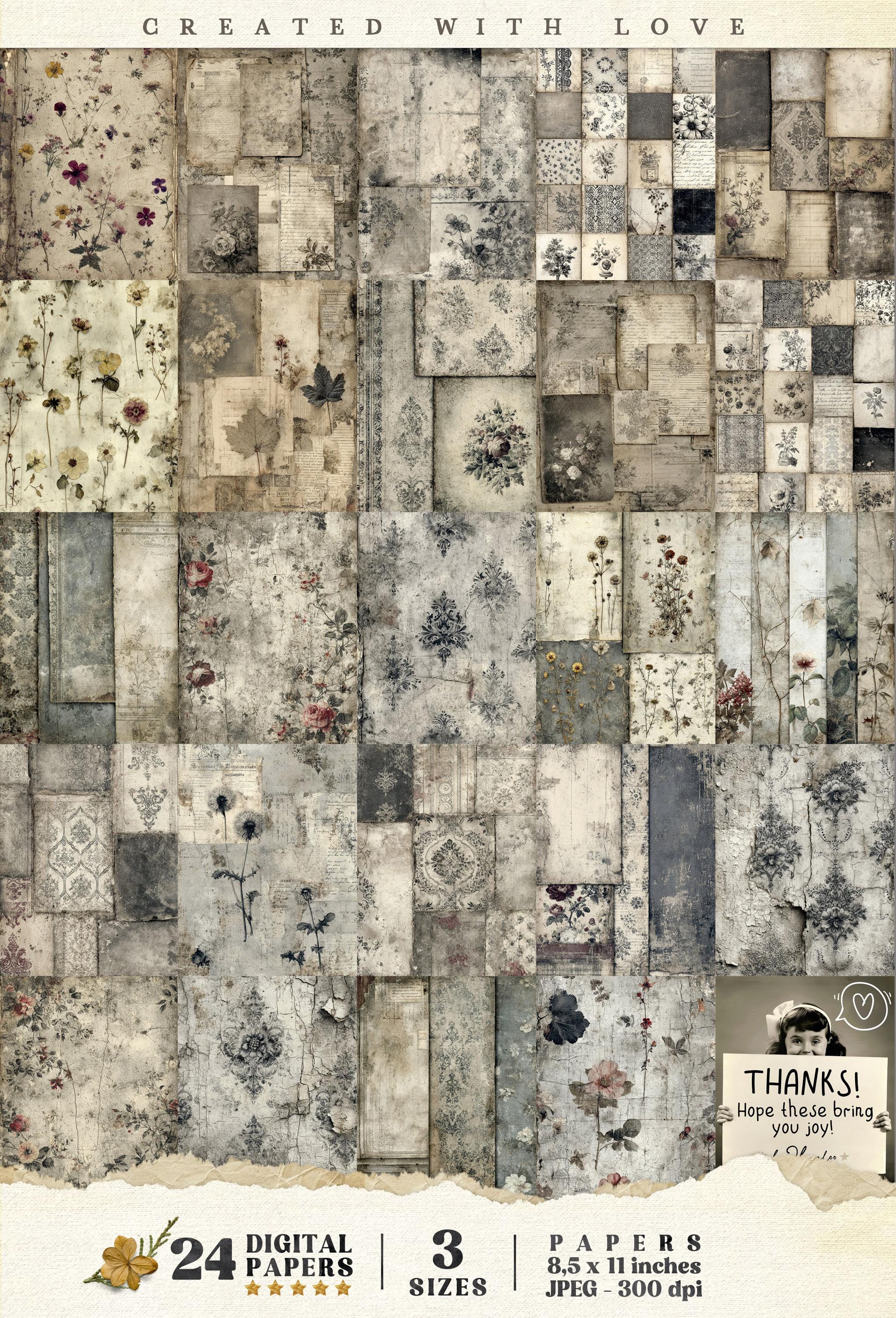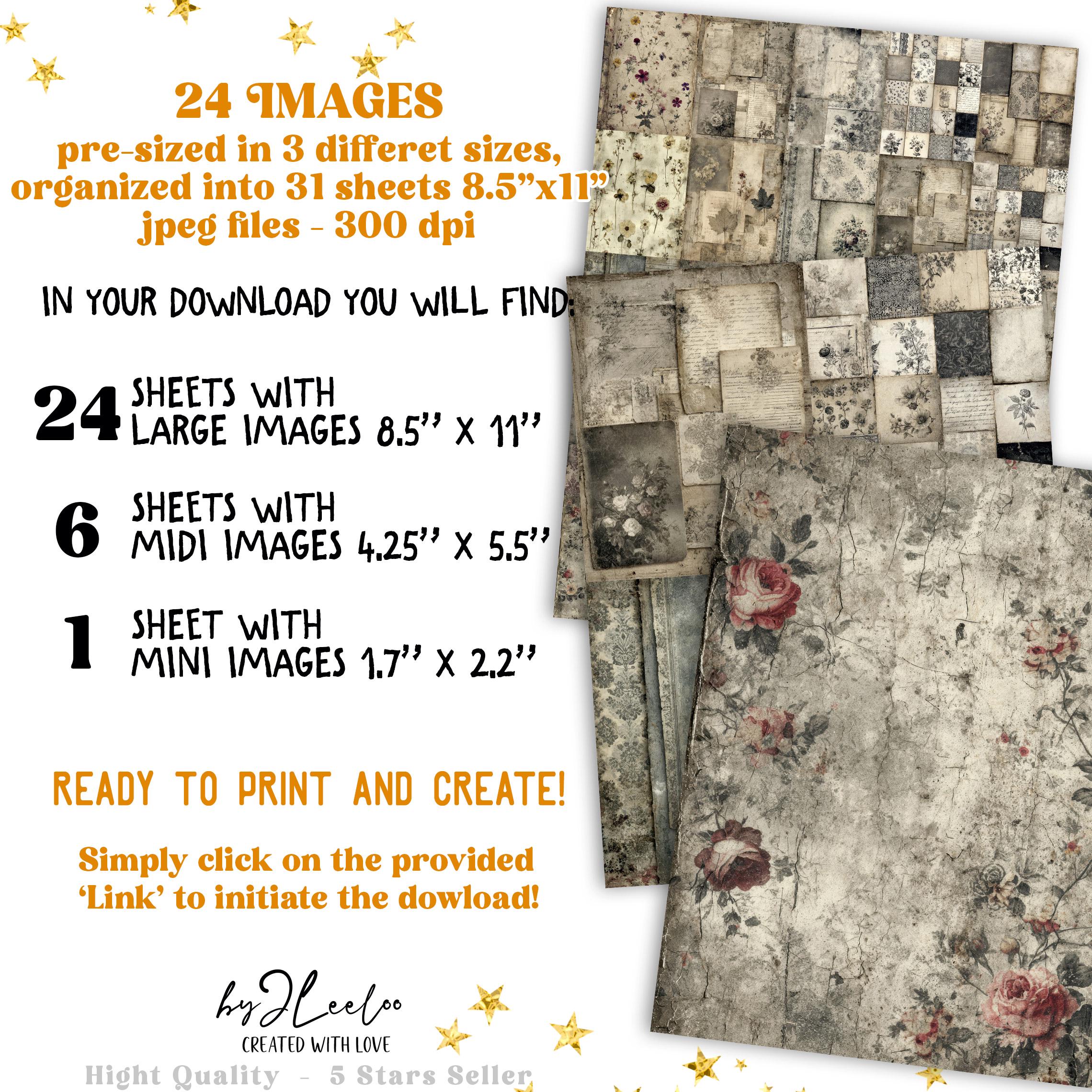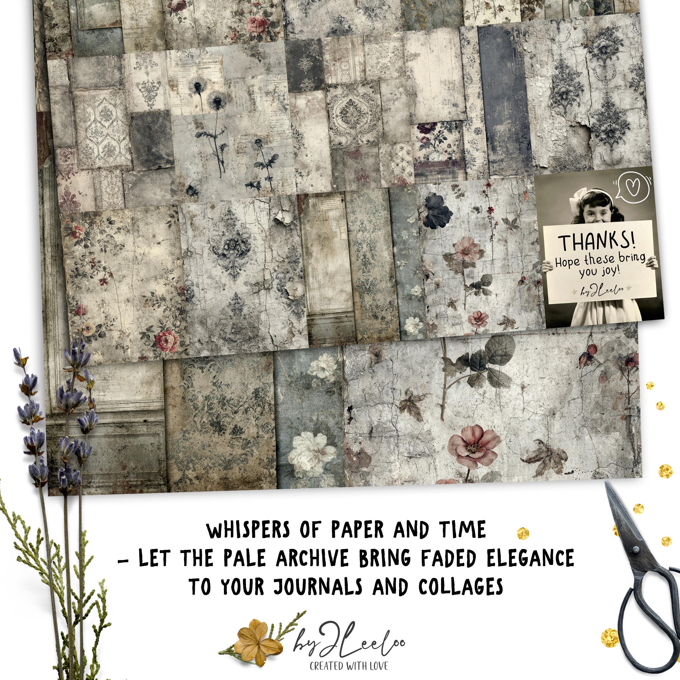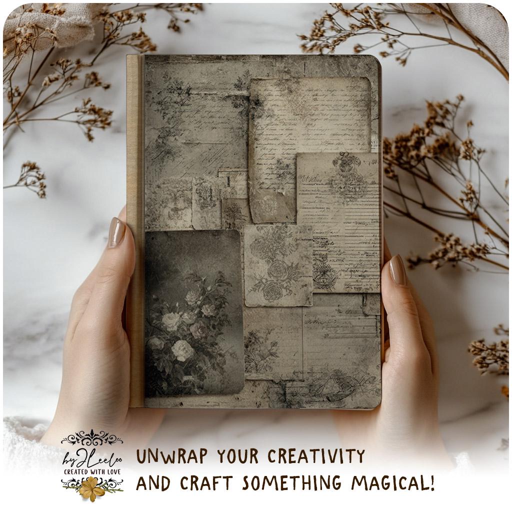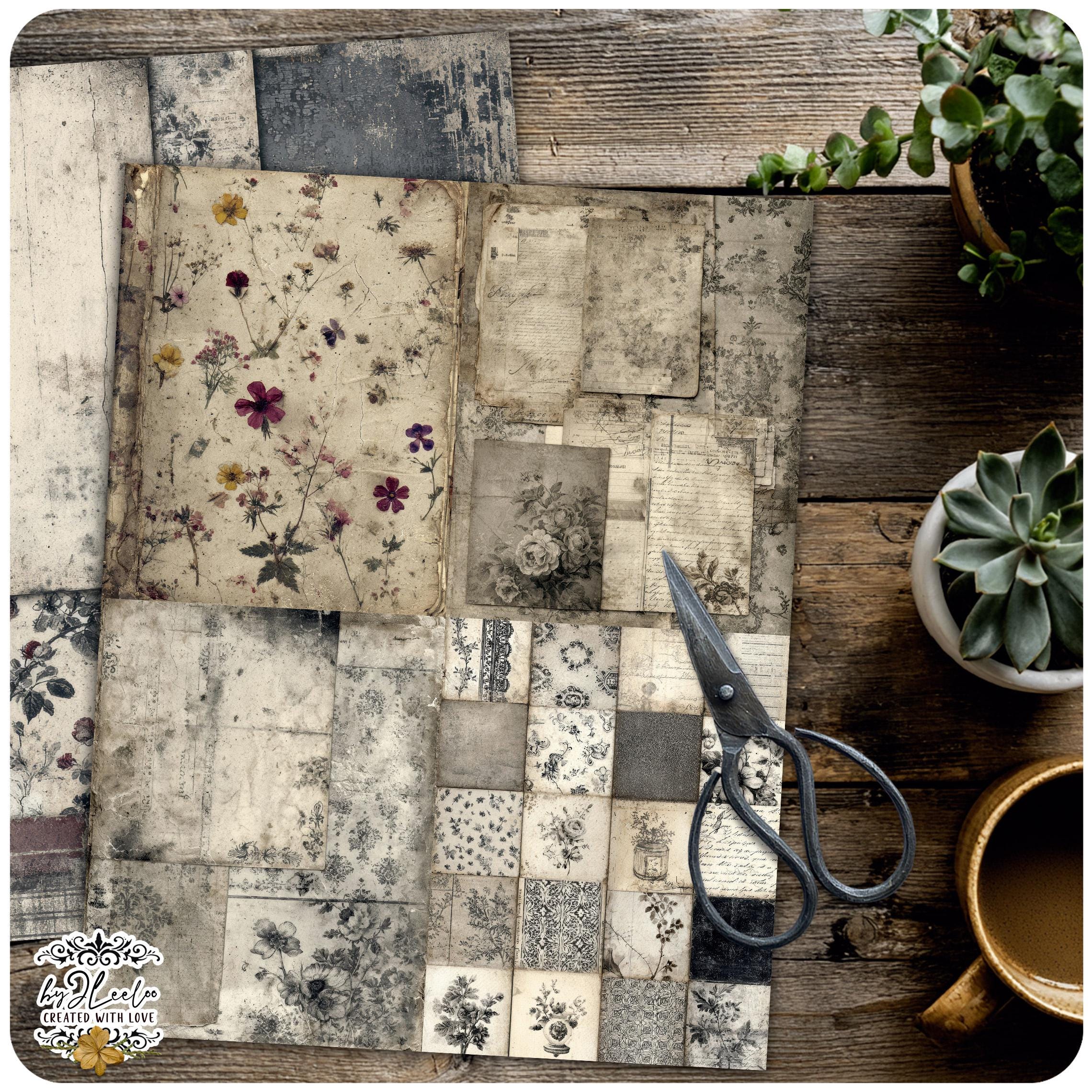 Each sheet feels like a preserved memory, softly aged and touched by time — perfect for layering into your junk journals, collages, and paper art.