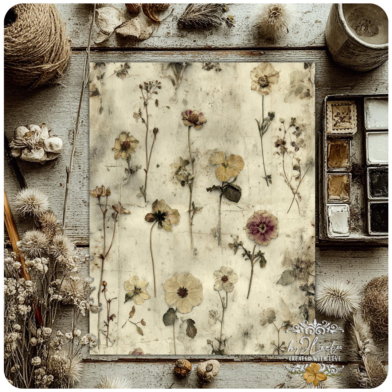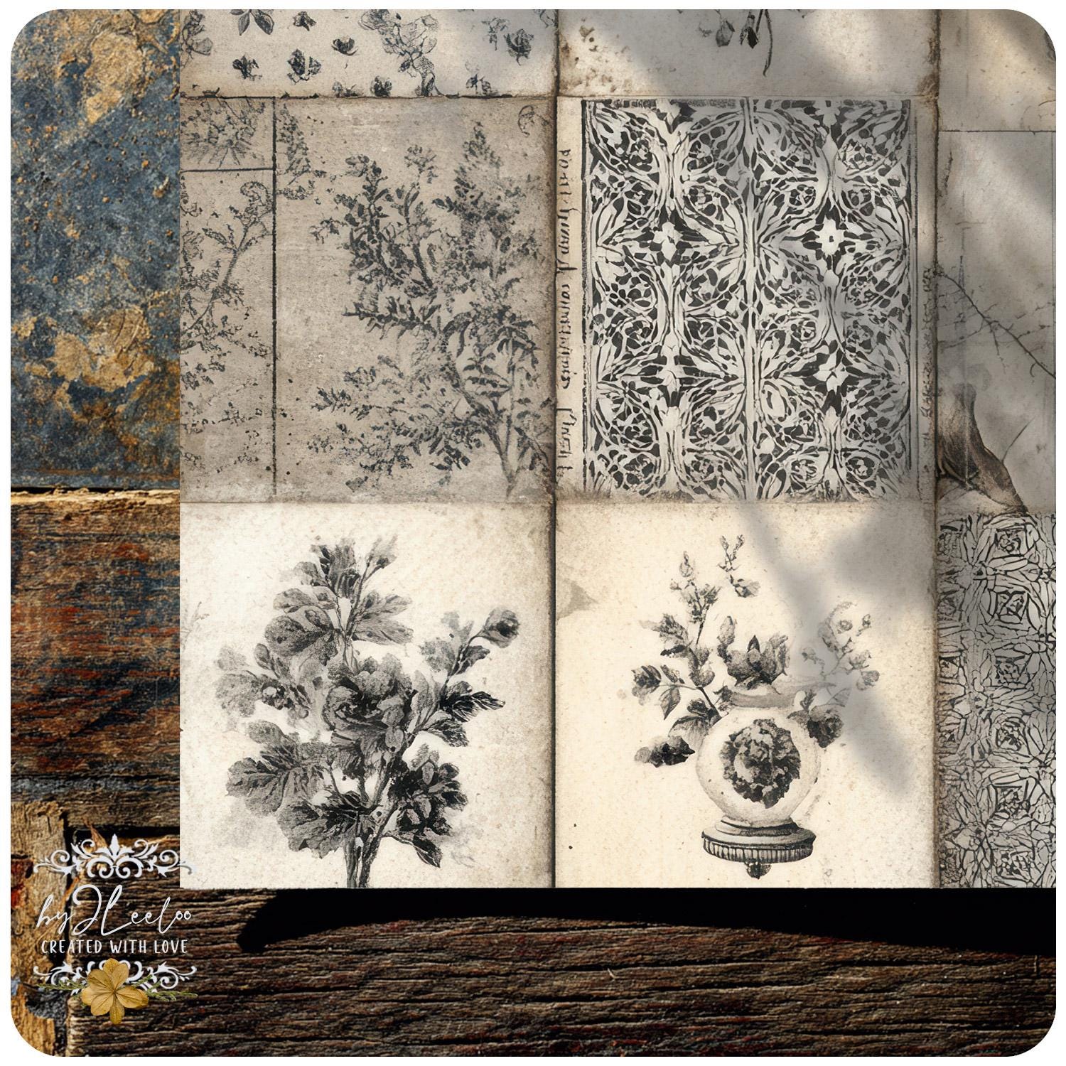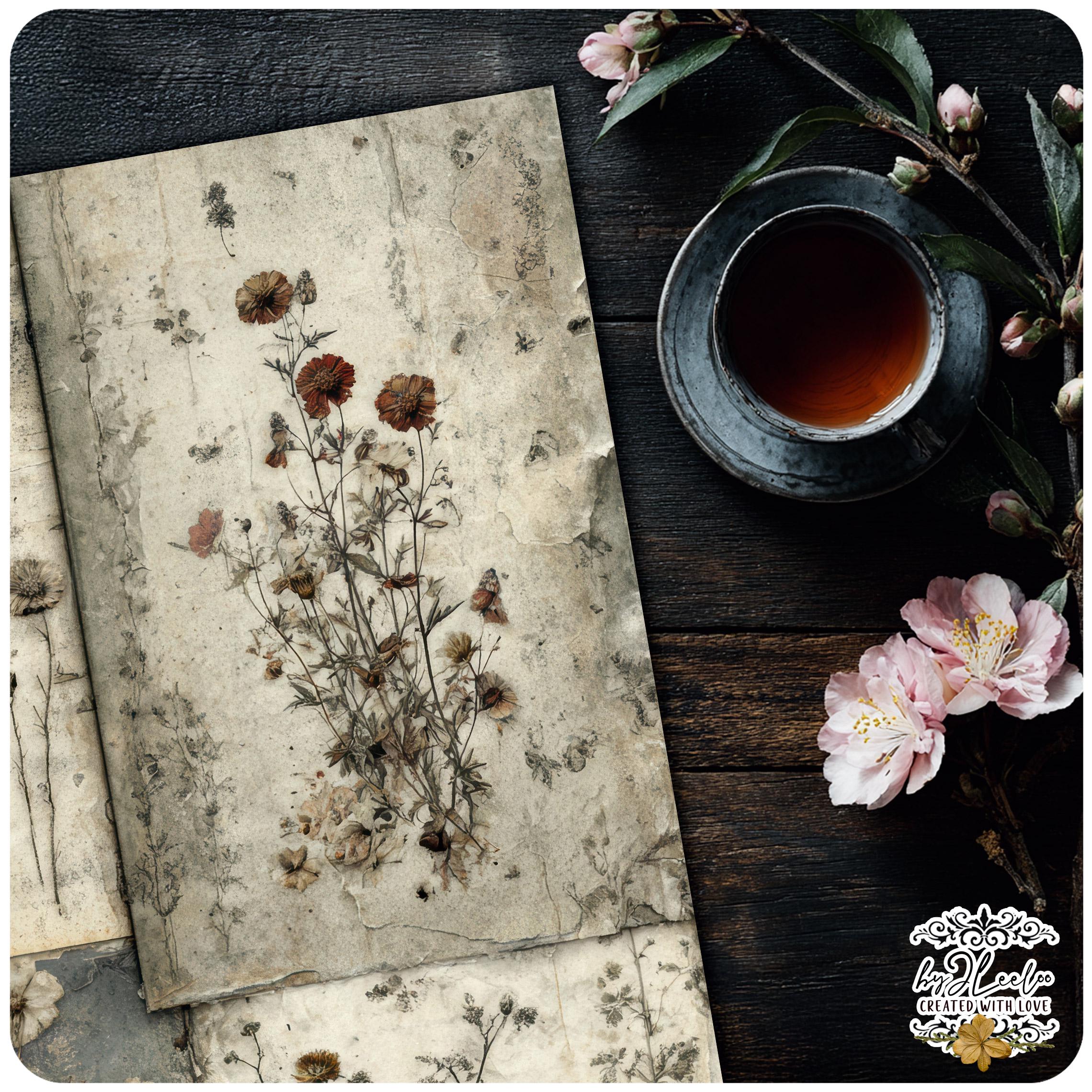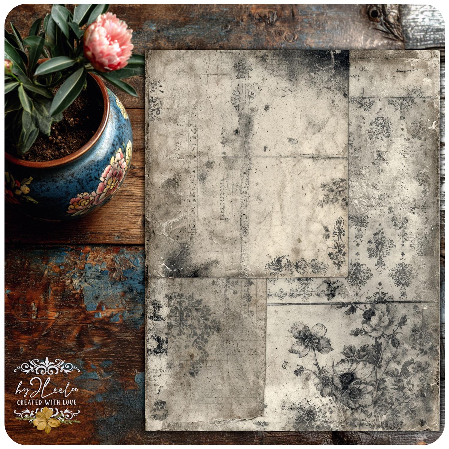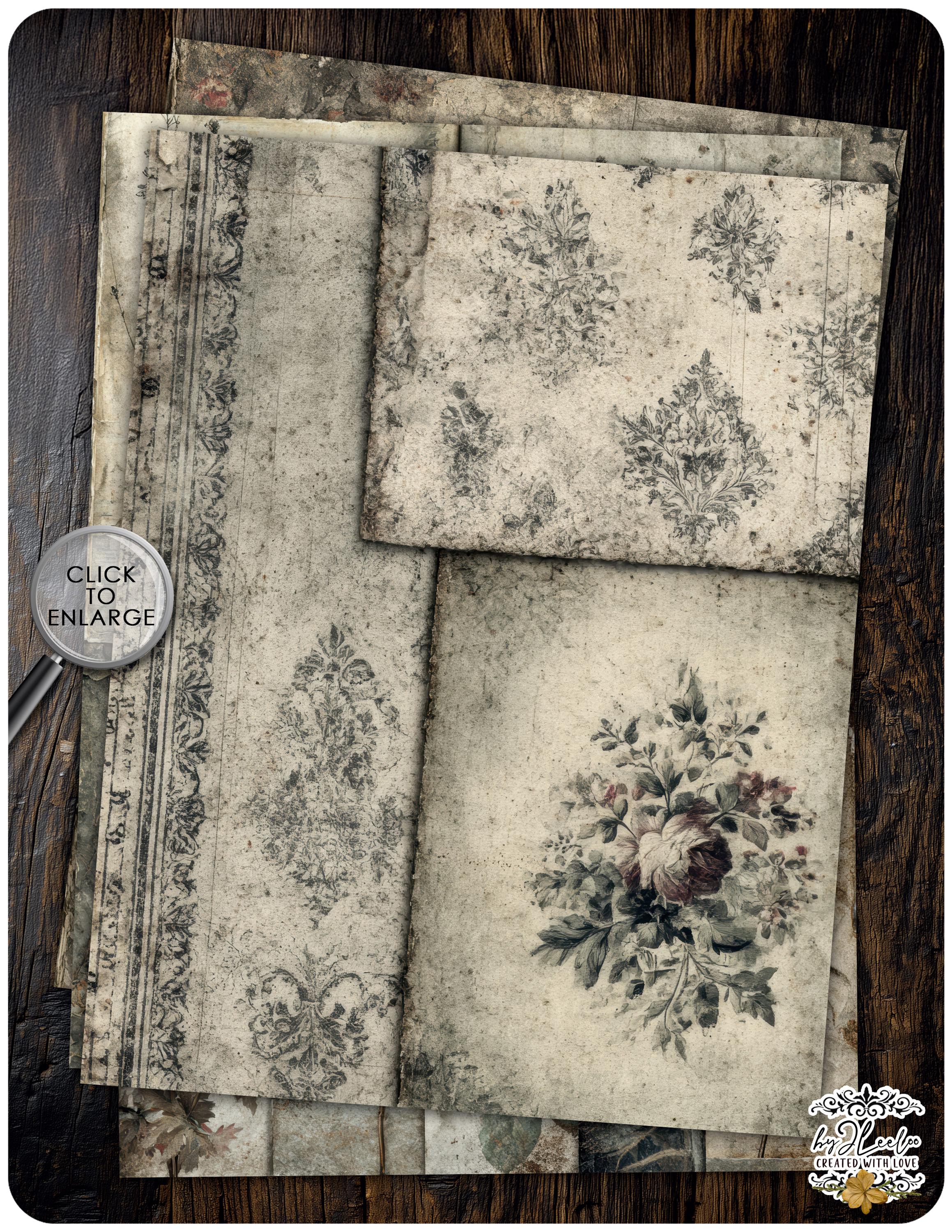 Each sheet feels like a preserved memory, softly aged and touched by time — perfect for layering into your junk journals, collages, and paper art.