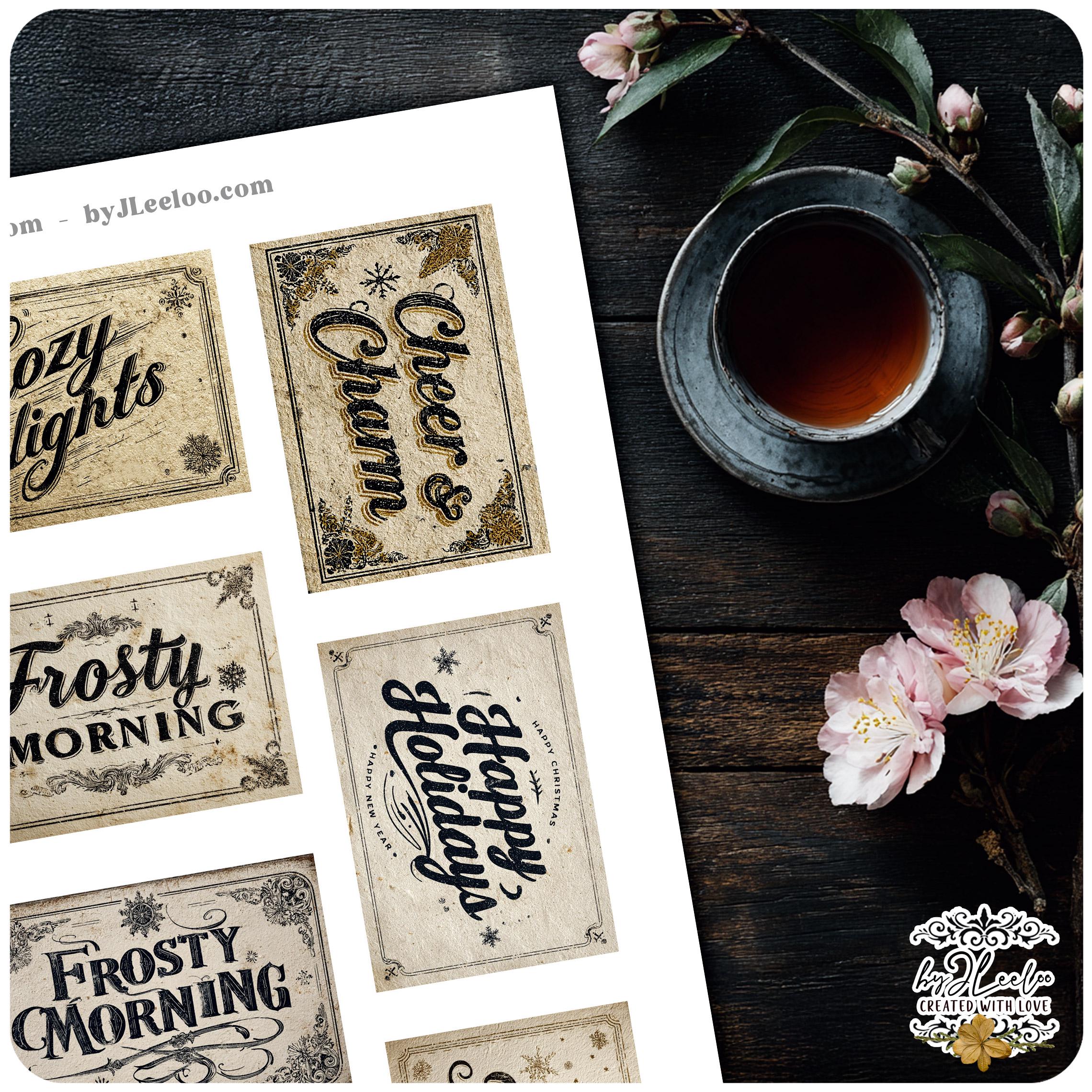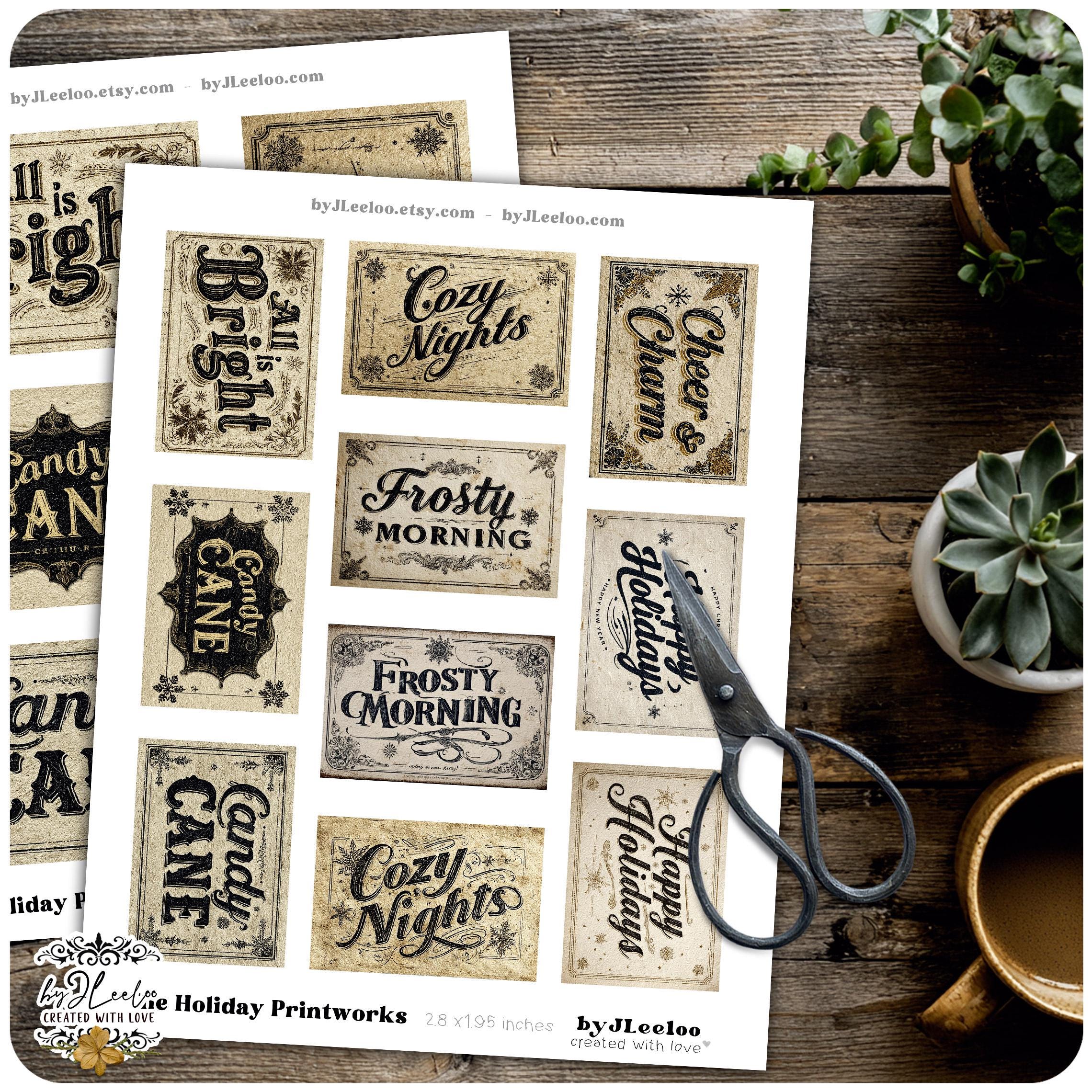 Perfect for junk journals, festive tags, cards, or wrapping accents that feel printed in an old letterpress workshop on a snowy afternoon.