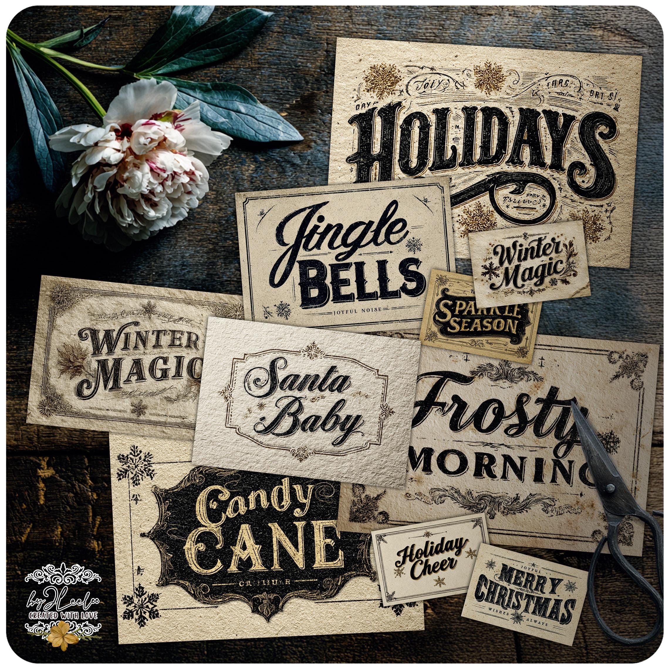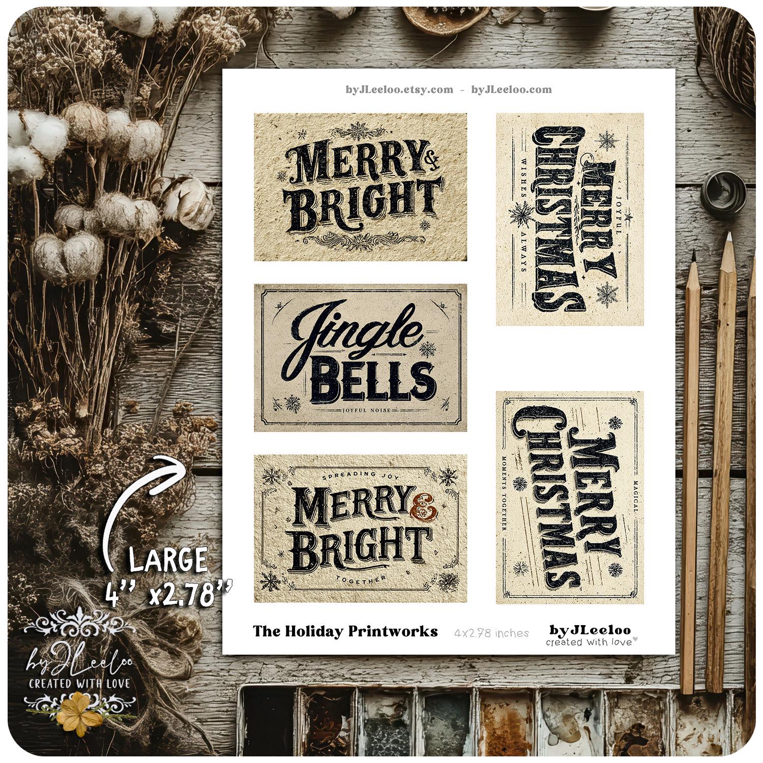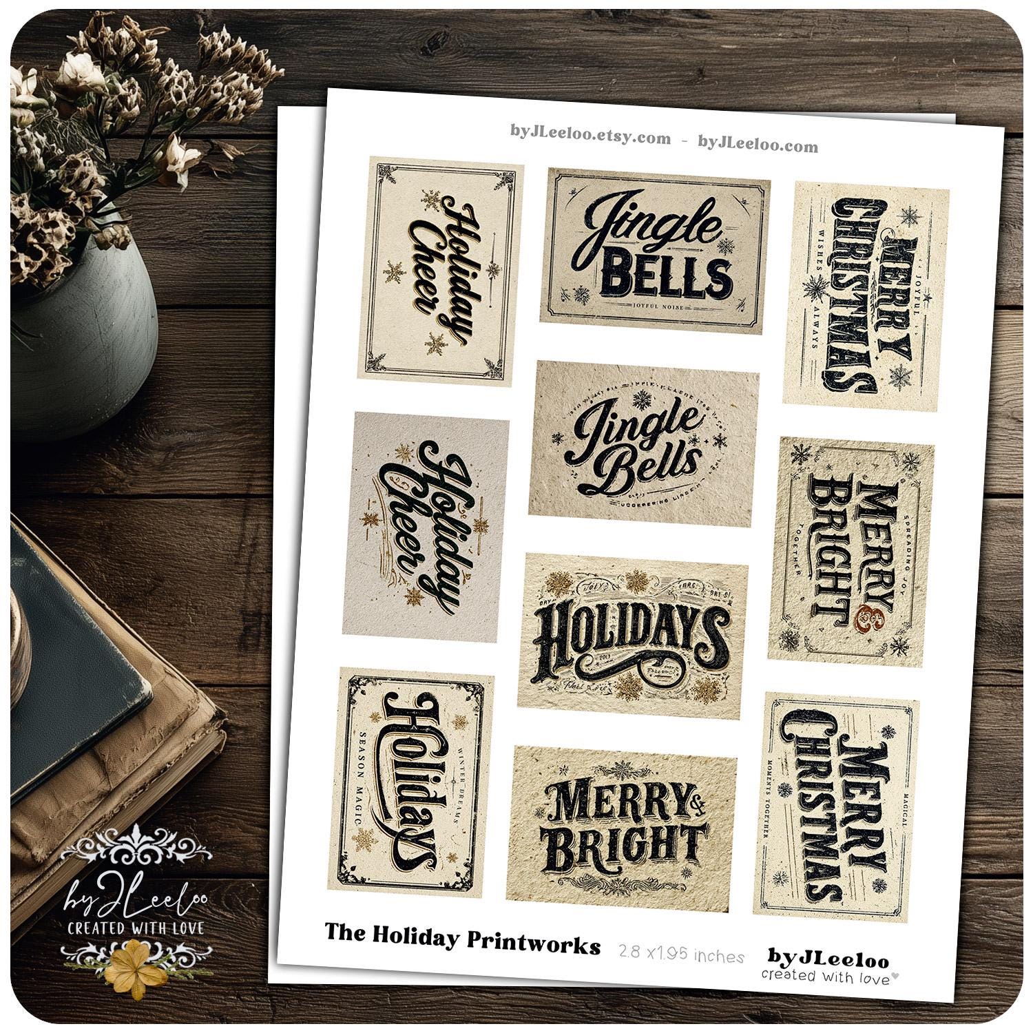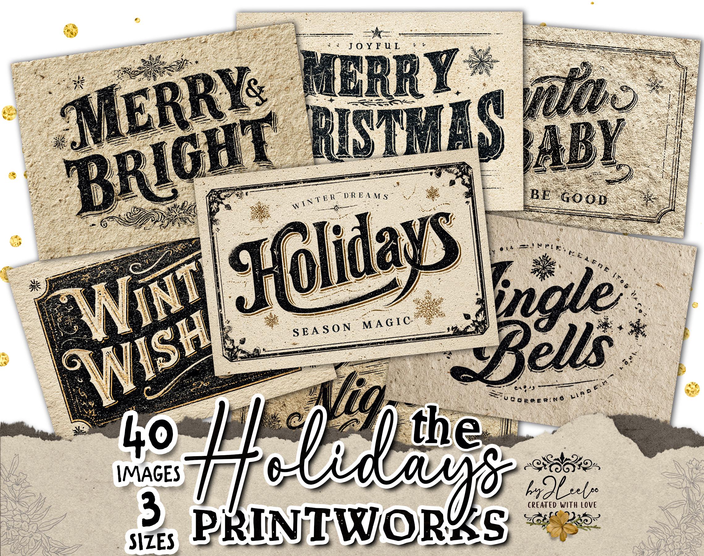 THE HOLIDAY PRINTWORKS – Vintage Christmas Letterpress Signs & Typographic Labels Collection for Junk Journals & Holiday Crafts | tl306