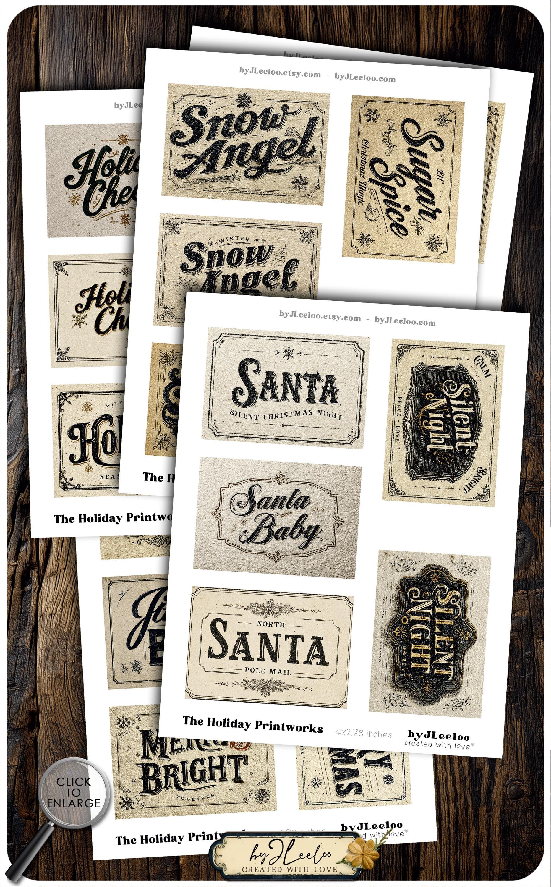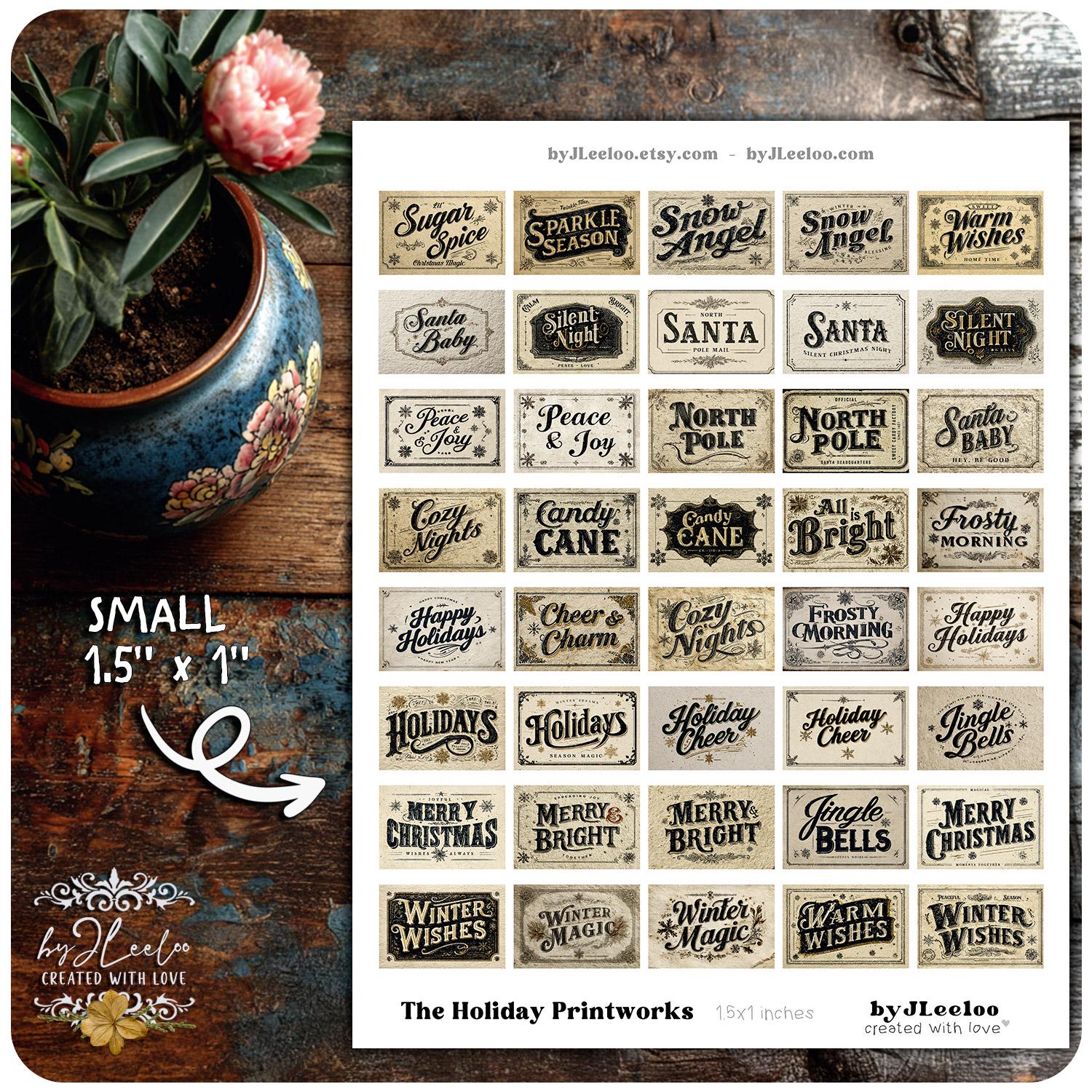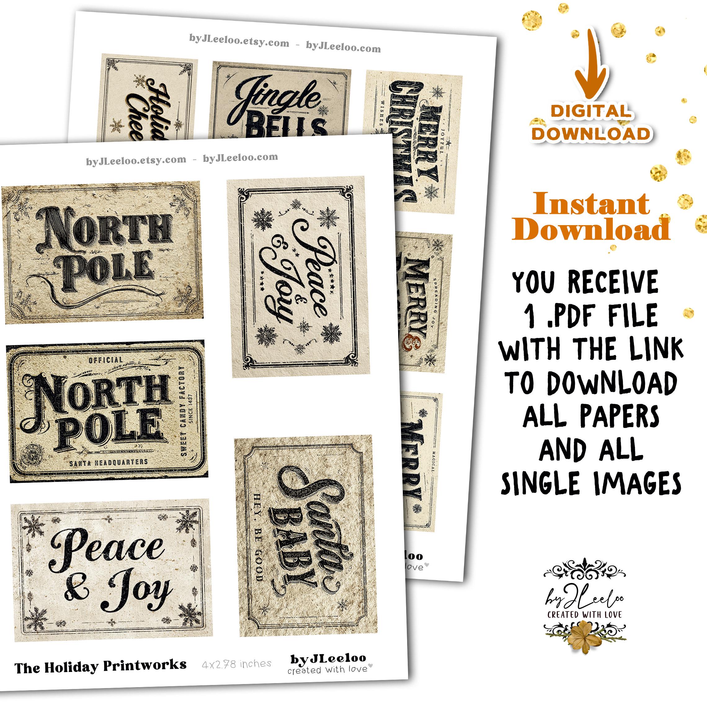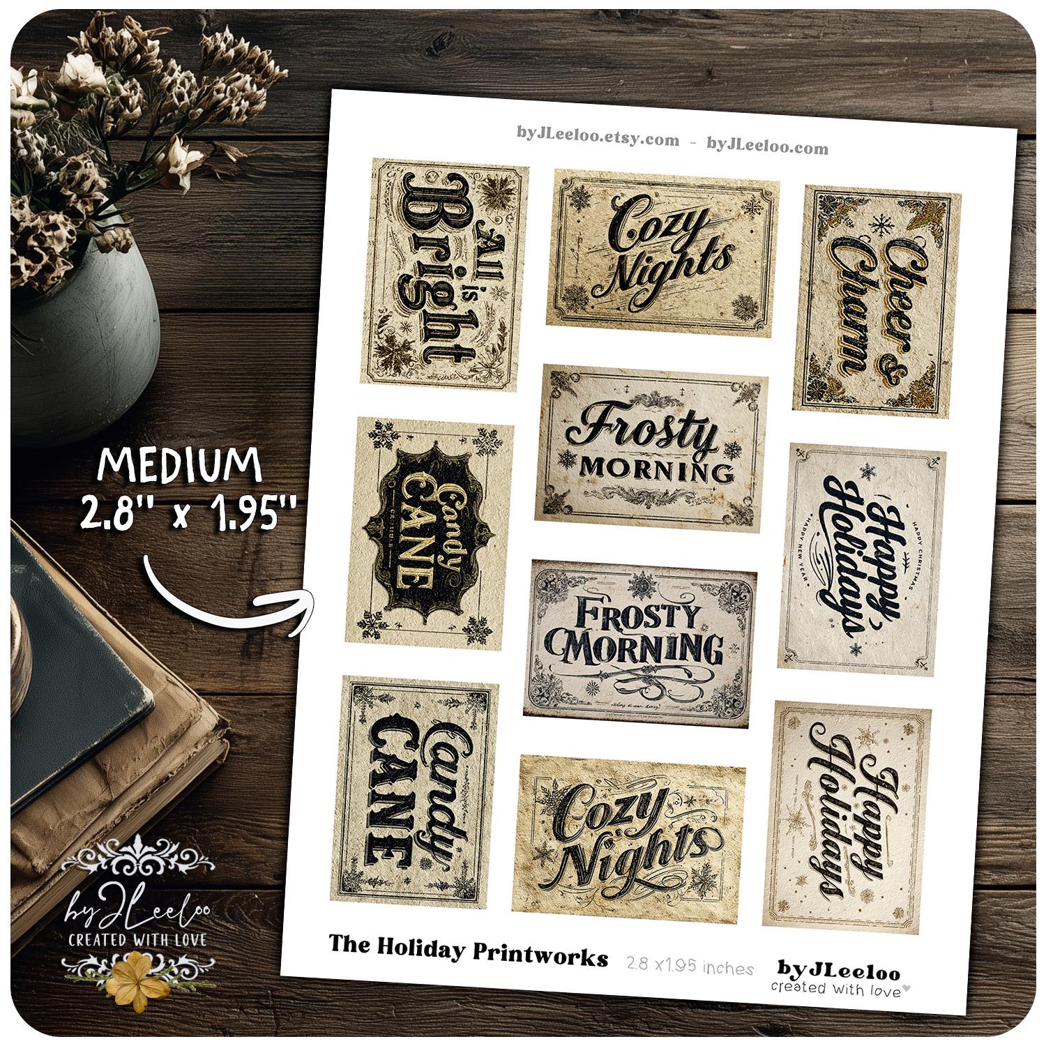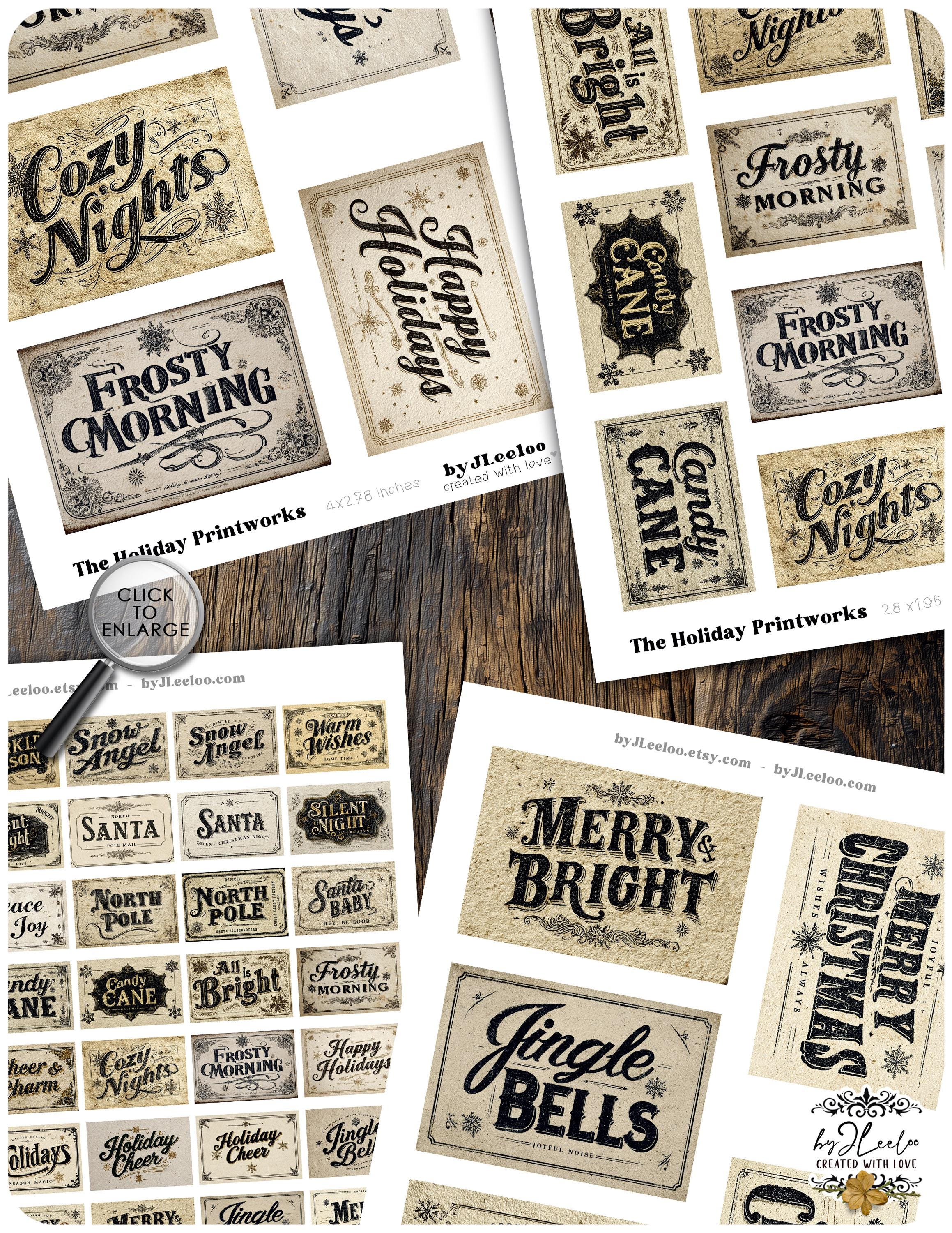 THE HOLIDAY PRINTWORKS – Vintage Christmas Letterpress Signs & Typographic Labels Collection for Junk Journals & Holiday Crafts | tl306
