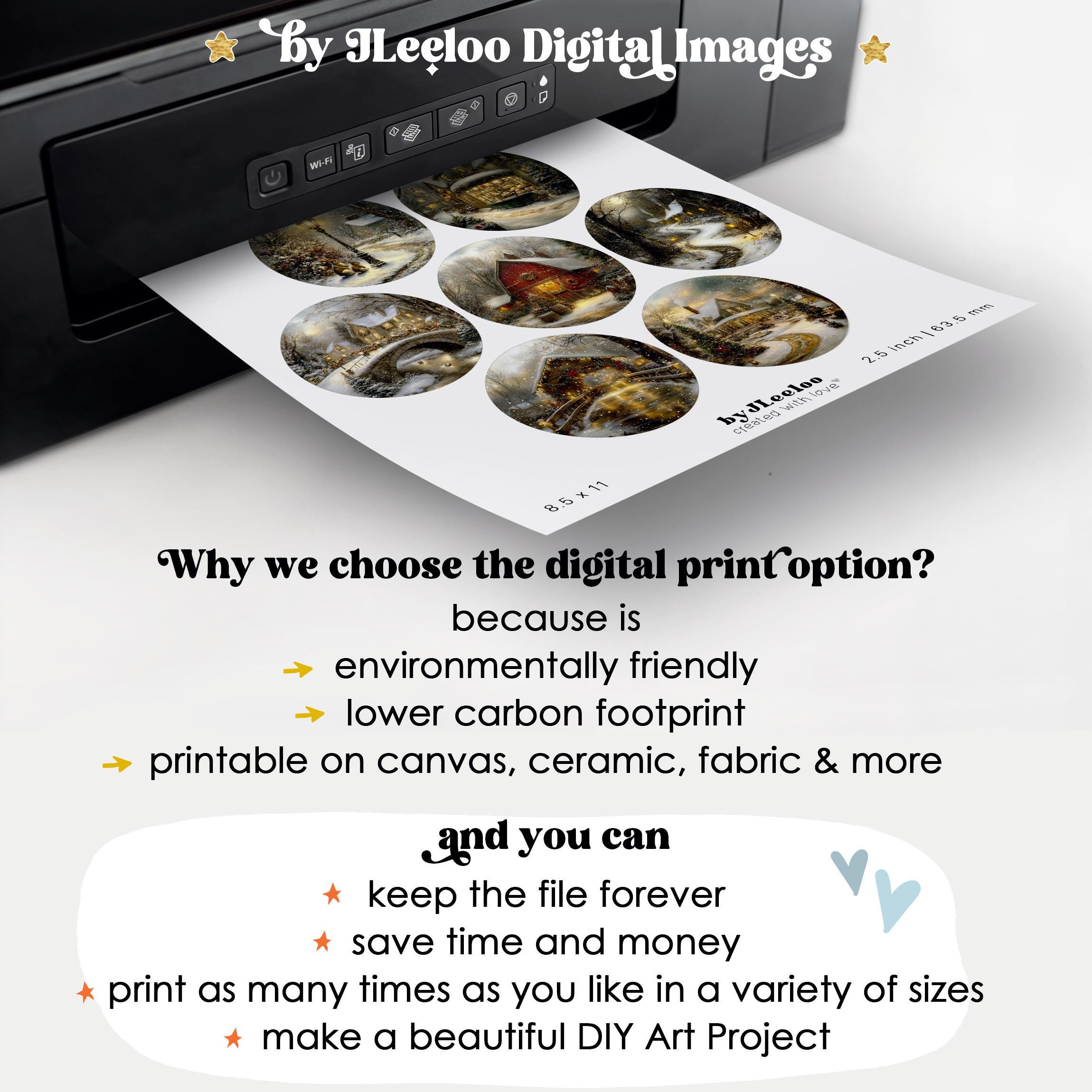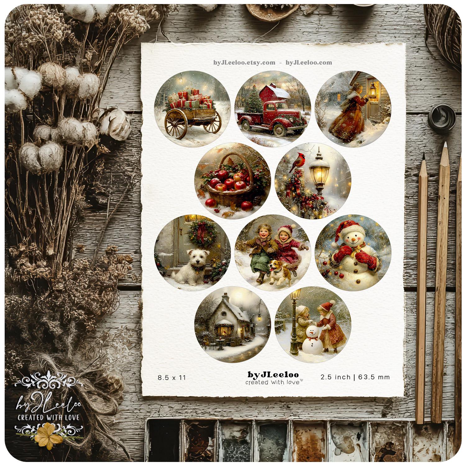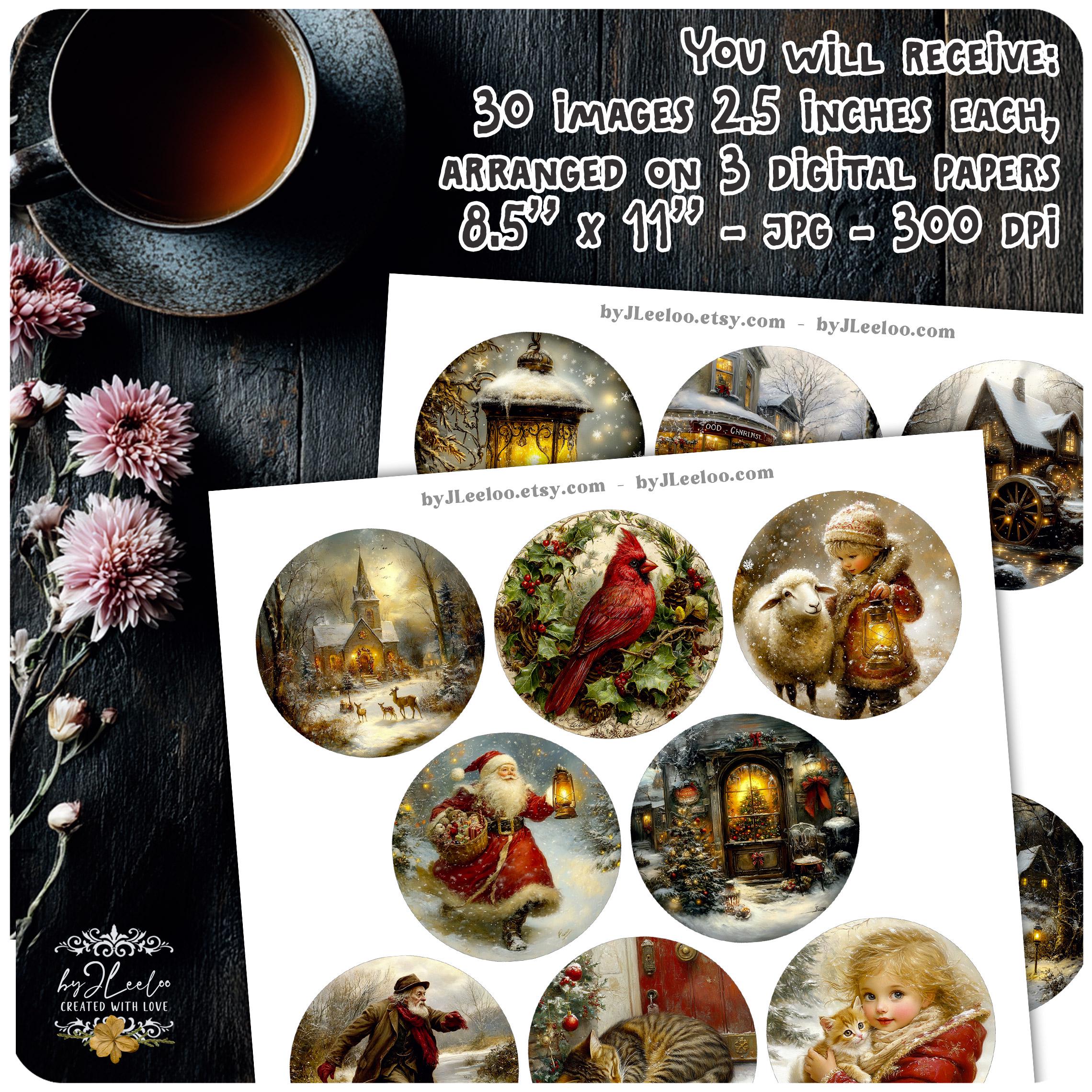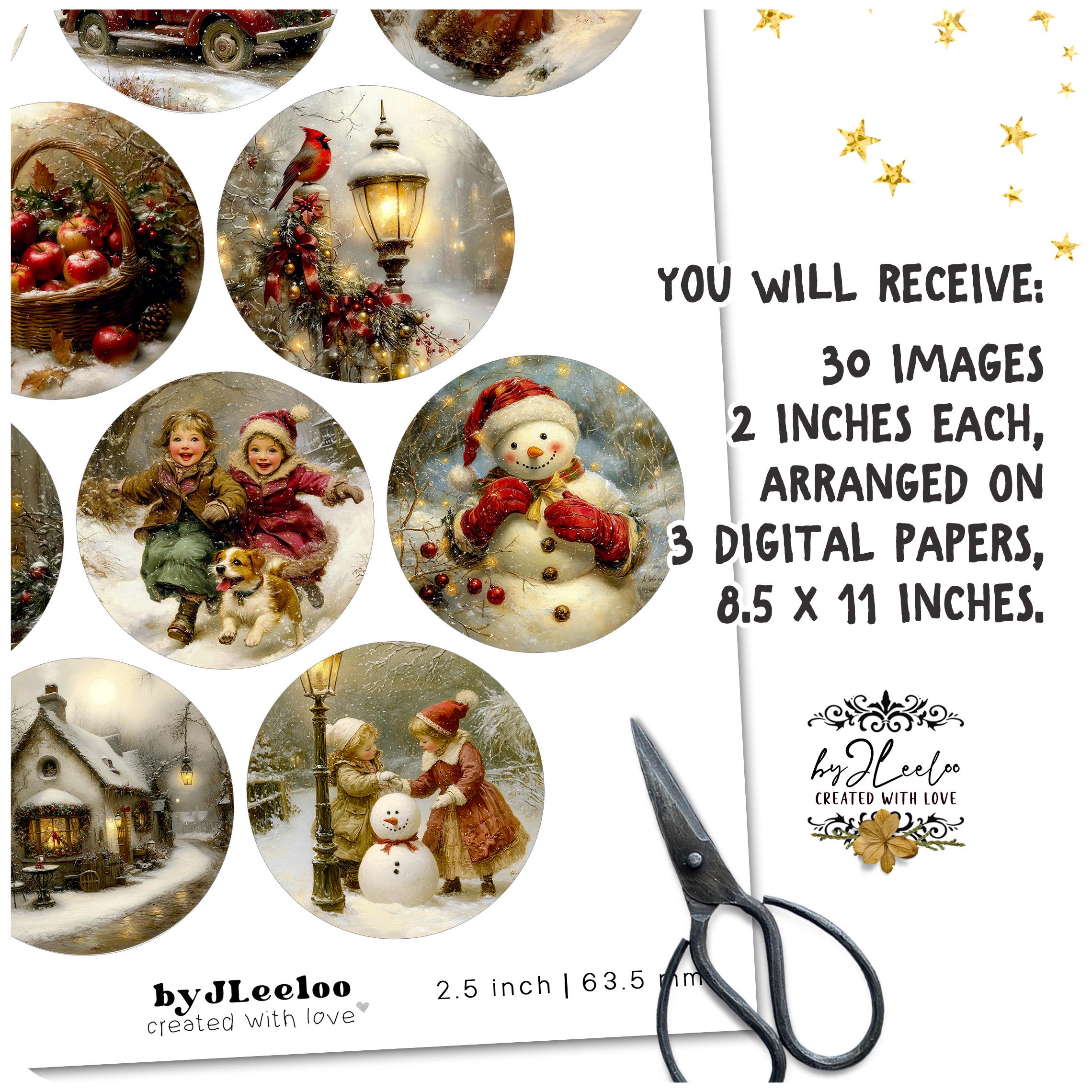 ➜ 30 charming images in 2.5 inch, a harmonious blend of winter magic and coziness, placed in 3 digital papers 8.5 x 11 inch
