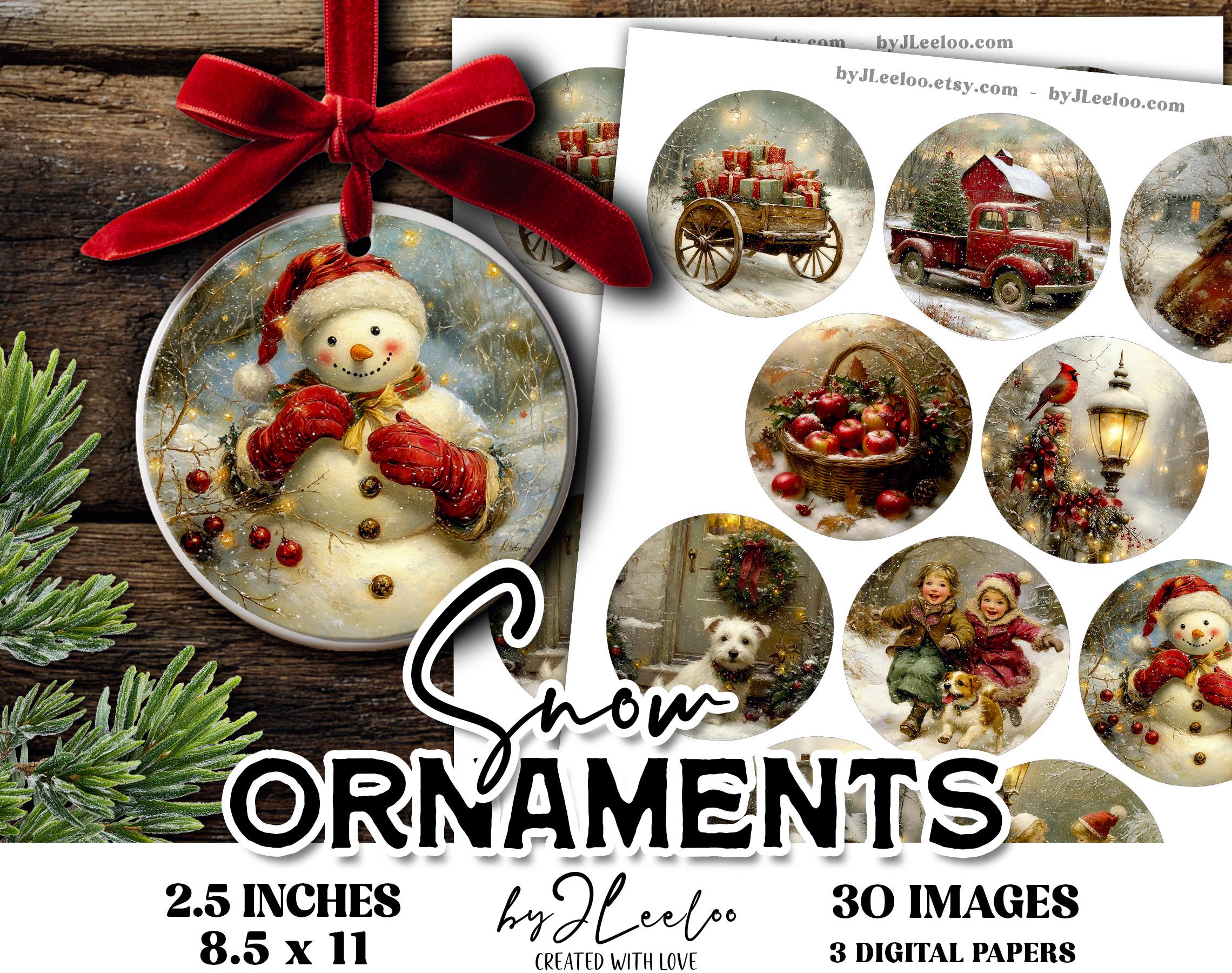 SNOW ORNAMENTS – 2.5 Inch Christmas Round Fine Art Images | Crafts, Ornaments, Coasters, Vintage Holiday Circles, Printable Ephemera | tn848
