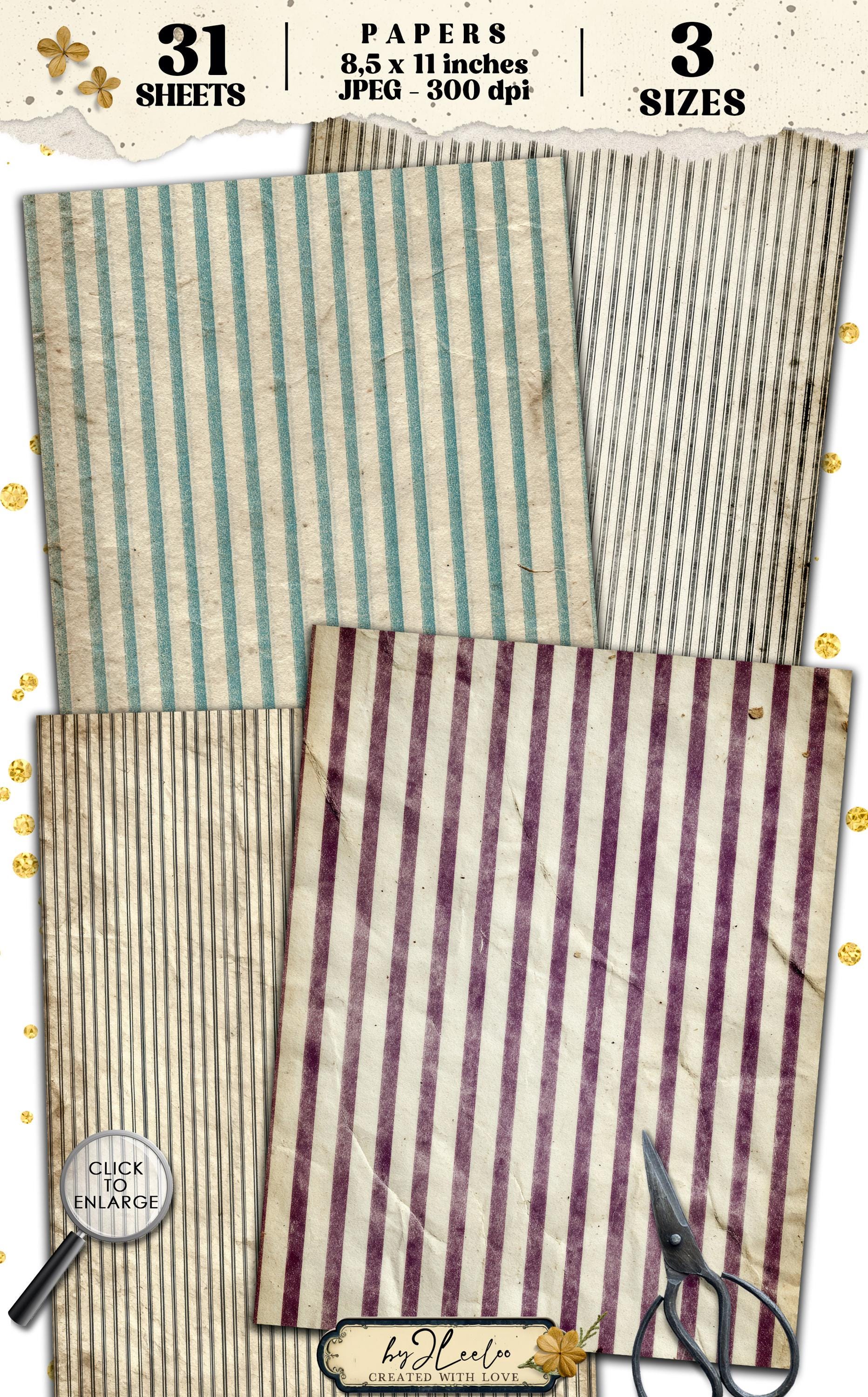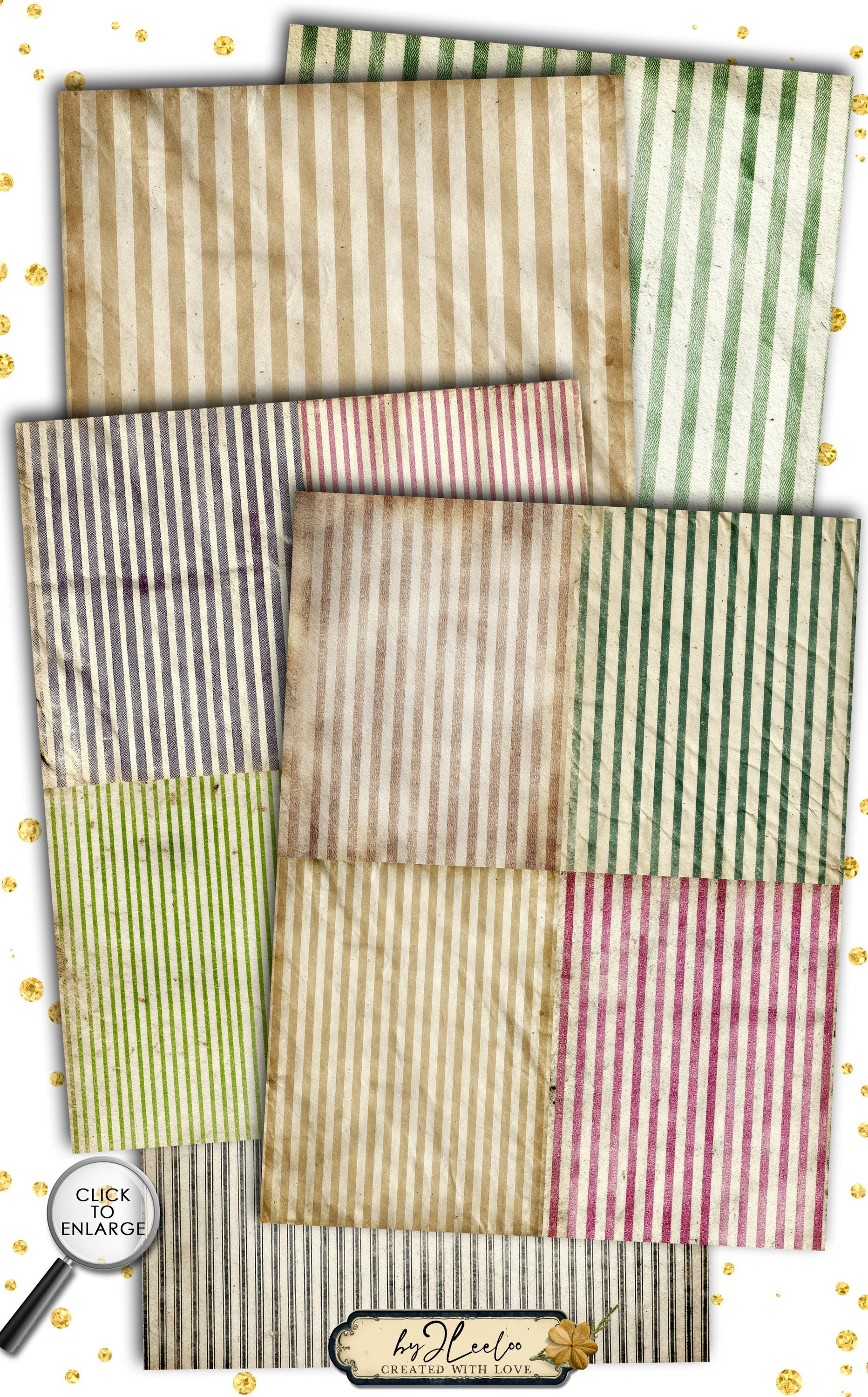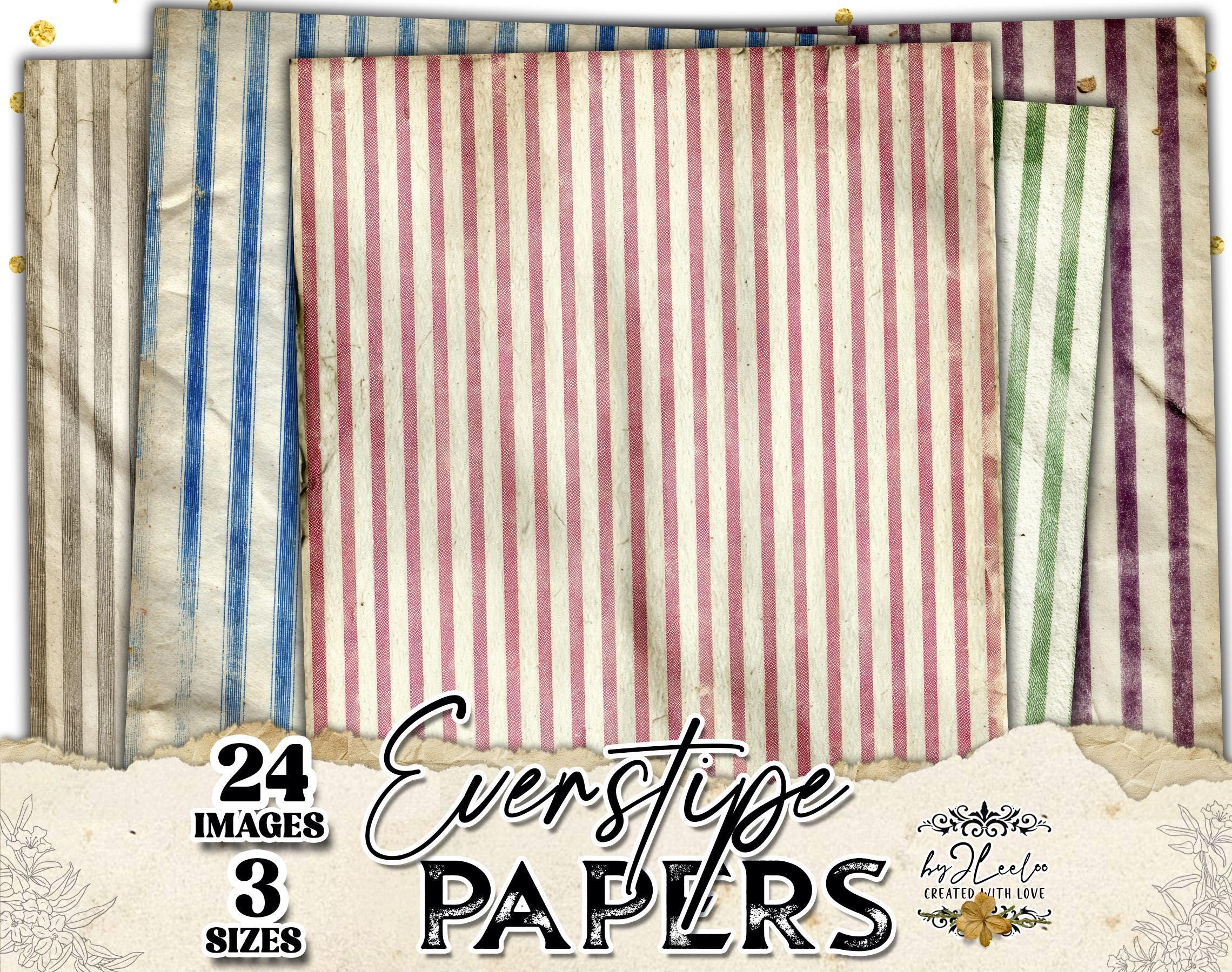 EVERSTRIPE PAPERS – Vintage Striped Printable Backgrounds, Aged Paper Textures, Neutral & Seasonal Colors, Junk Journal Scrapbooking | ppK03