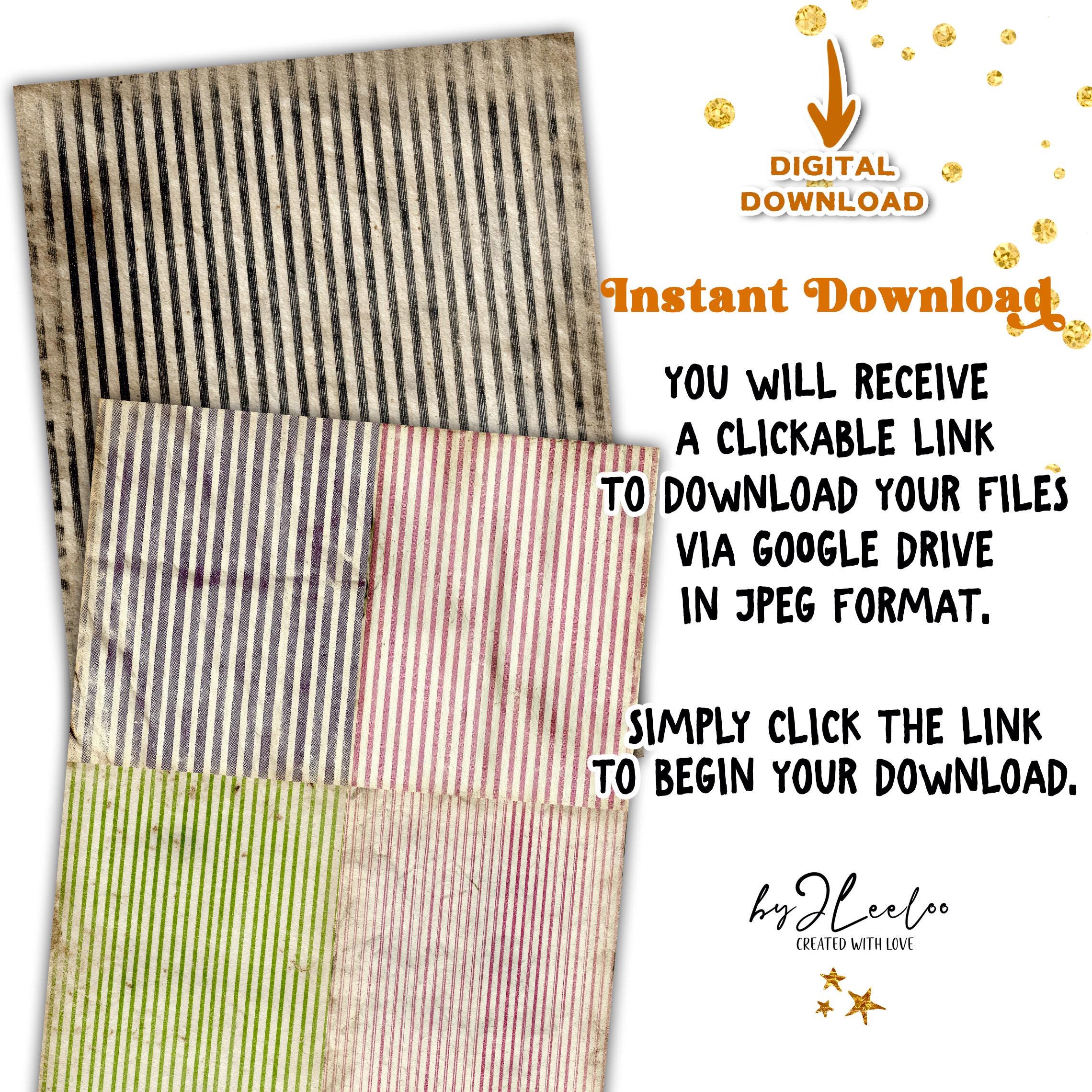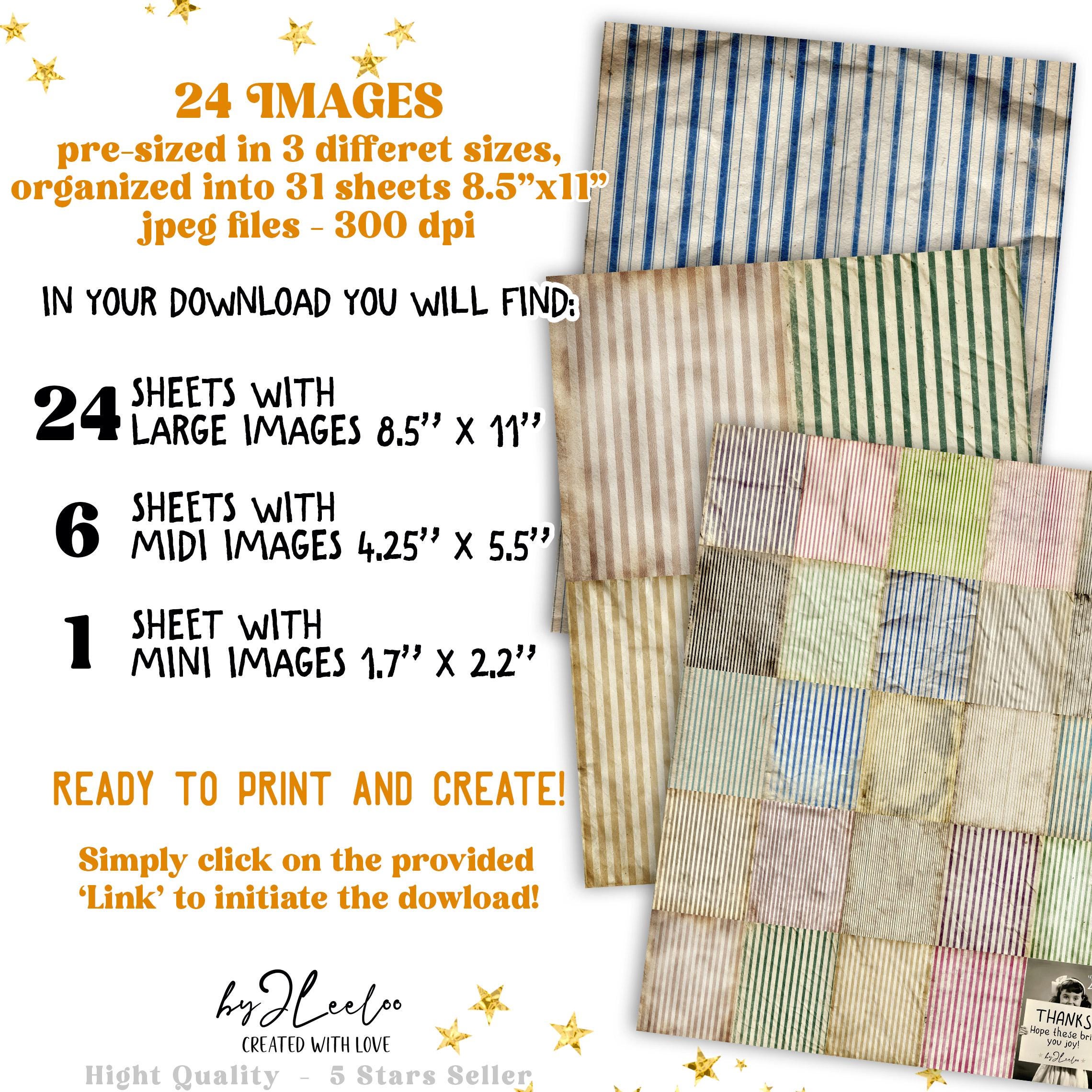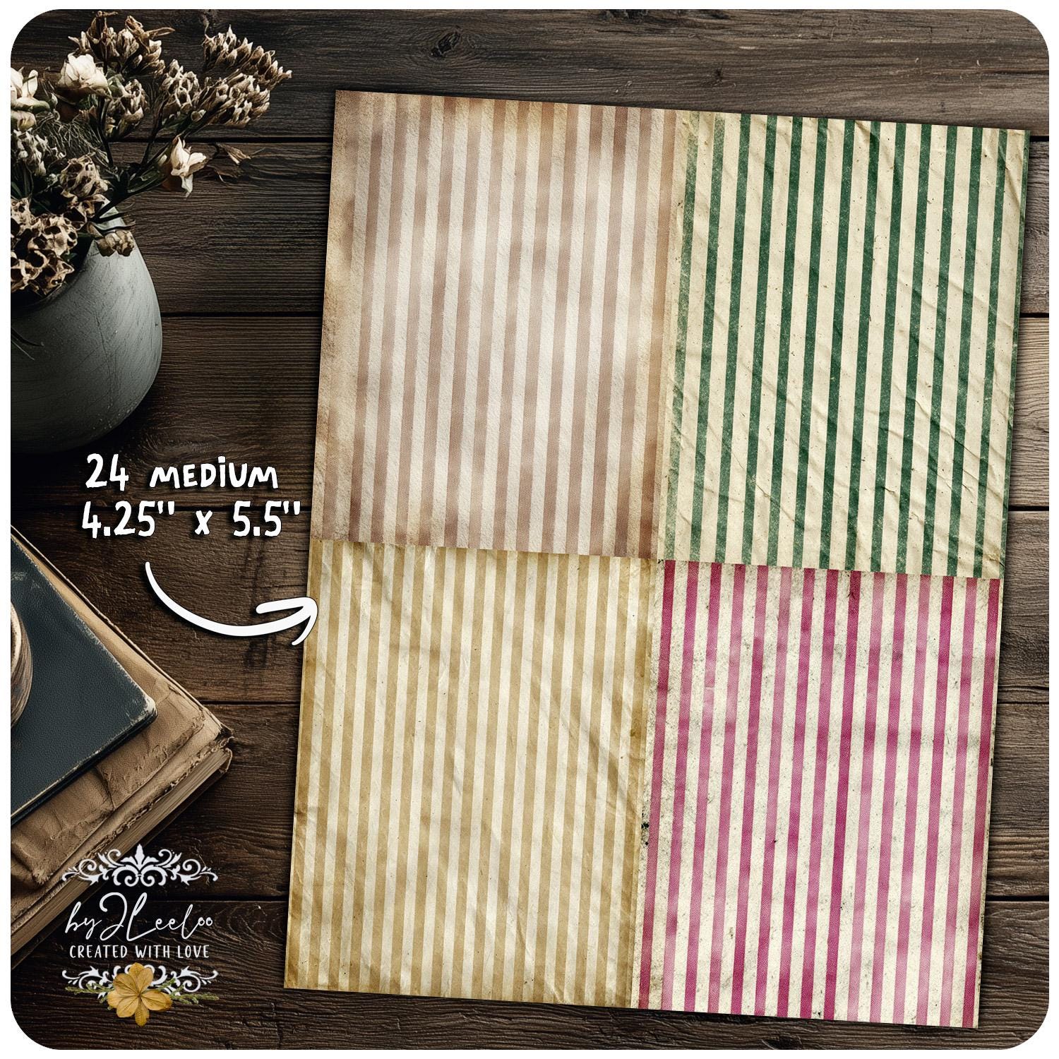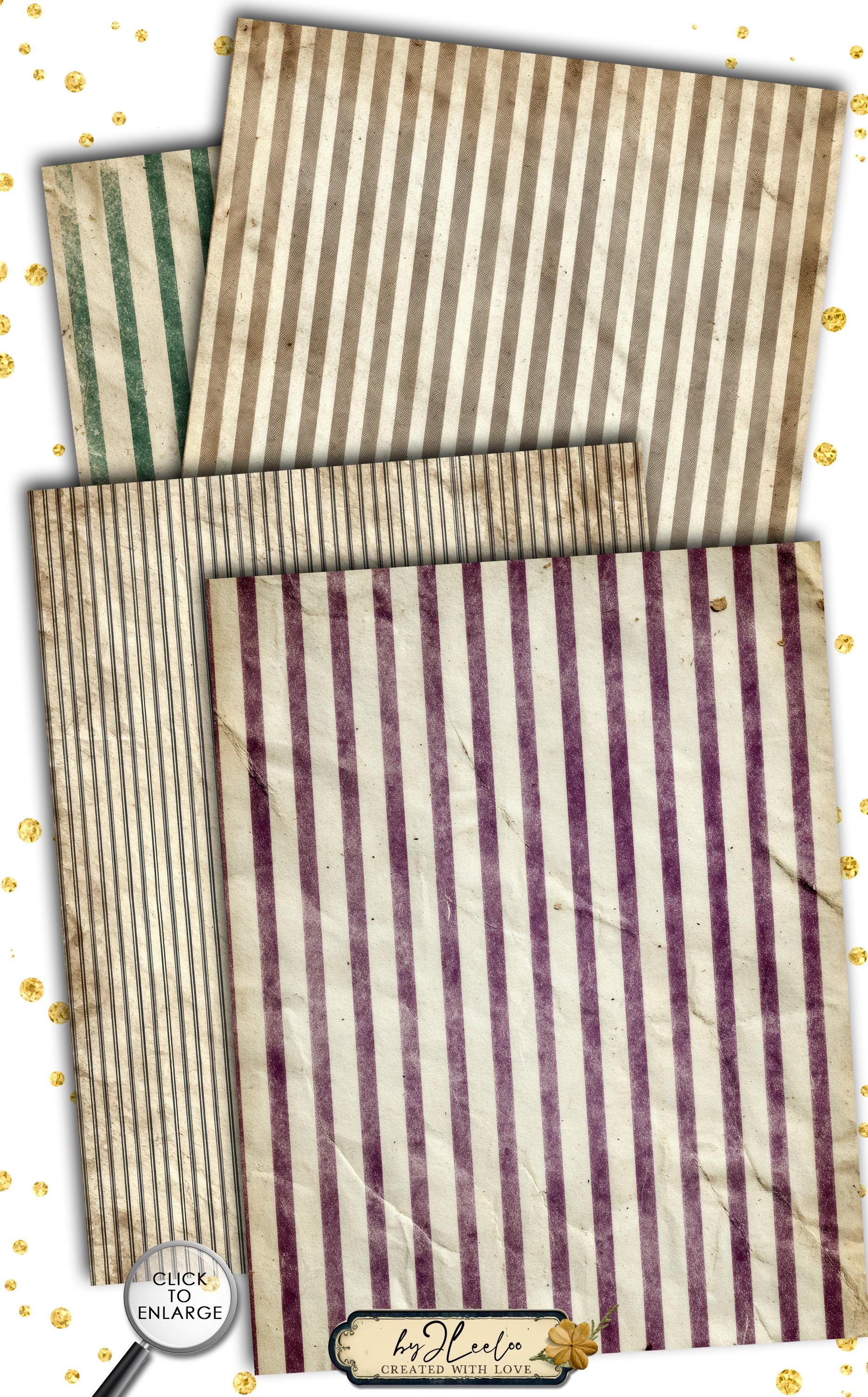 EVERSTRIPE PAPERS – Vintage Striped Printable Backgrounds, Aged Paper Textures, Neutral & Seasonal Colors, Junk Journal Scrapbooking | ppK03