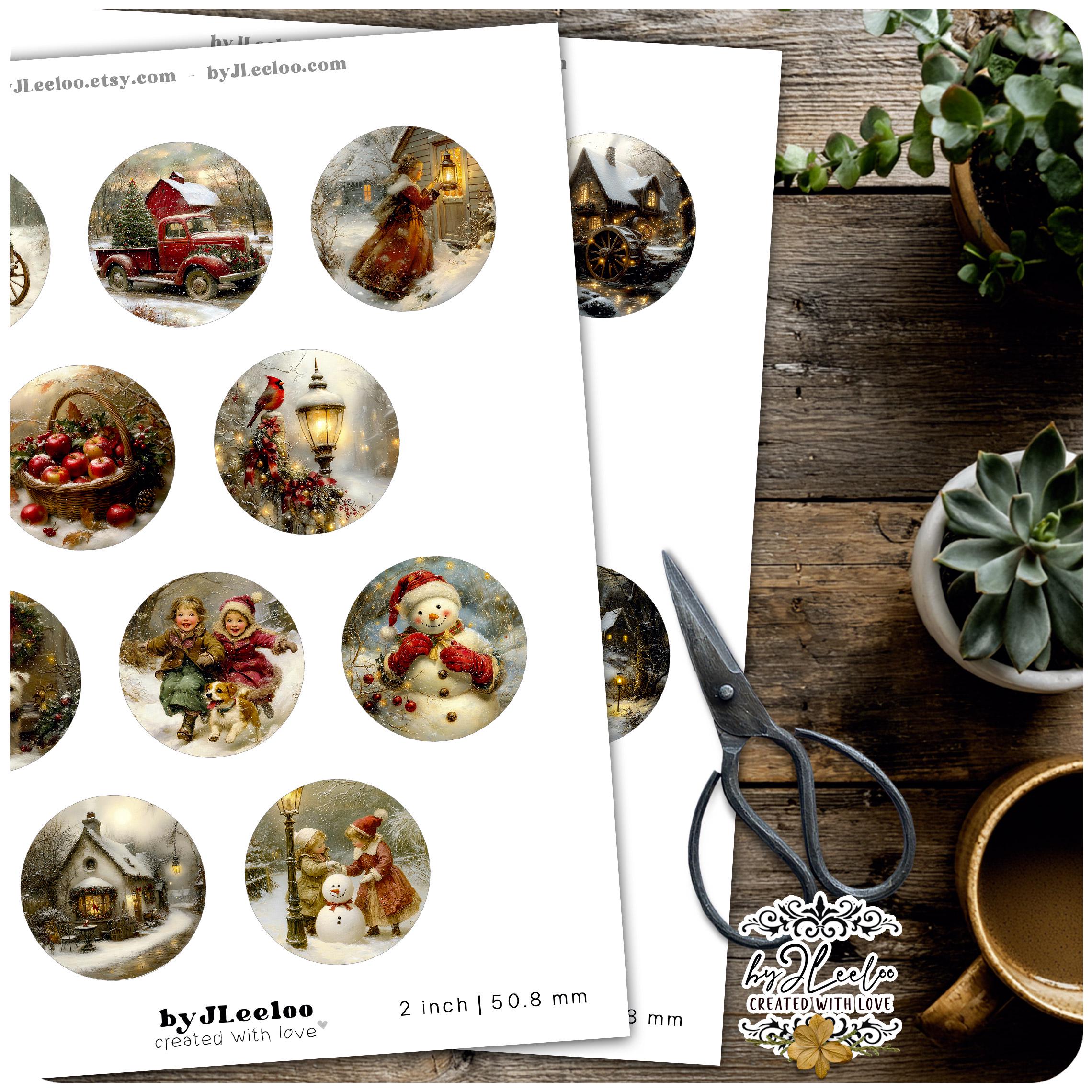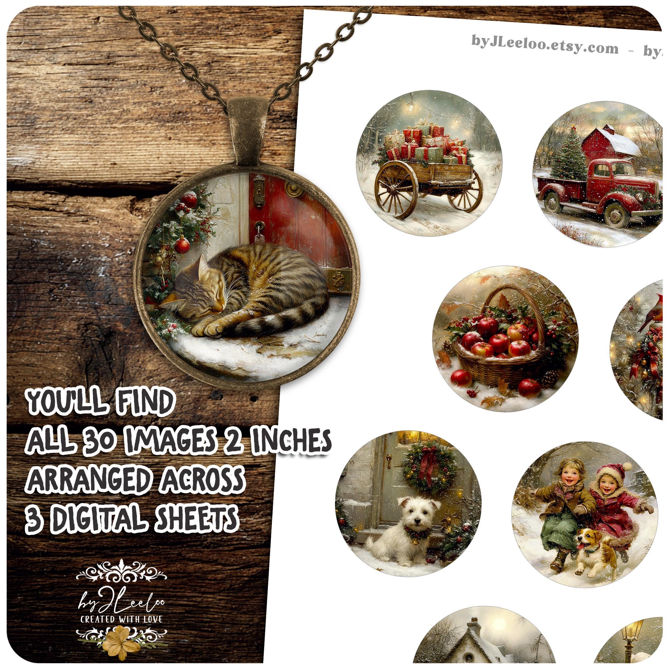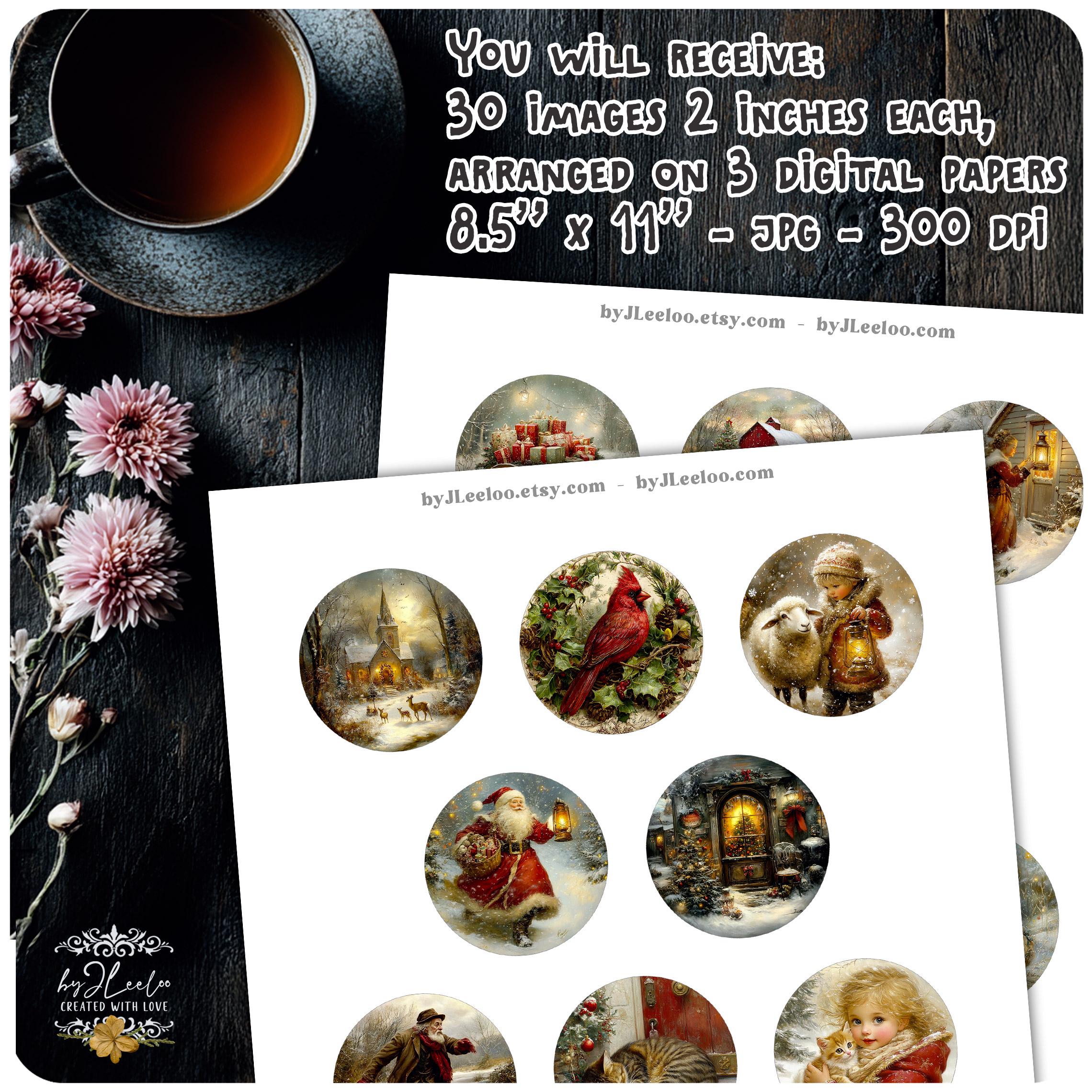 This 2" size is perfect for ornaments, pendants, magnets, bottlecap crafts, badge reels, cardmaking, keychains, small coasters, resin pieces, and any holiday project that needs a charming, detailed image with a vintage heart.