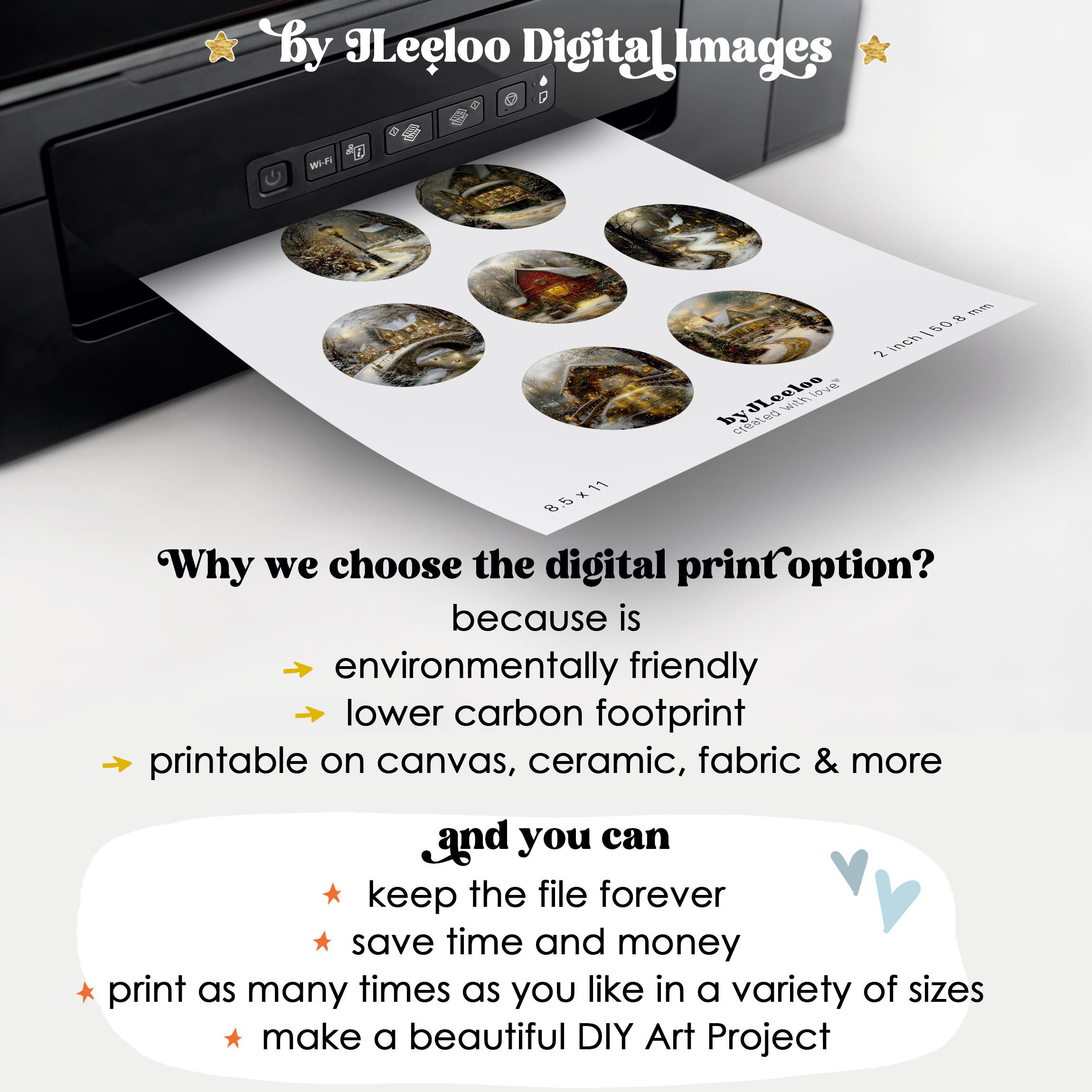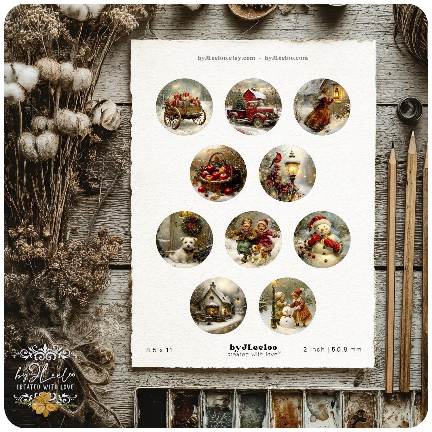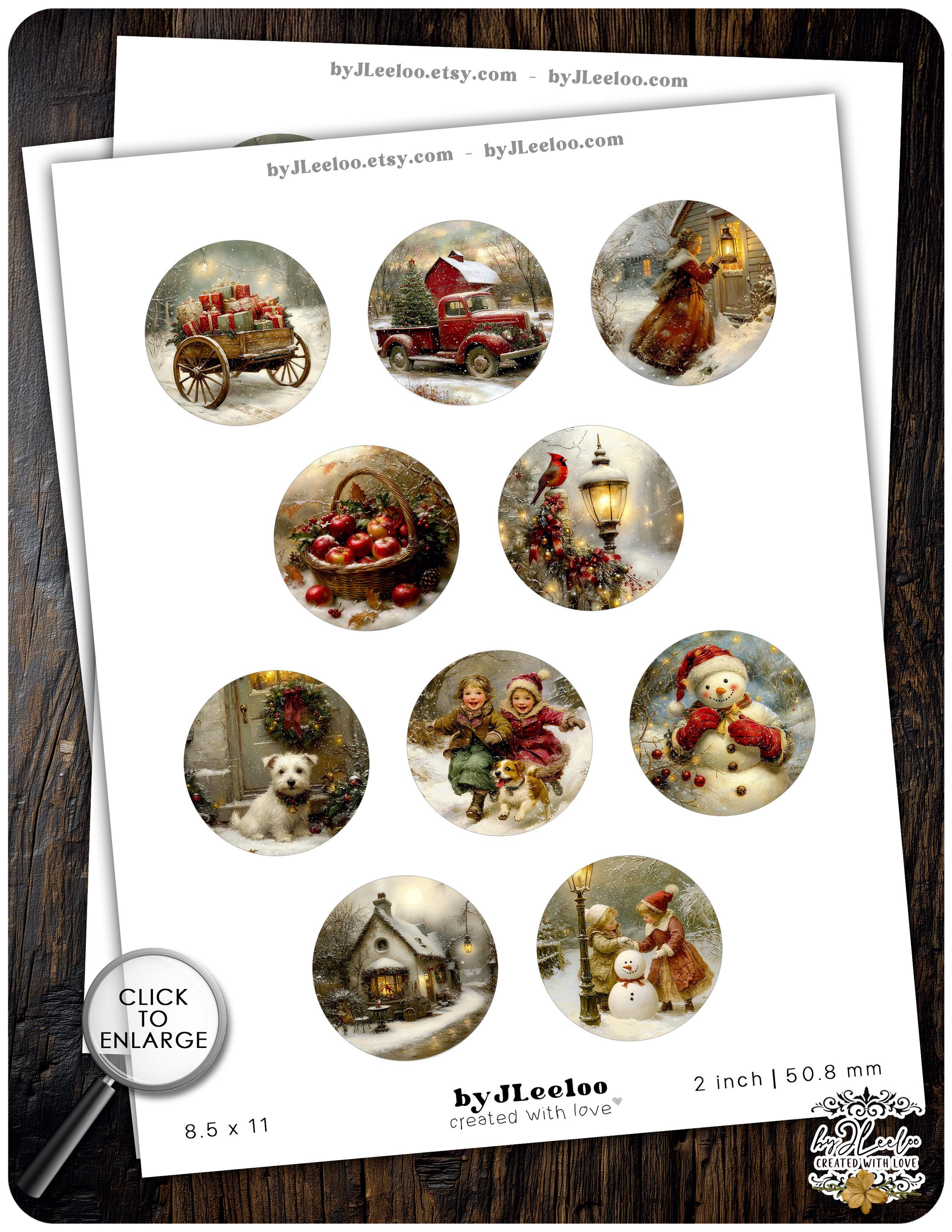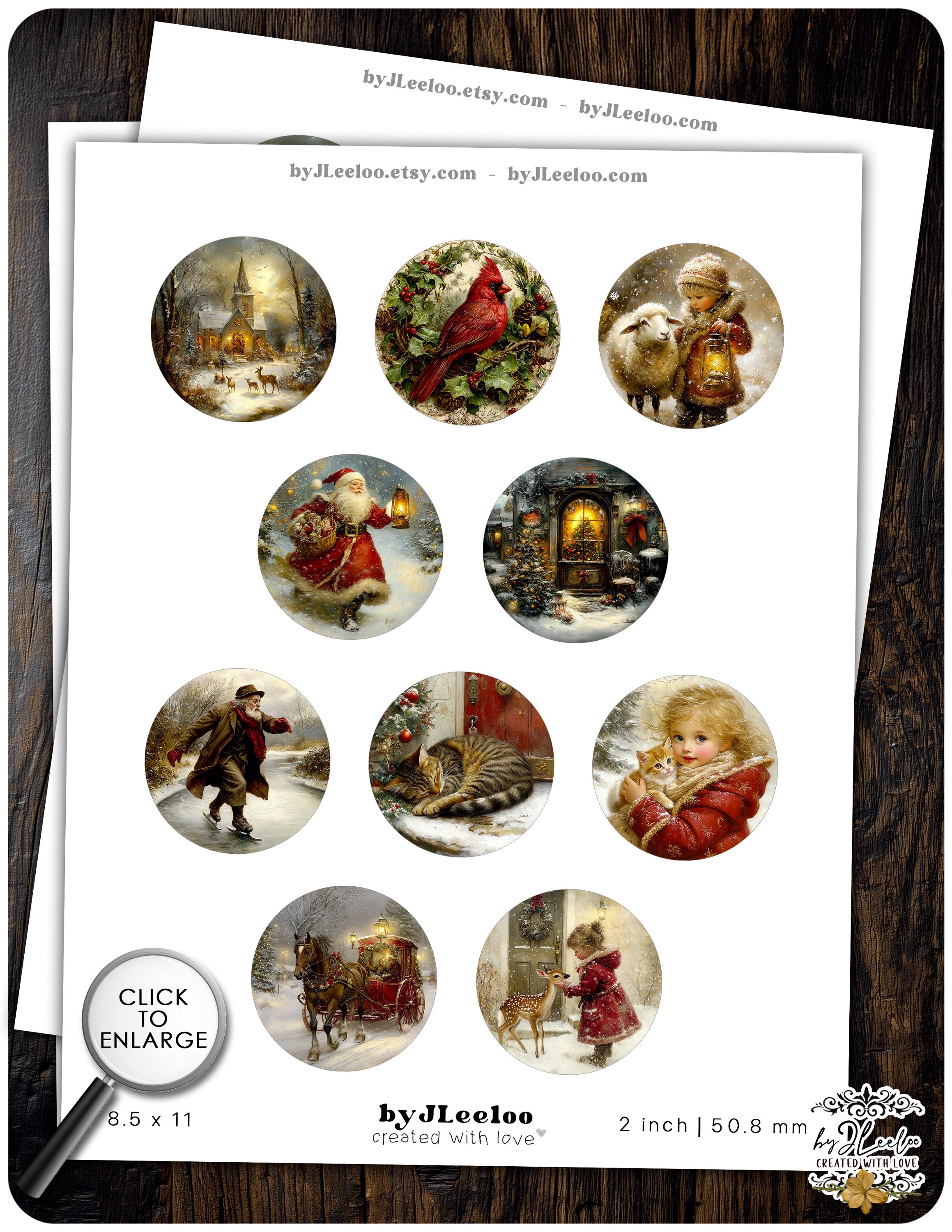 This 2" size is perfect for ornaments, pendants, magnets, bottlecap crafts, badge reels, cardmaking, keychains, small coasters, resin pieces, and any holiday project that needs a charming, detailed image with a vintage heart.