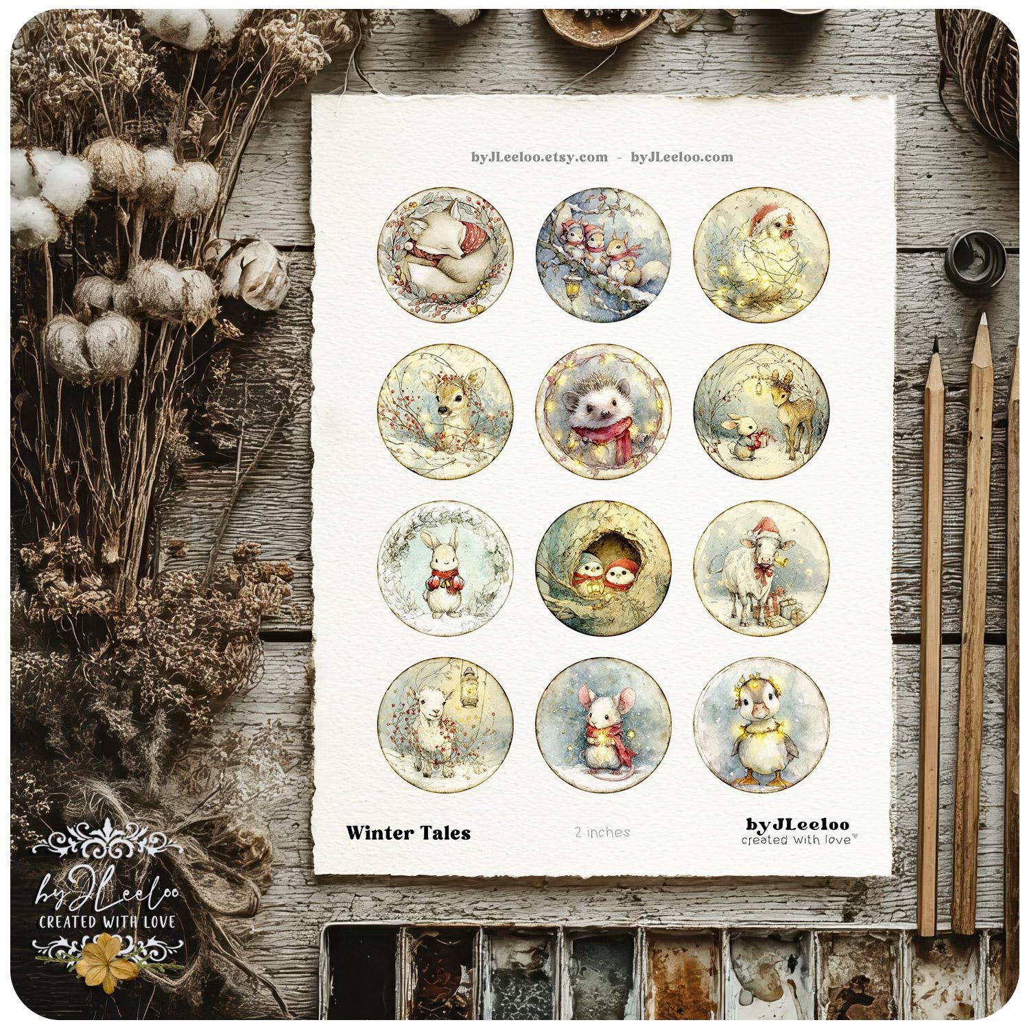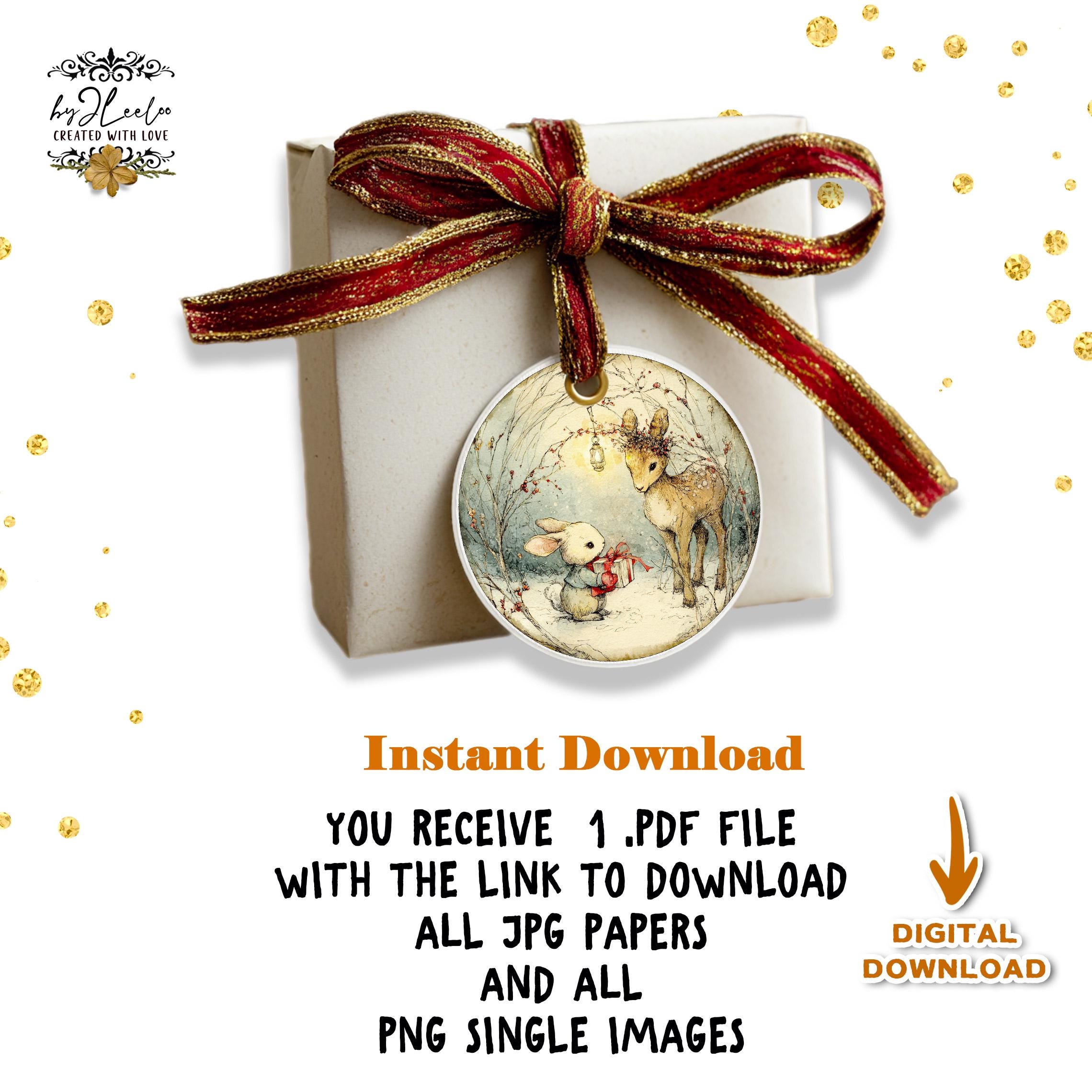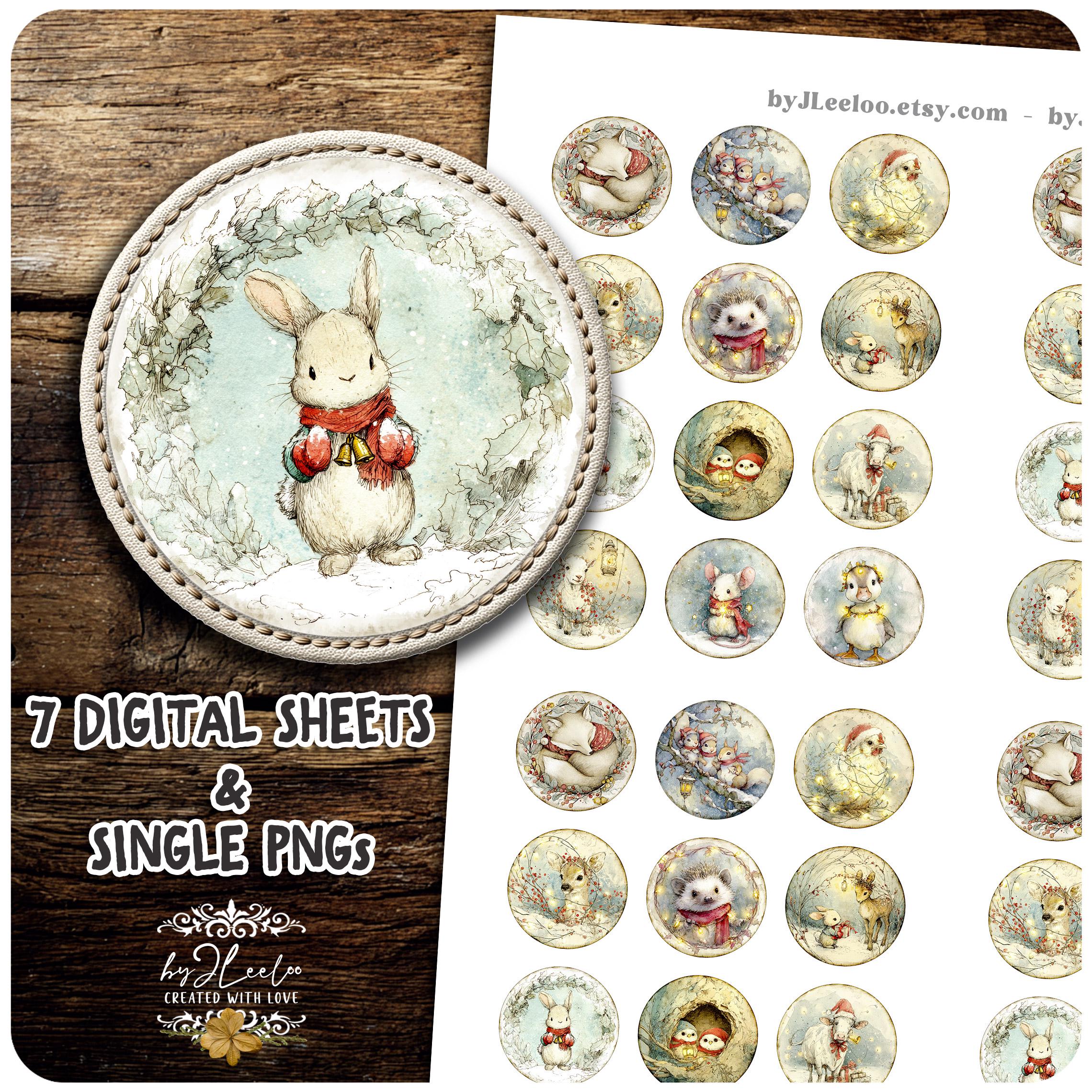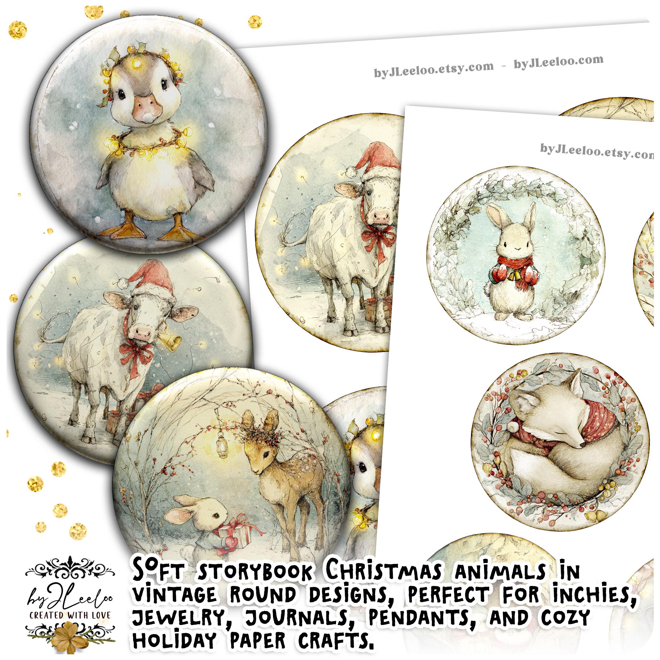 A dreamy collection of round illustrations featuring adorable Christmas woodland critters — perfect for junk journals, collage arts, cards, tags, ornaments, stickers, and cozy seasonal crafts. ✨