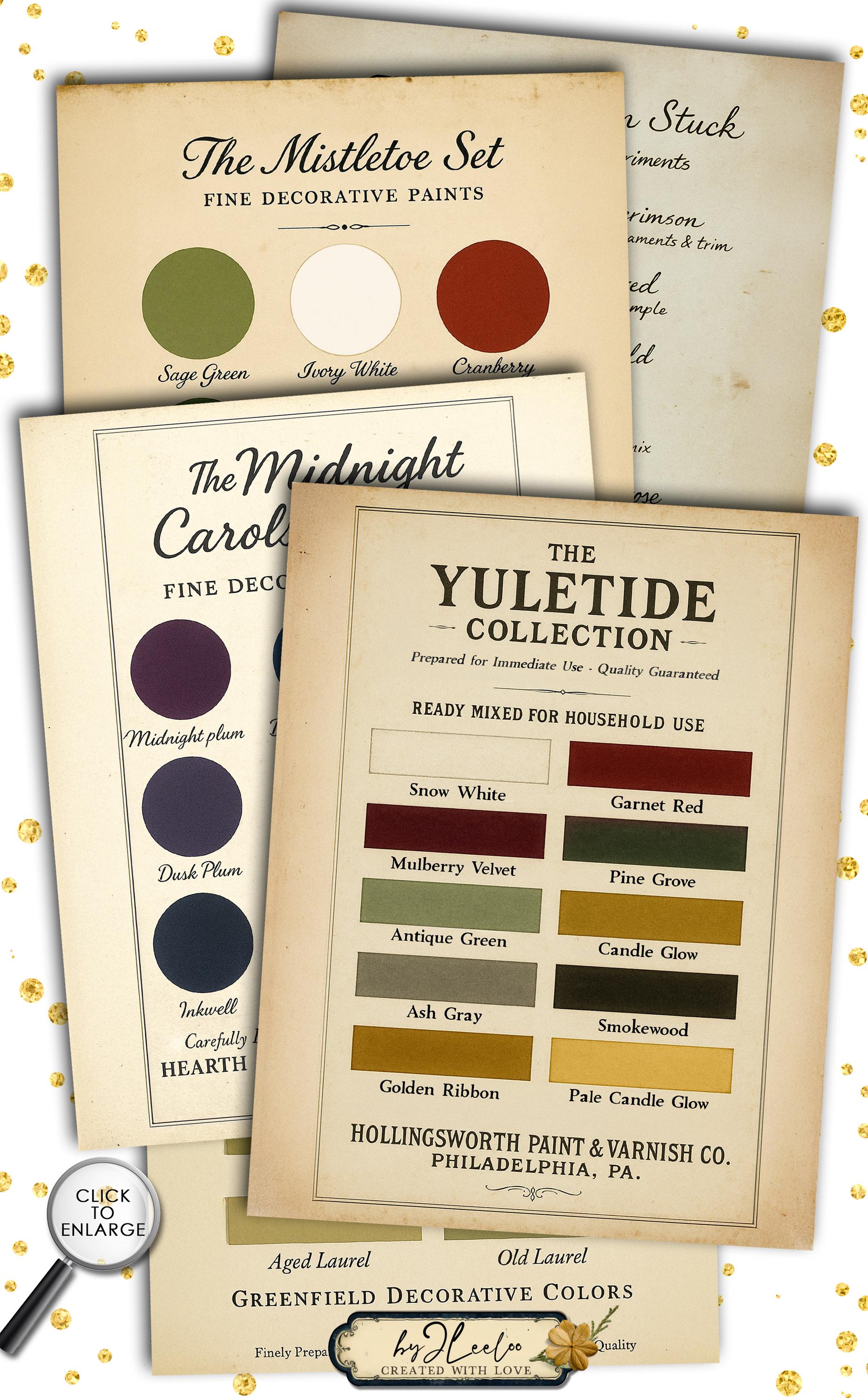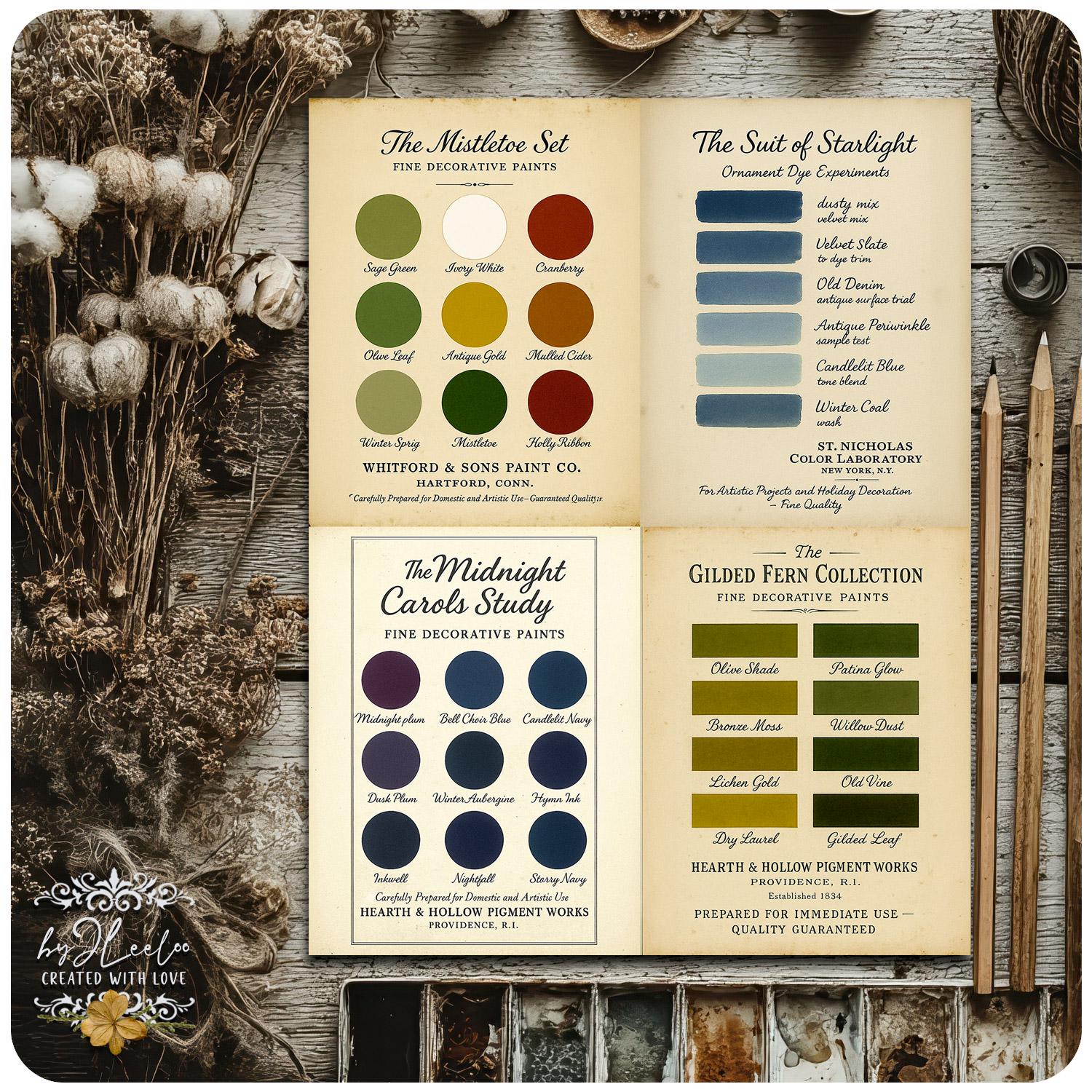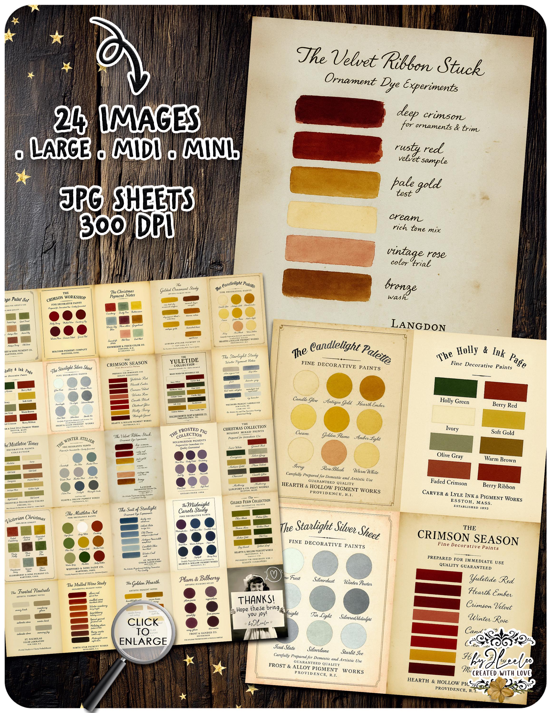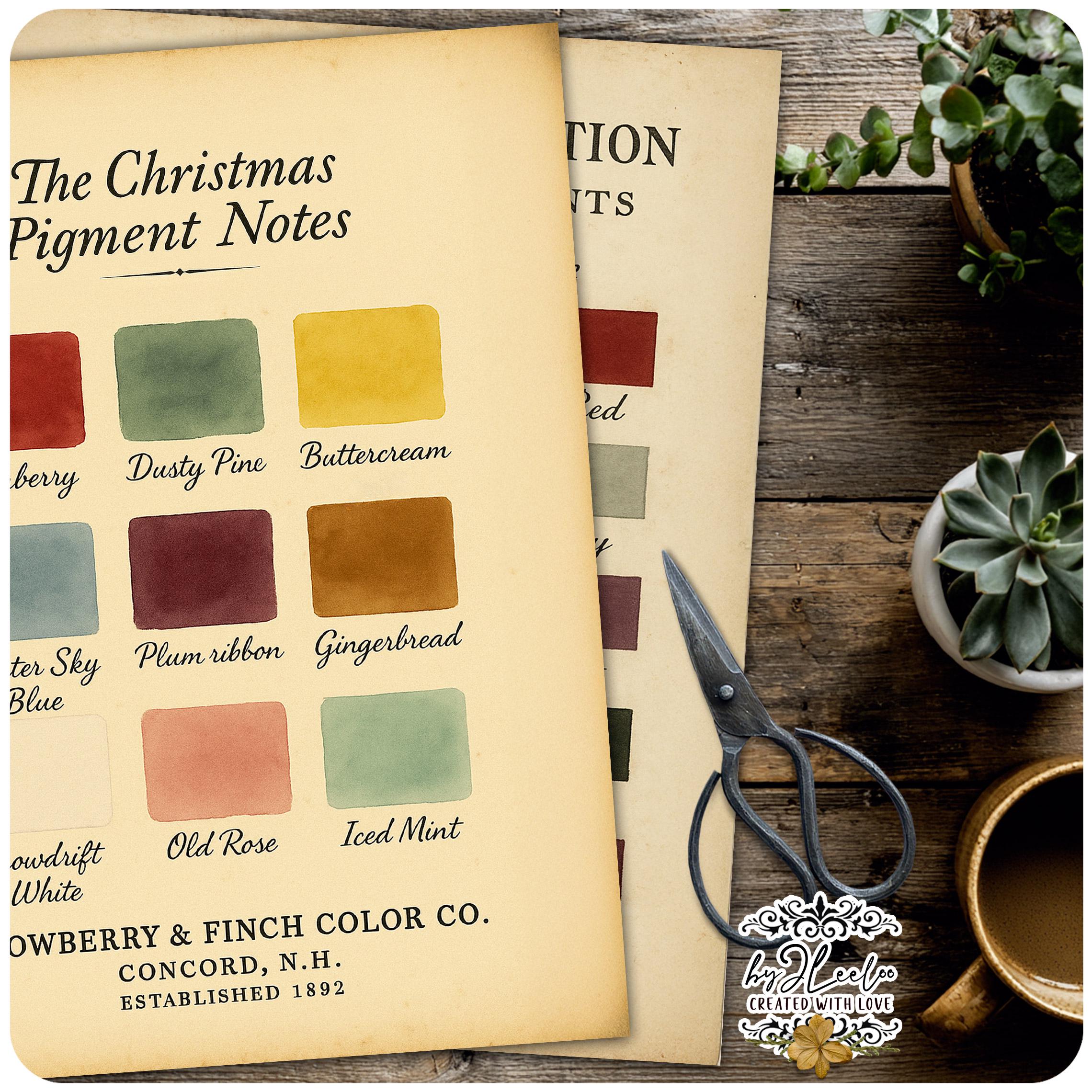 YULETIDE PIGMENTS – Vintage Christmas Color Charts, Retro Paint Swatches, Holiday Palette Printable Ephemera Junk Journal Set | ppK04