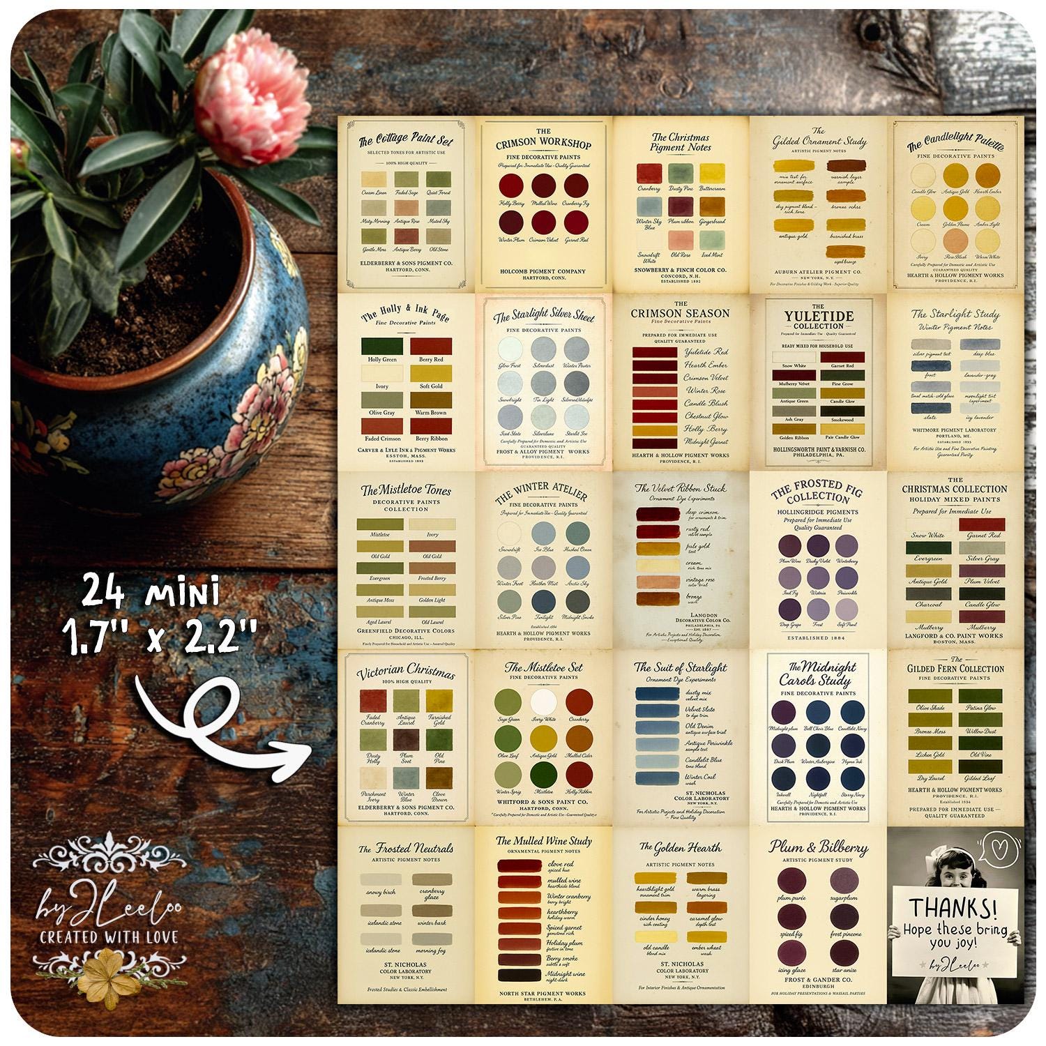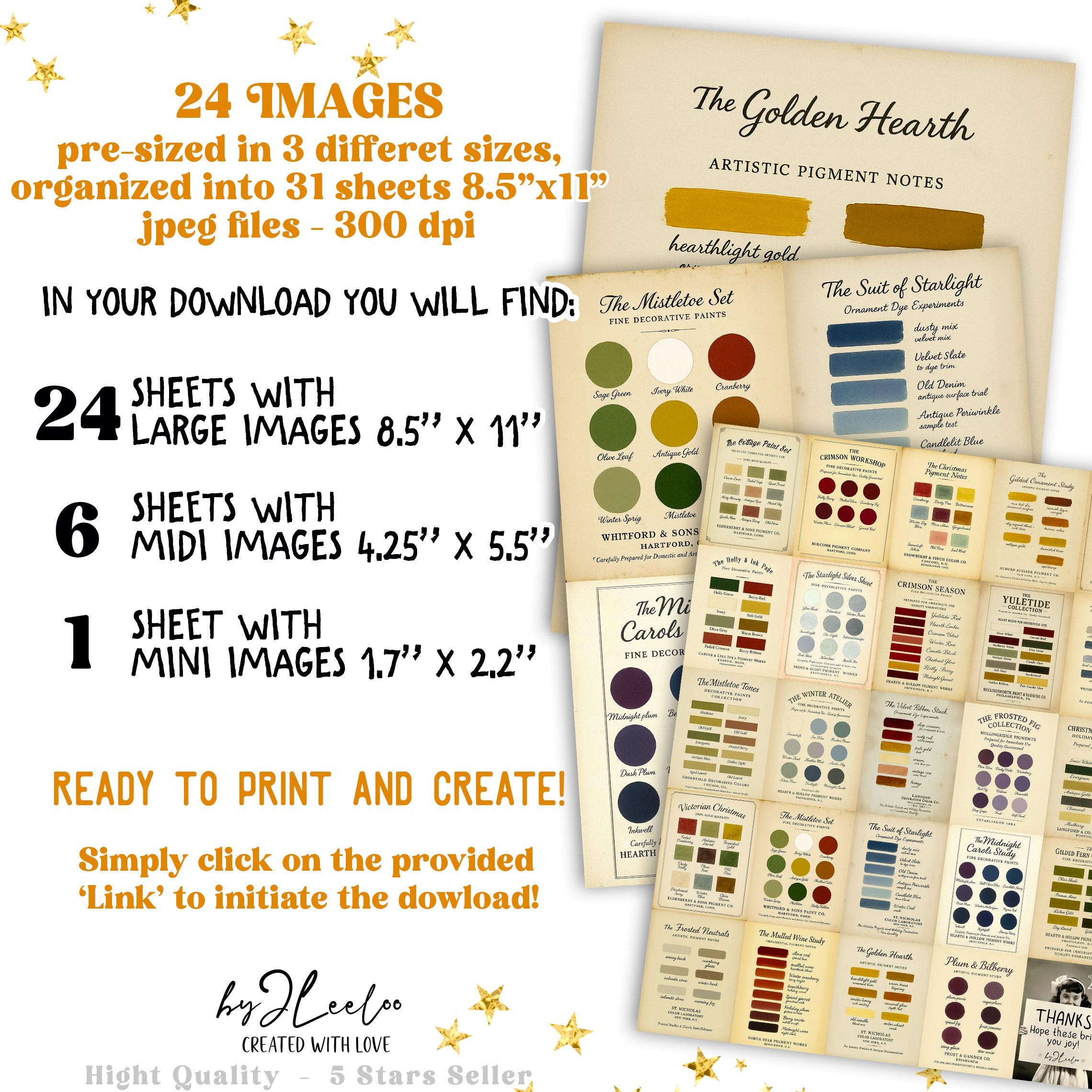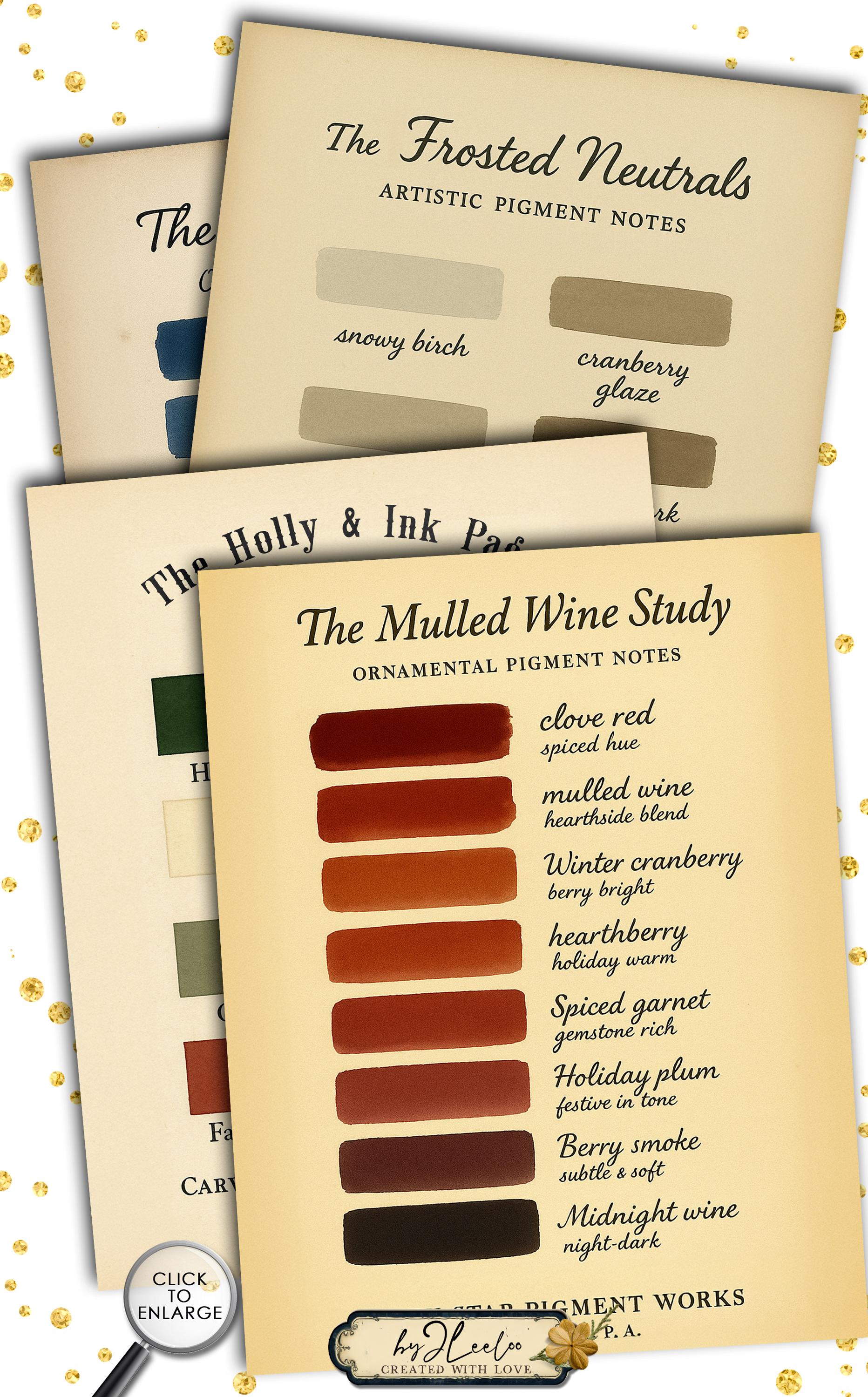 YULETIDE PIGMENTS – Vintage Christmas Color Charts, Retro Paint Swatches, Holiday Palette Printable Ephemera Junk Journal Set | ppK04