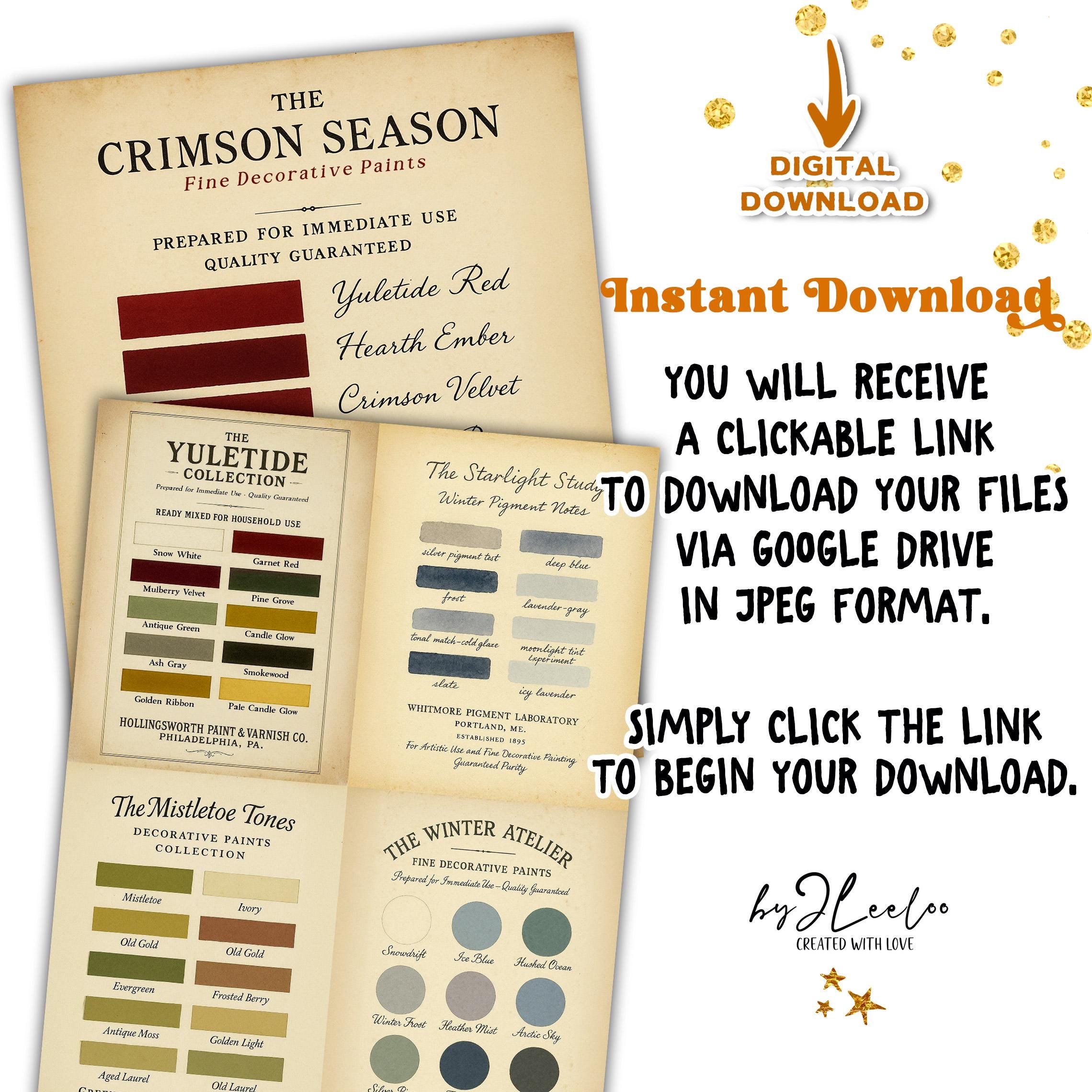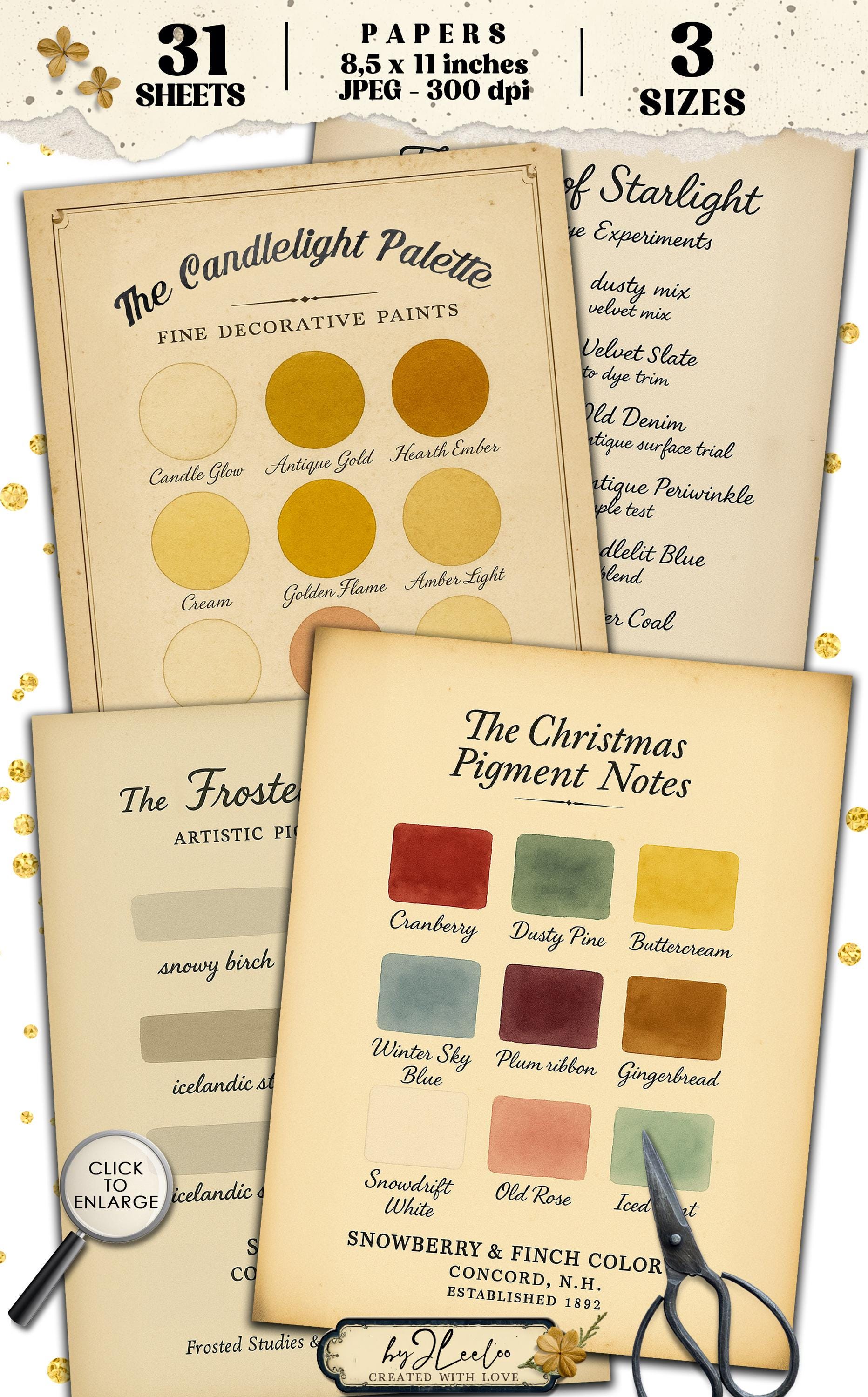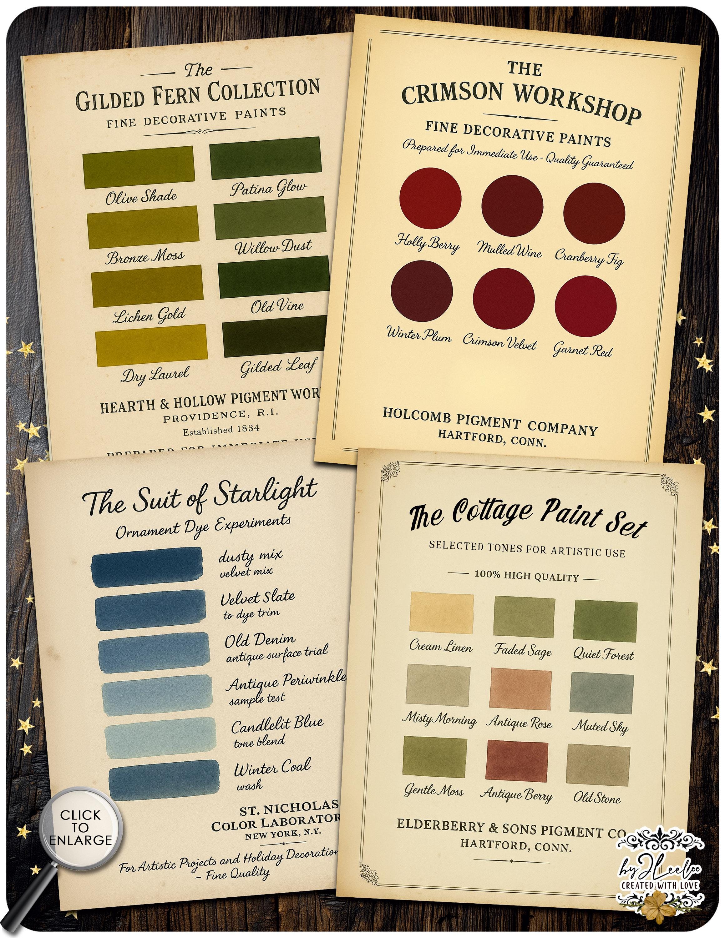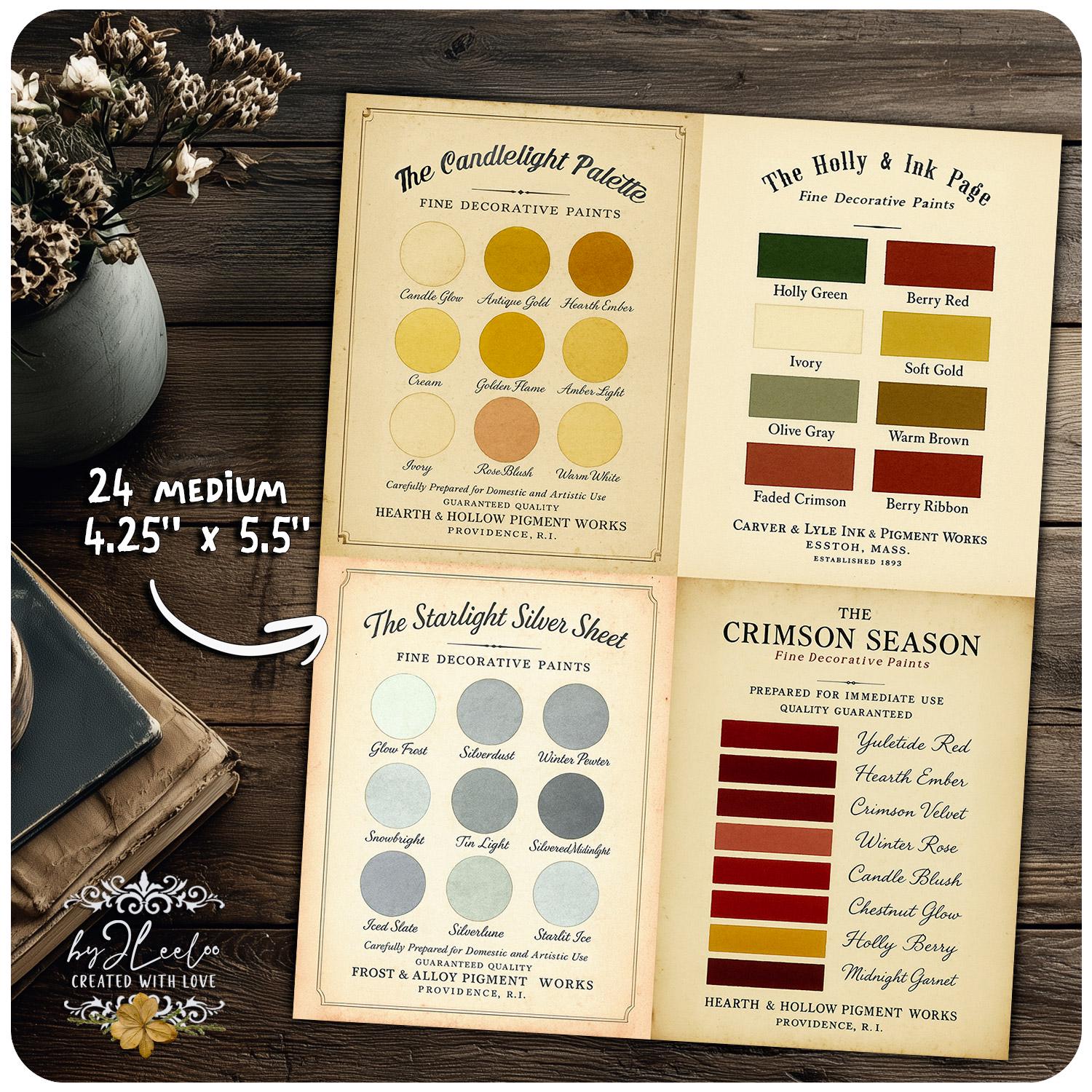 YULETIDE PIGMENTS – Vintage Christmas Color Charts, Retro Paint Swatches, Holiday Palette Printable Ephemera Junk Journal Set | ppK04