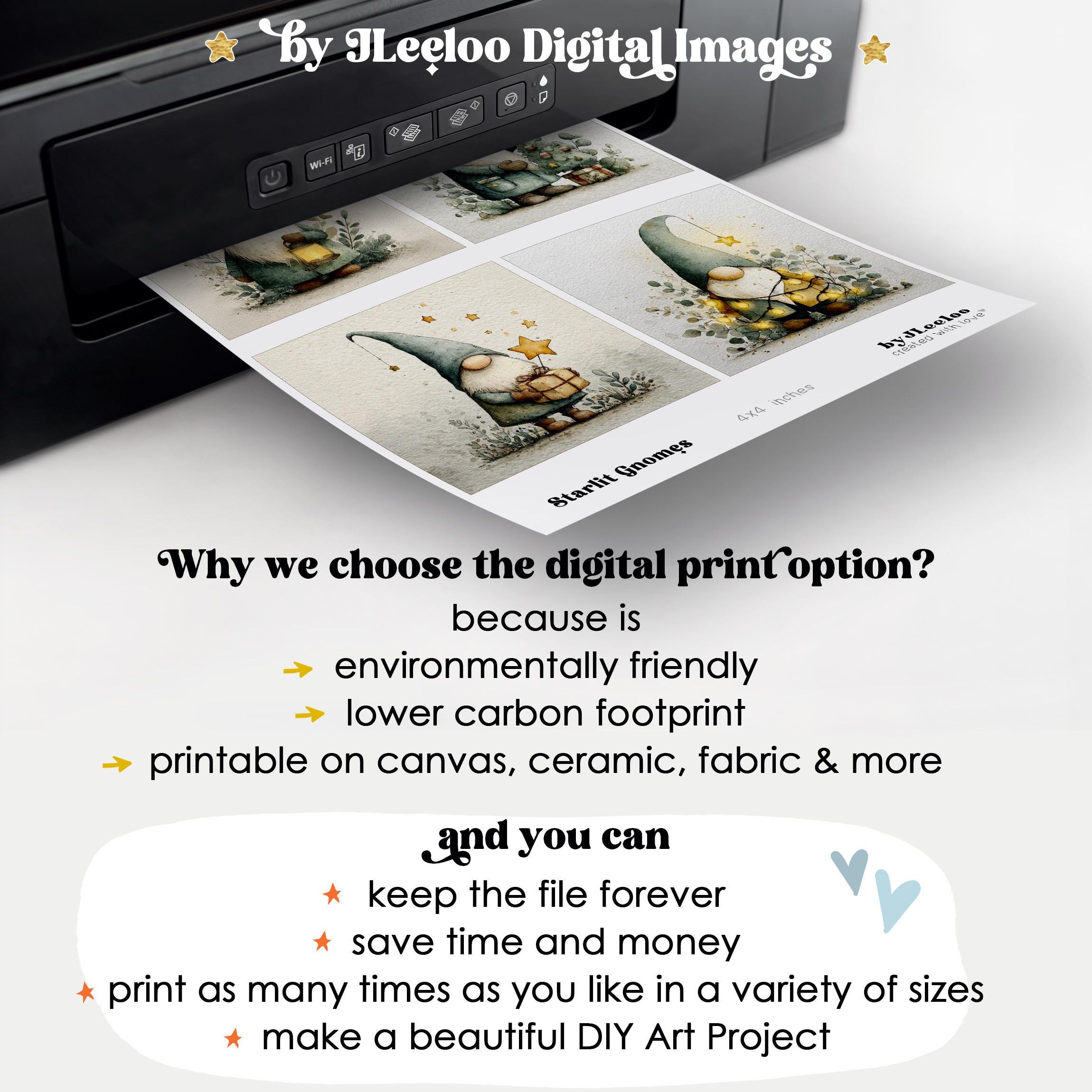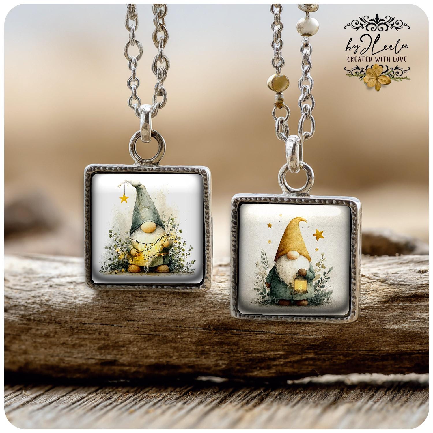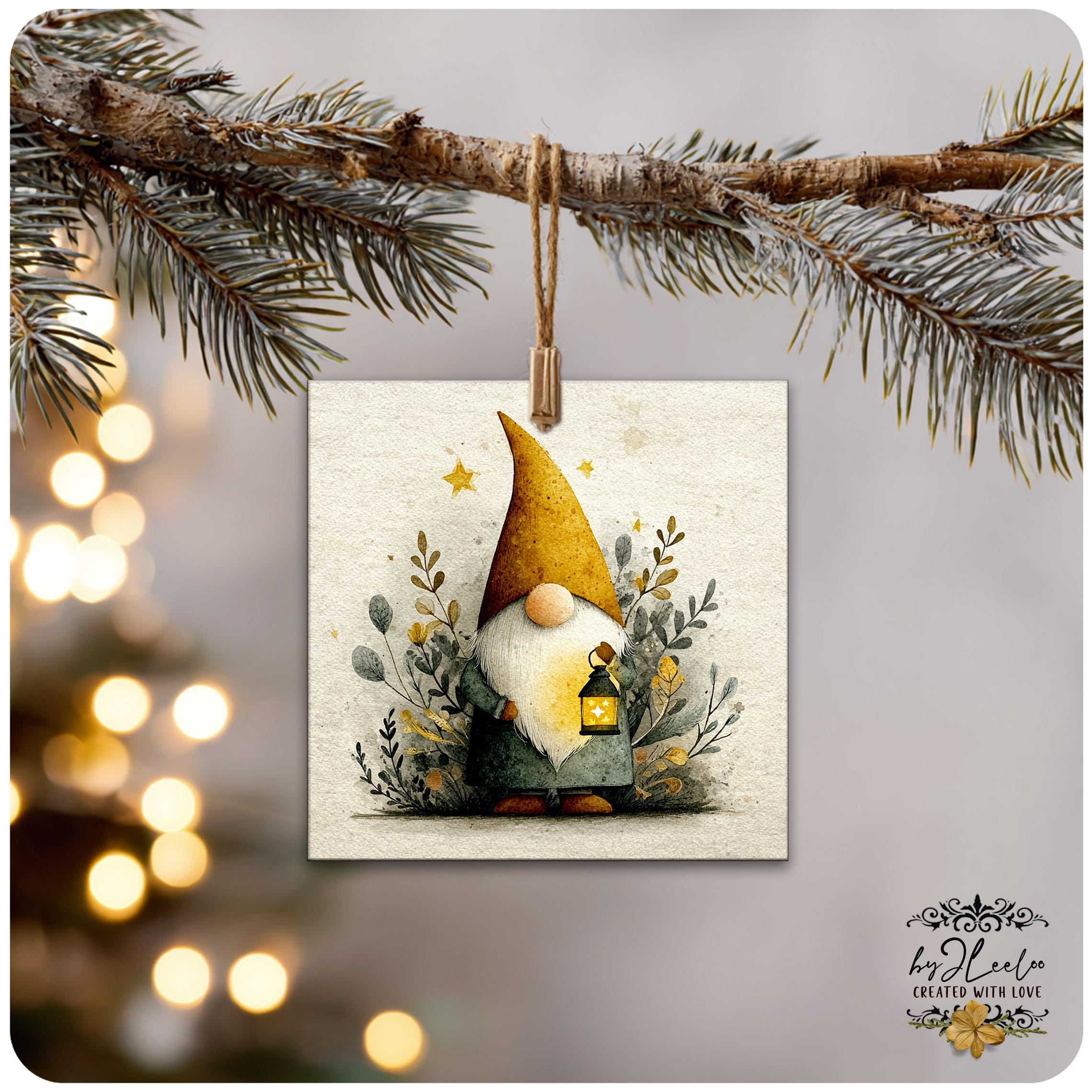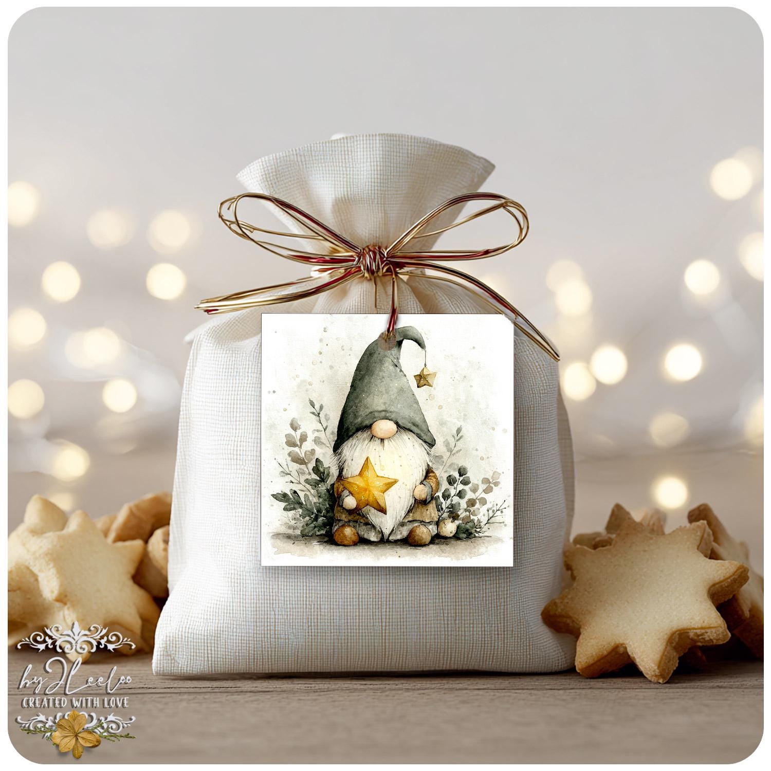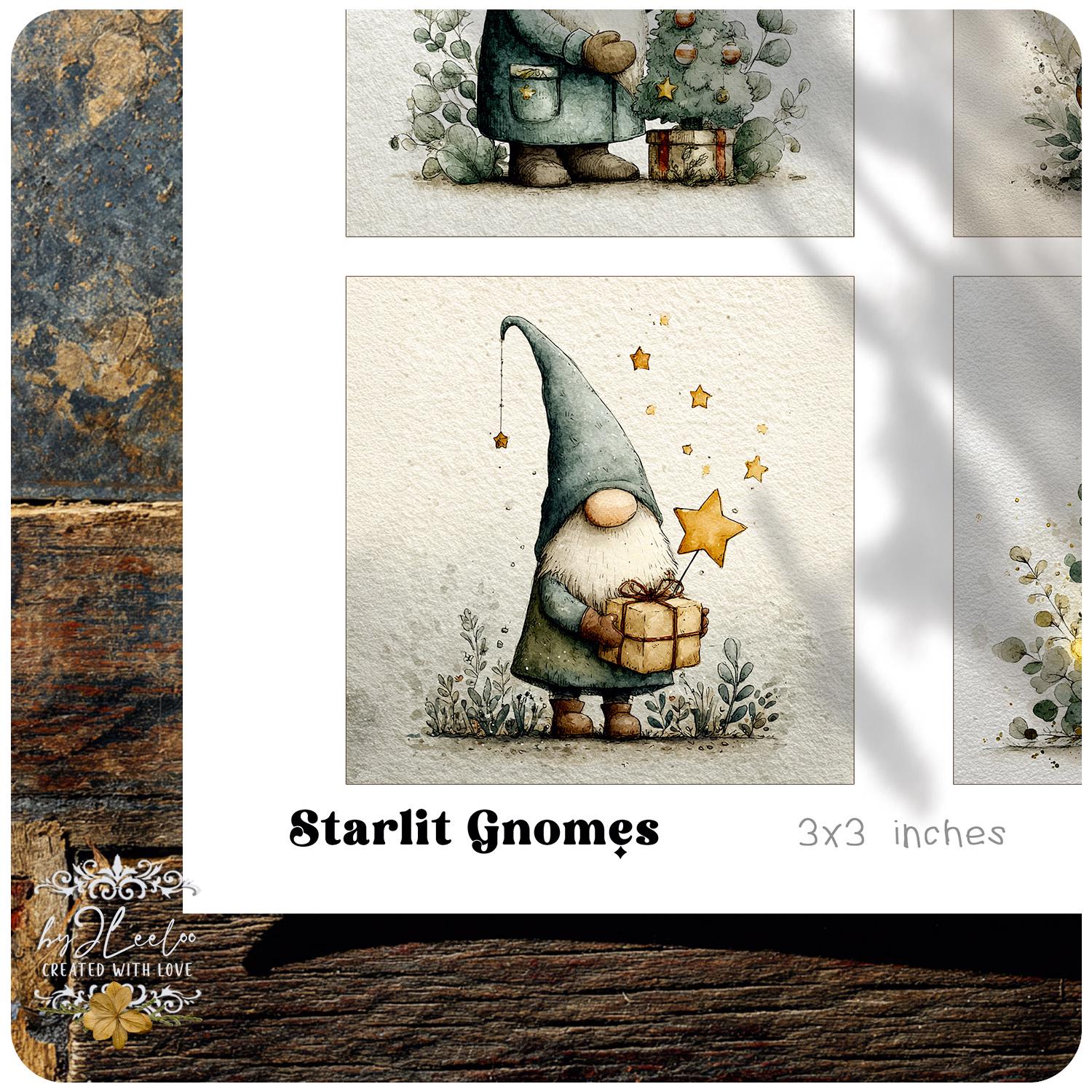 STARLIT GNOMES square watercolor christmas gnome art, 4 sizes for coasters jewelry crafts junk journals scrapbooking printables | qu637