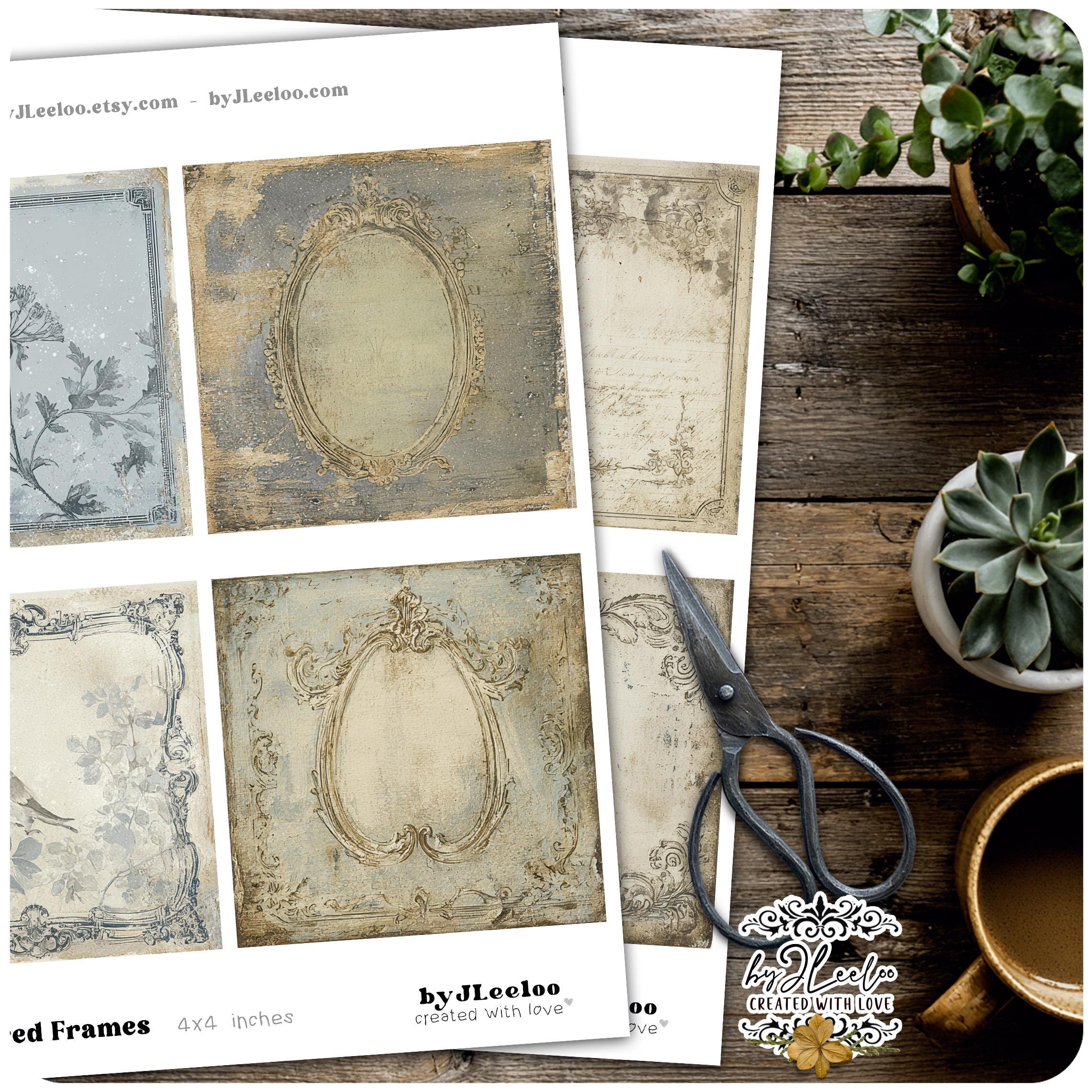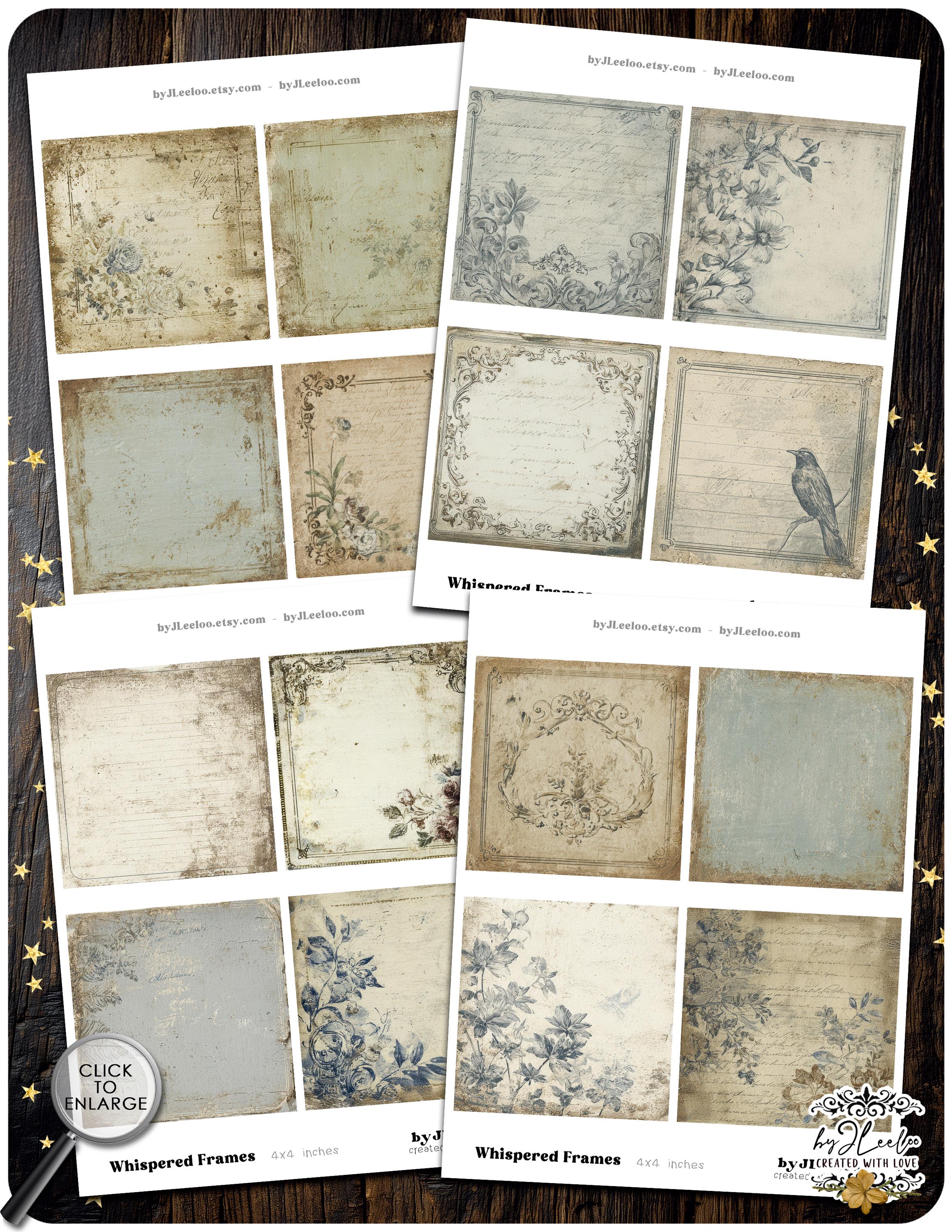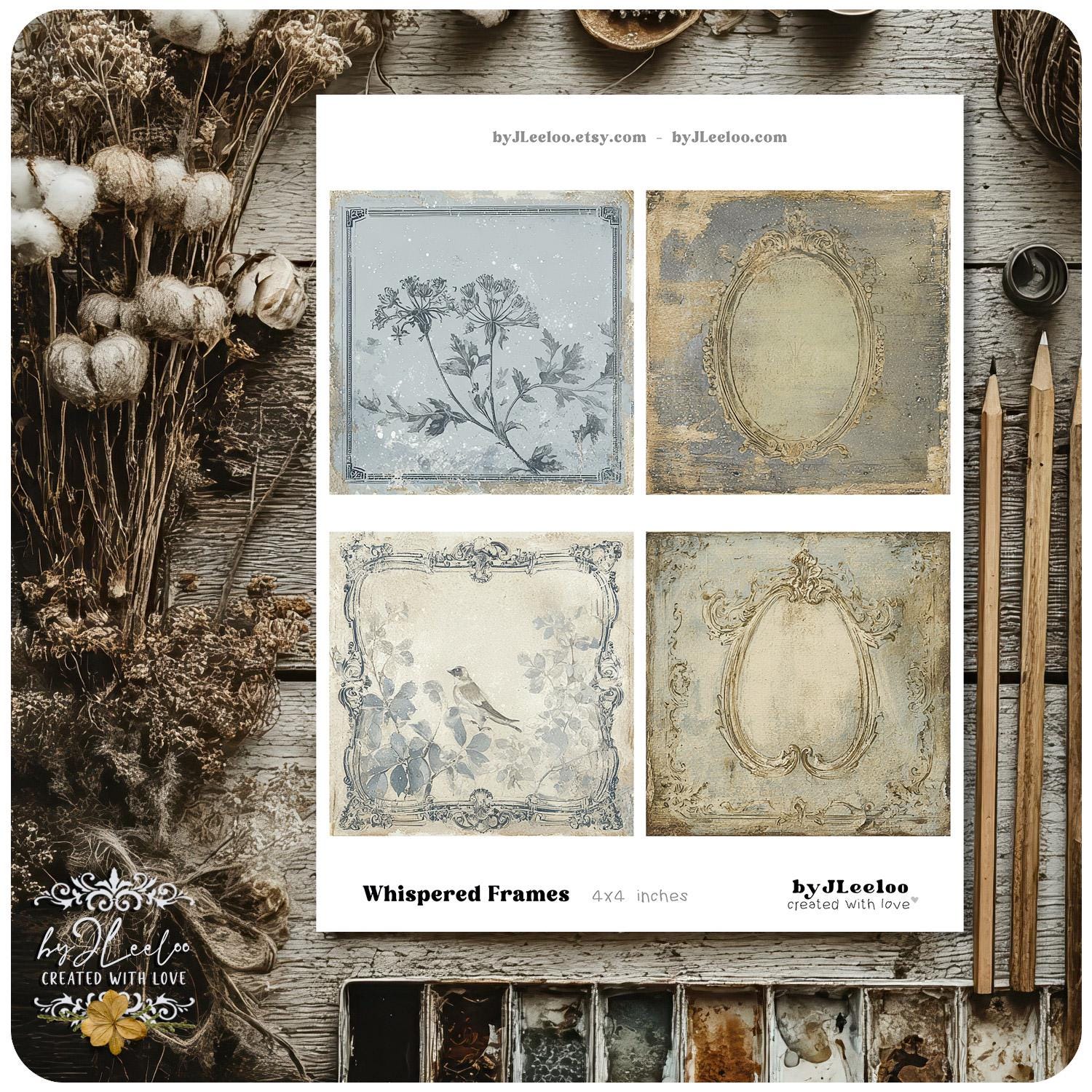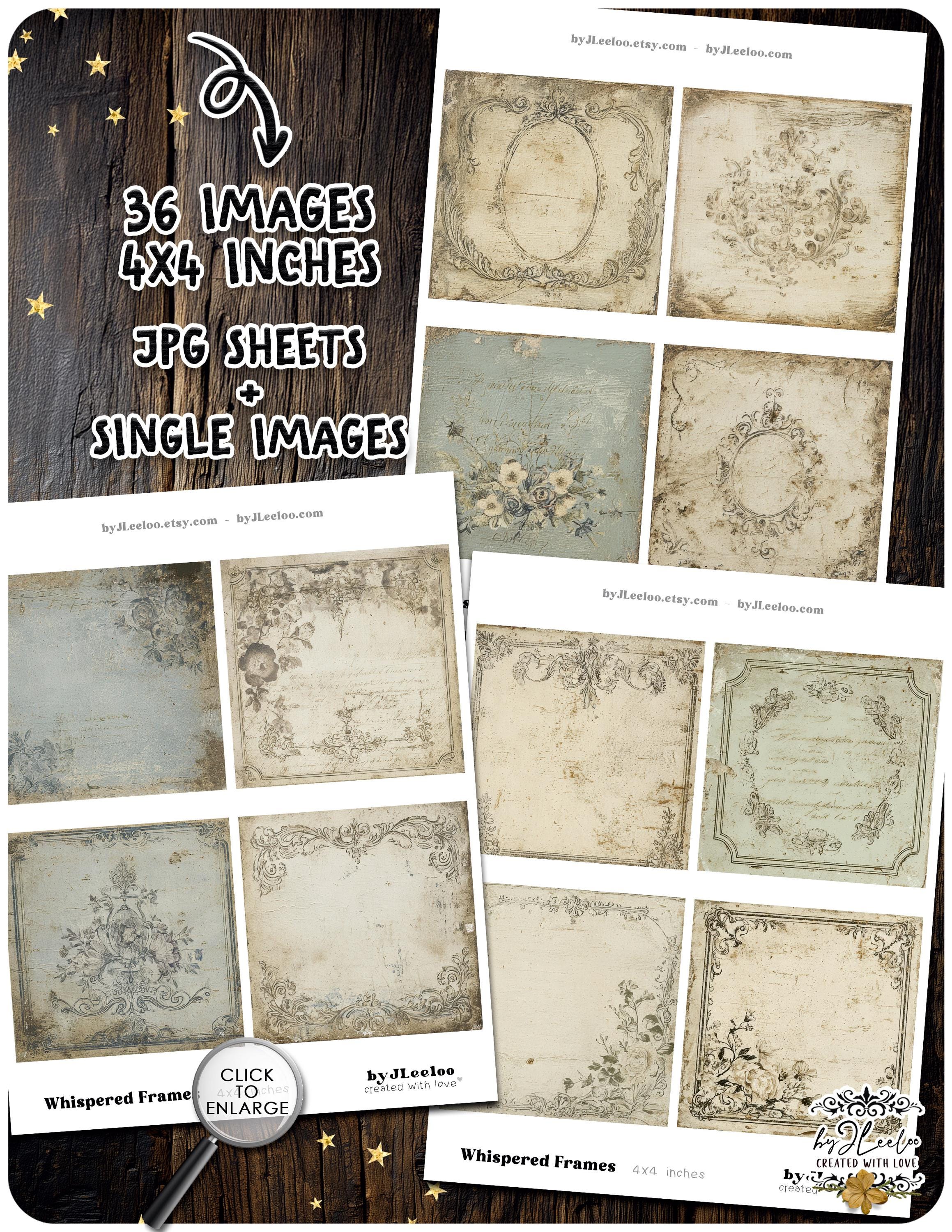WHISPERED FRAMES – 36 Vintage 4x4 Printable Squares for Junk Journal, Scrapbooking, Coaster Crafts, Collage Art | quK13