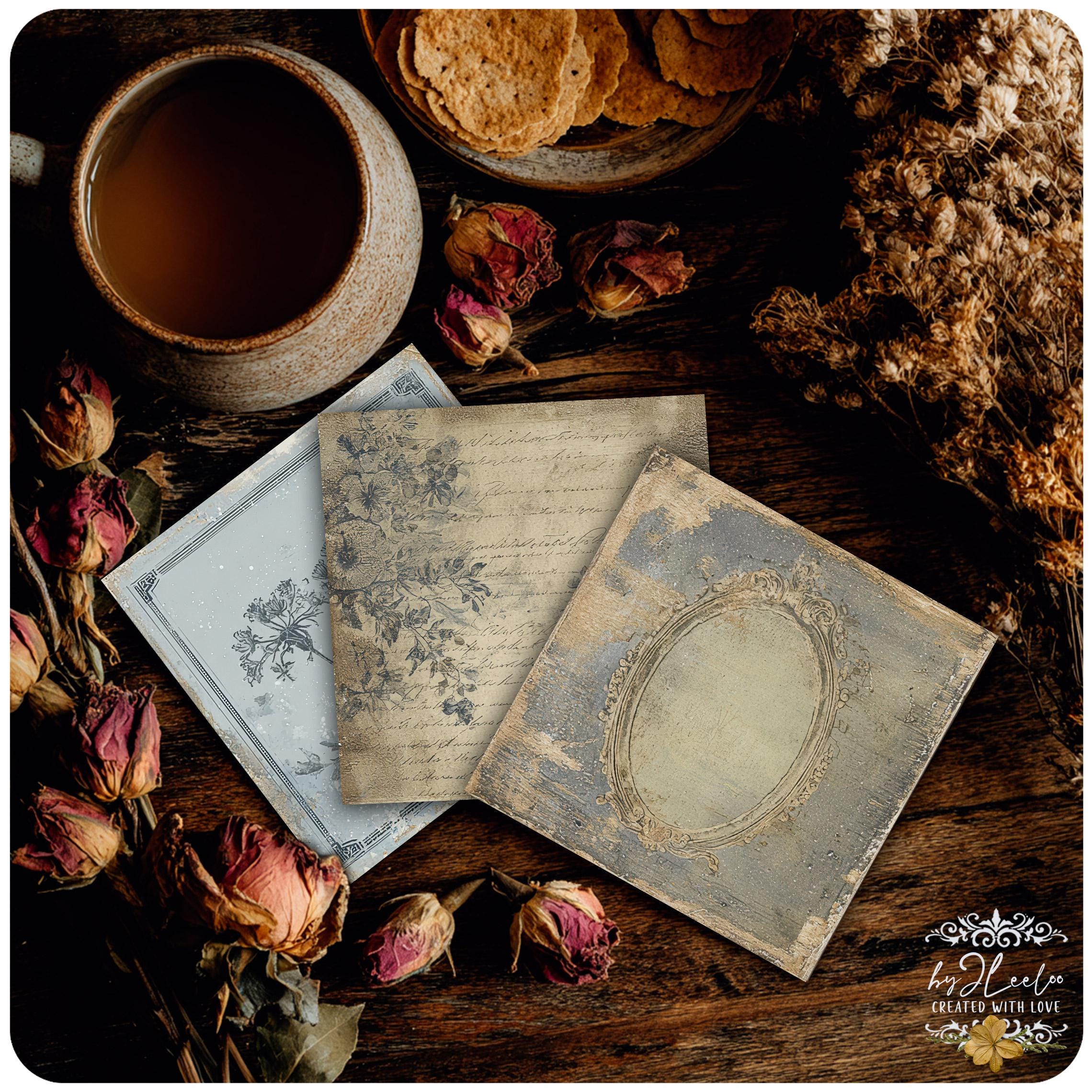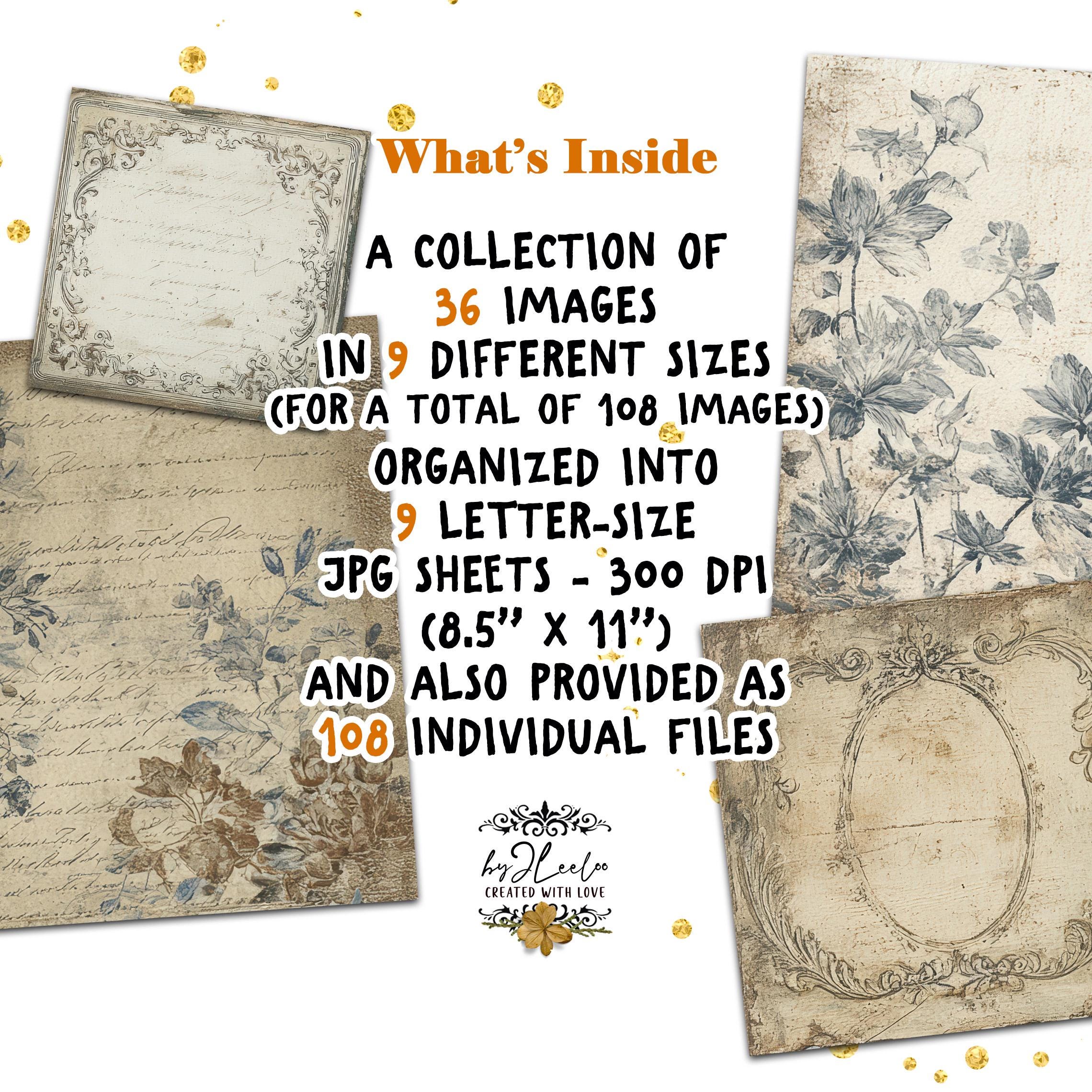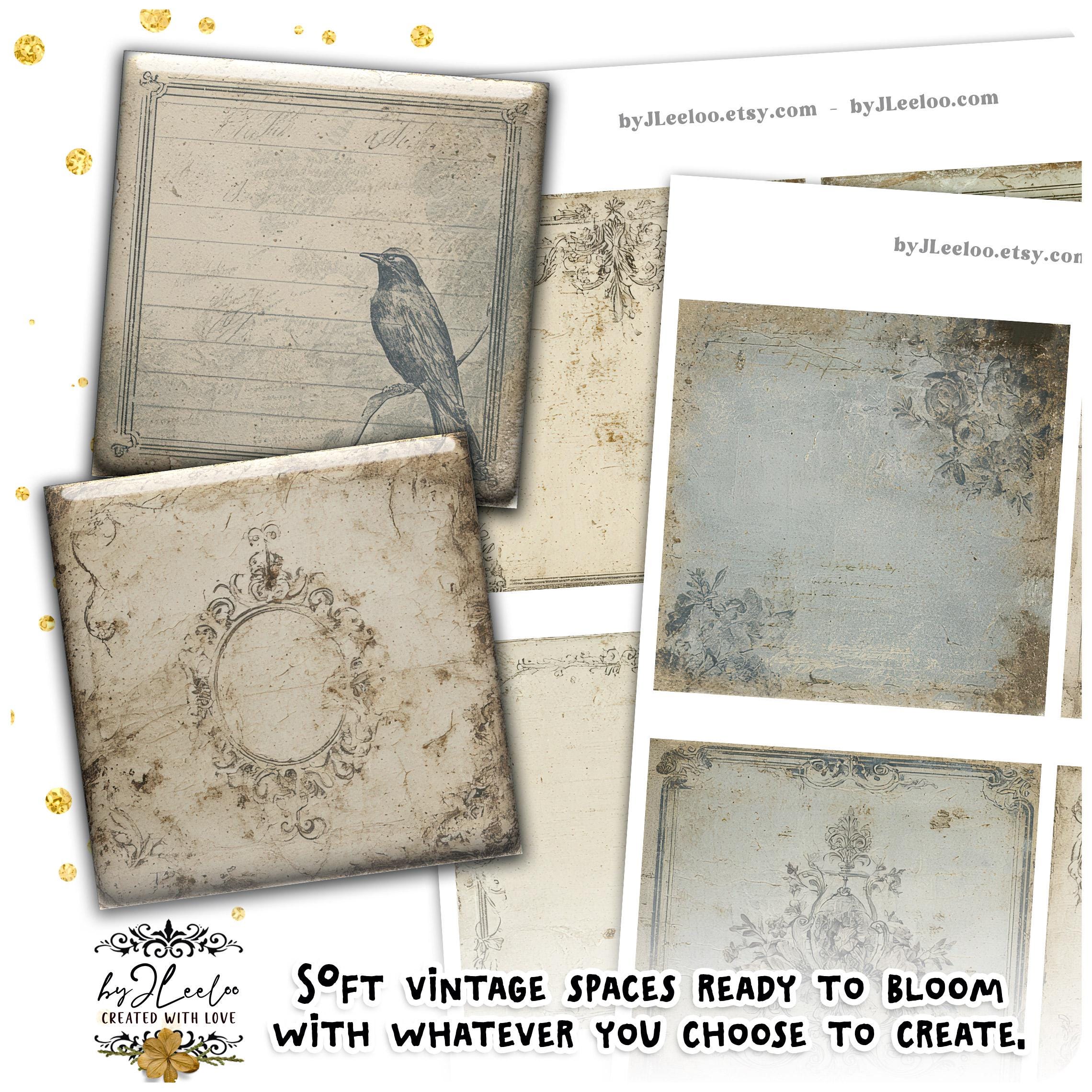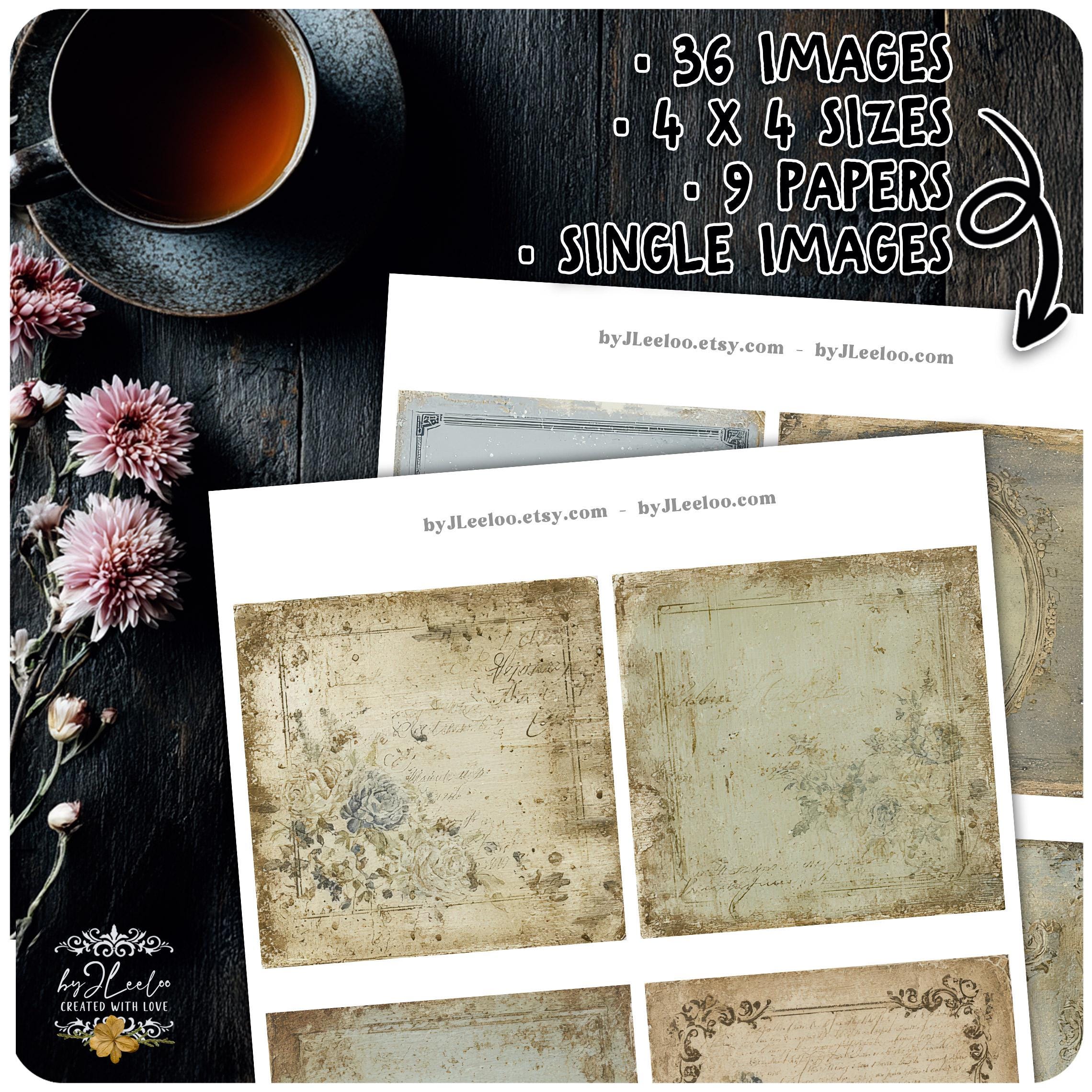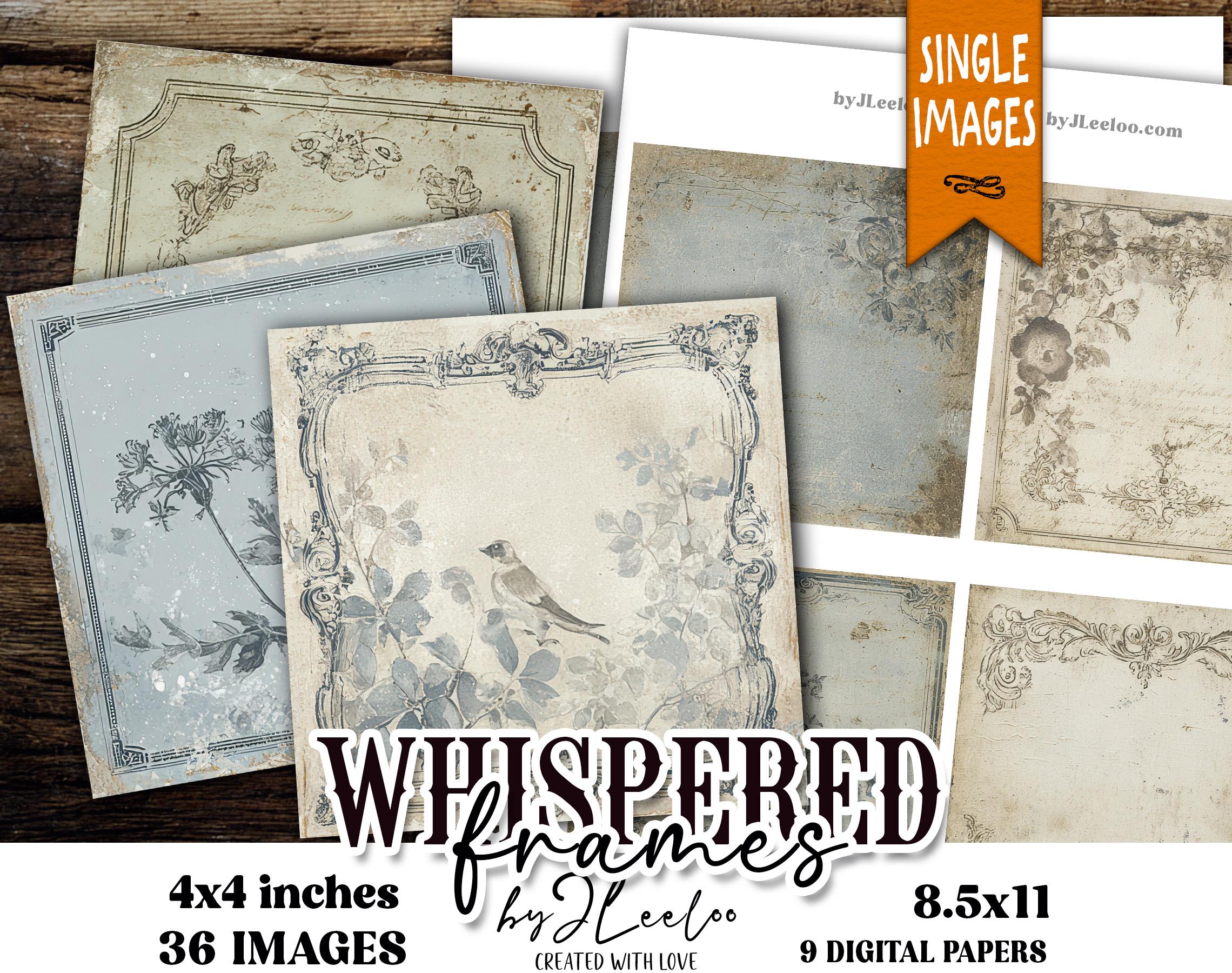 WHISPERED FRAMES – 36 Vintage 4x4 Printable Squares for Junk Journal, Scrapbooking, Coaster Crafts, Collage Art | quK13