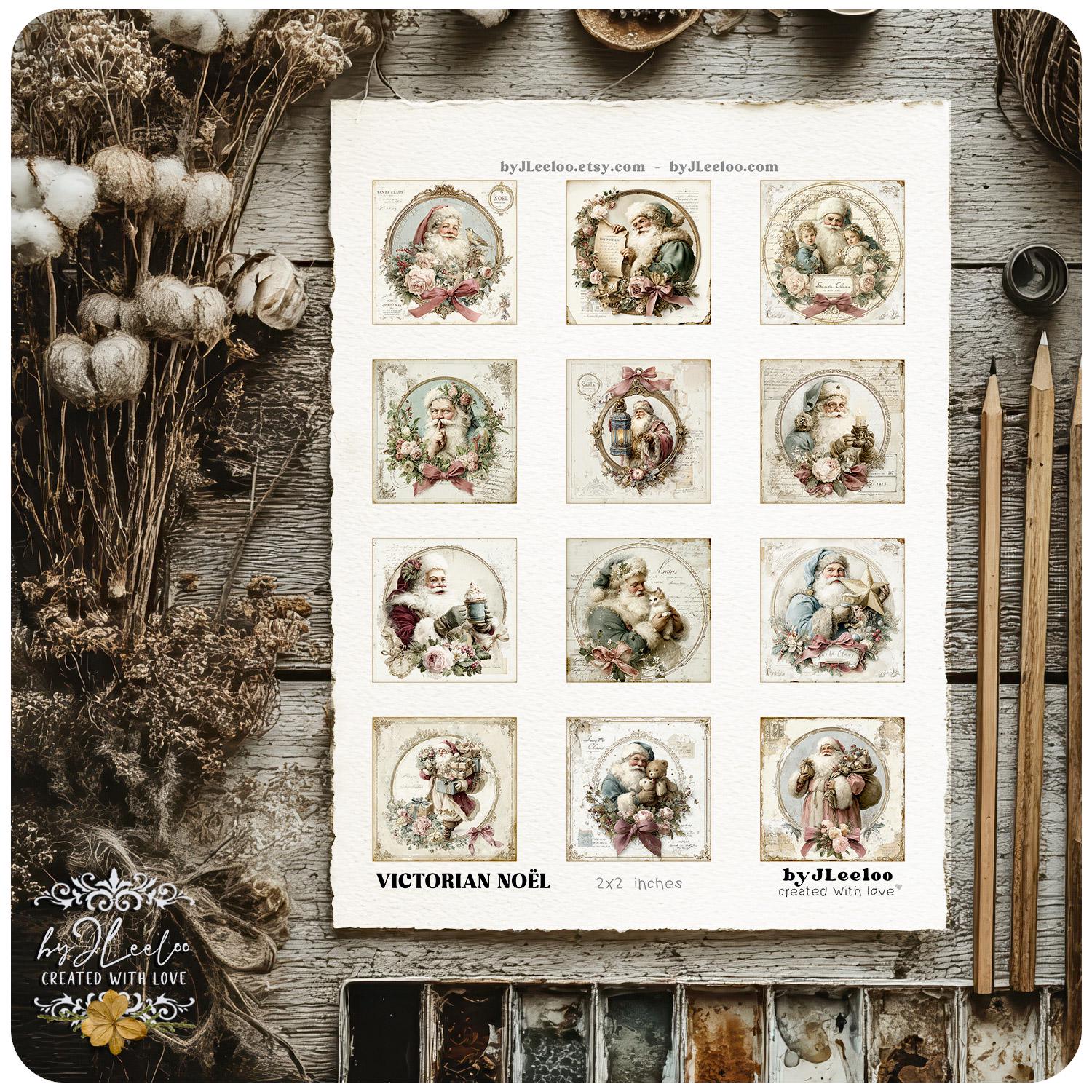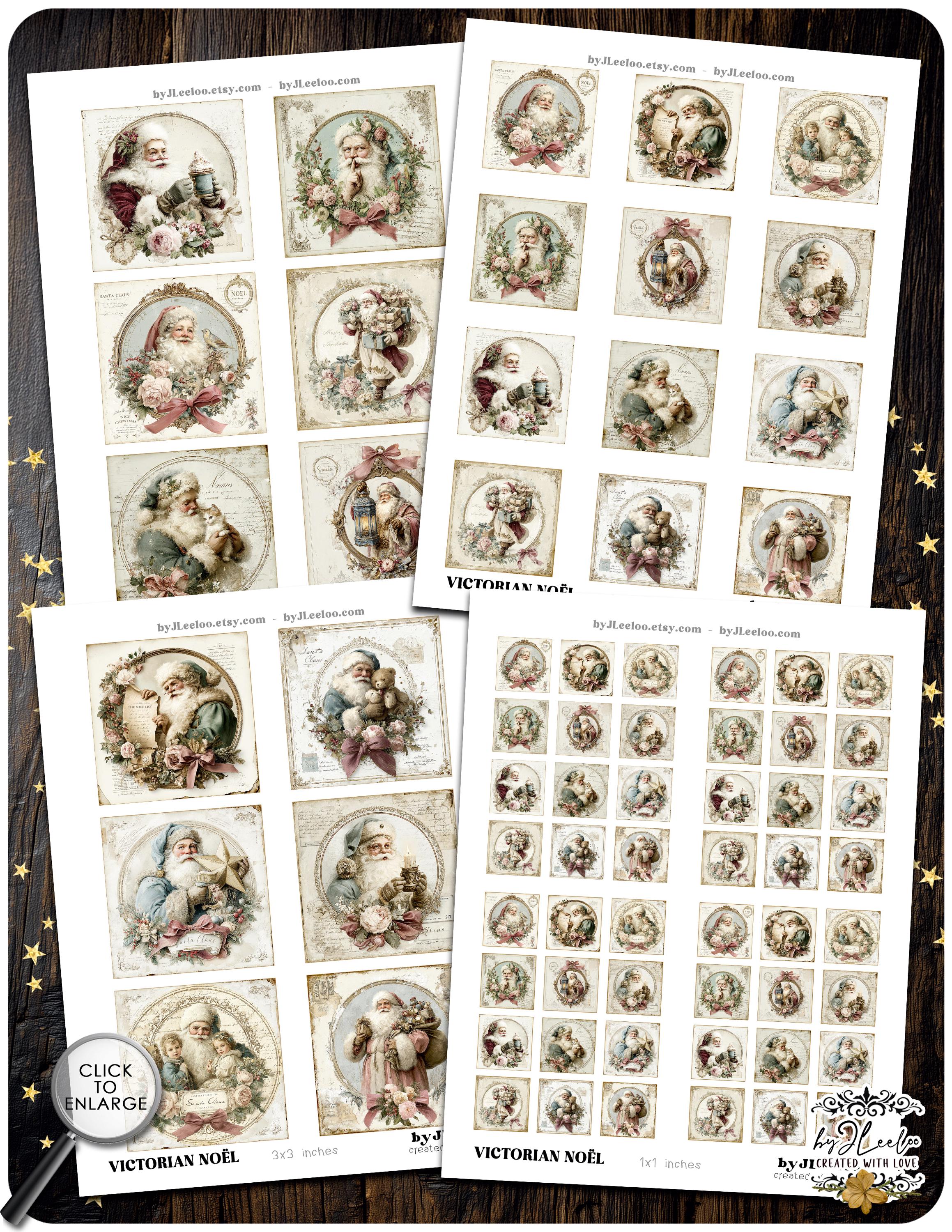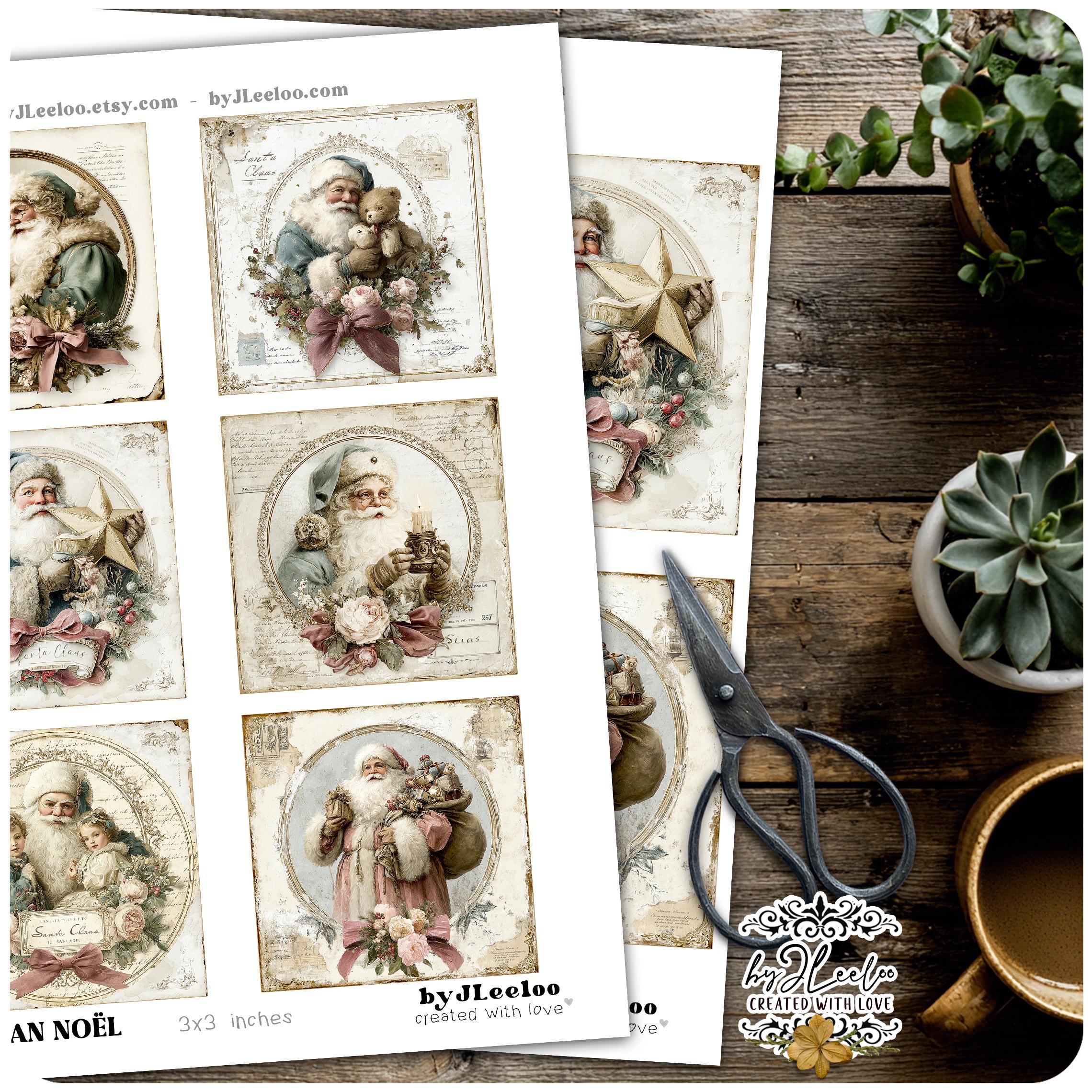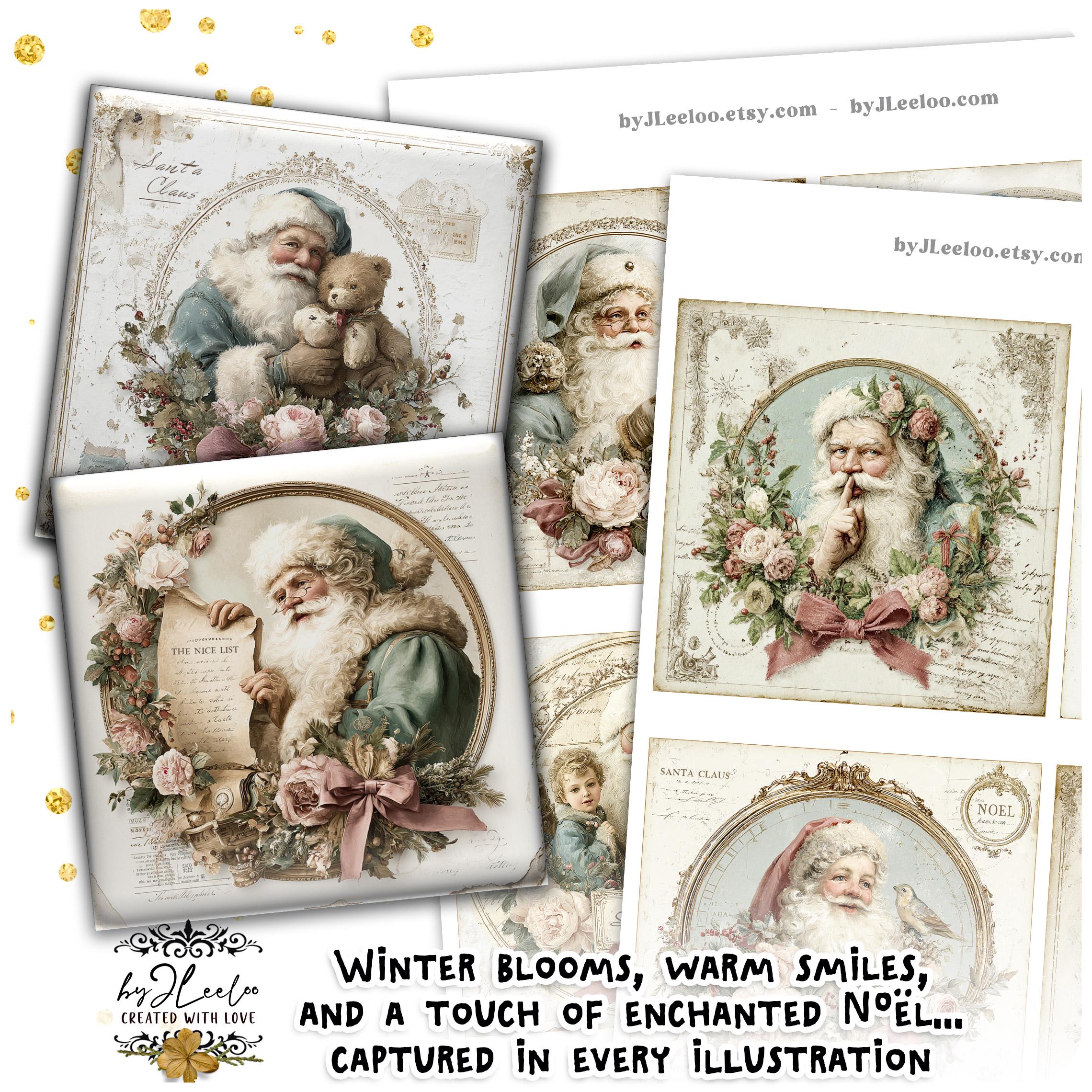 VICTORIAN NOËL vintage Santa Claus square illustrations, Victorian Christmas portraits for junk journals & holiday crafts | qu639