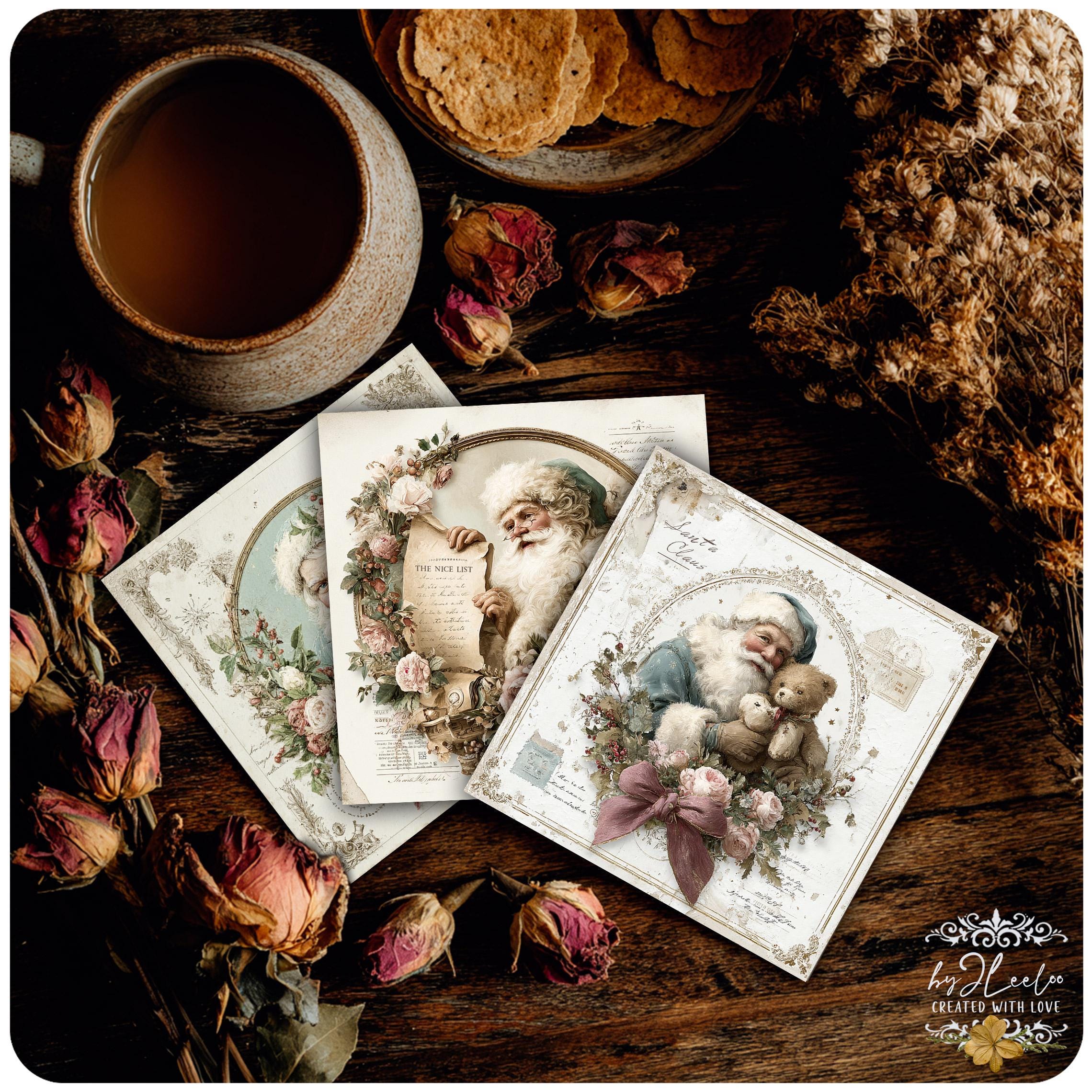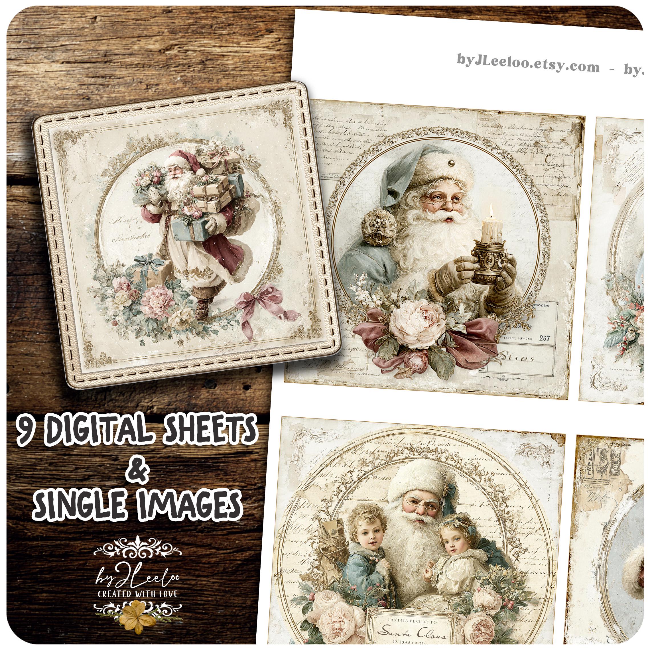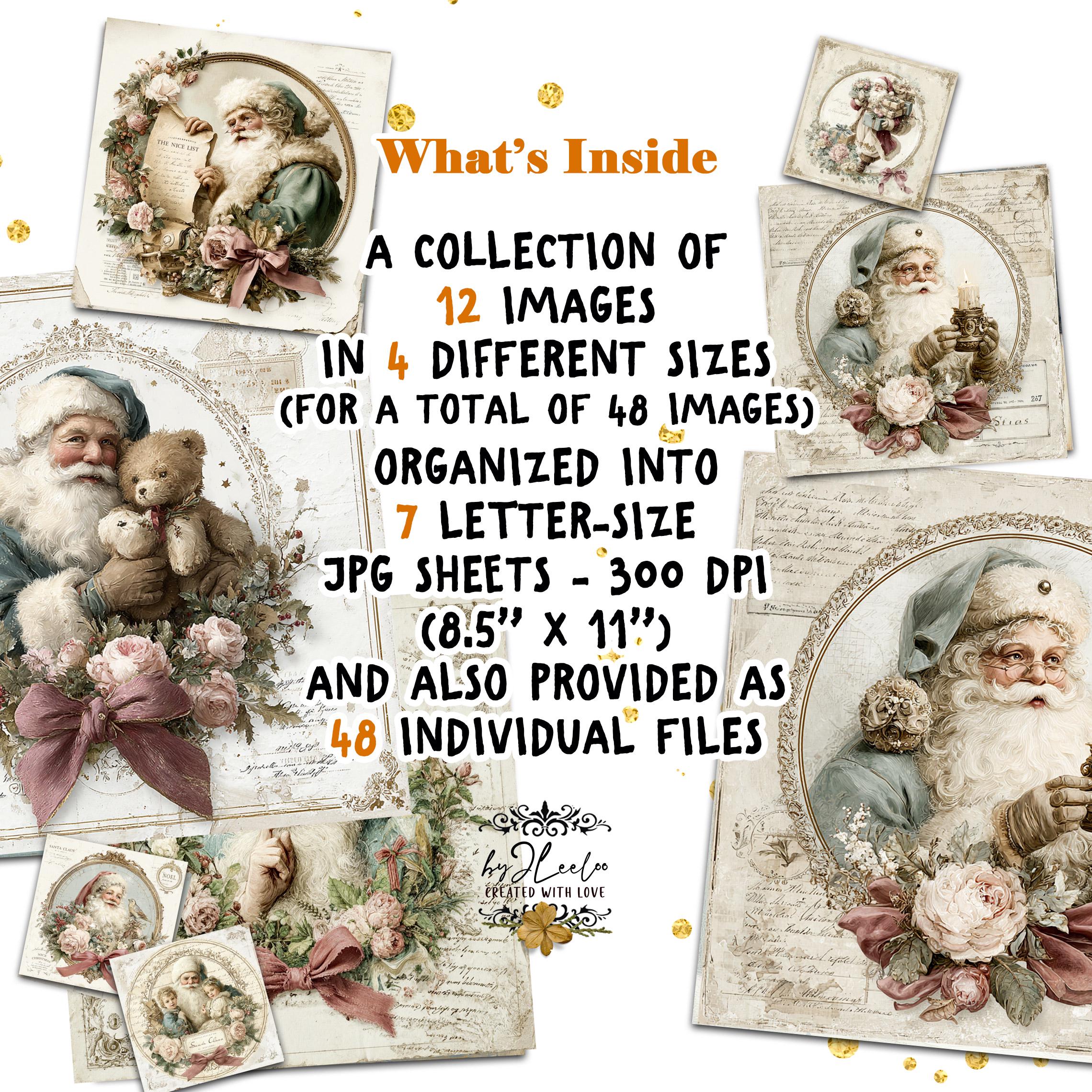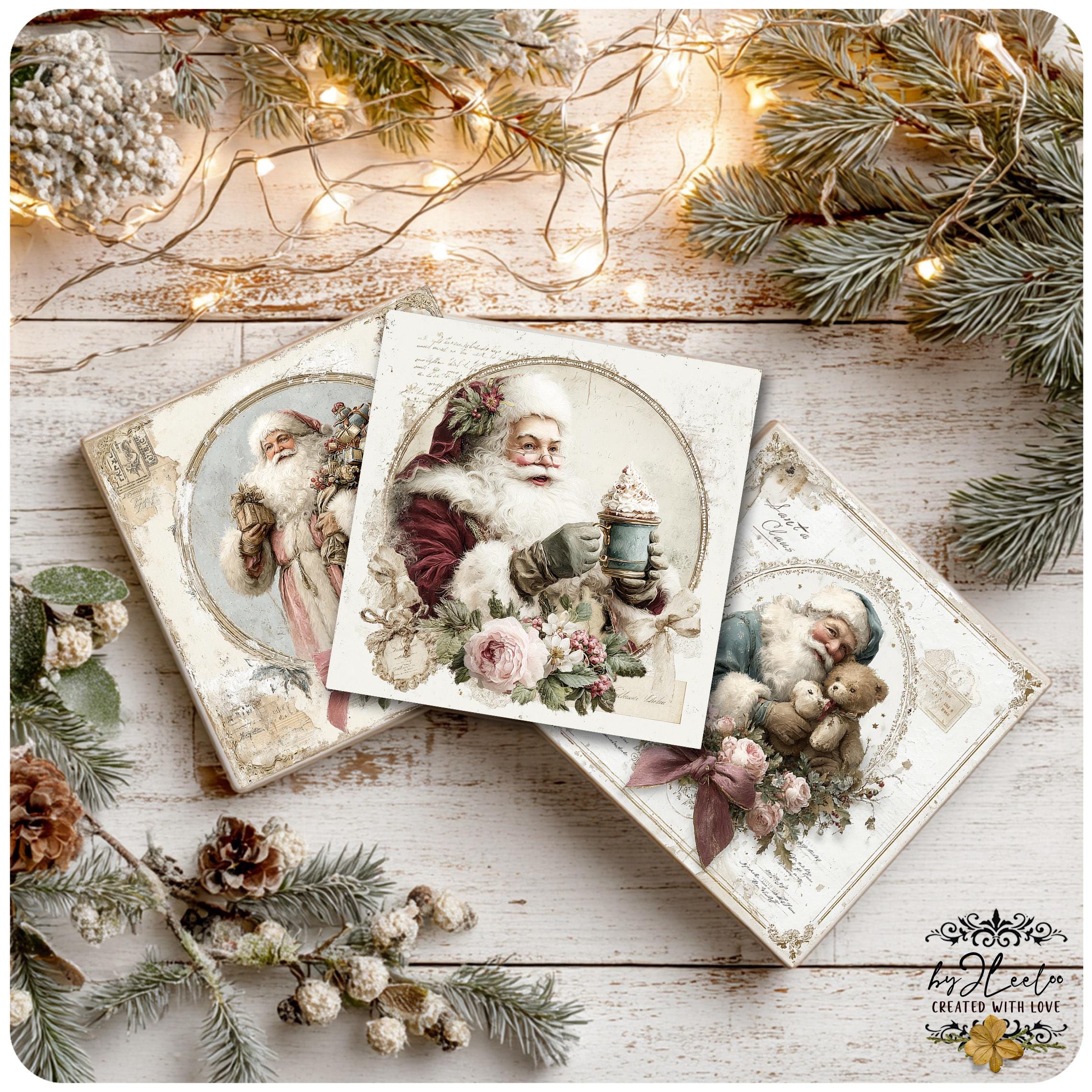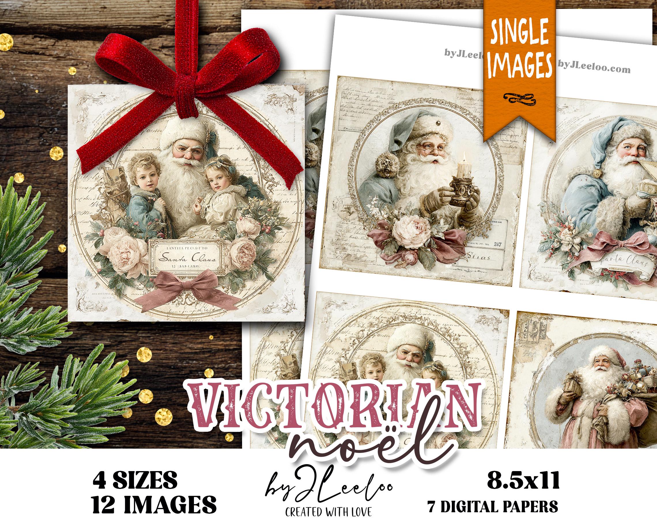 VICTORIAN NOËL vintage Santa Claus square illustrations, Victorian Christmas portraits for junk journals & holiday crafts | qu639